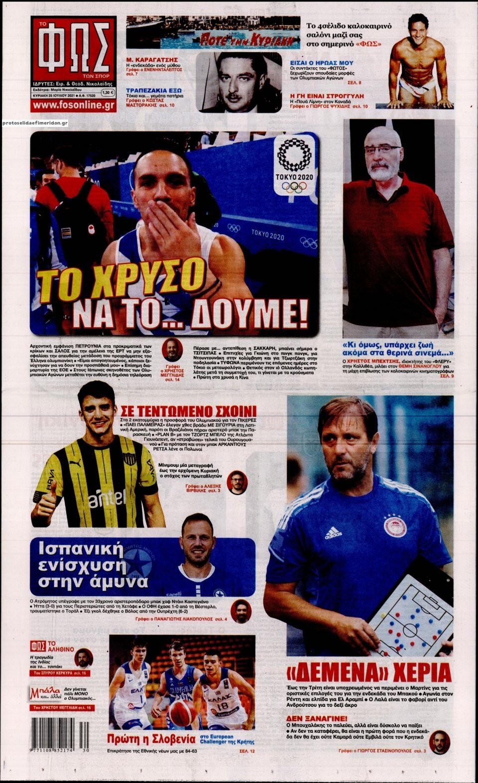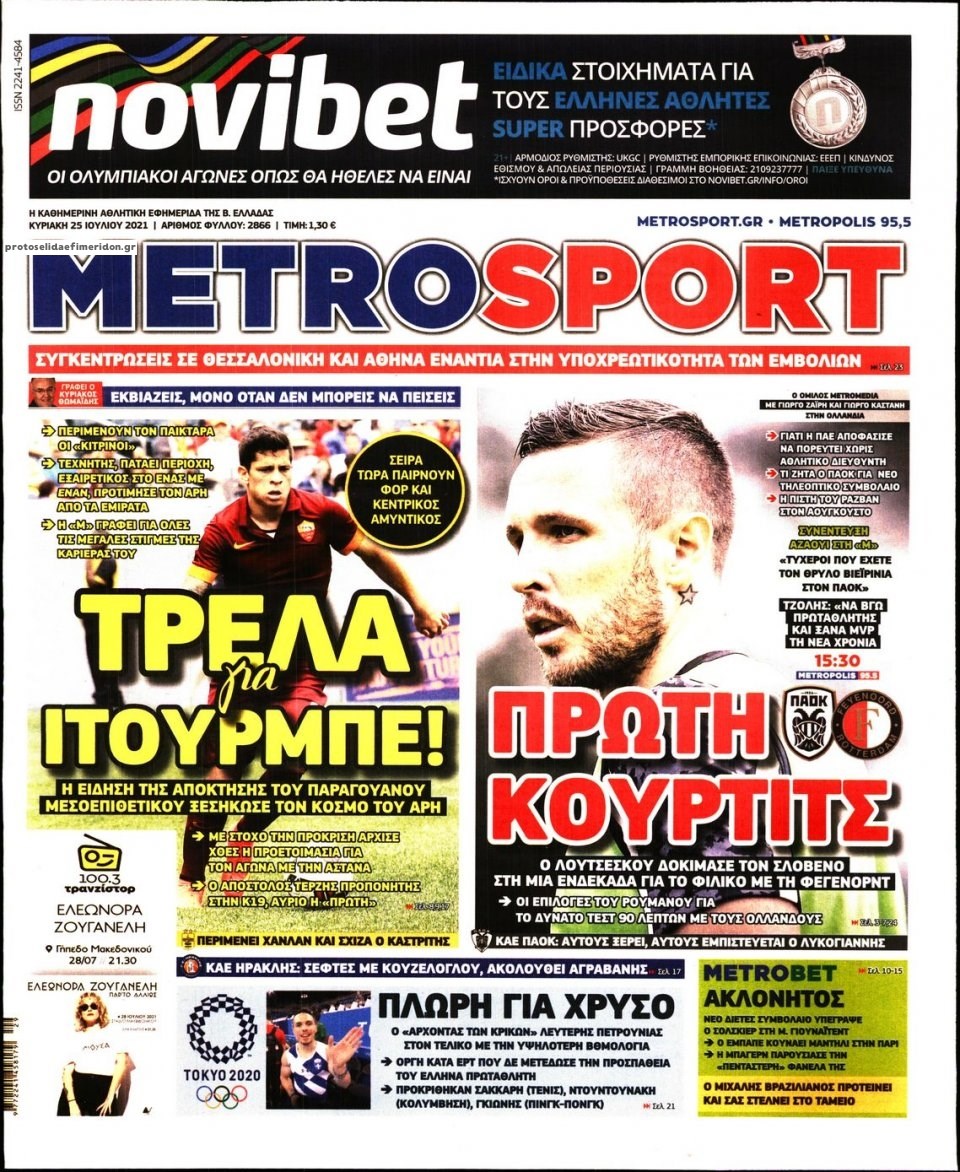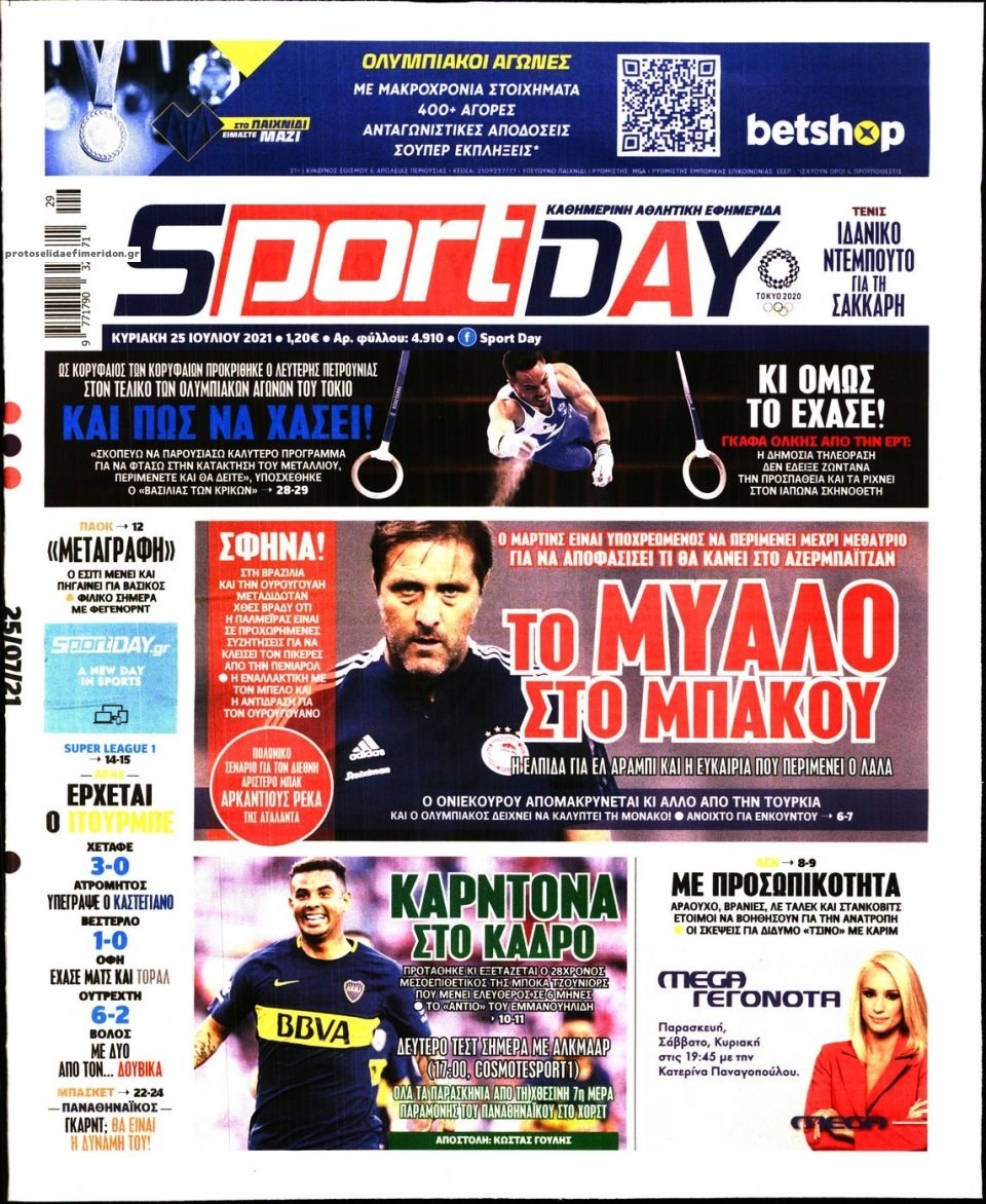 Οι αθλητικές εφημερίδες 25/7/2021 Σήφης Γαρυφαλάκης 07:37, Κυριακή 25 Ιουλίου 2021 Media Διαβάστε τα πρωτοσέλιδα των αθλητικών εφημερίδων. ΑΘΛΗΤΙΚΕΣ ΕΦΗΜΕΡΙΔΕΣ ΕΦΗΜΕΡΙΔΕΣ ΠΡΩΤΟΣΕΛΙΔΑ ΠΡΩΤΟΣΕΛΙΔΑ ΕΦΗΜΕΡΙΔΩΝ Μοιράσου το: σχολίασε κι εσύ (0 σχόλια) Ακολουθήστε το enikos.gr στο Google News και μάθετε πρώτοι όλες τις ειδήσεις Δείτε όλες τις τελευταίες ειδήσεις από την Ελλάδα και τον Κόσμο στο enikos.gr Ειδήσεις Ροή Ειδήσεων 5 ώρες πριν Εκτός ευρωομάδας ΣΥΡΙΖΑ ο Νίκος Παππάς μετά την επίθεση στον δημοσιογράφο Νίκο Γιαννόπουλο – Η μήνυση και οι νέες δηλώσεις 6 ώρες πριν «Αγριεύουν» οι αγρότες: «Δεν συντρέχει λόγος συνάντησης με τον πρωθυπουργό» – Ώρα αποφάσεων στη σύσκεψη της Πέμπτης 6 ώρες πριν Κυψέλη: Χωρίς την οικογένειά της δίπλα της απολογήθηκε η 16χρονη – «Της είχε επιτεθεί κάποιος για να την βιάσει, φοβήθηκε και κυκλοφορούσε με μαχαίρι» 5 ώρες πριν Politico: Το πρόβλημα της Ευρώπης δεν είναι το Βέλγιο αλλά ο Ντόναλντ Τραμπ 7 ώρες πριν Αλεξανδρούπολη: Πολυοργανική ανεπάρκεια λόγω υποσιτισμού η αιτία θανάτου του 3χρονου αγοριού 5 ώρες πριν Μυστήριο με τεράστιες κυκλικές πέτρες 200 κιλών – Ανακαλύφθηκαν τυχαία κατά τη διάρκεια οδικών έργων και κανείς δεν ξέρει από πού προέρχονται 6 ώρες πριν Ύπνος: Ειδικός εξηγεί τον πραγματικό λόγο που ξυπνάτε στις 4 τα ξημερώματα – Ο ρόλος των ορμονών και του κιρκάδιου ρυθμού 7 ώρες πριν Αριθμολογία: Οι άνθρωποι που έχουν γεννηθεί αυτές τις 4 ημερομηνίες, είναι τρυφεροί και αγαπούν ανιδιοτελώς 19 ώρες πριν 20 χρόνια τα Χριστούγεννα ξεκινούν στα Public με μεγάλη ποικιλία σε δώρα! 11 λεπτά πριν Νέο αμερικανικό πλήγμα σε σκάφος που φέρεται να μετέφερε ναρκωτικά στον Ειρηνικό – Τέσσερις νεκροί 27 λεπτά πριν Αλ Τσαντίρι Νιουζ: «Λύγισε» ο Δημήτρης Λάλος για τον Δημήτρη Ήμελλο – «Τον μνημονεύω, να ‘ναι καλά εκεί που είναι» 42 λεπτά πριν GNTM: Με δάκρυα τον αποχαιρέτησε η Ηλιάνα Παπαγεωργίου πριν από τον ημιτελικό – «Αισθάνομαι πολύ παράξενα» 56 λεπτά πριν Αμερικανικά στρατεύματα στον Ισημερινό για «προσωρινή» επιχείρηση κατά των ναρκωτικών 1 ώρα πριν Βραζιλία: Το Κογκρέσο ενέκρινε σχέδιο νόμου για τη μείωση της ποινής του πρώην προέδρου Μπολσονάρου ENIKOS NETWORK Αϋπνία: Το κόλπο που θα σας βοηθήσει να κοιμηθείτε απόψε – Είναι απλό και έχει αποτέλεσμα 2,6 εκατομμύρια πολίτες έχουν ήδη εμβολιαστεί κατά της γρίπης ΕΛΣΤΑΤ: Τι δείχνουν τα νέα στοιχεία για τις ηλεκτρονικές παραγγελίες των επιχειρήσεων ΚΕΠΕ: Οι 3 διακριτές συμβολές των ΜμΕ και της μεταποίησης στην ελληνική οικονομία Χαρτογραφώντας το «σημείο χωρίς επιστροφή»: Για πρώτη φορά αποκαλύπτεται με λεπτομέρεια το ακανθώδες όριο της ατμόσφαιρας τ... Η Google καταργεί τη λειτουργία «dark web report» – Πώς θα μπορούν οι χρήστες να διαγράφουν τα δεδομένα τους περισσότερα 02:30 , Πέμπτη 18 Δεκεμβρίου 2025 Αλ Τσαντίρι Νιουζ: Η κόρη της Πάολα στο κοινό – Η ατάκα Λαζόπουλου που την έκανε να «κοκκινήσει» Γιορτινή διάθεση και ευχάριστες στιγμές γέμισε η αποψινή, τελευταία για το 2025, εκπομπή του «... 22:24 , Τετάρτη 17 Δεκεμβρίου 2025 Το Σπίτι Δίπλα Στο Ποτάμι: Σε κίνδυνο η υγεία του Απόστολου – Τι θα δούμε απόψε “Το Σπίτι Δίπλα στο Ποτάμι” ξετυλίγει το νήμα της ζωής των πέντε αδελφών με καταισ... 21:14 , Τετάρτη 17 Δεκεμβρίου 2025 Παιχνίδια Εκδίκησης: Θα καταφέρει ο Χρήστος να κλονίσει την εμπιστοσύνη της Μάγιας απέναντι στον Άγη; Τα «Παιχνίδια Εκδίκησης» έρχονται απόψε στις 22:30, στον Αντ1, με το τελευταίο επεισόδιο της χ... 20:57 , Τετάρτη 17