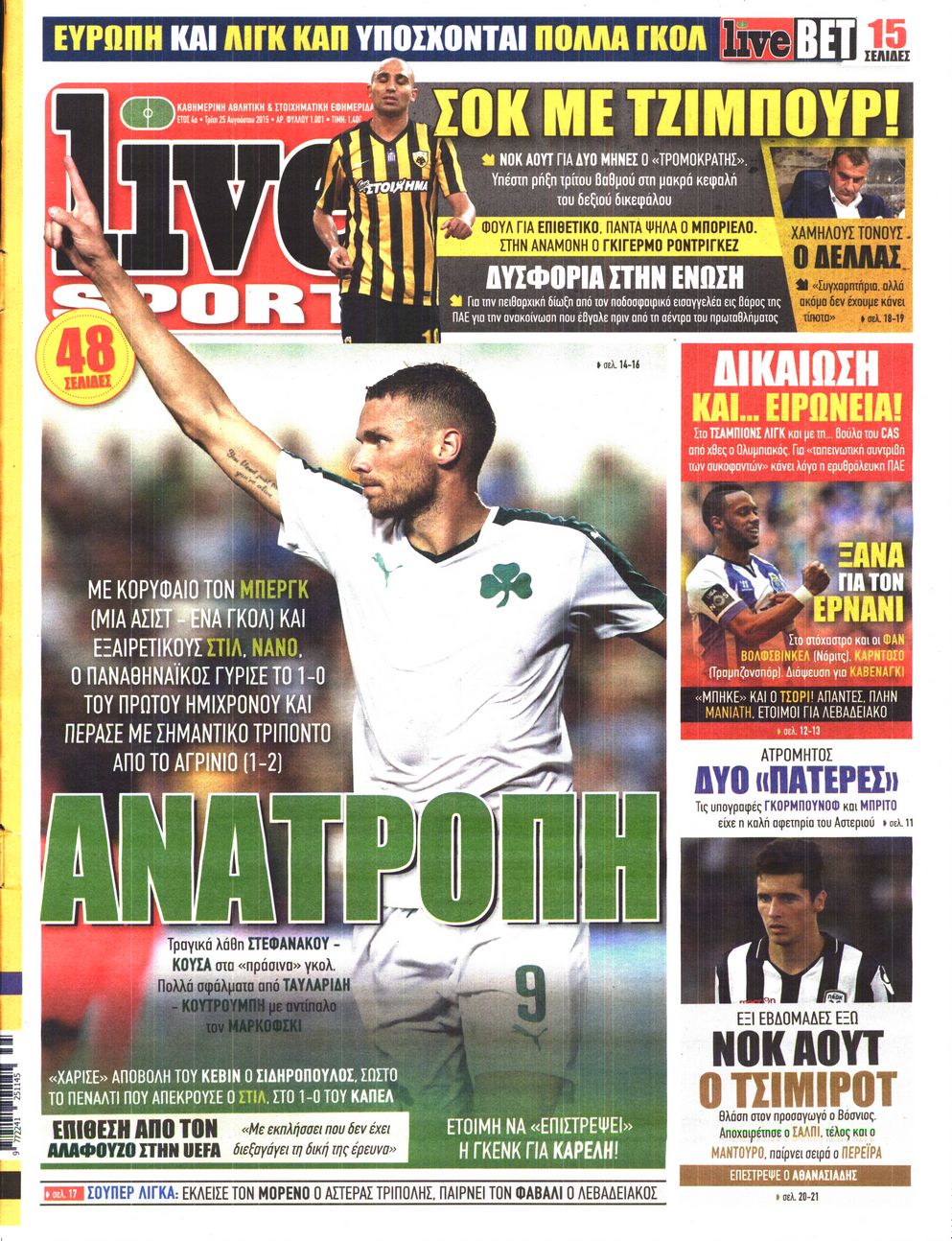 Οι αθλητικές εφημερίδες 25/8/2015 Enikos Newsroom 07:08, Τρίτη 25 Αυγούστου 2015 Media Διαβάστε τα σημερινά πρωτοσέλιδα των αθλητικών εφημερίδων: ΑΘΛΗΤΙΚΕΣ ΕΦΗΜΕΡΙΔΕΣ ΠΡΩΤΟΣΕΛΙΔΑ Μοιράσου το: σχολίασε κι εσύ (0 σχόλια) Ακολουθήστε το enikos.gr στο Google News και μάθετε πρώτοι όλες τις ειδήσεις Δείτε όλες τις τελευταίες ειδήσεις από την Ελλάδα και τον Κόσμο στο enikos.gr Ειδήσεις Ροή Ειδήσεων 4 ώρες πριν Μεσόγειος: Η διαδρομή του ρωσικού τάνκερ «Qendil» και η στοχευμένη επίθεση της Ουκρανίας με drone – Ο Πούτιν προειδοποίησε για αντίποινα 29 λεπτά πριν Αγρότες: Έκλεισαν για μία ώρα την παρακαμπτήρια της Ιόνιας Οδού στη θέση Χαλίκι 2 ώρες πριν Εμπλοκή και αερομαχίες με οπλισμένα τουρκικά F-16 στο Αιγαίο 2 ώρες πριν Πούτιν: «Ναι, είμαι ερωτευμένος» – Βίντεο από τη σπάνια προσωπική παραδοχή του 32 λεπτά πριν Ανδρέας Λυκουρέντζος: Υπέβαλε την παραίτησή του ο πρόεδρος του ΕΛΓΑ, αλλά δεν έγινε δεκτή – Όλο το παρασκήνιο 42 λεπτά πριν Αριθμολογία: Οι άνθρωποι που έχουν γεννηθεί αυτές τις 4 ημερομηνίες, συχνά παρεξηγούνται – «Η καλοσύνη τους κρύβει τεράστια δύναμη» 3 ώρες πριν Μήπως έχετε χάσει τον εαυτό σας στη σχέση σας; 7 «αθόρυβες» υποχωρήσεις που μάλλον κάνατε, χωρίς να το συνειδητοποιήσετε 2 ώρες πριν Ξεχάστε το καθάρισμα το Σαββατοκύριακο: Ο «κανόνας των 20 λεπτών» που θα σας λύσει τα χέρια 5 ώρες πριν Κουίζ για την παλιά Αθήνα: Αναγνωρίζετε την περιοχή; Έχετε περάσει 100% από εκεί 1 λεπτό πριν Τραγωδία στο Βελεστίνο: Πέθανε ο αντιδήμαρχος Γιάννης Παπαϊωάννου 5 λεπτά πριν Ολυμπιακός – Βιλερμπάν: Μάτωσε στο πρόσωπο ο Παπανικολάου έπειτα από αγκωνιά του Βοτιέ – ΦΩΤΟ 13 λεπτά πριν Συνεχίζει να προκαλεί ο Μίτσκοσκι: «Για μένα το όνομα Μακεδονία είναι ιερό» 23 λεπτά πριν Ο Γιάννης Κακλέας σκηνοθετεί Βερόνικα Δαβάκη και Ιβάν Σβιτάιλο στη «Locandiera» 29 λεπτά πριν Αγρότες: Έκλεισαν για μία ώρα την παρακαμπτήρια της Ιόνιας Οδού στη θέση Χαλίκι ENIKOS NETWORK Το ΕΚΑΒ τιμήθηκε από την Ακαδημία Αθηνών για τα 40 χρόνια προσφοράς του Έχετε πραγματικά μεγάλη καρδιά; 10 χαρακτηριστικά όσων έχουν καλοσύνη Έρχονται νέες προσλήψεις σε Δήμο – Όλες οι λεπτομέρειες Επίδομα παιδιού: Πότε ανοίγει ξανά η πλατφόρμα για τις αιτήσεις Χαρτογραφώντας το «σημείο χωρίς επιστροφή»: Για πρώτη φορά αποκαλύπτεται με λεπτομέρεια το ακανθώδες όριο της ατμόσφαιρας τ... Η Google καταργεί τη λειτουργία «dark web report» – Πώς θα μπορούν οι χρήστες να διαγράφουν τα δεδομένα τους περισσότερα 20:37 , Παρασκευή 19 Δεκεμβρίου 2025 Don’t Forget The Lyrics: Η Έλλη Κοκκίνου υποδέχεται 4 παίκτες που θα κάνουν τα πάντα για να μη χάσουν ούτε… μισή λέξη από τους στίχους Το «Don’t Forget The Lyrics» επιστρέφει απόψε, Παρασκευή 19 Δεκεμβρίου, στις 21:00 με νέο επει... 19:31 , Παρασκευή 19 Δεκεμβρίου 2025 GNTM: Απόψε ο μεγάλος τελικός για τους 4 φιναλίστ Έπειτα από μήνες γεμάτους μόδα, δημιουργία και έντονες αναμετρήσεις, το GNTM 2025 κορυφώνεται,... 18:11 , Παρασκευή 19 Δεκεμβρίου 2025 Το σόι σου: Ο Άρης έρχεται στην Ελλάδα για τις γιορτές των Χριστουγέννων – Τι θα δούμε στο αποψινό εορταστικό επεισόδιο Ένα απολαυστικό, εορταστικό επεισόδιο της σειράς “Το σόι σου”, γεμάτο ευτράπελα αλ... 15:15 , Παρασκευή 19 Δεκεμβρίου 2025 Την Κυριακή με τη Realnews: Ό,τι και αν αγοράσεις, σκανάρεις και κερδίζεις! Την Κυριακή με τη Realnews: Ό,τι και αν αγοράσεις, σκανάρεις και κερδίζεις! Με το PADU app, το... ΤΕΛΕΥΤΑΙΕΣ ΕΙΔΗΣΕΙΣ 1 λεπτό πριν Τραγωδία στο Βελεστίνο: Πέθανε ο αντιδήμαρχος Γιάννης... 5 λεπτά πριν Ολυμπιακός – Βιλερμπάν: Μάτωσε στο πρό