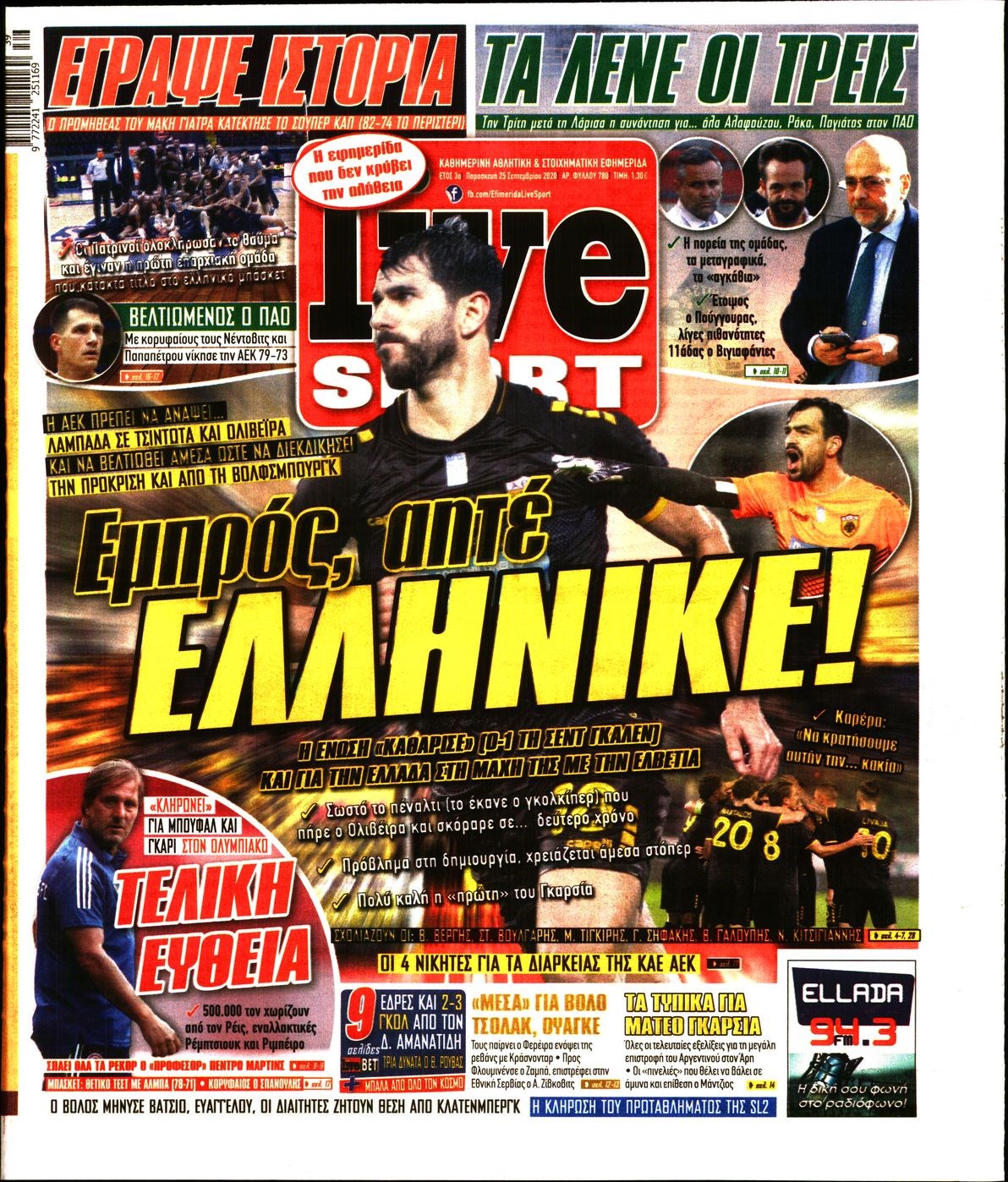Οι αθλητικές εφημερίδες 25/9/2020 Διονύσης Νίκκας 06:53, Παρασκευή 25 Σεπτεμβρίου 2020 Media Διαβάστε τα πρωτοσέλιδα των αθλητικών εφημερίδων… ΑΘΛΗΤΙΚΕΣ ΕΦΗΜΕΡΙΔΕΣ Μοιράσου το: σχολίασε κι εσύ (0 σχόλια) Ακολουθήστε το enikos.gr στο Google News και μάθετε πρώτοι όλες τις ειδήσεις Δείτε όλες τις τελευταίες ειδήσεις από την Ελλάδα και τον Κόσμο στο enikos.gr Ειδήσεις Ροή Ειδήσεων 8 ώρες πριν Χριστούγεννα στα μπλόκα: Επιμένουν στις κινητοποιήσεις τους οι αγρότες – Ανοίγουν τα διόδια το Σαββατοκύριακο 8 ώρες πριν Ουκρανία: Η άνευ προηγουμένου επίθεση σε ρωσικό τάνκερ στη Μεσόγειο και το μήνυμα προς στον Πούτιν – Το «μακρύ χέρι» του Κιέβου 7 ώρες πριν Πούτιν: Τα μηνύματα σε Ευρώπη και ΝΑΤΟ από το μαραθώνιο «σόου» του – Η απαίτηση για «σεβασμό» και η ειρήνη «με τους όρους» της Μόσχας 6 ώρες πριν ΗΠΑ: Η κυβέρνηση του Ντόναλντ Τραμπ άρχισε να δημοσιοποιεί τα αρχεία Έπσταϊν 7 ώρες πριν Άνω Λιόσια: Πυροβολισμοί σε επιχείρηση με χαλιά – Εντοπίστηκαν 10 κάλυκες 19 λεπτά πριν Αυγά: Πόσα μπορείτε να τρώτε την ημέρα με ασφάλεια για μέγιστη πρόσληψη πρωτεΐνης 49 λεπτά πριν Τα ζώδια σήμερα, Σάββατο 20 Δεκεμβρίου: Παρθένοι, το σύμπαν σας δίνει το κλειδί 7 ώρες πριν Ανακαλύφθηκαν αρχαία χρυσά νομίσματα 2.200 ετών που απεικονίζουν τον θεό Απόλλωνα – Η άγνωστη σύνδεση με τον Φίλιππο Β΄ της Μακεδονίας 8 ώρες πριν Ύπνος: Μια κρυφή κατάσταση του εγκεφάλου πριν από τον ύπνο μπορεί να είναι το “κλειδί” για υψηλή ευφυΐα και δημιουργικότητα 3 λεπτά πριν Οπτική ψευδαίσθηση: Μόνο αν είσαι ο Σέρλοκ Χολμς θα βρεις τον αριθμό «87» σε 7 δευτερόλεπτα 10 λεπτά πριν Σαρωτικοί οι έλεγχοι στους δρόμους ενόψει εορτών – Μπλόκα της τροχαίας σε κεντρικές αρτηρίες της Αττικής 19 λεπτά πριν Αυγά: Πόσα μπορείτε να τρώτε την ημέρα με ασφάλεια για μέγιστη πρόσληψη πρωτεΐνης 25 λεπτά πριν Σαν σήμερα 20 Δεκεμβρίου: Τα σημαντικότερα γεγονότα της ημέρας 30 λεπτά πριν Οι οικονομικές εφημερίδες 20/12/2025 ENIKOS NETWORK Το ΕΚΑΒ τιμήθηκε από την Ακαδημία Αθηνών για τα 40 χρόνια προσφοράς του Έχετε πραγματικά μεγάλη καρδιά; 10 χαρακτηριστικά όσων έχουν καλοσύνη Αναστολή μέτρων αναγκαστικής εκτέλεσης για κτηνοτρόφους που πλήττονται από την ευλογιά των αιγοπροβάτων Πλήρης επάρκεια προϊόντων στις λαϊκές της Αττικής, παρά τις αγροτικές κινητοποιήσεις – Τι απαντούν οι πωλητές Χαρτογραφώντας το «σημείο χωρίς επιστροφή»: Για πρώτη φορά αποκαλύπτεται με λεπτομέρεια το ακανθώδες όριο της ατμόσφαιρας τ... Η Google καταργεί τη λειτουργία «dark web report» – Πώς θα μπορούν οι χρήστες να διαγράφουν τα δεδομένα τους περισσότερα 05:48 , Σάββατο 20 Δεκεμβρίου 2025 Οι οικονομικές εφημερίδες 20/12/2025 Διαβάστε τα πρωτοσέλιδα από τις οικονομικές εφημερίδες, σήμερα 20/12/2025. 05:43 , Σάββατο 20 Δεκεμβρίου 2025 Οι αθλητικές εφημερίδες 20/12/2025 Διαβάστε τα πρωτοσέλιδα από τις αθλητικές εφημερίδες, σήμερα 20/12/2025. 05:38 , Σάββατο 20 Δεκεμβρίου 2025 Οι πολιτικές εφημερίδες 20/12/2025 Διαβάστε τα πρωτοσέλιδα από τις πολιτικές εφημερίδες, σήμερα 20/12/2025. 04:20 , Σάββατο 20 Δεκεμβρίου 2025 Αγγελική Νικολούλη: Τα συλλυπητήρια για την απώλεια της Ειρήνης Μαρινάκη Τα συλληπητήρια στον πρόεδρο του Mega, τον Βαγγέλη Μαρινάκη, για την απώλεια της μητέρας του Ε... ΤΕΛΕΥΤΑΙΕΣ ΕΙΔΗΣΕΙΣ 10 λεπτά πριν Σαρωτικοί οι έλεγχοι στους δρόμους ενόψει εορτών –... 19 λεπτά πριν Αυγά: Πόσα μπορείτε να τρώτε την ημέρα με ασφάλεια για... 25 λεπτά πριν Σαν σήμερα 20 Δεκεμβρίου: Τα σημαντικότερα γεγονότα... 30 λεπτά πριν Οι οικονομικές εφημερί