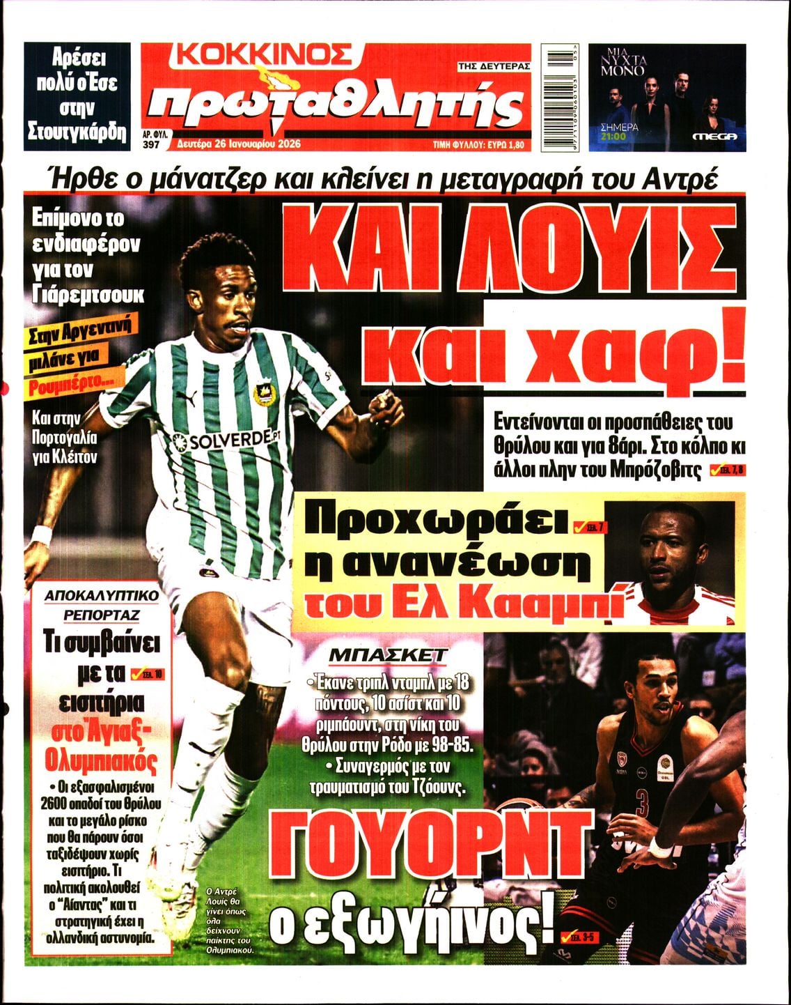 Διαβάστε τα πρωτοσέλιδα από τις αθλητικές εφημερίδες, σήμερα 26/1/2026.