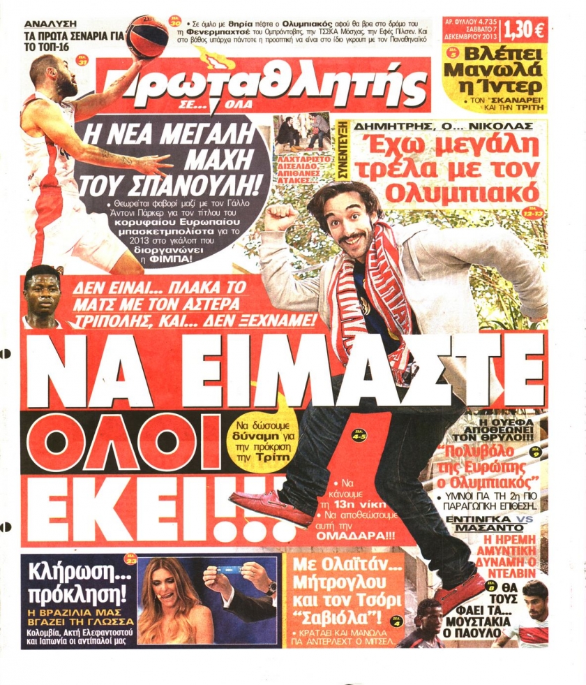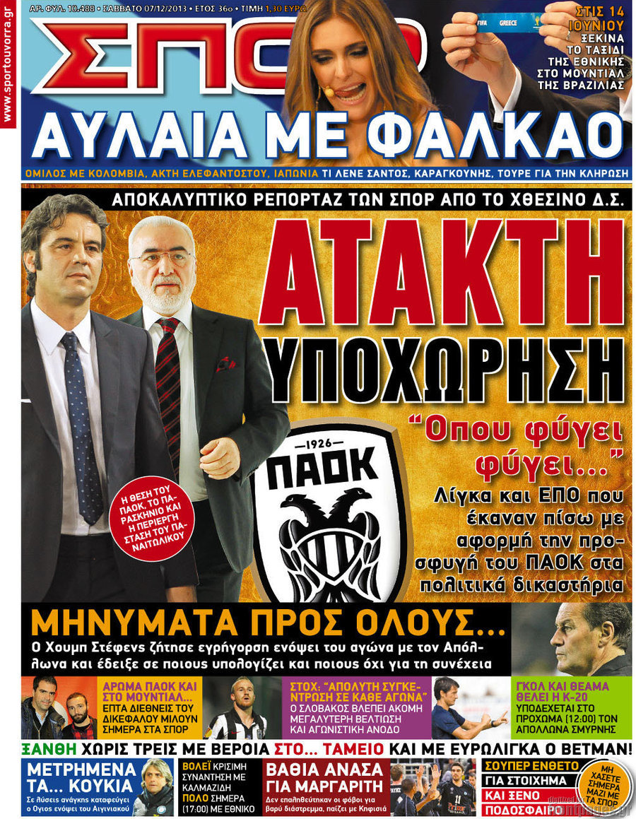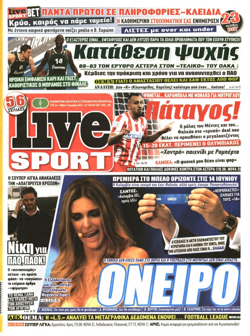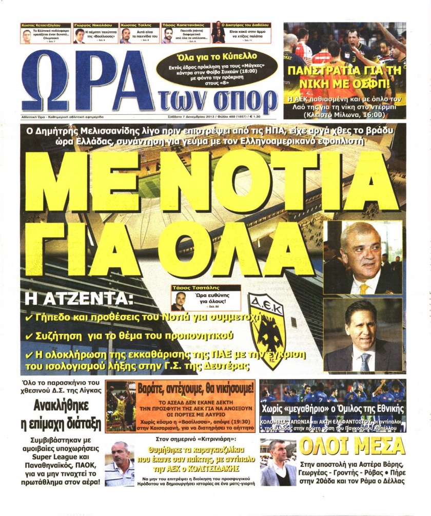 Οι αθλητικές εφημερίδες Enikos Newsroom 09:15, Σάββατο 07 Δεκεμβρίου 2013 Media Οι αθλητικές εφημερίδες Διαβάστε τα πρωτοσέλιδα των αθλητικών εφημερίδων: ΑΘΛΗΤΙΚΕΣ ΕΦΗΜΕΡΙΔΕΣ ΕΦΗΜΕΡΙΔΕΣ ΠΡΩΤΟΣΕΛΙΔΑ Μοιράσου το: σχολίασε κι εσύ (0 σχόλια) Ακολουθήστε το enikos.gr στο Google News και μάθετε πρώτοι όλες τις ειδήσεις Δείτε όλες τις τελευταίες ειδήσεις από την Ελλάδα και τον Κόσμο στο enikos.gr Ειδήσεις Ροή Ειδήσεων 1 ώρα πριν ΣΥΡΙΖΑ: Διαγράφεται ο ευρωβουλευτής Νίκος Παππάς μετά την μήνυση δημοσιογράφου για ξυλοδαρμό 21 λεπτά πριν Τουρκία: Επιδιώκει την επιστροφή των S-400 στη Ρωσία – Οι αμερικανικές πιέσεις 32 λεπτά πριν ΟΠΕΚΕΠΕ: Ελεύθερες με όρους η σύζυγος και η αδελφή του φερόμενου αρχηγού – Τι υποστήριξαν 2 ώρες πριν Πώς στήθηκε η επιχείρηση «Ίπαλλος» που οδήγησε στη σύλληψη του «Έλληνα Εσκομπάρ» – «Ο πόλεμος ενάντια στους εμπόρους ναρκωτικών θα συνεχιστεί» 3 ώρες πριν Κυψέλη: Στη φυλακή η 16χρονη που μαχαίρωσε συμμαθήτριά της 3 ώρες πριν Τα 3 ζώδια που θα δουν τη ζωή τους να αλλάζει ριζικά το 2026 – «Όλα γίνονται καλύτερα σταδιακά» 8 ώρες πριν «Δεν είχα κλάψει από τότε που διαγνώστηκα με καρκίνο, ώσπου ένα τηλεφώνημα με έκανε να λυγίσω» – Η συγκλονιστική εξομολόγηση ενός άνδρα 4 ώρες πριν Ο σπάνιος σεισμός που έλυσε τα χέρια των επιστημόνων – Αποκάλυψε ακριβώς όσα αναζητούσαν 9 ώρες πριν 20 χρόνια τα Χριστούγεννα ξεκινούν στα Public με μεγάλη ποικιλία σε δώρα! 2 λεπτά πριν Κρήτη: Ο 54χρονος ζήτησε 5.000 ευρώ από την οικογένεια του 33χρονου γιατρού για να τον εντοπίσει μέσω «κβαντικής τεχνολογίας» 7 λεπτά πριν Διπλωματικές πηγές: Το πρώτο τρίμηνο του 2026 το Ανώτατο Συμβούλιο Συνεργασίας Ελλάδας-Τουρκίας 11 λεπτά πριν ΟΠΕΚΕΠΕ – ΕΛΓΑ: Ολοκληρώθηκαν πληρωμές 487,9 εκατ. ευρώ – Θα καταβληθούν ακόμα 600 εκατ. έως τις 31 Δεκεμβρίου 16 λεπτά πριν Γκίλφοϊλ για την επιχείρηση «Ίπαλλος»: Μια σημαντική νίκη στον συνεχιζόμενο αγώνα κατά του εμπορίου ναρκωτικών – Βαθιά ευγνώμων ο Τραμπ 21 λεπτά πριν Τουρκία: Επιδιώκει την επιστροφή των S-400 στη Ρωσία – Οι αμερικανικές πιέσεις ENIKOS NETWORK Γιατί αναζητούμε τα Χριστούγεννα όλο και νωρίτερα; Ποιοι οι ψυχολογικοί και οι συναισθηματικοί λόγοι Σοβαροί κίνδυνοι από τη λάθος χορήγηση φαρμάκου για τις αιμορραγίες-Συστάσεις προς τους γιατρούς Έρχεται νέα ενίσχυση 17.500 ευρώ από τη ΔΥΠΑ για ανέργους- Όλες οι λεπτομέρειες «Αναταράξεις» στην εφοδιαστική αλυσίδα από τα μπλόκα: Επιστολή του Συνδέσμου Θεσσαλικών Βιομηχανιών στον πρωθυπουργό -Τι αν... Χαρτογραφώντας το «σημείο χωρίς επιστροφή»: Για πρώτη φορά αποκαλύπτεται με λεπτομέρεια το ακανθώδες όριο της ατμόσφαιρας τ... Η Google καταργεί τη λειτουργία «dark web report» – Πώς θα μπορούν οι χρήστες να διαγράφουν τα δεδομένα τους περισσότερα 12:35 , Τετάρτη 17 Δεκεμβρίου 2025 Μίρκα Παπακωνσταντίνου: «Δεν ήμουν αισιόδοξη για τα νούμερα – Είμαι ρεαλίστρια» Στα γυρίσματα του εορταστικού επεισοδίου της αγαπημένης σειράς “Το Σόι Σου”, βρέθηκε η κάμερα ... 12:12 , Τετάρτη 17 Δεκεμβρίου 2025 Ακούστε την εκπομπή του Νίκου Χατζηνικολάου 17/12/2025 Ακούστε την εκπομπή του Νίκου Χατζηνικολάου στον ραδιοφωνικό σταθμό RealFm 97,8, την Τετάρτη 1... 11:35 , Τετάρτη 17 Δεκεμβρίου 2025 Home Alone: Το σπίτι της ταινίας θα ανακαινιστεί – Επιστροφή στην αισθητική της δεκαετίας του ’90 Οι νέοι ιδιοκτήτες του πραγματικού σπιτιού που παρουσιάζεται στην κλασική ταινία του 1990 «Hom... 11:25 , Τετάρτη 17 Δεκεμβρίου 2025 Grand Hotel: Απόψε το τελευταίο επεισόδιο της χρονιάς – Όλα τα μυστικά 
