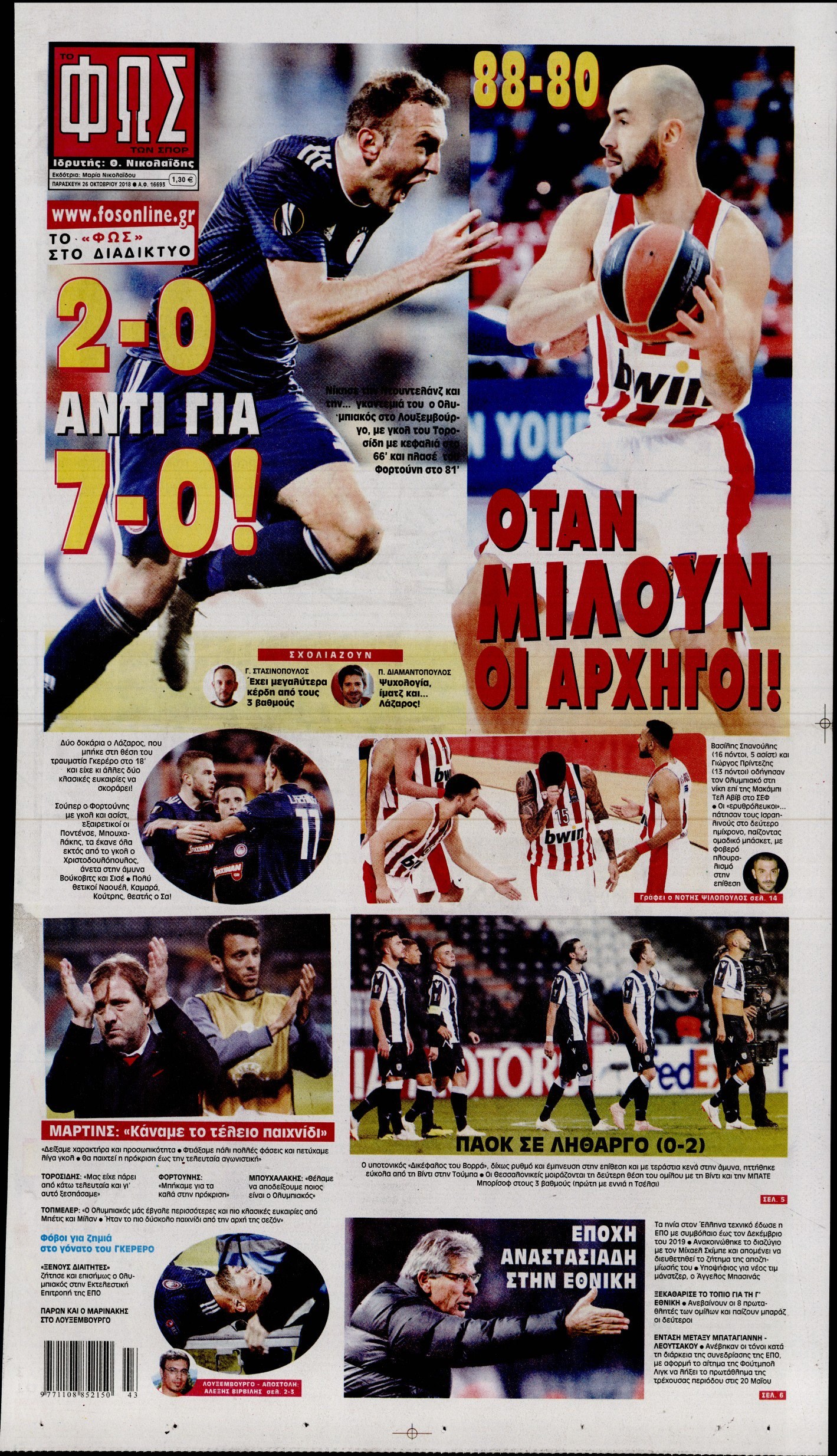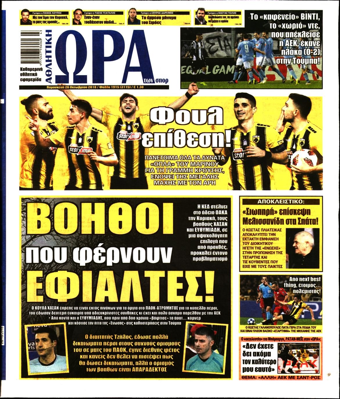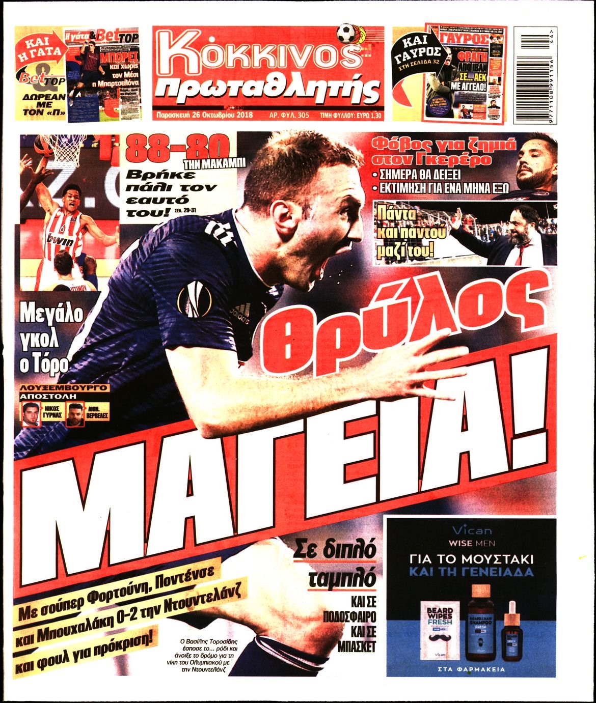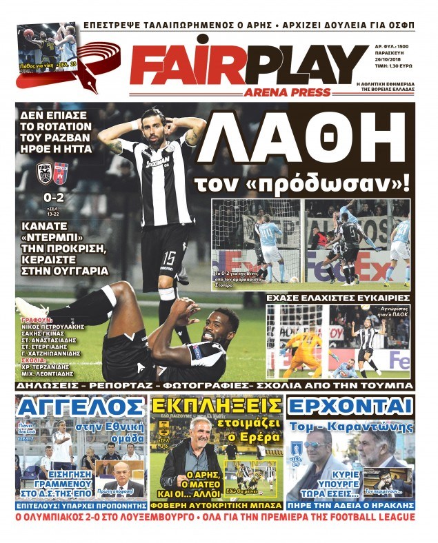 Οι αθλητικές εφημερίδες 26/10/18 Enikos Newsroom 06:38, Παρασκευή 26 Οκτωβρίου 2018 Media Διαβάστε τα πρωτοσέλιδα: ΑΘΛΗΤΙΚΕΣ ΕΦΗΜΕΡΙΔΕΣ ΠΡΩΤΟΣΕΛΙΔΑ Μοιράσου το: σχολίασε κι εσύ (0 σχόλια) Ακολουθήστε το enikos.gr στο Google News και μάθετε πρώτοι όλες τις ειδήσεις Δείτε όλες τις τελευταίες ειδήσεις από την Ελλάδα και τον Κόσμο στο enikos.gr Ειδήσεις Ροή Ειδήσεων 4 ώρες πριν Από το Ορμένιο ως τα Μάλγαρα κι από τη Σιάτιστα μέχρι τη Νίκαια: Μπλόκα σε όλη την Ελλάδα – Το Σάββατο ανοίγουν τα διόδια οι αγρότες 1 ώρα πριν Εμπλοκή και αερομαχίες με οπλισμένα τουρκικά F-16 στο Αιγαίο 3 ώρες πριν Αττική: Θρίλερ με νεκρό βρέφος 5 μηνών – Κοιμόταν στο ίδιο κρεβάτι με τους γονείς του 58 λεπτά πριν Πούτιν: «Ναι, είμαι ερωτευμένος» – Βίντεο από τη σπάνια προσωπική παραδοχή του 3 ώρες πριν Μεσόγειος: Η διαδρομή του ρωσικού τάνκερ «Qendil» και η στοχευμένη επίθεση της Ουκρανίας με drone – Ο Πούτιν προειδοποίησε για αντίποινα 5 ώρες πριν Τα 5 ζώδια που ευνοούνται στην ερωτική ζωή τους την επόμενη εβδομάδα – «Η ενέργεια του Αιγόκερου φέρνει αγάπη και σταθερότητα» 6 ώρες πριν Αυτό το έξυπνο μαθηματικό κόλπο θα μπορούσε να αλλάξει τον τρόπο με τον οποίο οι επιστήμονες μελετούν τους σεισμούς 2 ώρες πριν Μήπως έχετε χάσει τον εαυτό σας στη σχέση σας; 7 «αθόρυβες» υποχωρήσεις που μάλλον κάνατε, χωρίς να το συνειδητοποιήσετε 4 ώρες πριν Κουίζ για την παλιά Αθήνα: Αναγνωρίζετε την περιοχή; Έχετε περάσει 100% από εκεί 5 λεπτά πριν Μπαράκ Ομπάμα: Τα βιβλία, οι ταινίες και τα τραγούδια που ξεχώρισε το 2025 – Πλήρης λίστα 9 λεπτά πριν Don’t Forget The Lyrics: Η Έλλη Κοκκίνου υποδέχεται 4 παίκτες που θα κάνουν τα πάντα για να μη χάσουν ούτε… μισή λέξη από τους στίχους 15 λεπτά πριν Πλεύρης στον ΑΝΤ1: Η βασική πολιτική που ψηφίστηκε από τους υπουργούς Μετανάστευσης είναι η δημιουργία κέντρων κράτησης μεταναστών στην Αφρική – ΒΙΝΤΕΟ 20 λεπτά πριν Η εξομολόγηση της Νίκης Σερέτη: «Δεν κρύβω ότι ήταν πάρα πολύ δύσκολο όλο αυτό που βίωσα» 25 λεπτά πριν Αγρότες: Κλειστό ξανά το ρεύμα εισόδου στα Μάλγαρα – Άνοιξαν τον κόμβο της Χαλκηδόνας ENIKOS NETWORK Έχετε πραγματικά μεγάλη καρδιά; 10 χαρακτηριστικά όσων έχουν καλοσύνη «Η σούπερ» γρίπη εξαπλώνεται στην Ευρώπη-Στοιχεία από το ECDC για την αποτελεσματικότητα του εμβολίου Επίδομα παιδιού: Πότε ανοίγει ξανά η πλατφόρμα για τις αιτήσεις Προκήρυξη ΑΣΕΠ για 397 μόνιμες προσλήψεις στο Δημόσιο: Βγήκαν τα προσωρινά αποτελέσματα – Πότε αρχίζει η υποβολή ενστάσεων Χαρτογραφώντας το «σημείο χωρίς επιστροφή»: Για πρώτη φορά αποκαλύπτεται με λεπτομέρεια το ακανθώδες όριο της ατμόσφαιρας τ... Η Google καταργεί τη λειτουργία «dark web report» – Πώς θα μπορούν οι χρήστες να διαγράφουν τα δεδομένα τους περισσότερα 20:37 , Παρασκευή 19 Δεκεμβρίου 2025 Don’t Forget The Lyrics: Η Έλλη Κοκκίνου υποδέχεται 4 παίκτες που θα κάνουν τα πάντα για να μη χάσουν ούτε… μισή λέξη από τους στίχους Το «Don’t Forget The Lyrics» επιστρέφει απόψε, Παρασκευή 19 Δεκεμβρίου, στις 21:00 με νέο επει... 19:31 , Παρασκευή 19 Δεκεμβρίου 2025 GNTM: Απόψε ο μεγάλος τελικός για τους 4 φιναλίστ Έπειτα από μήνες γεμάτους μόδα, δημιουργία και έντονες αναμετρήσεις, το GNTM 2025 κορυφώνεται,... 18:11 , Παρασκευή 19 Δεκεμβρίου 2025 Το σόι σου: Ο Άρης έρχεται στην Ελλάδα για τις γιορτές των Χριστουγέννων – Τι θα δούμε στο αποψινό εορταστικό επεισόδιο Ένα απολαυστικό, εορταστικό επεισόδιο της σειράς “Το σόι σου”, γεμάτο ευτράπελα αλ... 15:15 , Παρασκευή 19 Δεκεμβρίου 2025 Την Κυριακή με τη Realnews: Ό,τι και αν αγοράσε