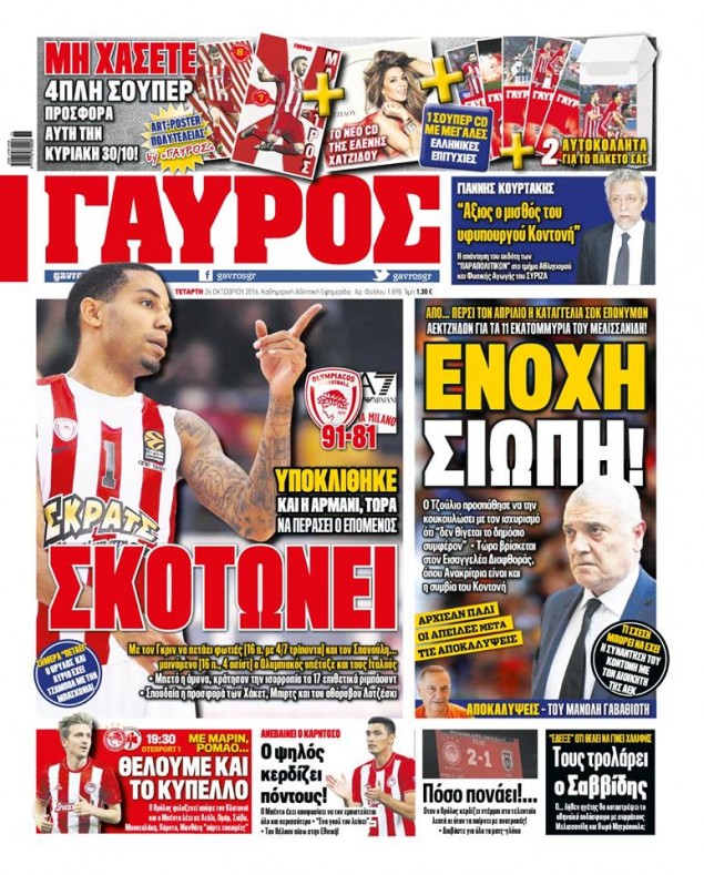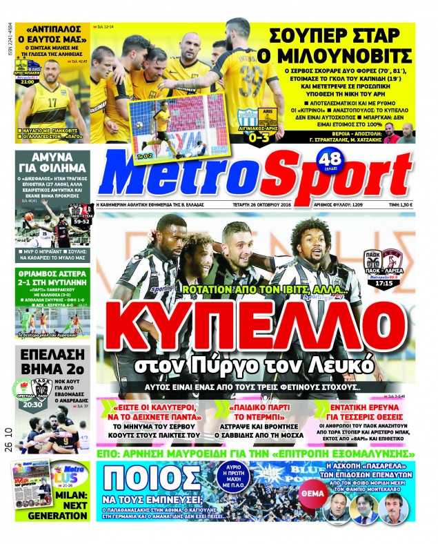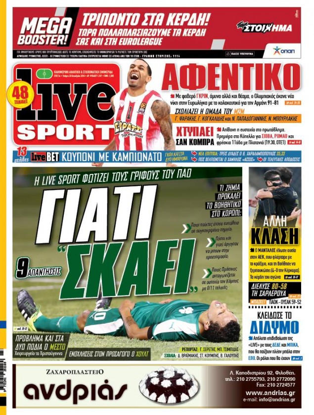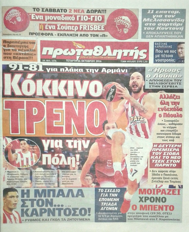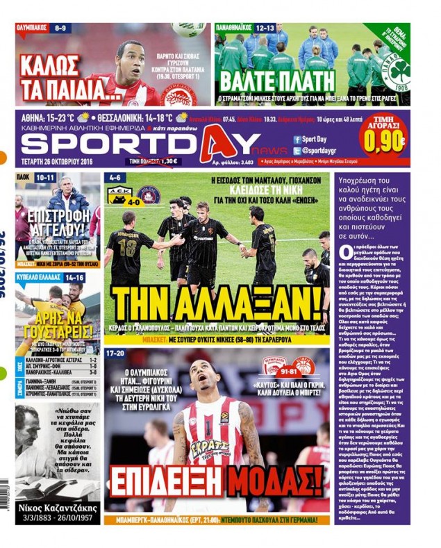 Οι αθλητικές εφημερίδες 26/10/2016 Κώστας Τεό 03:22, Τετάρτη 26 Οκτωβρίου 2016 Media Διαβάστε τα σημερινά πρωτοσέλιδα των αθλητικών εφημερίδων: ΑΘΛΗΤΙΚΕΣ ΕΦΗΜΕΡΙΔΕΣ ΠΡΩΤΟΣΕΛΙΔΑ Μοιράσου το: σχολίασε κι εσύ (0 σχόλια) Ακολουθήστε το enikos.gr στο Google News και μάθετε πρώτοι όλες τις ειδήσεις Δείτε όλες τις τελευταίες ειδήσεις από την Ελλάδα και τον Κόσμο στο enikos.gr Ειδήσεις Ροή Ειδήσεων 1 ώρα πριν ΣΥΡΙΖΑ: Διαγράφεται ο ευρωβουλευτής Νίκος Παππάς μετά την μήνυση δημοσιογράφου για ξυλοδαρμό 18 λεπτά πριν Τουρκία: Επιδιώκει την επιστροφή των S-400 στη Ρωσία – Οι αμερικανικές πιέσεις 29 λεπτά πριν ΟΠΕΚΕΠΕ: Ελεύθερες με όρους η σύζυγος και η αδελφή του φερόμενου αρχηγού – Τι υποστήριξαν 2 ώρες πριν Πώς στήθηκε η επιχείρηση «Ίπαλλος» που οδήγησε στη σύλληψη του «Έλληνα Εσκομπάρ» – «Ο πόλεμος ενάντια στους εμπόρους ναρκωτικών θα συνεχιστεί» 3 ώρες πριν Κυψέλη: Στη φυλακή η 16χρονη που μαχαίρωσε συμμαθήτριά της 3 ώρες πριν Τα 3 ζώδια που θα δουν τη ζωή τους να αλλάζει ριζικά το 2026 – «Όλα γίνονται καλύτερα σταδιακά» 8 ώρες πριν «Δεν είχα κλάψει από τότε που διαγνώστηκα με καρκίνο, ώσπου ένα τηλεφώνημα με έκανε να λυγίσω» – Η συγκλονιστική εξομολόγηση ενός άνδρα 4 ώρες πριν Ο σπάνιος σεισμός που έλυσε τα χέρια των επιστημόνων – Αποκάλυψε ακριβώς όσα αναζητούσαν 9 ώρες πριν 20 χρόνια τα Χριστούγεννα ξεκινούν στα Public με μεγάλη ποικιλία σε δώρα! 3 λεπτά πριν Διπλωματικές πηγές: Το πρώτο τρίμηνο του 2026 το Ανώτατο Συμβούλιο Συνεργασίας Ελλάδας-Τουρκίας 8 λεπτά πριν ΟΠΕΚΕΠΕ – ΕΛΓΑ: Ολοκληρώθηκαν πληρωμές 487,9 εκατ. ευρώ – Θα καταβληθούν ακόμα 600 εκατ. έως τις 31 Δεκεμβρίου 13 λεπτά πριν Γκίλφοϊλ για την επιχείρηση «Ίπαλλος»: Μια σημαντική νίκη στον συνεχιζόμενο αγώνα κατά του εμπορίου ναρκωτικών – Βαθιά ευγνώμων ο Τραμπ 18 λεπτά πριν Τουρκία: Επιδιώκει την επιστροφή των S-400 στη Ρωσία – Οι αμερικανικές πιέσεις 23 λεπτά πριν Στις Βρυξέλλες ο Κυριάκος Μητσοτάκης για τη Σύνοδο Κορυφής ΕΕ-Δυτικών Βαλκανίων και τη συνεδρίαση του Ευρωπαϊκού Συμβουλίου ENIKOS NETWORK Γιατί αναζητούμε τα Χριστούγεννα όλο και νωρίτερα; Ποιοι οι ψυχολογικοί και οι συναισθηματικοί λόγοι Σοβαροί κίνδυνοι από τη λάθος χορήγηση φαρμάκου για τις αιμορραγίες-Συστάσεις προς τους γιατρούς Έρχεται νέα ενίσχυση 17.500 ευρώ από τη ΔΥΠΑ για ανέργους- Όλες οι λεπτομέρειες «Αναταράξεις» στην εφοδιαστική αλυσίδα από τα μπλόκα: Επιστολή του Συνδέσμου Θεσσαλικών Βιομηχανιών στον πρωθυπουργό -Τι αν... Χαρτογραφώντας το «σημείο χωρίς επιστροφή»: Για πρώτη φορά αποκαλύπτεται με λεπτομέρεια το ακανθώδες όριο της ατμόσφαιρας τ... Η Google καταργεί τη λειτουργία «dark web report» – Πώς θα μπορούν οι χρήστες να διαγράφουν τα δεδομένα τους περισσότερα 12:35 , Τετάρτη 17 Δεκεμβρίου 2025 Μίρκα Παπακωνσταντίνου: «Δεν ήμουν αισιόδοξη για τα νούμερα – Είμαι ρεαλίστρια» Στα γυρίσματα του εορταστικού επεισοδίου της αγαπημένης σειράς “Το Σόι Σου”, βρέθηκε η κάμερα ... 12:12 , Τετάρτη 17 Δεκεμβρίου 2025 Ακούστε την εκπομπή του Νίκου Χατζηνικολάου 17/12/2025 Ακούστε την εκπομπή του Νίκου Χατζηνικολάου στον ραδιοφωνικό σταθμό RealFm 97,8, την Τετάρτη 1... 11:35 , Τετάρτη 17 Δεκεμβρίου 2025 Home Alone: Το σπίτι της ταινίας θα ανακαινιστεί – Επιστροφή στην αισθητική της δεκαετίας του ’90 Οι νέοι ιδιοκτήτες του πραγματικού σπιτιού που παρουσιάζεται στην κλασική ταινία του 1990 «Hom... 11:25 , Τετάρτη 17 Δεκεμβρίου 2025 Grand Hotel: Απόψε το τελευταίο επεισόδιο της χρονιάς – Όλα τα μυστικά μένουν εδώ Το τε