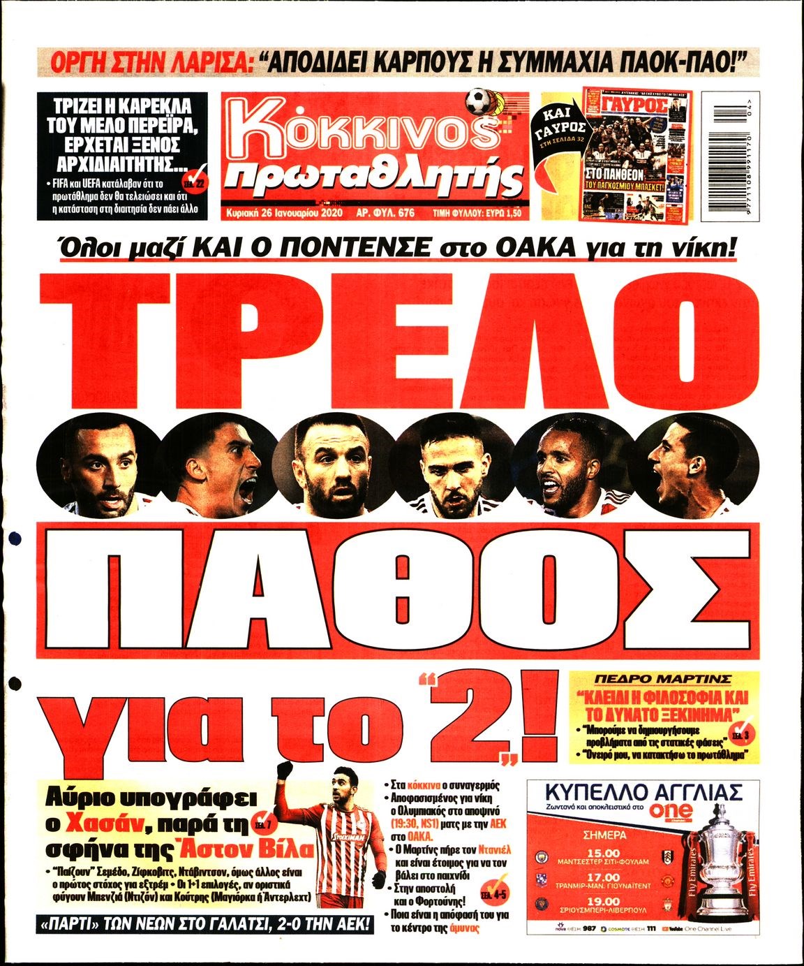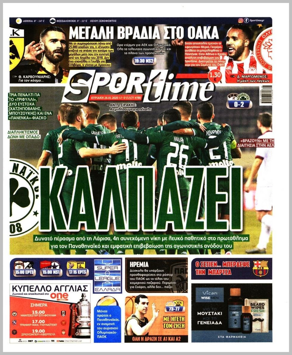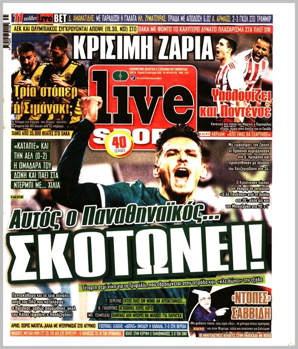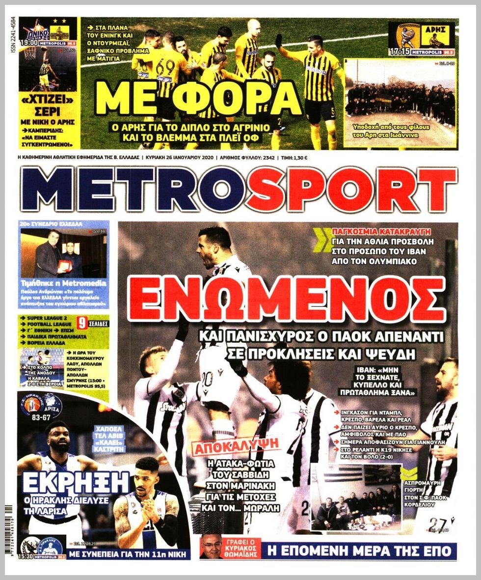 Οι αθλητικές εφημερίδες 26/1/20 Διονύσης Νίκκας 08:04, Κυριακή 26 Ιανουαρίου 2020 Media Διαβάστε τα πρωτοσέλιδα των αθλητικών εφημερίδων… ΑΘΛΗΤΙΚΕΣ ΕΦΗΜΕΡΙΔΕΣ Μοιράσου το: σχολίασε κι εσύ (0 σχόλια) Ακολουθήστε το enikos.gr στο Google News και μάθετε πρώτοι όλες τις ειδήσεις Δείτε όλες τις τελευταίες ειδήσεις από την Ελλάδα και τον Κόσμο στο enikos.gr Ειδήσεις Ροή Ειδήσεων 3 ώρες πριν Χριστούγεννα στα μπλόκα: Επιμένουν στις κινητοποιήσεις τους οι αγρότες – Ανοίγουν τα διόδια το Σαββατοκύριακο 3 ώρες πριν Ουκρανία: Η άνευ προηγουμένου επίθεση σε ρωσικό τάνκερ στη Μεσόγειο και το μήνυμα προς στον Πούτιν – Το «μακρύ χέρι» του Κιέβου 3 ώρες πριν Πούτιν: Τα μηνύματα σε Ευρώπη και ΝΑΤΟ από το μαραθώνιο «σόου» του – Η απαίτηση για «σεβασμό» και η ειρήνη «με τους όρους» της Μόσχας 3 ώρες πριν Τραμπ: Δεν αποκλείει την πιθανότητα ενός πολέμου στη Βενεζουέλα – «Ο Μαδούρο ξέρει καλύτερα από τον καθένα τι ακριβώς θέλω» 4 ώρες πριν Συνεχίζει να προκαλεί ο Μίτσκοσκι: «Για μένα το όνομα Μακεδονία είναι ιερό» 3 ώρες πριν Ανακαλύφθηκαν αρχαία χρυσά νομίσματα 2.200 ετών που απεικονίζουν τον θεό Απόλλωνα – Η άγνωστη σύνδεση με τον Φίλιππο Β΄ της Μακεδονίας 4 ώρες πριν Ύπνος: Μια κρυφή κατάσταση του εγκεφάλου πριν από τον ύπνο μπορεί να είναι το “κλειδί” για υψηλή ευφυΐα και δημιουργικότητα 5 ώρες πριν Αριθμολογία: Οι άνθρωποι που έχουν γεννηθεί αυτές τις 4 ημερομηνίες, συχνά παρεξηγούνται – «Η καλοσύνη τους κρύβει τεράστια δύναμη» 6 ώρες πριν Ξεχάστε το καθάρισμα το Σαββατοκύριακο: Ο «κανόνας των 20 λεπτών» που θα σας λύσει τα χέρια 12 λεπτά πριν Euroleague: Επέστρεψε στις νίκες ο Ολυμπιακός, πήρε την ματσάρα της χρονιάς η Μπάρτσα – Τα αποτελέσματα και η βαθμολογία 27 λεπτά πριν Συρία: Μαζικά πλήγματα των ΗΠΑ σε θέσεις του Ισλαμικού Κράτους – Χέγκσεθ: «Δεν είναι αρχή πολέμου, είναι μια δήλωση εκδίκησης» για το θάνατο των στρατιωτών μας 40 λεπτά πριν Ουκρανία: Ολοκληρώθηκαν οι συνομιλίες με τους Αμερικανούς κι Ευρωπαίους διαπραγματευτές 55 λεπτά πριν Μπαρτσελόνα – Μπασκόνια 134-124: Οι «μπλαουγκράνα» πήραν το ματς της χρονιάς ύστερα από τρεις παρατάσεις 1 ώρα πριν Φαίη Σκορδά: «Παλιότερα τα κομπλιμέντα τα προσπερνούσα, τώρα τα έχω ανάγκη» ENIKOS NETWORK Το ΕΚΑΒ τιμήθηκε από την Ακαδημία Αθηνών για τα 40 χρόνια προσφοράς του Έχετε πραγματικά μεγάλη καρδιά; 10 χαρακτηριστικά όσων έχουν καλοσύνη Αναστολή μέτρων αναγκαστικής εκτέλεσης για κτηνοτρόφους που πλήττονται από την ευλογιά των αιγοπροβάτων Πλήρης επάρκεια προϊόντων στις λαϊκές της Αττικής, παρά τις αγροτικές κινητοποιήσεις – Τι απαντούν οι πωλητές Χαρτογραφώντας το «σημείο χωρίς επιστροφή»: Για πρώτη φορά αποκαλύπτεται με λεπτομέρεια το ακανθώδες όριο της ατμόσφαιρας τ... Η Google καταργεί τη λειτουργία «dark web report» – Πώς θα μπορούν οι χρήστες να διαγράφουν τα δεδομένα τους περισσότερα 22:42 , Παρασκευή 19 Δεκεμβρίου 2025 Γιώργος Γιαννόπουλος για “Το σόι σου”: “Είναι ευτυχία και ευλογία αυτή η σειρά” «Είναι ευτυχία και ευλογία η συγκυρία αυτής της σειράς», θα πει ο Γιώργος Γιαννόπουλος -ο αγαπ... 20:37 , Παρασκευή 19 Δεκεμβρίου 2025 Don’t Forget The Lyrics: Η Έλλη Κοκκίνου υποδέχεται 4 παίκτες που θα κάνουν τα πάντα για να μη χάσουν ούτε… μισή λέξη από τους στίχους Το «Don’t Forget The Lyrics» επιστρέφει απόψε, Παρασκευή 19 Δεκεμβρίου, στις 21:00 με νέο επει... 19:31 , Παρασκευή 19 Δεκεμβρίου 2025 GNTM: Απόψε ο μεγάλος τελικός για τους 4 φιναλίστ Έπειτα από μήνες γεμάτους μόδα, δημιουργία