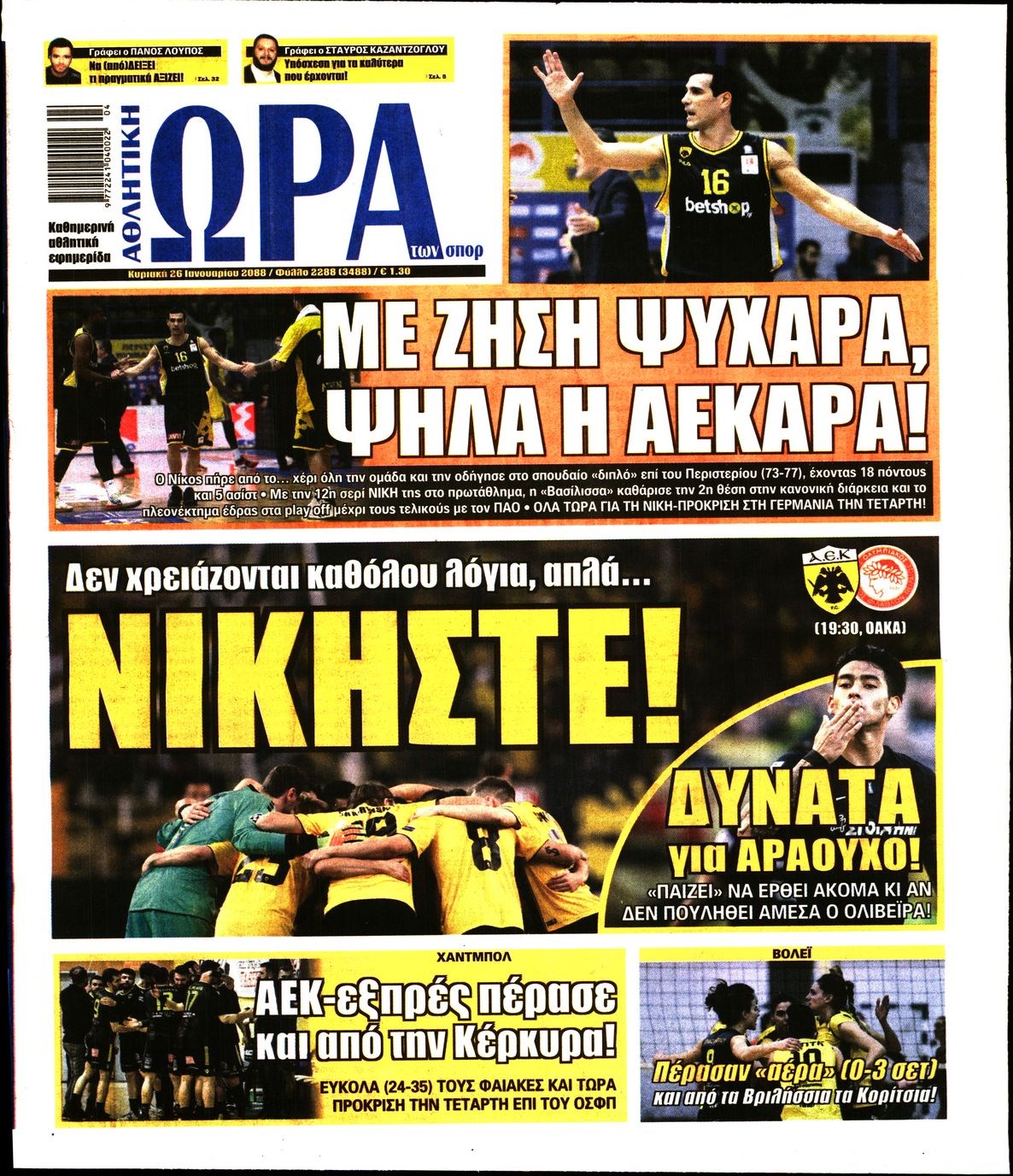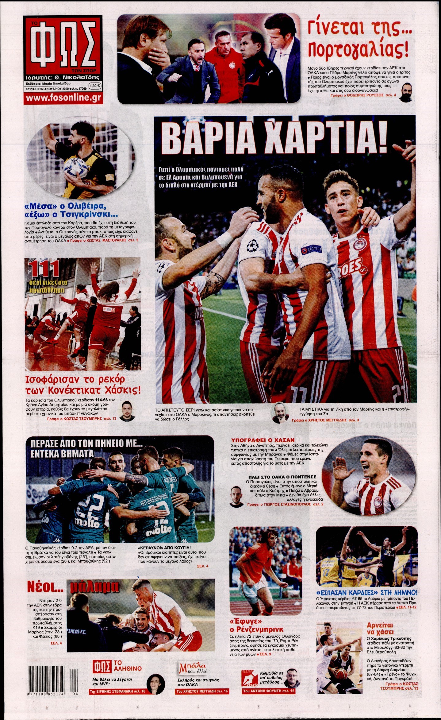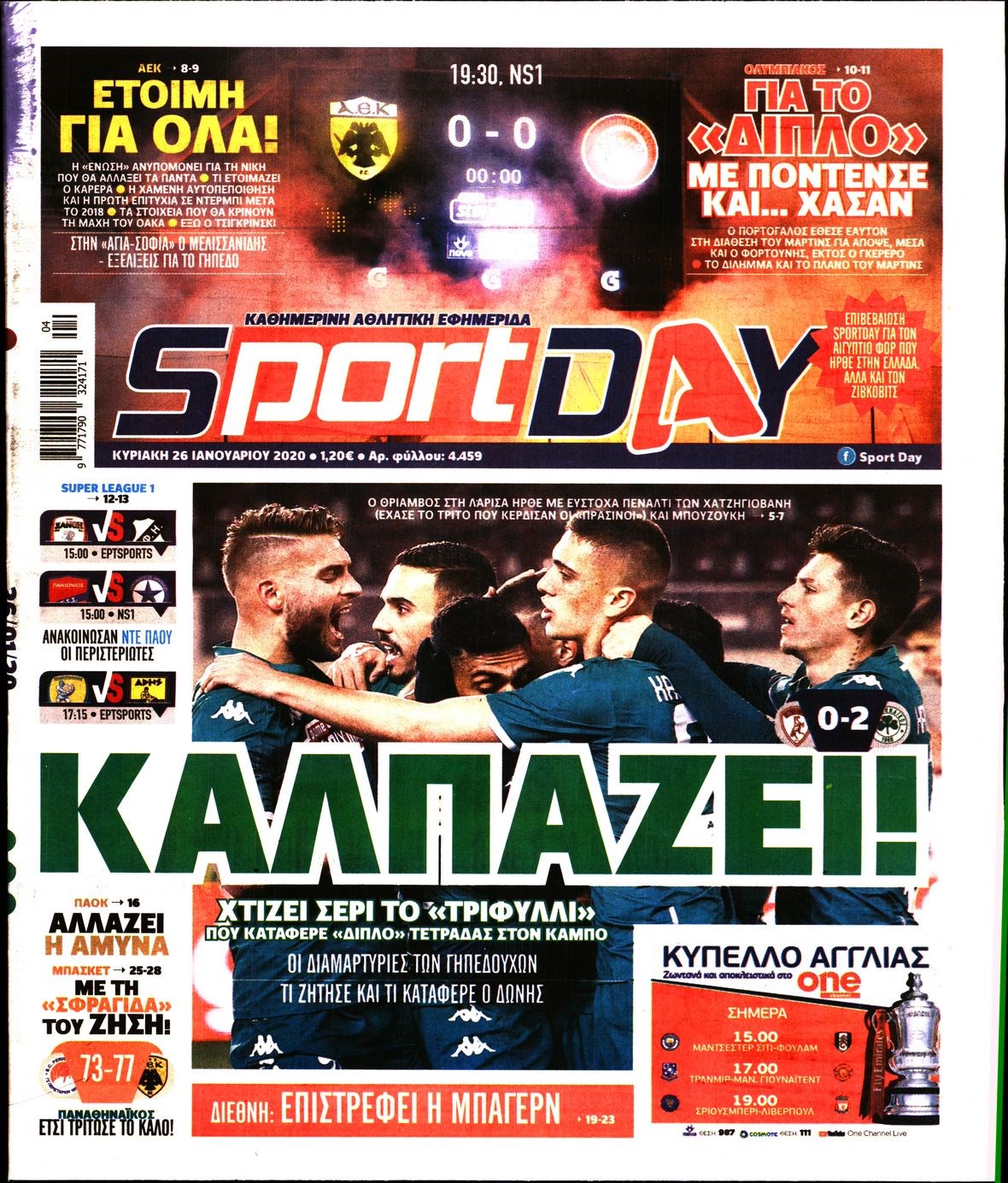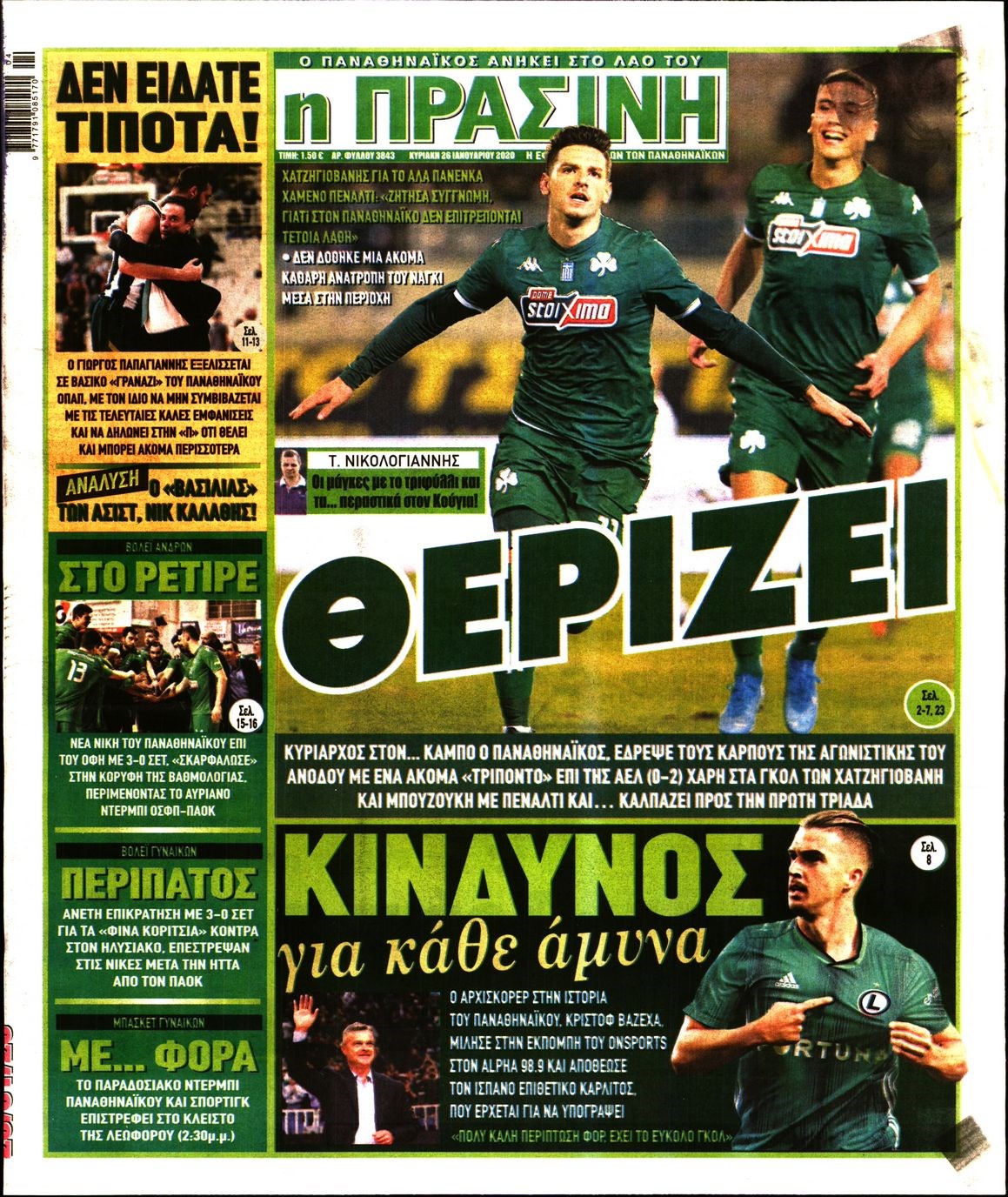 Οι αθλητικές εφημερίδες 26/1/20 Διονύσης Νίκκας 08:04, Κυριακή 26 Ιανουαρίου 2020 Media Διαβάστε τα πρωτοσέλιδα των αθλητικών εφημερίδων… ΑΘΛΗΤΙΚΕΣ ΕΦΗΜΕΡΙΔΕΣ Μοιράσου το: σχολίασε κι εσύ (0 σχόλια) Ακολουθήστε το enikos.gr στο Google News και μάθετε πρώτοι όλες τις ειδήσεις Δείτε όλες τις τελευταίες ειδήσεις από την Ελλάδα και τον Κόσμο στο enikos.gr Ειδήσεις Ροή Ειδήσεων 3 ώρες πριν Χριστούγεννα στα μπλόκα: Επιμένουν στις κινητοποιήσεις τους οι αγρότες – Ανοίγουν τα διόδια το Σαββατοκύριακο 3 ώρες πριν Ουκρανία: Η άνευ προηγουμένου επίθεση σε ρωσικό τάνκερ στη Μεσόγειο και το μήνυμα προς στον Πούτιν – Το «μακρύ χέρι» του Κιέβου 3 ώρες πριν Πούτιν: Τα μηνύματα σε Ευρώπη και ΝΑΤΟ από το μαραθώνιο «σόου» του – Η απαίτηση για «σεβασμό» και η ειρήνη «με τους όρους» της Μόσχας 3 ώρες πριν Τραμπ: Δεν αποκλείει την πιθανότητα ενός πολέμου στη Βενεζουέλα – «Ο Μαδούρο ξέρει καλύτερα από τον καθένα τι ακριβώς θέλω» 4 ώρες πριν Συνεχίζει να προκαλεί ο Μίτσκοσκι: «Για μένα το όνομα Μακεδονία είναι ιερό» 3 ώρες πριν Ανακαλύφθηκαν αρχαία χρυσά νομίσματα 2.200 ετών που απεικονίζουν τον θεό Απόλλωνα – Η άγνωστη σύνδεση με τον Φίλιππο Β΄ της Μακεδονίας 4 ώρες πριν Ύπνος: Μια κρυφή κατάσταση του εγκεφάλου πριν από τον ύπνο μπορεί να είναι το “κλειδί” για υψηλή ευφυΐα και δημιουργικότητα 5 ώρες πριν Αριθμολογία: Οι άνθρωποι που έχουν γεννηθεί αυτές τις 4 ημερομηνίες, συχνά παρεξηγούνται – «Η καλοσύνη τους κρύβει τεράστια δύναμη» 6 ώρες πριν Ξεχάστε το καθάρισμα το Σαββατοκύριακο: Ο «κανόνας των 20 λεπτών» που θα σας λύσει τα χέρια 12 λεπτά πριν Euroleague: Επέστρεψε στις νίκες ο Ολυμπιακός, πήρε την ματσάρα της χρονιάς η Μπάρτσα – Τα αποτελέσματα και η βαθμολογία 27 λεπτά πριν Συρία: Μαζικά πλήγματα των ΗΠΑ σε θέσεις του Ισλαμικού Κράτους – Χέγκσεθ: «Δεν είναι αρχή πολέμου, είναι μια δήλωση εκδίκησης» για το θάνατο των στρατιωτών μας 40 λεπτά πριν Ουκρανία: Ολοκληρώθηκαν οι συνομιλίες με τους Αμερικανούς κι Ευρωπαίους διαπραγματευτές 55 λεπτά πριν Μπαρτσελόνα – Μπασκόνια 134-124: Οι «μπλαουγκράνα» πήραν το ματς της χρονιάς ύστερα από τρεις παρατάσεις 1 ώρα πριν Φαίη Σκορδά: «Παλιότερα τα κομπλιμέντα τα προσπερνούσα, τώρα τα έχω ανάγκη» ENIKOS NETWORK Το ΕΚΑΒ τιμήθηκε από την Ακαδημία Αθηνών για τα 40 χρόνια προσφοράς του Έχετε πραγματικά μεγάλη καρδιά; 10 χαρακτηριστικά όσων έχουν καλοσύνη Αναστολή μέτρων αναγκαστικής εκτέλεσης για κτηνοτρόφους που πλήττονται από την ευλογιά των αιγοπροβάτων Πλήρης επάρκεια προϊόντων στις λαϊκές της Αττικής, παρά τις αγροτικές κινητοποιήσεις – Τι απαντούν οι πωλητές Χαρτογραφώντας το «σημείο χωρίς επιστροφή»: Για πρώτη φορά αποκαλύπτεται με λεπτομέρεια το ακανθώδες όριο της ατμόσφαιρας τ... Η Google καταργεί τη λειτουργία «dark web report» – Πώς θα μπορούν οι χρήστες να διαγράφουν τα δεδομένα τους περισσότερα 22:42 , Παρασκευή 19 Δεκεμβρίου 2025 Γιώργος Γιαννόπουλος για “Το σόι σου”: “Είναι ευτυχία και ευλογία αυτή η σειρά” «Είναι ευτυχία και ευλογία η συγκυρία αυτής της σειράς», θα πει ο Γιώργος Γιαννόπουλος -ο αγαπ... 20:37 , Παρασκευή 19 Δεκεμβρίου 2025 Don’t Forget The Lyrics: Η Έλλη Κοκκίνου υποδέχεται 4 παίκτες που θα κάνουν τα πάντα για να μη χάσουν ούτε… μισή λέξη από τους στίχους Το «Don’t Forget The Lyrics» επιστρέφει απόψε, Παρασκευή 19 Δεκεμβρίου, στις 21:00 με νέο επει... 19:31 , Παρασκευή 19 Δεκεμβρίου 2025 GNTM: Απόψε ο μεγάλος τελικός για τους 4 φιναλίστ Έπειτα από μήνες γεμάτους μόδα, δημιουργία