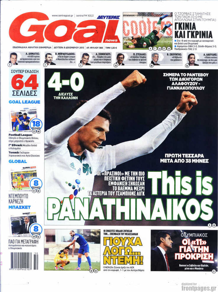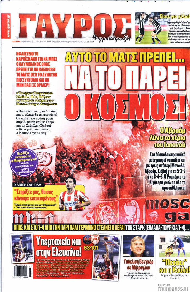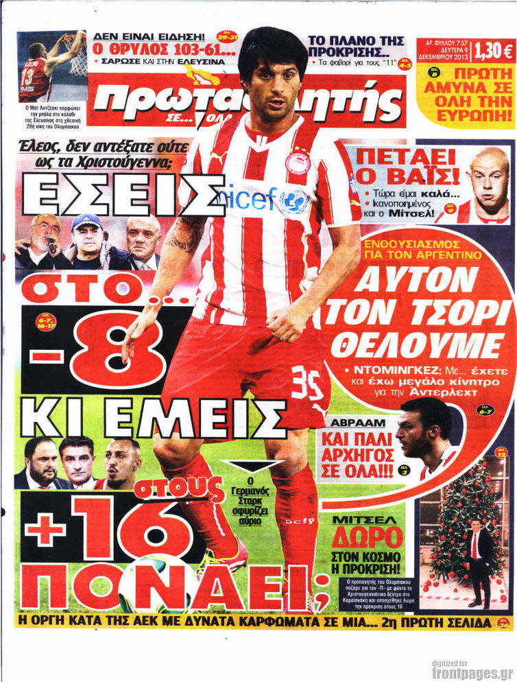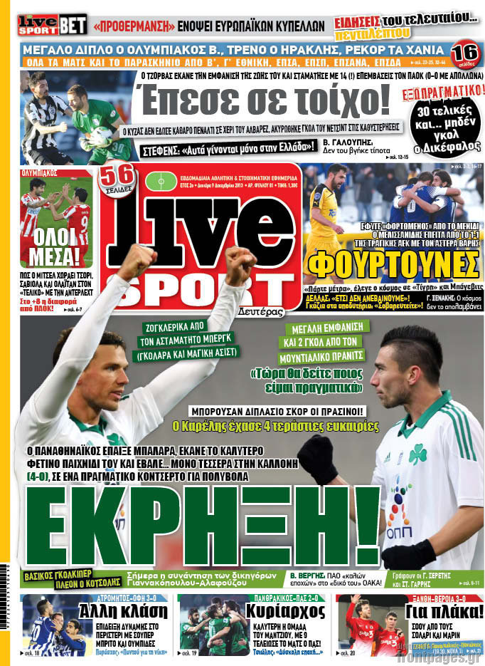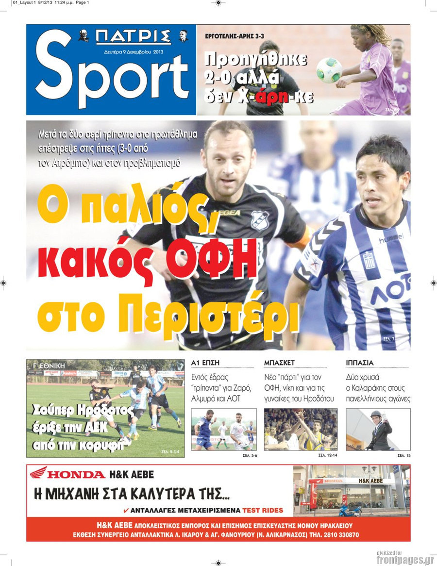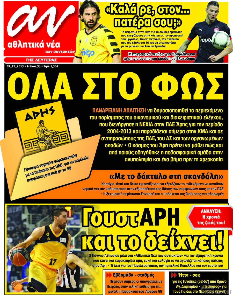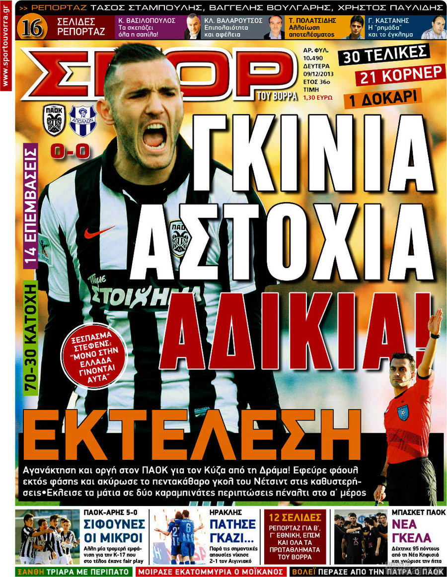 Οι αθλητικές εφημερίδες Enikos Newsroom 08:12, Δευτέρα 09 Δεκεμβρίου 2013 Media Οι αθλητικές εφημερίδες Διαβάστε τα πρωτοσέλιδα των αθλητικών εφημερίδων: ΑΘΛΗΤΙΚΕΣ ΕΦΗΜΕΡΙΔΕΣ ΠΡΩΤΟΣΕΛΙΔΑ Μοιράσου το: σχολίασε κι εσύ (0 σχόλια) Ακολουθήστε το enikos.gr στο Google News και μάθετε πρώτοι όλες τις ειδήσεις Δείτε όλες τις τελευταίες ειδήσεις από την Ελλάδα και τον Κόσμο στο enikos.gr Ειδήσεις Ροή Ειδήσεων 3 ώρες πριν ΣΥΡΙΖΑ: Διαγράφεται ο ευρωβουλευτής Νίκος Παππάς μετά την μήνυση δημοσιογράφου για ξυλοδαρμό 2 ώρες πριν Τουρκία: Επιδιώκει την επιστροφή των S-400 στη Ρωσία – Οι αμερικανικές πιέσεις 2 ώρες πριν ΟΠΕΚΕΠΕ: Ελεύθερες με όρους η σύζυγος και η αδελφή του φερόμενου αρχηγού – Τι υποστήριξαν 4 ώρες πριν Πώς στήθηκε η επιχείρηση «Ίπαλλος» που οδήγησε στη σύλληψη του «Έλληνα Εσκομπάρ» – «Ο πόλεμος ενάντια στους εμπόρους ναρκωτικών θα συνεχιστεί» 4 ώρες πριν Κυψέλη: Στη φυλακή η 16χρονη που μαχαίρωσε συμμαθήτριά της 4 ώρες πριν Τα 3 ζώδια που θα δουν τη ζωή τους να αλλάζει ριζικά το 2026 – «Όλα γίνονται καλύτερα σταδιακά» 9 ώρες πριν «Δεν είχα κλάψει από τότε που διαγνώστηκα με καρκίνο, ώσπου ένα τηλεφώνημα με έκανε να λυγίσω» – Η συγκλονιστική εξομολόγηση ενός άνδρα 5 ώρες πριν Ο σπάνιος σεισμός που έλυσε τα χέρια των επιστημόνων – Αποκάλυψε ακριβώς όσα αναζητούσαν 10 ώρες πριν 20 χρόνια τα Χριστούγεννα ξεκινούν στα Public με μεγάλη ποικιλία σε δώρα! 8 λεπτά πριν Εξεταστική για ΟΠΕΚΕΠΕ – Σκέρτσος: Διαχρονικά τα θέματα του οργανισμού – Δεν έγινε καμία αναφορά μου σε ποινικές διαδικασίες 13 λεπτά πριν Συγκλονιστικό βίντεο: Τρόμος για τουρίστες που σώθηκαν την τελευταία στιγμή από λεωφορείο που κατρακυλούσε σε φαράγγι 18 λεπτά πριν Χριστίνα Μπόμπα: Η αποκάλυψη για το περιστατικό με την κόρη της – «Σκαρφάλωνε και μίλαγε μόνη της…» 23 λεπτά πριν Εξεταστική για ΟΠΕΚΕΠΕ: Μεγάλη ένταση μεταξύ Κωνσταντοπούλου και Λαζαρίδη – ΒΙΝΤΕΟ 28 λεπτά πριν Νίκος Γιαννόπουλος: «Τα γεγονότα μιλούν από μόνα τους» – Η ανάρτηση του δημοσιογράφου που μήνυσε τον Νίκο Παππά για ξυλοδαρμό ENIKOS NETWORK 2,6 εκατομμύρια πολίτες έχουν ήδη εμβολιαστεί κατά της γρίπης Σοβαροί κίνδυνοι από τη λάθος χορήγηση φαρμάκου για τις αιμορραγίες-Συστάσεις προς τους γιατρούς Προκήρυξη ΑΣΕΠ για 4.276 μόνιμες προσλήψεις στο Δημόσιο: Βγήκαν τα προσωρινά αποτελέσματα – Ποιοι μπορούν να υποβάλουν ένσ... Υπουργείο Εργασίας: Ο οδικός χάρτης για την ενίσχυση του πλαισίου των Συλλογικών Διαπραγματεύσεων – Οι 5 άξονες του σχεδίου... Χαρτογραφώντας το «σημείο χωρίς επιστροφή»: Για πρώτη φορά αποκαλύπτεται με λεπτομέρεια το ακανθώδες όριο της ατμόσφαιρας τ... Η Google καταργεί τη λειτουργία «dark web report» – Πώς θα μπορούν οι χρήστες να διαγράφουν τα δεδομένα τους περισσότερα 12:35 , Τετάρτη 17 Δεκεμβρίου 2025 Μίρκα Παπακωνσταντίνου: «Δεν ήμουν αισιόδοξη για τα νούμερα – Είμαι ρεαλίστρια» Στα γυρίσματα του εορταστικού επεισοδίου της αγαπημένης σειράς “Το Σόι Σου”, βρέθηκε η κάμερα ... 12:12 , Τετάρτη 17 Δεκεμβρίου 2025 Ακούστε την εκπομπή του Νίκου Χατζηνικολάου 17/12/2025 Ακούστε την εκπομπή του Νίκου Χατζηνικολάου στον ραδιοφωνικό σταθμό RealFm 97,8, την Τετάρτη 1... 11:35 , Τετάρτη 17 Δεκεμβρίου 2025 Home Alone: Το σπίτι της ταινίας θα ανακαινιστεί – Επιστροφή στην αισθητική της δεκαετίας του ’90 Οι νέοι ιδιοκτήτες του πραγματικού σπιτιού που παρουσιάζεται στην κλασική ταινία του 1990 «Hom... 11:25 , Τετάρτη 17 Δεκεμβρίου 2025 Grand Hotel: Απόψε το τελευταίο επεισόδιο της χρονιάς – Ό
