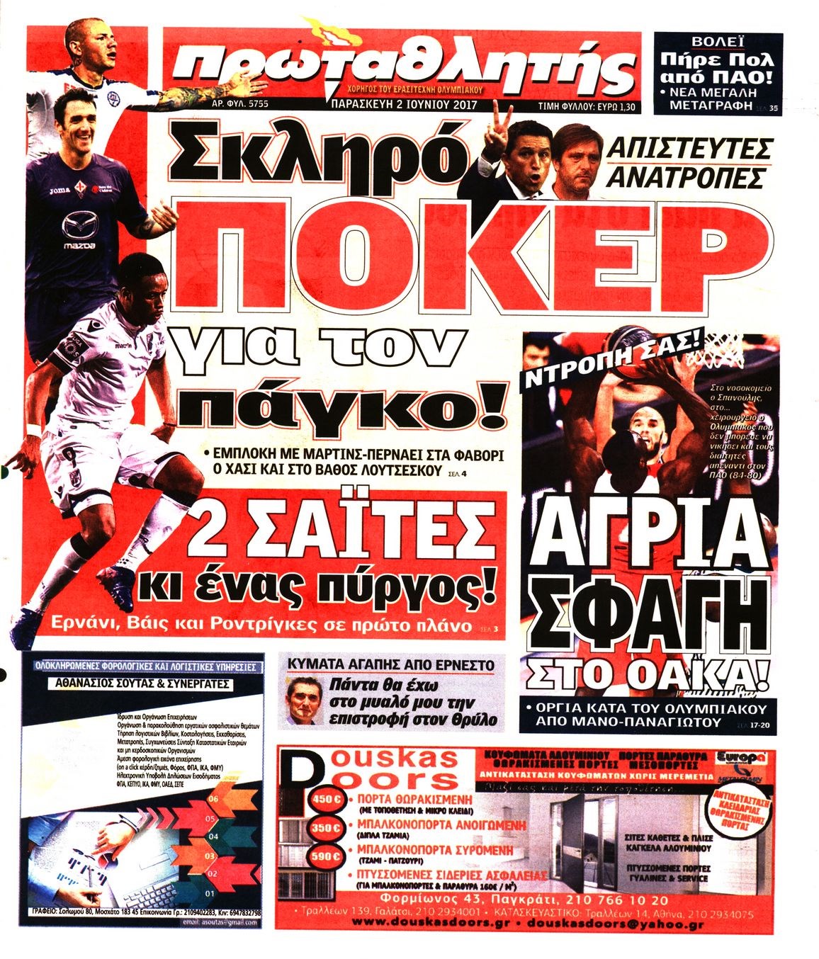 Οι αθλητικές εφημερίδες 2/6/2017 Enikos Newsroom 06:57, Παρασκευή 02 Ιουνίου 2017 Media Διαβάστε τα σημερινά πρωτοσέλιδα των αθλητικών εφημερίδων: ΑΘΛΗΤΙΚΕΣ ΕΦΗΜΕΡΙΔΕΣ ΠΡΩΤΟΣΕΛΙΔΑ Μοιράσου το: σχολίασε κι εσύ (0 σχόλια) Ακολουθήστε το enikos.gr στο Google News και μάθετε πρώτοι όλες τις ειδήσεις Δείτε όλες τις τελευταίες ειδήσεις από την Ελλάδα και τον Κόσμο στο enikos.gr Ειδήσεις Ροή Ειδήσεων 1 ώρα πριν Ευρωπαϊκή Ένωση: Συμφωνία για δάνειο 90 δισ. ευρώ στην Ουκρανία τη διετία 2026-2027 6 ώρες πριν ΟΠΕΚΕΠΕ: Προφυλακιστέος ο φερόμενος αρχηγός και ο λογιστής της εγκληματικής οργάνωσης 7 ώρες πριν Αυξάνουν την πίεση προς την κυβέρνηση οι αγρότες: Κλείνουν παρακαμπτήριους και ανοίγουν διόδια – Τι θα γίνει τις γιορτές 7 ώρες πριν Φοινικούντα: Το Σάββατο απολογείται ο 30χρονος γιος γνωστού επιχειρηματία της Πλάκας που παραδόθηκε – Όσα είπε στους αστυνομικούς και ο ρόλος του στο έγκλημα 5 ώρες πριν ΑΕΚ – Κραϊόβα 3-2: Επική ανατροπή και πρόκριση στους «16» του Conference League η Ένωση 6 ώρες πριν Αρχαιολόγοι ανακάλυψαν ρωμαϊκά τεχνουργήματα από μια πόλη που δεν υπήρξε ποτέ – Τα τρία εντυπωσιακά κτίρια και ο αμφορέας με τις… σαρδέλες 7 ώρες πριν Ύπνος: Η απλή βραδινή ρουτίνα για να προστατεύσετε τα μαλλιά σας από το κρύο κατά τη διάρκεια του χειμώνα 8 ώρες πριν Manifesting: Πώς να συναντήσετε τον σύντροφο της ζωής σας, ανάλογα με τον μήνα γέννησής σας 2 ημέρες πριν 20 χρόνια τα Χριστούγεννα ξεκινούν στα Public με μεγάλη ποικιλία σε δώρα! 3 λεπτά πριν Εφημερεύοντα φαρμακεία σε Αθήνα και Θεσσαλονίκη (19/12) 10 λεπτά πριν Η TikTok στις ΗΠΑ πωλείται σε Oracle, Silver Lake και MGX – Οι λεπτομέρειες του «deal» 18 λεπτά πριν Αλεξάντερ Λουκασένκο: Η Λευκορωσία βρίσκεται κοντά στην αποκατάσταση των σχέσεών της με τις ΗΠΑ 34 λεπτά πριν Αυστραλία: Κήρυξε την Κυριακή (21/12) ημέρα εθνικού πένθους για τη φονική επίθεση στην παραλία Μπόνταϊ 44 λεπτά πριν Ρόδος: Δάσκαλος καράτε καταδικάστηκε για ασέλγεια σε ανήλικες αθλήτριες – Μαρτυρίες για αγγίγματα σε ευαίσθητα σημεία ENIKOS NETWORK Σε περίοδο αυξημένης δραστηριότητας η γρίπη στην Ελλάδα-Μέτρα προστασίας από τον ΕΟΔΥ Σκέφτεστε συνέχεια συζητήσεις που έχετε κάνει; Τι σημαίνει αυτό, σύμφωνα με ειδικό Στεγαστικό: Τι λέει η ΠΟΜΙΔΑ για τα νέα μέτρα που ανακοίνωσε ο Κυριάκος Μητσοτάκης Λαγκάρντ: Αισιόδοξη για την ανάπτυξη της Ευρωζώνης, αβέβαιη για τον πληθωρισμό Χαρτογραφώντας το «σημείο χωρίς επιστροφή»: Για πρώτη φορά αποκαλύπτεται με λεπτομέρεια το ακανθώδες όριο της ατμόσφαιρας τ... Η Google καταργεί τη λειτουργία «dark web report» – Πώς θα μπορούν οι χρήστες να διαγράφουν τα δεδομένα τους περισσότερα 02:50 , Παρασκευή 19 Δεκεμβρίου 2025 GNTM: «Κλείδωσαν» οι τέσσερις φιναλίστ – Μεγάλη ανατροπή στις τελευταίες αποχωρήσεις Για προτελευταία φορά εμφανίστηκαν στο πλατό του GNTM οι φιναλίστ του φετινού κύκλου, το βράδυ... 17:45 , Πέμπτη 18 Δεκεμβρίου 2025 ROUK ZOUK: Εορταστικό επεισόδιο με καλεσμένους τους πρωταγωνιστές του «Γιατί ρε πατέρα» Το Σάββατο 20 Δεκεμβρίου στις 21:00, η Ζέτα Μακρυπούλια υποδέχεται εκλεκτούς ηθοποιούς που όλο... 17:20 , Πέμπτη 18 Δεκεμβρίου 2025 Άγιος έρωτας: Η Χριστίνα εξομολογείται στον πατέρα Νικόλαο, απόψε στις 21:00 στον Alpha Η Νότα αποφασίζει να εκδικηθεί τον Πέτρο και τον Στέφανο, για χάρη του Λούη, όμως τα πράγματα ... 16:50 , Πέμπτη 18 Δεκεμβρίου 2025 Να μ’ αγαπάς: Ζωή και Φωτεινή συμφιλιώνονται ως μάνα με κόρη, απόψε στις 20:00 Η ταυτότητα του Άγγελου αποκαλύπτεται στο νέο επεισόδιο της σειράς “Να μ’ αγαπάς... ΤΕΛΕ