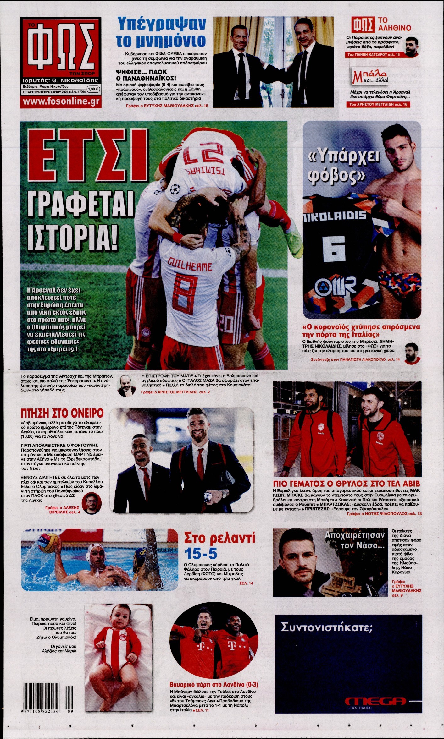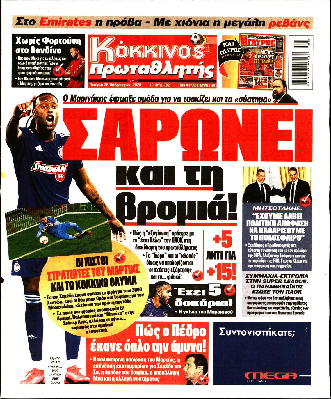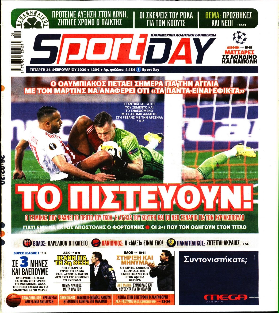 Οι αθλητικές εφημερίδες 26/2/2020 Διονύσης Νίκκας 06:41, Τετάρτη 26 Φεβρουαρίου 2020 Media Διαβάστε τα πρωτοσέλιδα των αθλητικών εφημερίδων… ΑΘΛΗΤΙΚΕΣ ΕΦΗΜΕΡΙΔΕΣ ΠΡΩΤΟΣΕΛΙΔΑ Μοιράσου το: σχολίασε κι εσύ (0 σχόλια) Ακολουθήστε το enikos.gr στο Google News και μάθετε πρώτοι όλες τις ειδήσεις Δείτε όλες τις τελευταίες ειδήσεις από την Ελλάδα και τον Κόσμο στο enikos.gr Ειδήσεις Ροή Ειδήσεων 9 ώρες πριν Χριστούγεννα στα μπλόκα: Επιμένουν στις κινητοποιήσεις τους οι αγρότες – Ανοίγουν τα διόδια το Σαββατοκύριακο 2 ώρες πριν Σαρωτικοί οι έλεγχοι στους δρόμους ενόψει εορτών – Μπλόκα της τροχαίας σε κεντρικές αρτηρίες της Αττικής 9 ώρες πριν Πούτιν: Τα μηνύματα σε Ευρώπη και ΝΑΤΟ από το μαραθώνιο «σόου» του – Η απαίτηση για «σεβασμό» και η ειρήνη «με τους όρους» της Μόσχας 8 ώρες πριν ΗΠΑ: Η κυβέρνηση του Ντόναλντ Τραμπ άρχισε να δημοσιοποιεί τα αρχεία Έπσταϊν 8 ώρες πριν Άνω Λιόσια: Πυροβολισμοί σε επιχείρηση με χαλιά – Εντοπίστηκαν 10 κάλυκες 2 ώρες πριν Αυγά: Πόσα μπορείτε να τρώτε την ημέρα με ασφάλεια για μέγιστη πρόσληψη πρωτεΐνης 2 ώρες πριν Τα ζώδια σήμερα, Σάββατο 20 Δεκεμβρίου: Παρθένοι, το σύμπαν σας δίνει το κλειδί 9 ώρες πριν Ανακαλύφθηκαν αρχαία χρυσά νομίσματα 2.200 ετών που απεικονίζουν τον θεό Απόλλωνα – Η άγνωστη σύνδεση με τον Φίλιππο Β΄ της Μακεδονίας 1 ώρα πριν Οπτική ψευδαίσθηση: Μόνο αν είσαι ο Σέρλοκ Χολμς θα βρεις τον αριθμό «87» σε 7 δευτερόλεπτα 4 λεπτά πριν ΟΝΕΧ – MEGATUGS: Ξεκίνησε η ναυπήγηση ρυμουλκών στην Ελλάδα – Προθάλαμος πολεμικών πλοίων – Δείτε φωτογραφίες και βίντεο 12 λεπτά πριν Φοινικούντα: Σήμερα απολογείται ο 30χρονος γιος γνωστού επιχειρηματία της Πλάκας 20 λεπτά πριν Οι αθλητικές μεταδόσεις 20/12/2025 30 λεπτά πριν Εορτολόγιο: Ποιοι γιορτάζουν σήμερα 20 Δεκεμβρίου 37 λεπτά πριν Συρία: Μπαράζ αμερικανικών επιδρομών εναντίον του ISIS – «Πλήττουμε δυνατά οχυρά του ΙΚ» λέει ο Ντόναλντ Τραμπ ENIKOS NETWORK Πρέπει να αποδέχεστε ή να απορρίπτετε όλα τα cookies; Ένας ειδικός εξηγεί Η αγαπημένη λιχουδιά των πόνι που μπορεί να ενισχύσει όραση, εγκέφαλο και ανοσοποιητικό Αναστολή μέτρων αναγκαστικής εκτέλεσης για κτηνοτρόφους που πλήττονται από την ευλογιά των αιγοπροβάτων Πλήρης επάρκεια προϊόντων στις λαϊκές της Αττικής, παρά τις αγροτικές κινητοποιήσεις – Τι απαντούν οι πωλητές Χαρτογραφώντας το «σημείο χωρίς επιστροφή»: Για πρώτη φορά αποκαλύπτεται με λεπτομέρεια το ακανθώδες όριο της ατμόσφαιρας τ... Η Google καταργεί τη λειτουργία «dark web report» – Πώς θα μπορούν οι χρήστες να διαγράφουν τα δεδομένα τους περισσότερα 05:48 , Σάββατο 20 Δεκεμβρίου 2025 Οι οικονομικές εφημερίδες 20/12/2025 Διαβάστε τα πρωτοσέλιδα από τις οικονομικές εφημερίδες, σήμερα 20/12/2025. 05:43 , Σάββατο 20 Δεκεμβρίου 2025 Οι αθλητικές εφημερίδες 20/12/2025 Διαβάστε τα πρωτοσέλιδα από τις αθλητικές εφημερίδες, σήμερα 20/12/2025. 05:38 , Σάββατο 20 Δεκεμβρίου 2025 Οι πολιτικές εφημερίδες 20/12/2025 Διαβάστε τα πρωτοσέλιδα από τις πολιτικές εφημερίδες, σήμερα 20/12/2025. 04:20 , Σάββατο 20 Δεκεμβρίου 2025 Αγγελική Νικολούλη: Τα συλλυπητήρια για την απώλεια της Ειρήνης Μαρινάκη Τα συλληπητήρια στον πρόεδρο του Mega, τον Βαγγέλη Μαρινάκη, για την απώλεια της μητέρας του Ε... ΤΕΛΕΥΤΑΙΕΣ ΕΙΔΗΣΕΙΣ 4 λεπτά πριν ΟΝΕΧ – MEGATUGS: Ξεκίνησε η ναυπήγηση ρυμουλκών στην... 12 λεπτά πριν Φοινικούντα: Σήμερα απολογείται ο 30χρονος γιος... 20 λεπτά πριν Οι αθλητικές μεταδόσεις 20/12/2025 30 λεπτά πριν Εορτολόγιο: Ποιοι γιορτάζουν σήμερα 20 Δεκεμβρίου 37 λεπτά πριν Συρία: Μπ