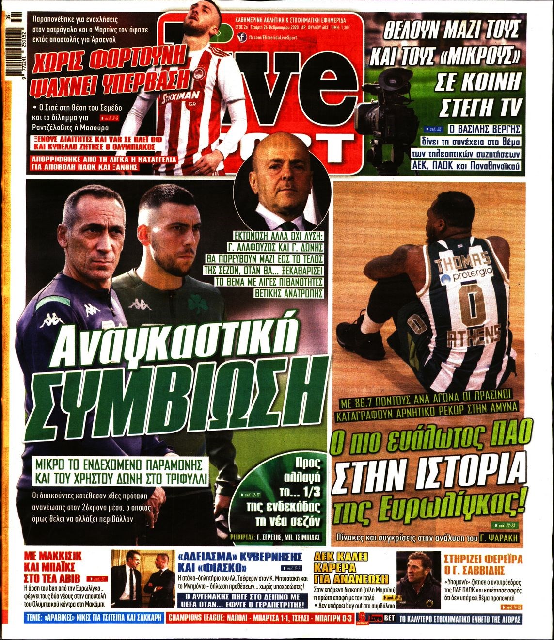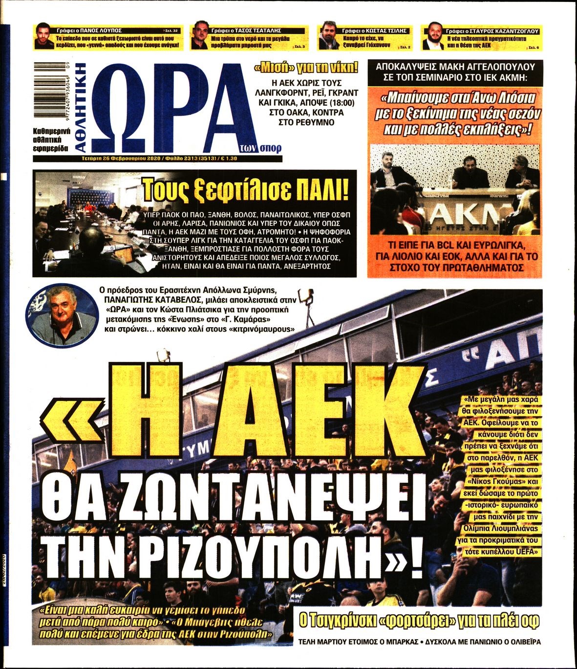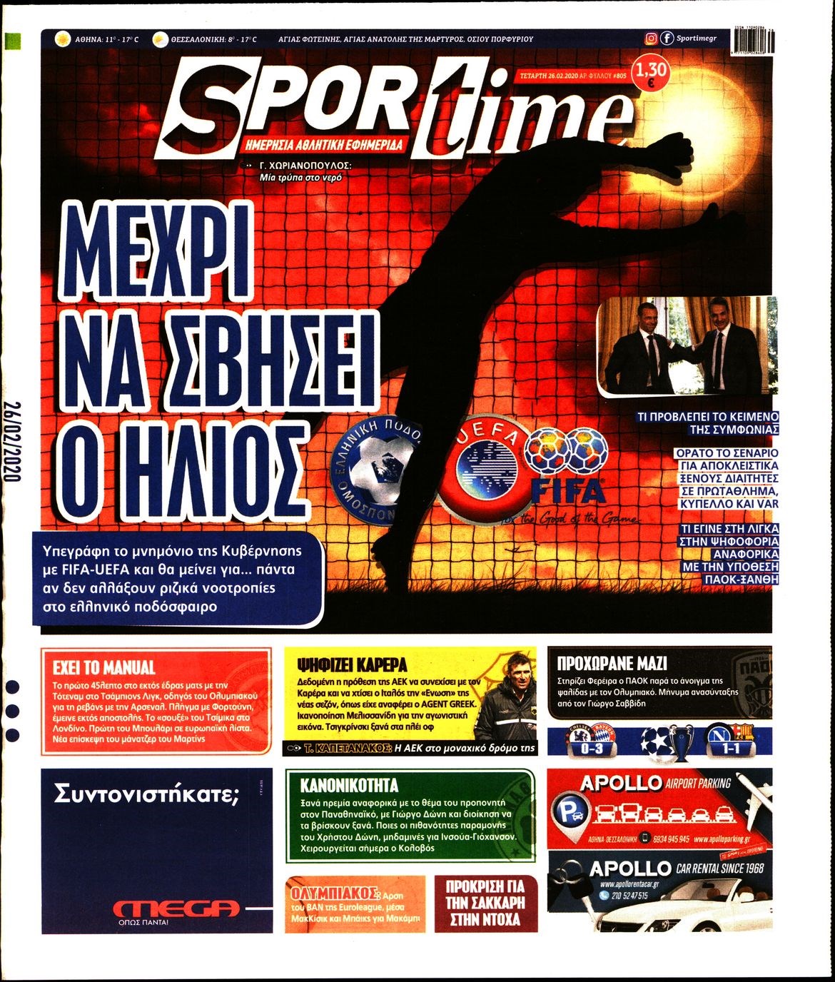 Οι αθλητικές εφημερίδες 26/2/2020 Διονύσης Νίκκας 06:41, Τετάρτη 26 Φεβρουαρίου 2020 Media Διαβάστε τα πρωτοσέλιδα των αθλητικών εφημερίδων… ΑΘΛΗΤΙΚΕΣ ΕΦΗΜΕΡΙΔΕΣ ΠΡΩΤΟΣΕΛΙΔΑ Μοιράσου το: σχολίασε κι εσύ (0 σχόλια) Ακολουθήστε το enikos.gr στο Google News και μάθετε πρώτοι όλες τις ειδήσεις Δείτε όλες τις τελευταίες ειδήσεις από την Ελλάδα και τον Κόσμο στο enikos.gr Ειδήσεις Ροή Ειδήσεων 9 ώρες πριν Χριστούγεννα στα μπλόκα: Επιμένουν στις κινητοποιήσεις τους οι αγρότες – Ανοίγουν τα διόδια το Σαββατοκύριακο 2 ώρες πριν Σαρωτικοί οι έλεγχοι στους δρόμους ενόψει εορτών – Μπλόκα της τροχαίας σε κεντρικές αρτηρίες της Αττικής 9 ώρες πριν Πούτιν: Τα μηνύματα σε Ευρώπη και ΝΑΤΟ από το μαραθώνιο «σόου» του – Η απαίτηση για «σεβασμό» και η ειρήνη «με τους όρους» της Μόσχας 8 ώρες πριν ΗΠΑ: Η κυβέρνηση του Ντόναλντ Τραμπ άρχισε να δημοσιοποιεί τα αρχεία Έπσταϊν 8 ώρες πριν Άνω Λιόσια: Πυροβολισμοί σε επιχείρηση με χαλιά – Εντοπίστηκαν 10 κάλυκες 2 ώρες πριν Αυγά: Πόσα μπορείτε να τρώτε την ημέρα με ασφάλεια για μέγιστη πρόσληψη πρωτεΐνης 2 ώρες πριν Τα ζώδια σήμερα, Σάββατο 20 Δεκεμβρίου: Παρθένοι, το σύμπαν σας δίνει το κλειδί 9 ώρες πριν Ανακαλύφθηκαν αρχαία χρυσά νομίσματα 2.200 ετών που απεικονίζουν τον θεό Απόλλωνα – Η άγνωστη σύνδεση με τον Φίλιππο Β΄ της Μακεδονίας 1 ώρα πριν Οπτική ψευδαίσθηση: Μόνο αν είσαι ο Σέρλοκ Χολμς θα βρεις τον αριθμό «87» σε 7 δευτερόλεπτα 4 λεπτά πριν ΟΝΕΧ – MEGATUGS: Ξεκίνησε η ναυπήγηση ρυμουλκών στην Ελλάδα – Προθάλαμος πολεμικών πλοίων – Δείτε φωτογραφίες και βίντεο 12 λεπτά πριν Φοινικούντα: Σήμερα απολογείται ο 30χρονος γιος γνωστού επιχειρηματία της Πλάκας 20 λεπτά πριν Οι αθλητικές μεταδόσεις 20/12/2025 30 λεπτά πριν Εορτολόγιο: Ποιοι γιορτάζουν σήμερα 20 Δεκεμβρίου 37 λεπτά πριν Συρία: Μπαράζ αμερικανικών επιδρομών εναντίον του ISIS – «Πλήττουμε δυνατά οχυρά του ΙΚ» λέει ο Ντόναλντ Τραμπ ENIKOS NETWORK Πρέπει να αποδέχεστε ή να απορρίπτετε όλα τα cookies; Ένας ειδικός εξηγεί Η αγαπημένη λιχουδιά των πόνι που μπορεί να ενισχύσει όραση, εγκέφαλο και ανοσοποιητικό Αναστολή μέτρων αναγκαστικής εκτέλεσης για κτηνοτρόφους που πλήττονται από την ευλογιά των αιγοπροβάτων Πλήρης επάρκεια προϊόντων στις λαϊκές της Αττικής, παρά τις αγροτικές κινητοποιήσεις – Τι απαντούν οι πωλητές Χαρτογραφώντας το «σημείο χωρίς επιστροφή»: Για πρώτη φορά αποκαλύπτεται με λεπτομέρεια το ακανθώδες όριο της ατμόσφαιρας τ... Η Google καταργεί τη λειτουργία «dark web report» – Πώς θα μπορούν οι χρήστες να διαγράφουν τα δεδομένα τους περισσότερα 05:48 , Σάββατο 20 Δεκεμβρίου 2025 Οι οικονομικές εφημερίδες 20/12/2025 Διαβάστε τα πρωτοσέλιδα από τις οικονομικές εφημερίδες, σήμερα 20/12/2025. 05:43 , Σάββατο 20 Δεκεμβρίου 2025 Οι αθλητικές εφημερίδες 20/12/2025 Διαβάστε τα πρωτοσέλιδα από τις αθλητικές εφημερίδες, σήμερα 20/12/2025. 05:38 , Σάββατο 20 Δεκεμβρίου 2025 Οι πολιτικές εφημερίδες 20/12/2025 Διαβάστε τα πρωτοσέλιδα από τις πολιτικές εφημερίδες, σήμερα 20/12/2025. 04:20 , Σάββατο 20 Δεκεμβρίου 2025 Αγγελική Νικολούλη: Τα συλλυπητήρια για την απώλεια της Ειρήνης Μαρινάκη Τα συλληπητήρια στον πρόεδρο του Mega, τον Βαγγέλη Μαρινάκη, για την απώλεια της μητέρας του Ε... ΤΕΛΕΥΤΑΙΕΣ ΕΙΔΗΣΕΙΣ 4 λεπτά πριν ΟΝΕΧ – MEGATUGS: Ξεκίνησε η ναυπήγηση ρυμουλκών στην... 12 λεπτά πριν Φοινικούντα: Σήμερα απολογείται ο 30χρονος γιος... 20 λεπτά πριν Οι αθλητικές μεταδόσεις 20/12/2025 30 λεπτά πριν Εορτολόγιο: Ποιοι γιορτάζουν σήμερα 20 Δεκεμβρίου 37 λεπτά πριν Συρία: Μπ