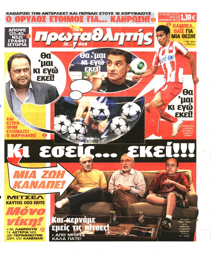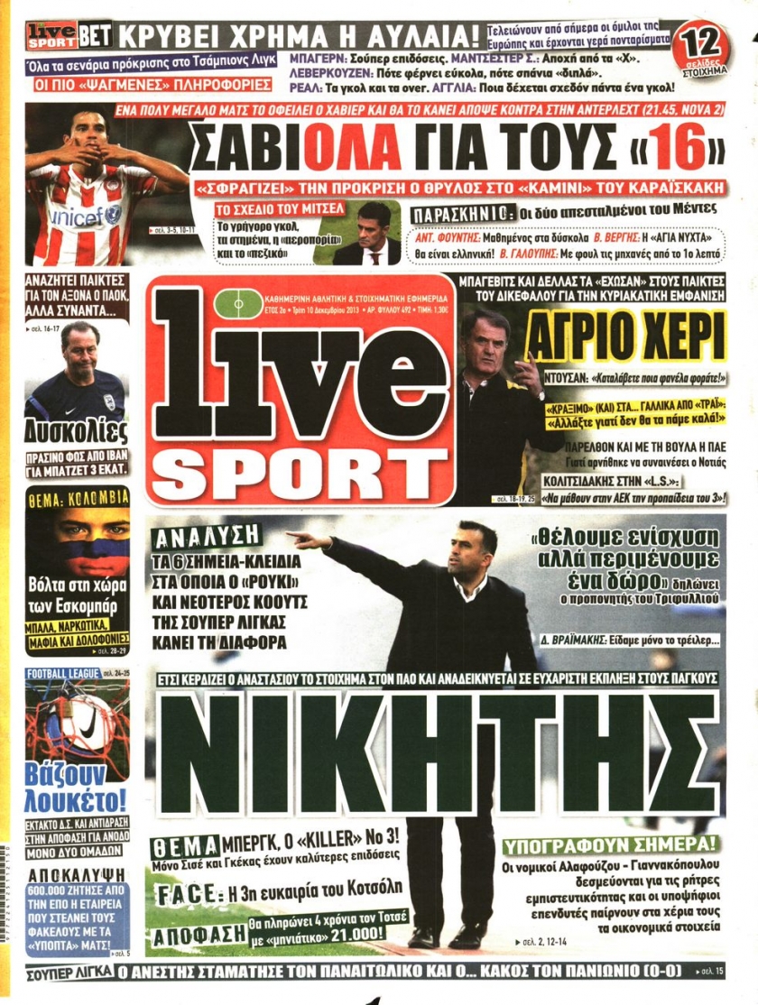 Οι αθλητικές εφημερίδες Enikos Newsroom 08:29, Τρίτη 10 Δεκεμβρίου 2013 Media Οι αθλητικές εφημερίδες Διαβάστε τα πρωτοσέλιδα των αθλητικών εφημερίδων: ΑΘΛΗΤΙΚΕΣ ΕΦΗΜΕΡΙΔΕΣ ΕΦΗΜΕΡΙΔΕΣ ΠΡΩΤΟΣΕΛΙΔΑ Μοιράσου το: σχολίασε κι εσύ (0 σχόλια) Ακολουθήστε το enikos.gr στο Google News και μάθετε πρώτοι όλες τις ειδήσεις Δείτε όλες τις τελευταίες ειδήσεις από την Ελλάδα και τον Κόσμο στο enikos.gr Ειδήσεις Ροή Ειδήσεων 4 ώρες πριν Εκτός ευρωομάδας ΣΥΡΙΖΑ ο Νίκος Παππάς μετά την επίθεση στον δημοσιογράφο Νίκο Γιαννόπουλο – Η μήνυση και οι νέες δηλώσεις 5 ώρες πριν «Αγριεύουν» οι αγρότες: «Δεν συντρέχει λόγος συνάντησης με τον πρωθυπουργό» – Ώρα αποφάσεων στη σύσκεψη της Πέμπτης 5 ώρες πριν Κυψέλη: Χωρίς την οικογένειά της δίπλα της απολογήθηκε η 16χρονη – «Της είχε επιτεθεί κάποιος για να την βιάσει, φοβήθηκε και κυκλοφορούσε με μαχαίρι» 4 ώρες πριν Politico: Το πρόβλημα της Ευρώπης δεν είναι το Βέλγιο αλλά ο Ντόναλντ Τραμπ 6 ώρες πριν Αλεξανδρούπολη: Πολυοργανική ανεπάρκεια λόγω υποσιτισμού η αιτία θανάτου του 3χρονου αγοριού 4 ώρες πριν Μυστήριο με τεράστιες κυκλικές πέτρες 200 κιλών – Ανακαλύφθηκαν τυχαία κατά τη διάρκεια οδικών έργων και κανείς δεν ξέρει από πού προέρχονται 5 ώρες πριν Ύπνος: Ειδικός εξηγεί τον πραγματικό λόγο που ξυπνάτε στις 4 τα ξημερώματα – Ο ρόλος των ορμονών και του κιρκάδιου ρυθμού 6 ώρες πριν Αριθμολογία: Οι άνθρωποι που έχουν γεννηθεί αυτές τις 4 ημερομηνίες, είναι τρυφεροί και αγαπούν ανιδιοτελώς 18 ώρες πριν 20 χρόνια τα Χριστούγεννα ξεκινούν στα Public με μεγάλη ποικιλία σε δώρα! 14 λεπτά πριν Βραζιλία: Το Κογκρέσο ενέκρινε σχέδιο νόμου για τη μείωση της ποινής του πρώην προέδρου Μπολσονάρου 28 λεπτά πριν Ένταση στο περιφερειακό συμβούλιο Δυτικής Μακεδονίας: Φωνές, σπρωξιές και διακοπή – Δείτε βίντεο 43 λεπτά πριν Σουδάν: Επιδρομή drone σε χωριό του Νότιου Κορντοφάν – Οκτώ νεκροί 59 λεπτά πριν Αλ Τσαντίρι Νιουζ: Η κόρη της Πάολα στο κοινό – Η ατάκα Λαζόπουλου που την έκανε να «κοκκινήσει» 1 ώρα πριν Ρωσία: Ουκρανικές δυνάμεις έπληξαν πλοίο στο λιμάνι του Ροστόφ – Αναφορές για θύματα ENIKOS NETWORK Αϋπνία: Το κόλπο που θα σας βοηθήσει να κοιμηθείτε απόψε – Είναι απλό και έχει αποτέλεσμα 2,6 εκατομμύρια πολίτες έχουν ήδη εμβολιαστεί κατά της γρίπης ΕΛΣΤΑΤ: Τι δείχνουν τα νέα στοιχεία για τις ηλεκτρονικές παραγγελίες των επιχειρήσεων ΚΕΠΕ: Οι 3 διακριτές συμβολές των ΜμΕ και της μεταποίησης στην ελληνική οικονομία Χαρτογραφώντας το «σημείο χωρίς επιστροφή»: Για πρώτη φορά αποκαλύπτεται με λεπτομέρεια το ακανθώδες όριο της ατμόσφαιρας τ... Η Google καταργεί τη λειτουργία «dark web report» – Πώς θα μπορούν οι χρήστες να διαγράφουν τα δεδομένα τους περισσότερα 02:30 , Πέμπτη 18 Δεκεμβρίου 2025 Αλ Τσαντίρι Νιουζ: Η κόρη της Πάολα στο κοινό – Η ατάκα Λαζόπουλου που την έκανε να «κοκκινήσει» Γιορτινή διάθεση και ευχάριστες στιγμές γέμισε η αποψινή, τελευταία για το 2025, εκπομπή του «... 22:24 , Τετάρτη 17 Δεκεμβρίου 2025 Το Σπίτι Δίπλα Στο Ποτάμι: Σε κίνδυνο η υγεία του Απόστολου – Τι θα δούμε απόψε “Το Σπίτι Δίπλα στο Ποτάμι” ξετυλίγει το νήμα της ζωής των πέντε αδελφών με καταισ... 21:14 , Τετάρτη 17 Δεκεμβρίου 2025 Παιχνίδια Εκδίκησης: Θα καταφέρει ο Χρήστος να κλονίσει την εμπιστοσύνη της Μάγιας απέναντι στον Άγη; Τα «Παιχνίδια Εκδίκησης» έρχονται απόψε στις 22:30, στον Αντ1, με το τελευταίο επεισόδιο της χ... 20:57 , Τετάρτη 17 Δεκεμβρίου 2025 Άγιος Έρωτας: Η Χλόη καταθέτει εναντίον του πατέρα της και ο Χάρ