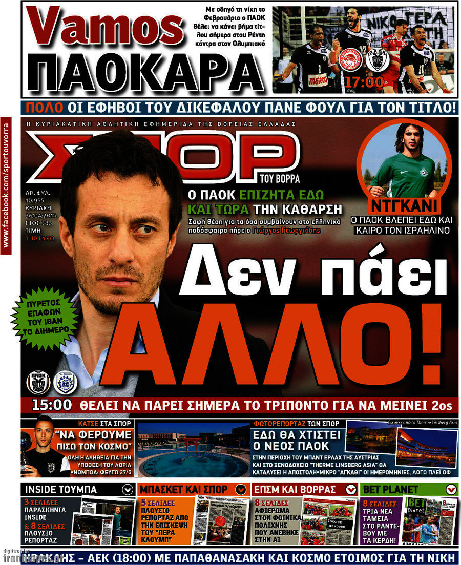Οι αθλητικές εφημερίδες 26/4/2015 Enikos Newsroom 08:23, Κυριακή 26 Απριλίου 2015 Media Διαβάστε τα σημερινά πρωτοσέλιδα των αθλητικών εφημερίδων… ΑΘΛΗΤΙΚΕΣ ΕΦΗΜΕΡΙΔΕΣ ΠΡΩΤΟΣΕΛΙΔΑ Μοιράσου το: σχολίασε κι εσύ (0 σχόλια) Ακολουθήστε το enikos.gr στο Google News και μάθετε πρώτοι όλες τις ειδήσεις Δείτε όλες τις τελευταίες ειδήσεις από την Ελλάδα και τον Κόσμο στο enikos.gr Ειδήσεις Ροή Ειδήσεων 7 ώρες πριν Ρετζέπ Ταγίπ Ερντογάν: Δεν έχουμε καμία βλέψη στα εδάφη ή την κυριαρχία κανενός – Δεν θα επιτρέψουμε να παραβιαστούν τα δικαιώματά μας 9 ώρες πριν Χριστούγεννα στα μπλόκα οι αγρότες: Άνοιξαν στα διόδια και μοίρασαν προϊόντα στους πολίτες – Νέα σύσκεψη την Κυριακή στη Νίκαια 8 ώρες πριν Αρχεία Επστάιν: Οι 500 σελίδες που λείπουν, τα αναπάντητα ερωτήματα και οι επώνυμοι – Τι έπεται 9 ώρες πριν Κύκλωμα διακίνησης ναρκωτικών σε σχολεία: Τηλεφωνούσαν στους ανηλίκους την ώρα του μαθήματος – Οι διάλογοι-σοκ, τα «ψευδώνυμα» και τα βασανιστήρια 8 ώρες πριν H ακτοφυλακή των ΗΠΑ κατάσχεσε και δεύτερο τάνκερ στα ανοιχτά της Βενεζουέλας – Δείτε βίντεο 1 ώρα πριν Οπτική ψευδαίσθηση: Μόνο το 2% των ανθρώπων θα βρει την πεταλούδα σε 15 δευτερόλεπτα 1 ώρα πριν Μήλο vs μπανάνα: Ποιο φρούτο έχει περισσότερες φυτικές ίνες, σύμφωνα με διαιτολόγους – Τα οφέλη τους για την υγεία 2 ώρες πριν Τα ζώδια σήμερα, Κυριακή 21 Δεκεμβρίου: Αιγόκεροι, αποφασίζετε για το επόμενο κεφάλαιο της ζωής σας 22 ώρες πριν Enerwave: Το νέο «ρεύμα» στη λιανική ενέργειας που αλλάζει την εμπειρία του καταναλωτή 34 λεπτά πριν Σήμερα με τη Realnews: Ό,τι και αν αγοράσεις, σκανάρεις και κερδίζεις! 4 λεπτά πριν LEGEND: Ο διάδοχος της φρεγάτας Constellation έρχεται από την ακτοφυλακή των ΗΠΑ 11 λεπτά πριν Καιρός: Βροχές και χαμηλές θερμοκρασίες σήμερα – Η πρόγνωση για τα Χριστούγεννα 20 λεπτά πριν Εορτολόγιο: Ποιοι γιορτάζουν σήμερα 21 Δεκεμβρίου 26 λεπτά πριν Σήμερα με τη Realnews: Instyle, μαζί Drive και Realnews Geopolitics ENIKOS NETWORK Το αφροδισιακό φυλλώδες λαχανικό που μπορεί να προστατεύσει τα μάτια και να καταπολεμήσει τον καρκίνο Το απόλυτο κόλπο με το αυτοκόλλητο για να βγει πρώτη η βαλίτσα σας από το αεροπλάνο «Πολεμική» προετοιμασία από την ευρωπαϊκή βιομηχανία ενέργειας – Η Eurelectric ζητεί «ομπρέλα» προστασίας για τις υποδομές Ακύρωση ΑΦΜ για απάτες – Ποιους βάζει στο στόχαστρο η ΑΑΔΕ Χαρτογραφώντας το «σημείο χωρίς επιστροφή»: Για πρώτη φορά αποκαλύπτεται με λεπτομέρεια το ακανθώδες όριο της ατμόσφαιρας τ... Η Google καταργεί τη λειτουργία «dark web report» – Πώς θα μπορούν οι χρήστες να διαγράφουν τα δεδομένα τους περισσότερα 07:00 , Κυριακή 21 Δεκεμβρίου 2025 Σήμερα με τη Realnews: Instyle, μαζί Drive και Realnews Geopolitics Σήμερα με τη Realnews: Instyle, μαζί Drive και Realnews Geopolitics Instyle Η Άννα Ρεζάν, η Ch... 06:55 , Κυριακή 21 Δεκεμβρίου 2025 Η Realnews στο www.pressreader.com Διαβάστε την ψηφιακή έκδοση της εφημερίδας στην οθόνη του κινητού, του tablet και του υπολογισ... 05:46 , Κυριακή 21 Δεκεμβρίου 2025 Οι αθλητικές εφημερίδες 21/12/2025 Διαβάστε τα πρωτοσέλιδα από τις αθλητικές εφημερίδες, σήμερα 21/12/2025. 05:38 , Κυριακή 21 Δεκεμβρίου 2025 Οι πολιτικές εφημερίδες 21/12/2025 Διαβάστε τα πρωτοσέλιδα από τις πολιτικές εφημερίδες, σήμερα 21/12/2025. ΤΕΛΕΥΤΑΙΕΣ ΕΙΔΗΣΕΙΣ 4 λεπτά πριν LEGEND: Ο διάδοχος της φρεγάτας Constellation έρχεται από την... 11 λεπτά πριν Καιρός: Βροχές και χαμηλές θερμοκρασίες σήμερα – Η... 20 λεπτά πριν Εορτολόγιο: Ποιοι γιορτάζουν σήμερα 21 Δεκεμβρίου 26 λεπτά πριν Σήμερα με τη Realnews: Instyle, μαζί Drive και Realnews Geopolitics 31 λεπτά πριν Η Realnews στο www.pressreader.com 39 λ