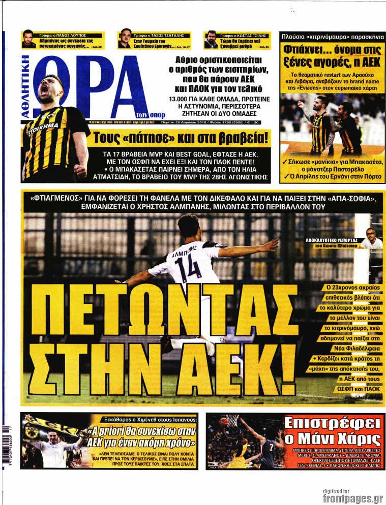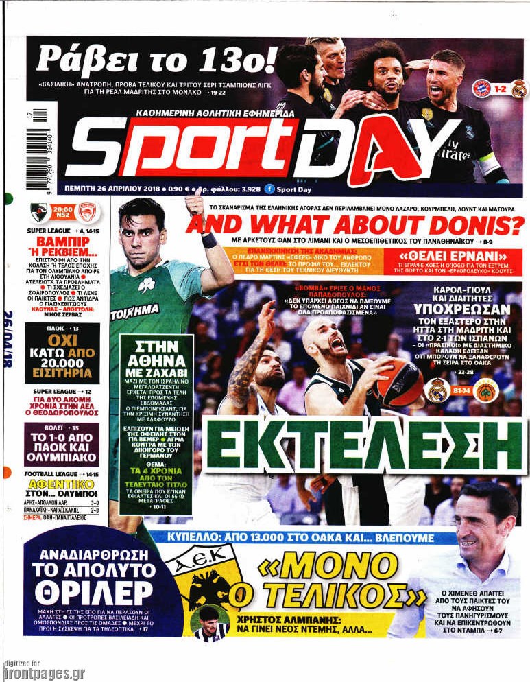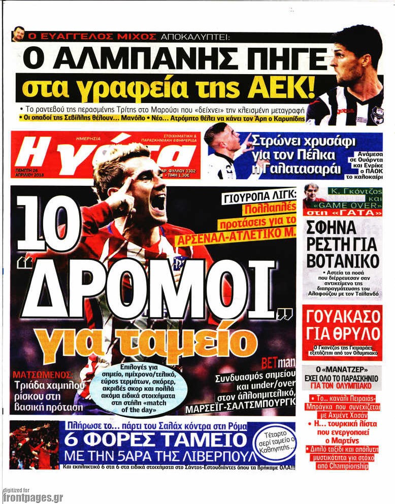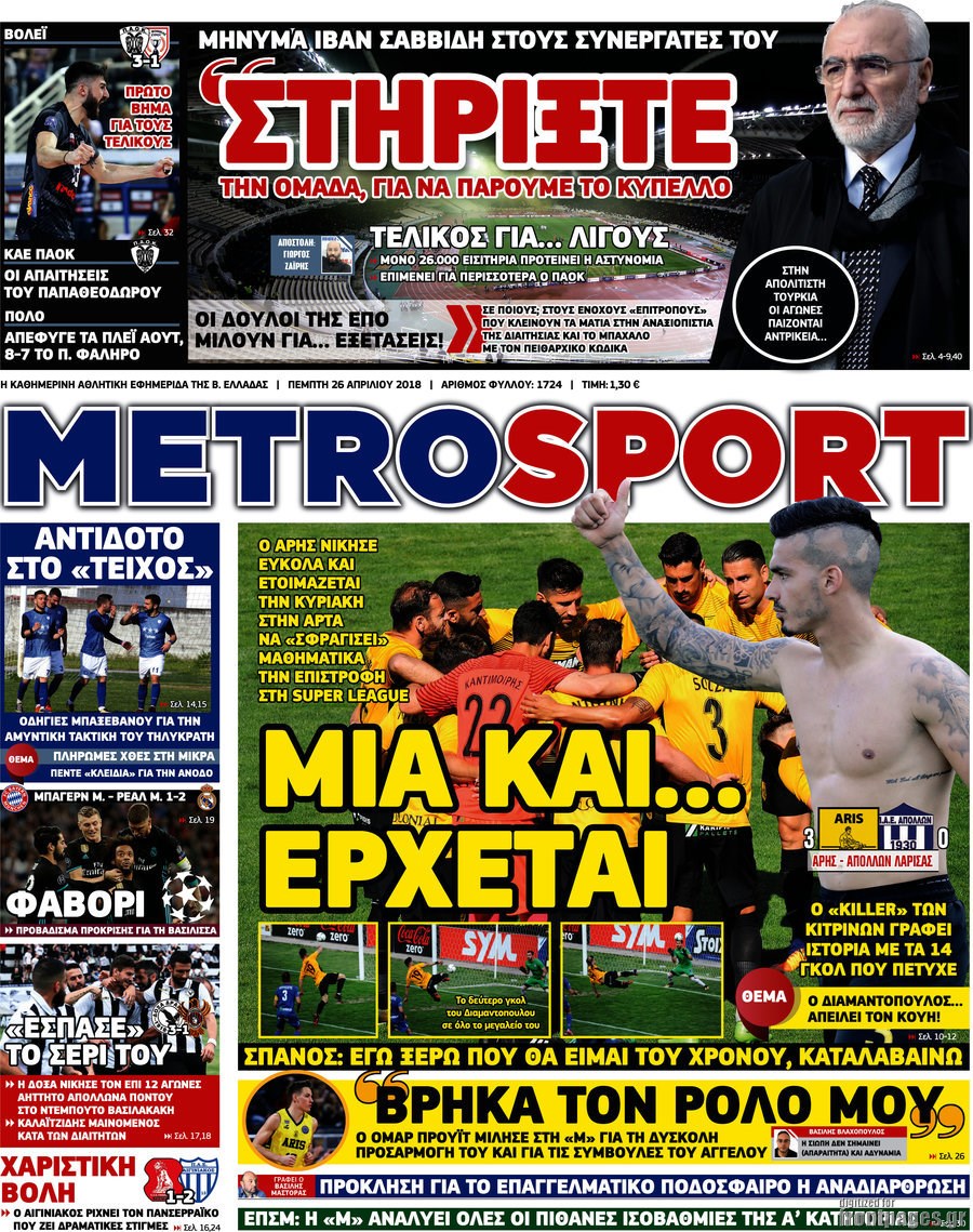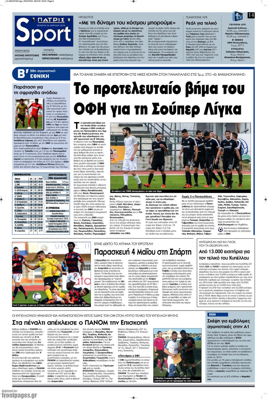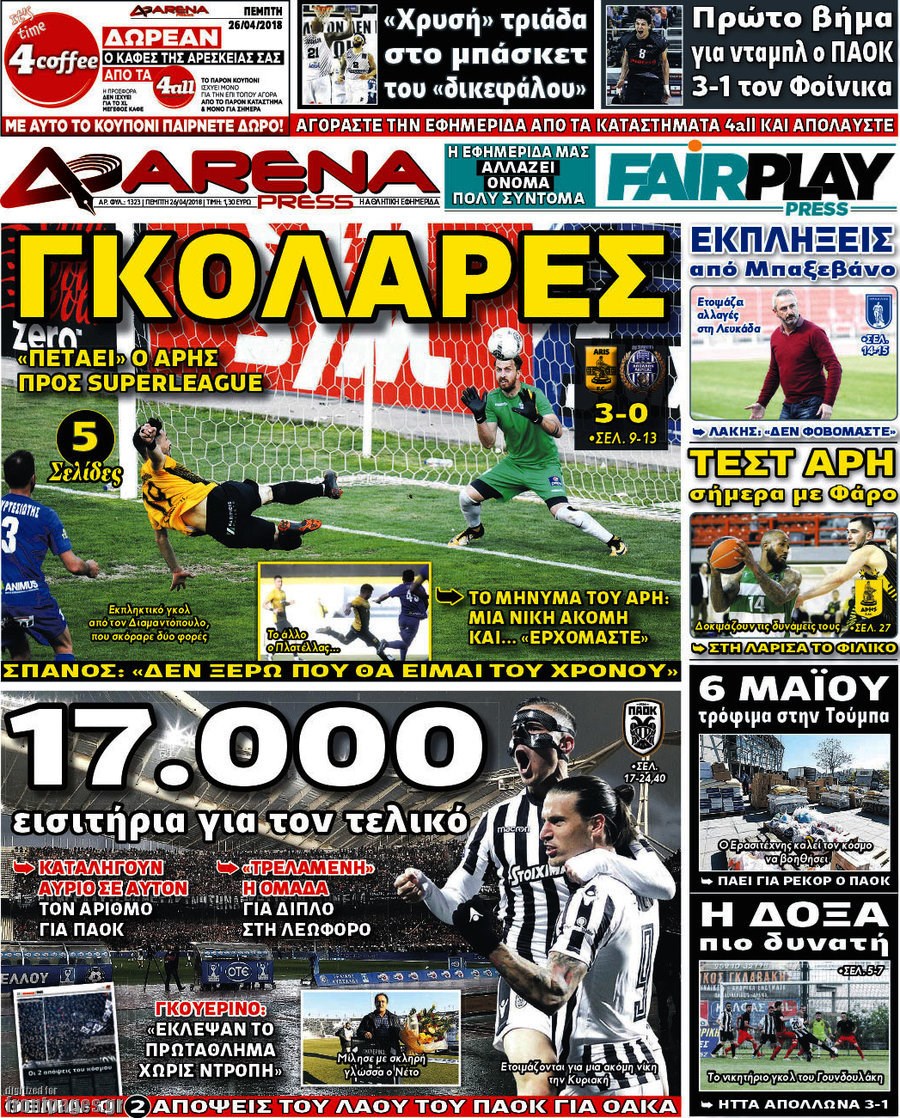 Οι αθλητικές εφημερίδες 26/4/2018 Enikos Newsroom 07:18, Πέμπτη 26 Απριλίου 2018 Media Διαβάστε τα πρωτοσέλιδα των αθλητικών εφημερίδων: ΑΘΛΗΤΙΚΕΣ ΕΦΗΜΕΡΙΔΕΣ ΠΡΩΤΟΣΕΛΙΔΑ Μοιράσου το: σχολίασε κι εσύ (0 σχόλια) Ακολουθήστε το enikos.gr στο Google News και μάθετε πρώτοι όλες τις ειδήσεις Δείτε όλες τις τελευταίες ειδήσεις από την Ελλάδα και τον Κόσμο στο enikos.gr Ειδήσεις Ροή Ειδήσεων 4 ώρες πριν Από το Ορμένιο ως τα Μάλγαρα κι από τη Σιάτιστα μέχρι τη Νίκαια: Μπλόκα σε όλη την Ελλάδα – Το Σάββατο ανοίγουν τα διόδια οι αγρότες 1 ώρα πριν Εμπλοκή και αερομαχίες με οπλισμένα τουρκικά F-16 στο Αιγαίο 3 ώρες πριν Αττική: Θρίλερ με νεκρό βρέφος 5 μηνών – Κοιμόταν στο ίδιο κρεβάτι με τους γονείς του 58 λεπτά πριν Πούτιν: «Ναι, είμαι ερωτευμένος» – Βίντεο από τη σπάνια προσωπική παραδοχή του 3 ώρες πριν Μεσόγειος: Η διαδρομή του ρωσικού τάνκερ «Qendil» και η στοχευμένη επίθεση της Ουκρανίας με drone – Ο Πούτιν προειδοποίησε για αντίποινα 5 ώρες πριν Τα 5 ζώδια που ευνοούνται στην ερωτική ζωή τους την επόμενη εβδομάδα – «Η ενέργεια του Αιγόκερου φέρνει αγάπη και σταθερότητα» 6 ώρες πριν Αυτό το έξυπνο μαθηματικό κόλπο θα μπορούσε να αλλάξει τον τρόπο με τον οποίο οι επιστήμονες μελετούν τους σεισμούς 2 ώρες πριν Μήπως έχετε χάσει τον εαυτό σας στη σχέση σας; 7 «αθόρυβες» υποχωρήσεις που μάλλον κάνατε, χωρίς να το συνειδητοποιήσετε 4 ώρες πριν Κουίζ για την παλιά Αθήνα: Αναγνωρίζετε την περιοχή; Έχετε περάσει 100% από εκεί 5 λεπτά πριν Μπαράκ Ομπάμα: Τα βιβλία, οι ταινίες και τα τραγούδια που ξεχώρισε το 2025 – Πλήρης λίστα 10 λεπτά πριν Don’t Forget The Lyrics: Η Έλλη Κοκκίνου υποδέχεται 4 παίκτες που θα κάνουν τα πάντα για να μη χάσουν ούτε… μισή λέξη από τους στίχους 16 λεπτά πριν Πλεύρης στον ΑΝΤ1: Η βασική πολιτική που ψηφίστηκε από τους υπουργούς Μετανάστευσης είναι η δημιουργία κέντρων κράτησης μεταναστών στην Αφρική – ΒΙΝΤΕΟ 21 λεπτά πριν Η εξομολόγηση της Νίκης Σερέτη: «Δεν κρύβω ότι ήταν πάρα πολύ δύσκολο όλο αυτό που βίωσα» 26 λεπτά πριν Αγρότες: Κλειστό ξανά το ρεύμα εισόδου στα Μάλγαρα – Άνοιξαν τον κόμβο της Χαλκηδόνας ENIKOS NETWORK Έχετε πραγματικά μεγάλη καρδιά; 10 χαρακτηριστικά όσων έχουν καλοσύνη «Η σούπερ» γρίπη εξαπλώνεται στην Ευρώπη-Στοιχεία από το ECDC για την αποτελεσματικότητα του εμβολίου Επίδομα παιδιού: Πότε ανοίγει ξανά η πλατφόρμα για τις αιτήσεις Προκήρυξη ΑΣΕΠ για 397 μόνιμες προσλήψεις στο Δημόσιο: Βγήκαν τα προσωρινά αποτελέσματα – Πότε αρχίζει η υποβολή ενστάσεων Χαρτογραφώντας το «σημείο χωρίς επιστροφή»: Για πρώτη φορά αποκαλύπτεται με λεπτομέρεια το ακανθώδες όριο της ατμόσφαιρας τ... Η Google καταργεί τη λειτουργία «dark web report» – Πώς θα μπορούν οι χρήστες να διαγράφουν τα δεδομένα τους περισσότερα 20:37 , Παρασκευή 19 Δεκεμβρίου 2025 Don’t Forget The Lyrics: Η Έλλη Κοκκίνου υποδέχεται 4 παίκτες που θα κάνουν τα πάντα για να μη χάσουν ούτε… μισή λέξη από τους στίχους Το «Don’t Forget The Lyrics» επιστρέφει απόψε, Παρασκευή 19 Δεκεμβρίου, στις 21:00 με νέο επει... 19:31 , Παρασκευή 19 Δεκεμβρίου 2025 GNTM: Απόψε ο μεγάλος τελικός για τους 4 φιναλίστ Έπειτα από μήνες γεμάτους μόδα, δημιουργία και έντονες αναμετρήσεις, το GNTM 2025 κορυφώνεται,... 18:11 , Παρασκευή 19 Δεκεμβρίου 2025 Το σόι σου: Ο Άρης έρχεται στην Ελλάδα για τις γιορτές των Χριστουγέννων – Τι θα δούμε στο αποψινό εορταστικό επεισόδιο Ένα απολαυστικό, εορταστικό επεισόδιο της σειράς “Το σόι σου”, γεμάτο ευτράπελα αλ... 15:15 , Παρασκευή 19 Δεκεμβρίου 2025 Την Κυριακή με τη Rea