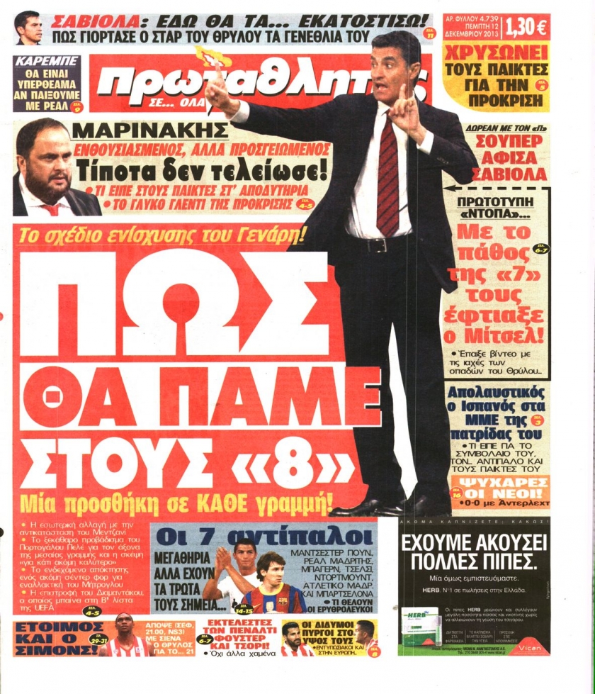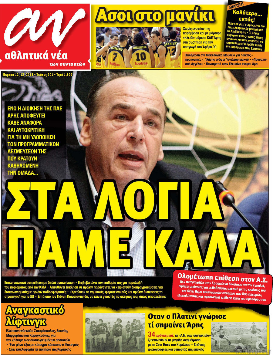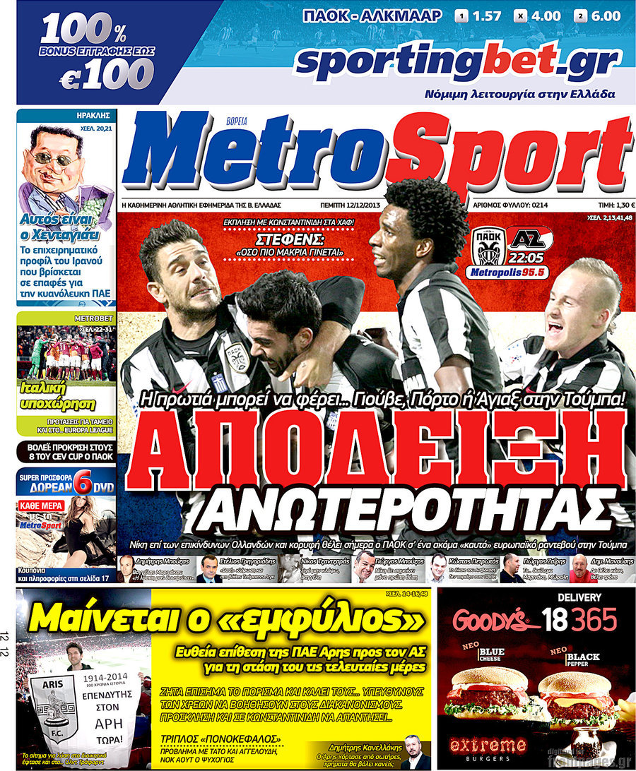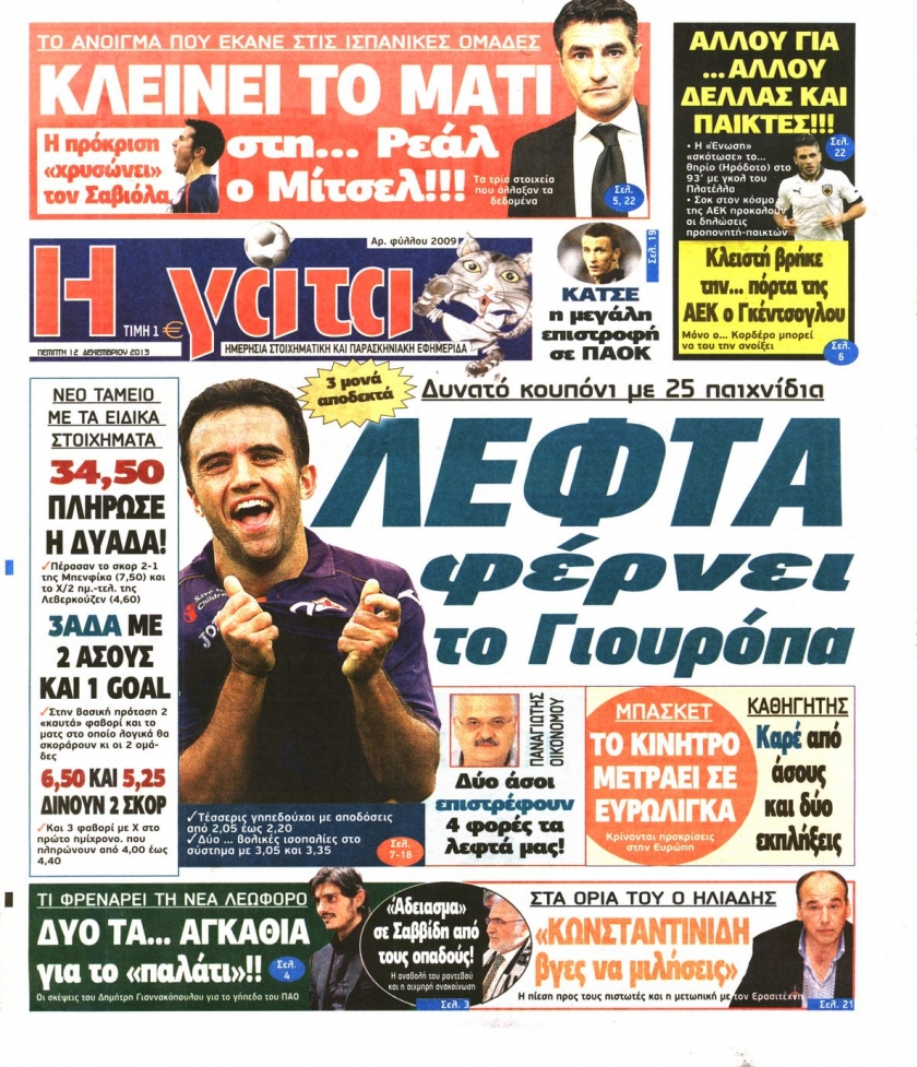 Οι αθλητικές εφημερίδες Enikos Newsroom 08:38, Πέμπτη 12 Δεκεμβρίου 2013 Media Οι αθλητικές εφημερίδες Διαβάστε τα πρωτοσέλιδα των αθλητικών εφημερίδων: ΑΘΛΗΤΙΚΕΣ ΕΦΗΜΕΡΙΔΕΣ ΕΦΗΜΕΡΙΔΕΣ ΠΡΩΤΟΣΕΛΙΔΑ Μοιράσου το: σχολίασε κι εσύ (0 σχόλια) Ακολουθήστε το enikos.gr στο Google News και μάθετε πρώτοι όλες τις ειδήσεις Δείτε όλες τις τελευταίες ειδήσεις από την Ελλάδα και τον Κόσμο στο enikos.gr Ειδήσεις Ροή Ειδήσεων 4 ώρες πριν Αυξάνουν την πίεση προς την κυβέρνηση οι αγρότες: Κλείνουν παρακαμπτήριους και ανοίγουν διόδια – Τι θα γίνει τις γιορτές 3 ώρες πριν ΟΠΕΚΕΠΕ: Προφυλακιστέος ο φερόμενος αρχηγός και ο λογιστής της εγκληματικής οργάνωσης 4 ώρες πριν Φοινικούντα: Το Σάββατο απολογείται ο 30χρονος γιος γνωστού επιχειρηματία της Πλάκας που παραδόθηκε – Όσα είπε στους αστυνομικούς και ο ρόλος του στο έγκλημα 4 ώρες πριν Μπορεί ο Μαδούρο να αντέξει τον αποκλεισμό του Τραμπ; Τι θα χρειαστεί η Ουάσινγκτον για να τον ανατρέψει 3 ώρες πριν ΑΕΚ – Κραϊόβα 3-2: Επική ανατροπή και πρόκριση στους «16» του Conference League η Ένωση 4 ώρες πριν Αρχαιολόγοι ανακάλυψαν ρωμαϊκά τεχνουργήματα από μια πόλη που δεν υπήρξε ποτέ – Τα τρία εντυπωσιακά κτίρια και ο αμφορέας με τις… σαρδέλες 5 ώρες πριν Ύπνος: Η απλή βραδινή ρουτίνα για να προστατεύσετε τα μαλλιά σας από το κρύο κατά τη διάρκεια του χειμώνα 6 ώρες πριν Manifesting: Πώς να συναντήσετε τον σύντροφο της ζωής σας, ανάλογα με τον μήνα γέννησής σας 2 ημέρες πριν 20 χρόνια τα Χριστούγεννα ξεκινούν στα Public με μεγάλη ποικιλία σε δώρα! 8 λεπτά πριν GNTM: «Κλείδωσαν» οι τέσσερις φιναλίστ – Μεγάλη ανατροπή στις τελευταίες αποχωρήσεις 22 λεπτά πριν Γιώργος Μαζωνάκης: Αποθεώθηκε στην πρεμιέρα του στην «Ακτή Πειραιώς» λίγες ώρες μετά τις καταγγελίες – «Είμαι αληθινός», είπε με νόημα 37 λεπτά πριν Πόλεμος στην Ουκρανία: Ρωσικά drones έπληξαν την Οδησσό – Μία νεκρή και ζημιές σε ενεργειακές υποδομές 45 λεπτά πριν ΑΕΚ-Κραϊόβα: Τα highlights της μυθικής ανατροπής της «Ένωσης» 60 λεπτά πριν Μιχάλης Χρυσοχοΐδης από την Κωνσταντινούπολη: Κοινές επιχειρήσεις Ελλάδας – Τουρκίας ενάντια στο οργανωμένο έγκλημα ENIKOS NETWORK Σε περίοδο αυξημένης δραστηριότητας η γρίπη στην Ελλάδα-Μέτρα προστασίας από τον ΕΟΔΥ Σκέφτεστε συνέχεια συζητήσεις που έχετε κάνει; Τι σημαίνει αυτό, σύμφωνα με ειδικό Στεγαστικό: Τι λέει η ΠΟΜΙΔΑ για τα νέα μέτρα που ανακοίνωσε ο Κυριάκος Μητσοτάκης Λαγκάρντ: Αισιόδοξη για την ανάπτυξη της Ευρωζώνης, αβέβαιη για τον πληθωρισμό Χαρτογραφώντας το «σημείο χωρίς επιστροφή»: Για πρώτη φορά αποκαλύπτεται με λεπτομέρεια το ακανθώδες όριο της ατμόσφαιρας τ... Η Google καταργεί τη λειτουργία «dark web report» – Πώς θα μπορούν οι χρήστες να διαγράφουν τα δεδομένα τους περισσότερα 02:50 , Παρασκευή 19 Δεκεμβρίου 2025 GNTM: «Κλείδωσαν» οι τέσσερις φιναλίστ – Μεγάλη ανατροπή στις τελευταίες αποχωρήσεις Για προτελευταία φορά εμφανίστηκαν στο πλατό του GNTM οι φιναλίστ του φετινού κύκλου, το βράδυ... 17:45 , Πέμπτη 18 Δεκεμβρίου 2025 ROUK ZOUK: Εορταστικό επεισόδιο με καλεσμένους τους πρωταγωνιστές του «Γιατί ρε πατέρα» Το Σάββατο 20 Δεκεμβρίου στις 21:00, η Ζέτα Μακρυπούλια υποδέχεται εκλεκτούς ηθοποιούς που όλο... 17:20 , Πέμπτη 18 Δεκεμβρίου 2025 Άγιος έρωτας: Η Χριστίνα εξομολογείται στον πατέρα Νικόλαο, απόψε στις 21:00 στον Alpha Η Νότα αποφασίζει να εκδικηθεί τον Πέτρο και τον Στέφανο, για χάρη του Λούη, όμως τα πράγματα ... 16:50 , Πέμπτη 18 Δεκεμβρίου 2025 Να μ’ αγαπάς: Ζωή και Φωτεινή συμφιλιώνονται ως μάνα με κό