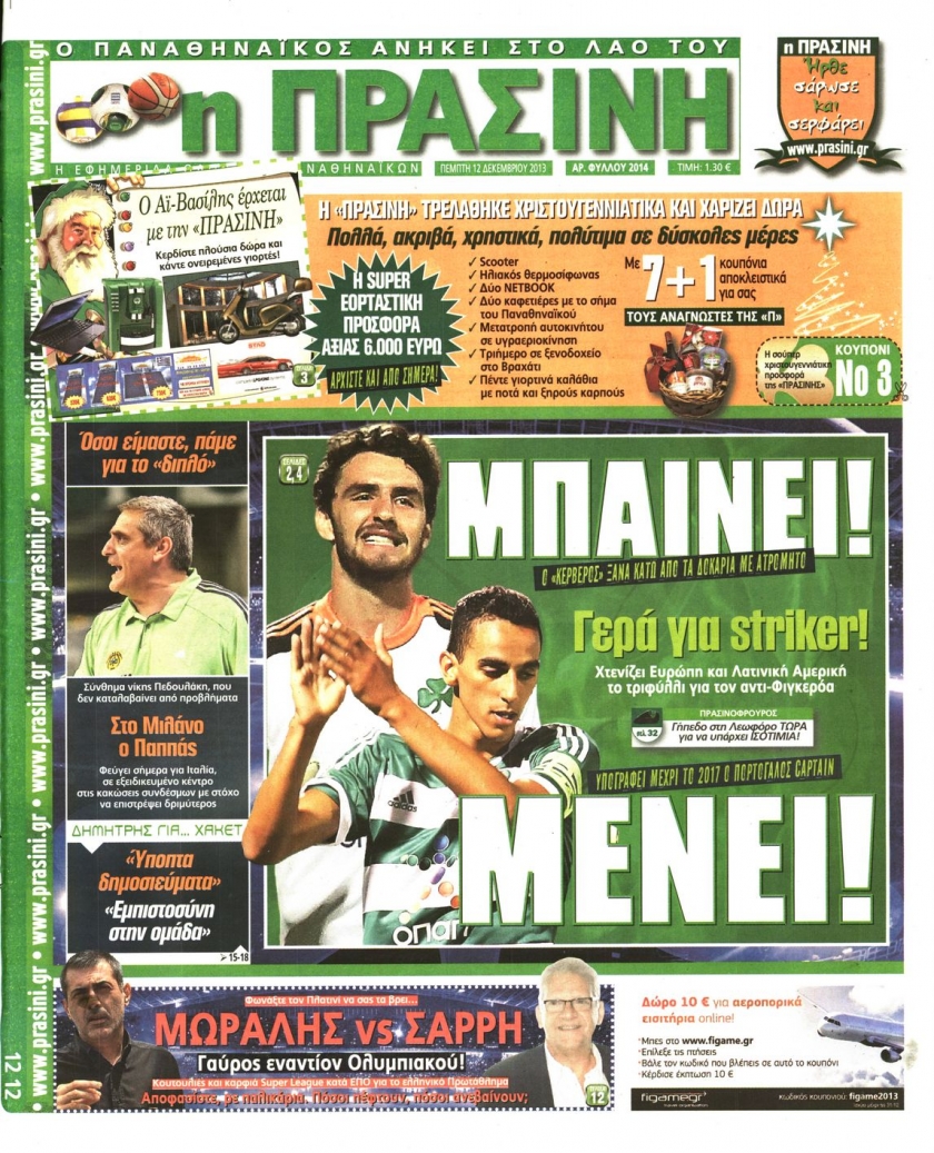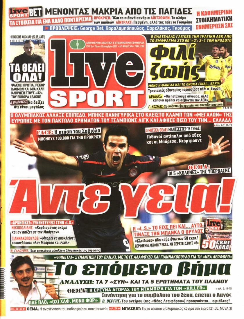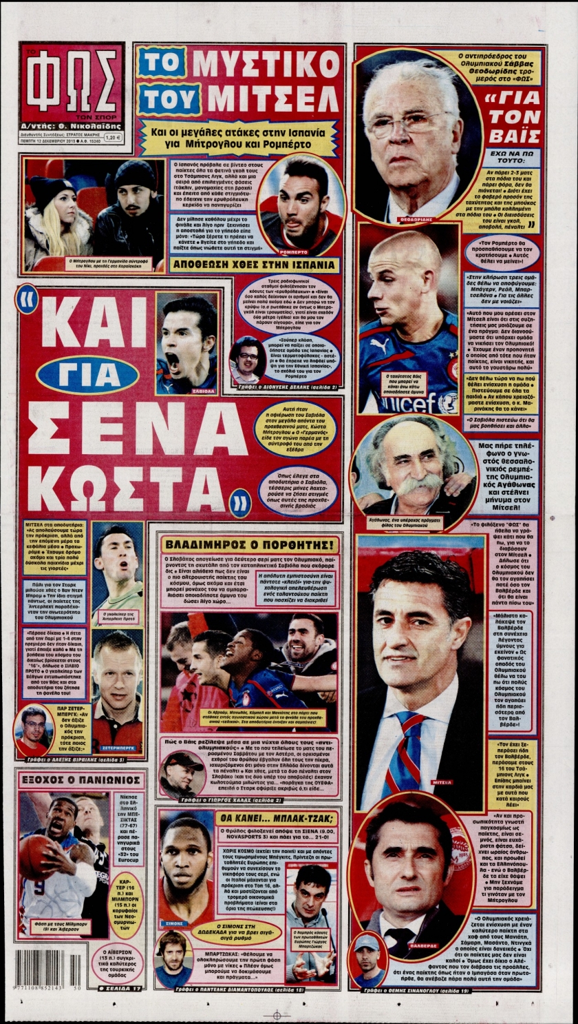 Οι αθλητικές εφημερίδες Enikos Newsroom 08:38, Πέμπτη 12 Δεκεμβρίου 2013 Media Οι αθλητικές εφημερίδες Διαβάστε τα πρωτοσέλιδα των αθλητικών εφημερίδων: ΑΘΛΗΤΙΚΕΣ ΕΦΗΜΕΡΙΔΕΣ ΕΦΗΜΕΡΙΔΕΣ ΠΡΩΤΟΣΕΛΙΔΑ Μοιράσου το: σχολίασε κι εσύ (0 σχόλια) Ακολουθήστε το enikos.gr στο Google News και μάθετε πρώτοι όλες τις ειδήσεις Δείτε όλες τις τελευταίες ειδήσεις από την Ελλάδα και τον Κόσμο στο enikos.gr Ειδήσεις Ροή Ειδήσεων 4 ώρες πριν Αυξάνουν την πίεση προς την κυβέρνηση οι αγρότες: Κλείνουν παρακαμπτήριους και ανοίγουν διόδια – Τι θα γίνει τις γιορτές 3 ώρες πριν ΟΠΕΚΕΠΕ: Προφυλακιστέος ο φερόμενος αρχηγός και ο λογιστής της εγκληματικής οργάνωσης 4 ώρες πριν Φοινικούντα: Το Σάββατο απολογείται ο 30χρονος γιος γνωστού επιχειρηματία της Πλάκας που παραδόθηκε – Όσα είπε στους αστυνομικούς και ο ρόλος του στο έγκλημα 4 ώρες πριν Μπορεί ο Μαδούρο να αντέξει τον αποκλεισμό του Τραμπ; Τι θα χρειαστεί η Ουάσινγκτον για να τον ανατρέψει 3 ώρες πριν ΑΕΚ – Κραϊόβα 3-2: Επική ανατροπή και πρόκριση στους «16» του Conference League η Ένωση 4 ώρες πριν Αρχαιολόγοι ανακάλυψαν ρωμαϊκά τεχνουργήματα από μια πόλη που δεν υπήρξε ποτέ – Τα τρία εντυπωσιακά κτίρια και ο αμφορέας με τις… σαρδέλες 5 ώρες πριν Ύπνος: Η απλή βραδινή ρουτίνα για να προστατεύσετε τα μαλλιά σας από το κρύο κατά τη διάρκεια του χειμώνα 6 ώρες πριν Manifesting: Πώς να συναντήσετε τον σύντροφο της ζωής σας, ανάλογα με τον μήνα γέννησής σας 2 ημέρες πριν 20 χρόνια τα Χριστούγεννα ξεκινούν στα Public με μεγάλη ποικιλία σε δώρα! 8 λεπτά πριν GNTM: «Κλείδωσαν» οι τέσσερις φιναλίστ – Μεγάλη ανατροπή στις τελευταίες αποχωρήσεις 22 λεπτά πριν Γιώργος Μαζωνάκης: Αποθεώθηκε στην πρεμιέρα του στην «Ακτή Πειραιώς» λίγες ώρες μετά τις καταγγελίες – «Είμαι αληθινός», είπε με νόημα 37 λεπτά πριν Πόλεμος στην Ουκρανία: Ρωσικά drones έπληξαν την Οδησσό – Μία νεκρή και ζημιές σε ενεργειακές υποδομές 45 λεπτά πριν ΑΕΚ-Κραϊόβα: Τα highlights της μυθικής ανατροπής της «Ένωσης» 60 λεπτά πριν Μιχάλης Χρυσοχοΐδης από την Κωνσταντινούπολη: Κοινές επιχειρήσεις Ελλάδας – Τουρκίας ενάντια στο οργανωμένο έγκλημα ENIKOS NETWORK Σε περίοδο αυξημένης δραστηριότητας η γρίπη στην Ελλάδα-Μέτρα προστασίας από τον ΕΟΔΥ Σκέφτεστε συνέχεια συζητήσεις που έχετε κάνει; Τι σημαίνει αυτό, σύμφωνα με ειδικό Στεγαστικό: Τι λέει η ΠΟΜΙΔΑ για τα νέα μέτρα που ανακοίνωσε ο Κυριάκος Μητσοτάκης Λαγκάρντ: Αισιόδοξη για την ανάπτυξη της Ευρωζώνης, αβέβαιη για τον πληθωρισμό Χαρτογραφώντας το «σημείο χωρίς επιστροφή»: Για πρώτη φορά αποκαλύπτεται με λεπτομέρεια το ακανθώδες όριο της ατμόσφαιρας τ... Η Google καταργεί τη λειτουργία «dark web report» – Πώς θα μπορούν οι χρήστες να διαγράφουν τα δεδομένα τους περισσότερα 02:50 , Παρασκευή 19 Δεκεμβρίου 2025 GNTM: «Κλείδωσαν» οι τέσσερις φιναλίστ – Μεγάλη ανατροπή στις τελευταίες αποχωρήσεις Για προτελευταία φορά εμφανίστηκαν στο πλατό του GNTM οι φιναλίστ του φετινού κύκλου, το βράδυ... 17:45 , Πέμπτη 18 Δεκεμβρίου 2025 ROUK ZOUK: Εορταστικό επεισόδιο με καλεσμένους τους πρωταγωνιστές του «Γιατί ρε πατέρα» Το Σάββατο 20 Δεκεμβρίου στις 21:00, η Ζέτα Μακρυπούλια υποδέχεται εκλεκτούς ηθοποιούς που όλο... 17:20 , Πέμπτη 18 Δεκεμβρίου 2025 Άγιος έρωτας: Η Χριστίνα εξομολογείται στον πατέρα Νικόλαο, απόψε στις 21:00 στον Alpha Η Νότα αποφασίζει να εκδικηθεί τον Πέτρο και τον Στέφανο, για χάρη του Λούη, όμως τα πράγματα ... 16:50 , Πέμπτη 18 Δεκεμβρίου 2025 Να μ’ αγαπάς: Ζωή και Φωτεινή συμφιλιώνονται ως μάνα με κό