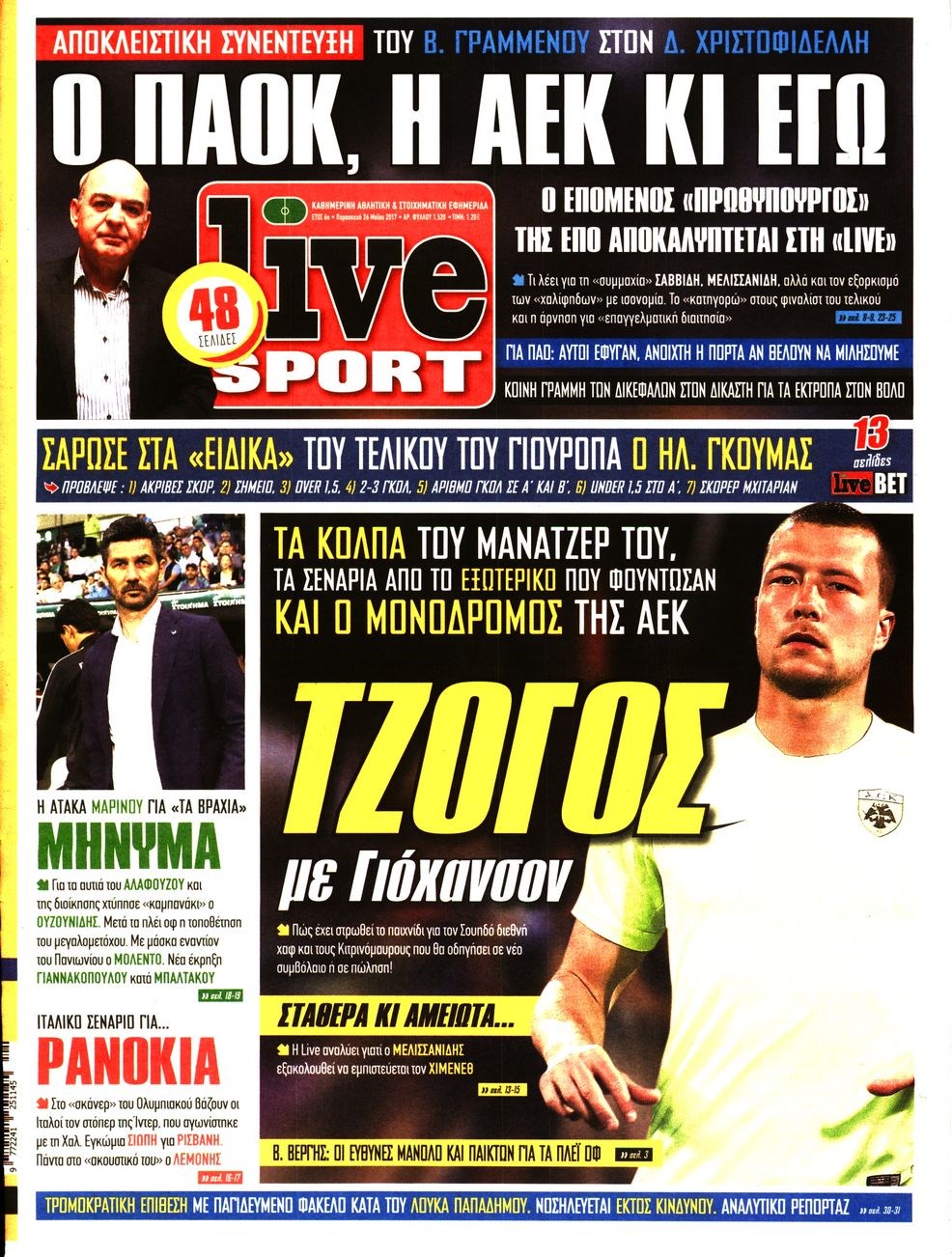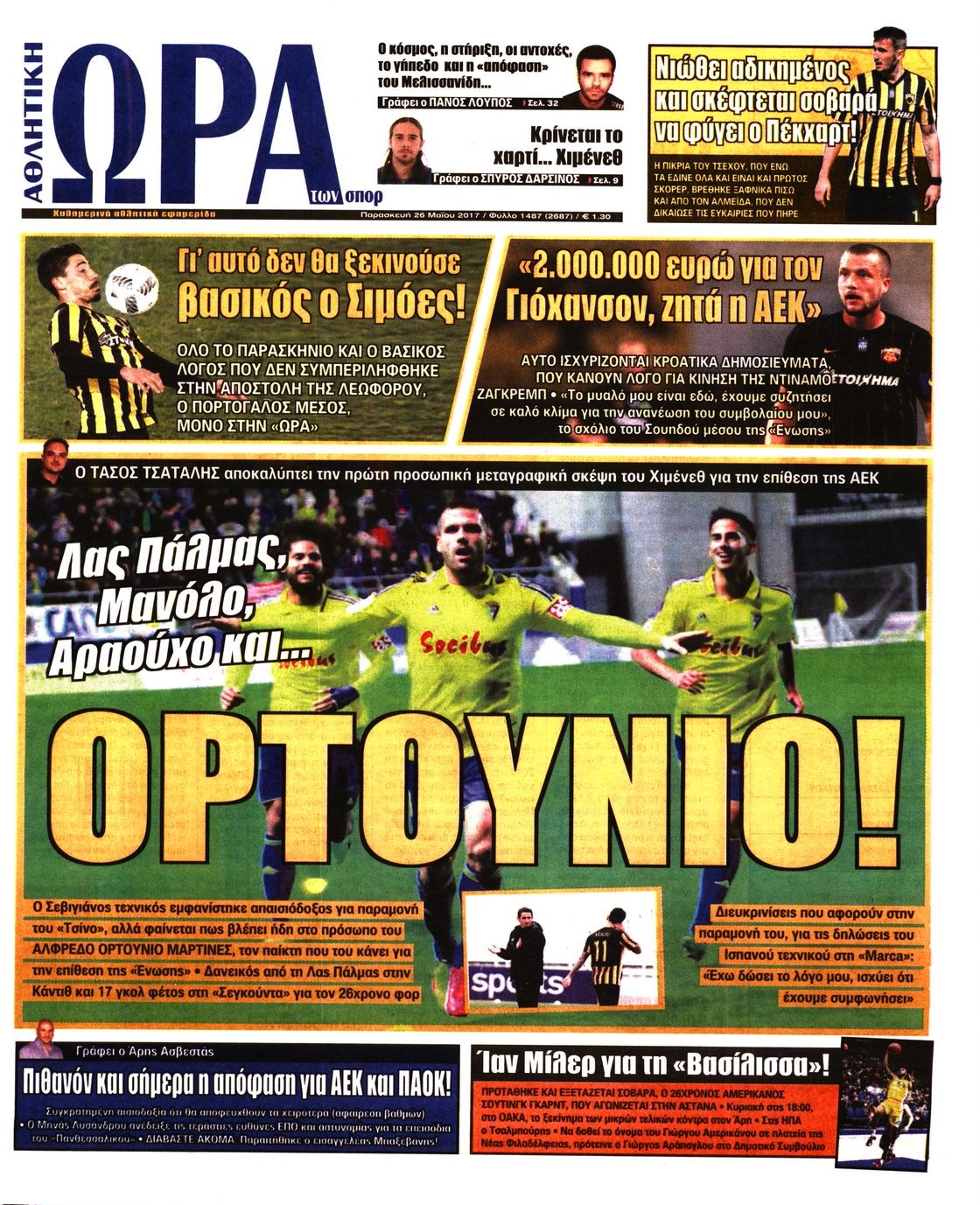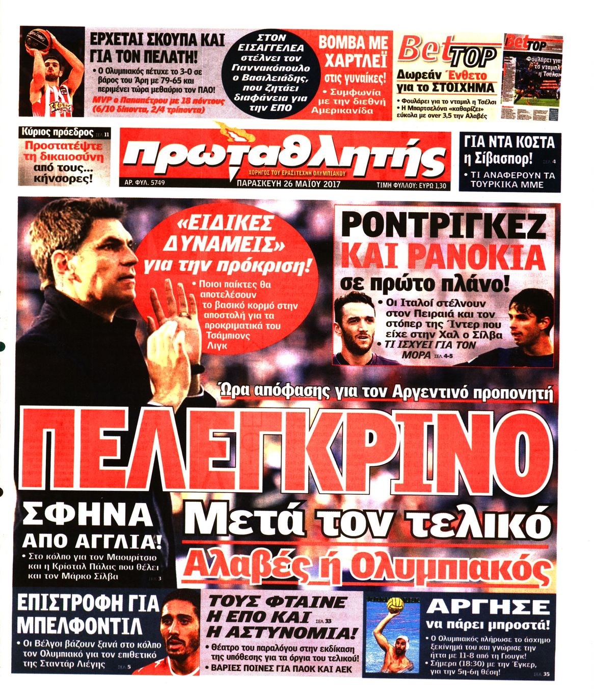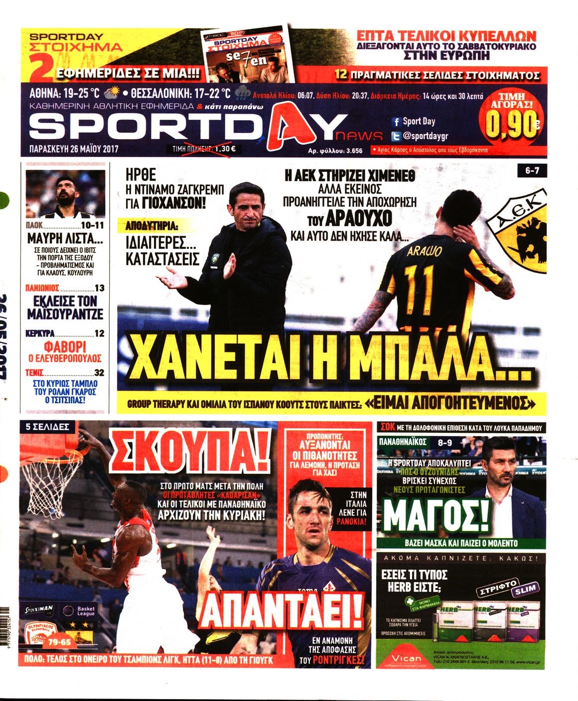 Οι αθλητικές εφημερίδες 26/5/2017 Enikos Newsroom 07:00, Παρασκευή 26 Μαΐου 2017 Media Διαβάστε τα σημερινά πρωτοσέλιδα των αθλητικών εφημερίδων: ΑΘΛΗΤΙΚΕΣ ΕΦΗΜΕΡΙΔΕΣ ΠΡΩΤΟΣΕΛΙΔΑ Μοιράσου το: σχολίασε κι εσύ (0 σχόλια) Ακολουθήστε το enikos.gr στο Google News και μάθετε πρώτοι όλες τις ειδήσεις Δείτε όλες τις τελευταίες ειδήσεις από την Ελλάδα και τον Κόσμο στο enikos.gr Ειδήσεις Ροή Ειδήσεων 1 ώρα πριν Δημοσκόπηση Metron Analysis: Στις 10 μονάδες η διαφορά ΝΔ-ΠΑΣΟΚ, στην 3η θέση η Πλεύση Ελευθερίας – 8 στους 10 στηρίζουν τον αγώνα των αγροτών 6 ώρες πριν Αγρότες: «Όχι στον διάλογο, μας εμπαίζει η κυβέρνηση» – Αποφάσισαν κλιμάκωση των κινητοποιήσεων, τι θα γίνει τα Χριστούγεννα 1 ώρα πριν Νίκος Παππάς στον ΑΝΤ1: «Δεν κρύβομαι – Μετά το συμβάν ακολούθησα κανονικά το πρόγραμμά μου» – ΒΙΝΤΕΟ 3 ώρες πριν Αθήνα: Εξαρθρώθηκε εγκληματική οργάνωση που διακινούσε ναρκωτικά σε μορφή σοκολάτας – Δύο τράπερ ανάμεσα στους 4 συλληφθέντες – ΒΙΝΤΕΟ 1 ώρα πριν Διαμαντής Καραναστάσης: Οδηγούσε υπό την επήρεια αλκοόλ – Του αφαιρέθηκε το δίπλωμα και του επιβλήθηκε πρόστιμο 350 ευρώ 2 ώρες πριν Manifesting: Πώς να συναντήσετε τον σύντροφο της ζωής σας, ανάλογα με τον μήνα γέννησής σας 4 ώρες πριν Γάμος: 11 ψυχρές αλλά ευγενικές φράσεις, που λέει ένας άνδρας όταν σκέφτεται τον χωρισμό 3 ώρες πριν Σφουγγάρισμα: Η συνήθεια που θα σας βοηθήσει να διατηρήσετε το σπίτι σας καθαρό και τακτοποιημένο 2 ημέρες πριν 20 χρόνια τα Χριστούγεννα ξεκινούν στα Public με μεγάλη ποικιλία σε δώρα! 2 λεπτά πριν Αυξάνουν την πίεση προς την κυβέρνηση οι αγρότες: Κλείνουν παρακαμπτήριους και ανοίγουν διόδια – Τι θα γίνει τις γιορτές 7 λεπτά πριν Ελισάβετ Κωνσταντινίδου για τον Γεράσιμο Μιχελή και την Πόπη Χριστοδούλου: «Ξέρω ότι έχουν πάει απλώς κάπου αλλού, ότι δεν είναι ο θάνατος έτσι όπως τον έχουμε στο μυαλό μας» 12 λεπτά πριν Κρήτη: Νέες αποκαλύψεις για τον 54χρονο που κατηγορείται ότι εξαπάτησε τους γονείς του 33χρονου – Ζητούσε τρίχες αγνοουμένων 19 λεπτά πριν Τσιάρας: Δεν θα κινδυνέψουν οι πληρωμές των αγροτών – Χρειαζόμαστε μια νέα πολιτική, ένα restart 25 λεπτά πριν Δέσποινα Βανδή: Το βίντεο που δημοσίευσε με τον Γιώργο Νικολαΐδη – «Έχουμε καταστραφεί από τα μελομακάρονά σου» ENIKOS NETWORK Σε περίοδο αυξημένης δραστηριότητας η γρίπη στην Ελλάδα-Μέτρα προστασίας από τον ΕΟΔΥ Σκέφτεστε συνέχεια συζητήσεις που έχετε κάνει; Τι σημαίνει αυτό, σύμφωνα με ειδικό ΑΣΕΠ 2ΓΒ/2025: Σήμερα αρχίζει η υποβολή ενστάσεων – Πότε θα βγουν τα οριστικά αποτελέσματα ΕΛΤΑ: Αυτό είναι το νέο σχέδιο μετασχηματισμού του Οργανισμού- Τι δήλωσαν Πιερρακάκης και Παπαστεργίου Χαρτογραφώντας το «σημείο χωρίς επιστροφή»: Για πρώτη φορά αποκαλύπτεται με λεπτομέρεια το ακανθώδες όριο της ατμόσφαιρας τ... Η Google καταργεί τη λειτουργία «dark web report» – Πώς θα μπορούν οι χρήστες να διαγράφουν τα δεδομένα τους περισσότερα 17:45 , Πέμπτη 18 Δεκεμβρίου 2025 ROUK ZOUK: Εορταστικό επεισόδιο με καλεσμένους τους πρωταγωνιστές του «Γιατί ρε πατέρα» Το Σάββατο 20 Δεκεμβρίου στις 21:00, η Ζέτα Μακρυπούλια υποδέχεται εκλεκτούς ηθοποιούς που όλο... 17:20 , Πέμπτη 18 Δεκεμβρίου 2025 Άγιος έρωτας: Η Χριστίνα εξομολογείται στον πατέρα Νικόλαο, απόψε στις 21:00 στον Alpha Η Νότα αποφασίζει να εκδικηθεί τον Πέτρο και τον Στέφανο, για χάρη του Λούη, όμως τα πράγματα ... 16:50 , Πέμπτη 18 Δεκεμβρίου 2025 Να μ’ αγαπάς: Ζωή και Φωτεινή συμφιλιώνονται ως μάνα με κόρη, απόψε στις 20:00 Η ταυτότητα του Άγγελου αποκαλύπτεται στο νέο επει
