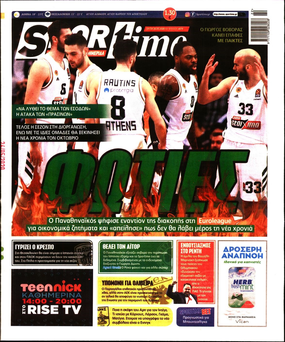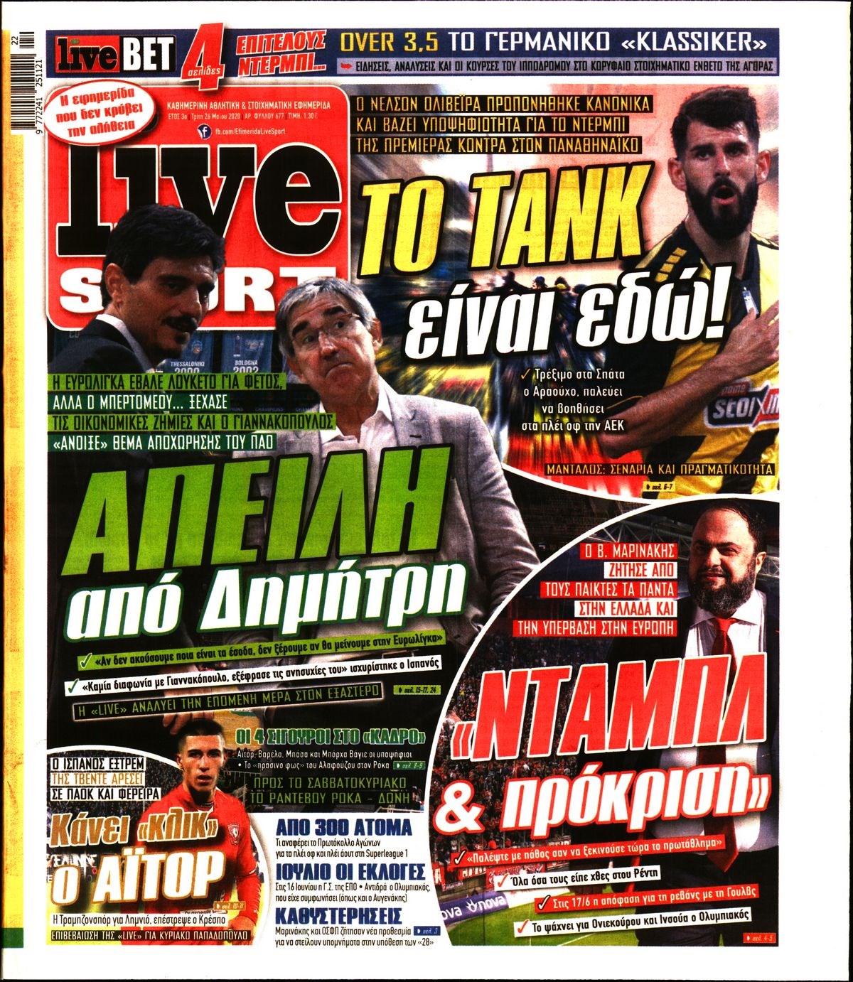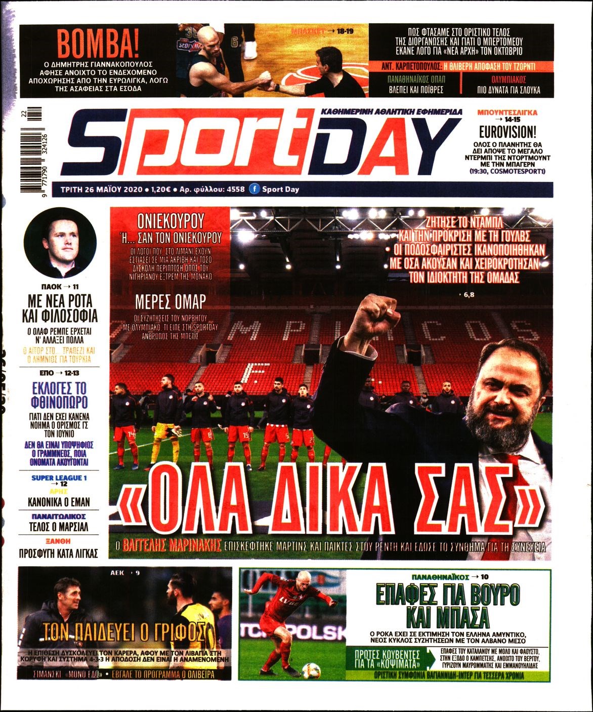 Οι αθλητικές εφημερίδες 26/5/2020 Διονύσης Νίκκας 06:42, Τρίτη 26 Μαΐου 2020 Media Διαβάστε τα πρωτοσέλιδα των αθλητικών εφημερίδων… ΑΘΛΗΤΙΚΕΣ ΕΦΗΜΕΡΙΔΕΣ ΠΡΩΤΟΣΕΛΙΔΑ Μοιράσου το: σχολίασε κι εσύ (0 σχόλια) Ακολουθήστε το enikos.gr στο Google News και μάθετε πρώτοι όλες τις ειδήσεις Δείτε όλες τις τελευταίες ειδήσεις από την Ελλάδα και τον Κόσμο στο enikos.gr Ειδήσεις Ροή Ειδήσεων 42 λεπτά πριν Χριστούγεννα στα μπλόκα: Επιμένουν στις κινητοποιήσεις τους οι αγρότες – Ανοίγουν τα διόδια το Σαββατοκύριακο 1 ώρα πριν Ουκρανία: Η άνευ προηγουμένου επίθεση σε ρωσικό τάνκερ στη Μεσόγειο και το μήνυμα προς στον Πούτιν – Το «μακρύ χέρι» του Κιέβου 19 λεπτά πριν Πούτιν: Τα μηνύματα σε Ευρώπη και ΝΑΤΟ από το μαραθώνιο «σόου» του – Η απαίτηση για «σεβασμό» και η ειρήνη «με τους όρους» της Μόσχας 1 ώρα πριν Τραμπ: Δεν αποκλείει την πιθανότητα ενός πολέμου στη Βενεζουέλα – «Ο Μαδούρο ξέρει καλύτερα από τον καθένα τι ακριβώς θέλω» 2 ώρες πριν Συνεχίζει να προκαλεί ο Μίτσκοσκι: «Για μένα το όνομα Μακεδονία είναι ιερό» 4 ώρες πριν Πούτιν: «Ναι, είμαι ερωτευμένος» – Βίντεο από τη σπάνια προσωπική παραδοχή του 2 ώρες πριν Αριθμολογία: Οι άνθρωποι που έχουν γεννηθεί αυτές τις 4 ημερομηνίες, συχνά παρεξηγούνται – «Η καλοσύνη τους κρύβει τεράστια δύναμη» 1 ώρα πριν Ύπνος: Μια κρυφή κατάσταση του εγκεφάλου πριν από τον ύπνο μπορεί να είναι το “κλειδί” για υψηλή ευφυΐα και δημιουργικότητα 3 ώρες πριν Ξεχάστε το καθάρισμα το Σαββατοκύριακο: Ο «κανόνας των 20 λεπτών» που θα σας λύσει τα χέρια 20 λεπτά πριν Ανακαλύφθηκαν αρχαία χρυσά νομίσματα 2.200 ετών που απεικονίζουν τον θεό Απόλλωνα – Η άγνωστη σύνδεση με τον Φίλιππο Β΄ της Μακεδονίας 4 λεπτά πριν Ολυμπιακός – Βιλερμπάν 107-84: Επιστροφή στις νίκες με… προπόνηση 10 λεπτά πριν Νέος Κόσμος: Συνελήφθη 41χρονος με ένταλμα από την Τουρκία για εμπόριο ναρκωτικών και ληστεία 19 λεπτά πριν Πούτιν: Τα μηνύματα σε Ευρώπη και ΝΑΤΟ από το μαραθώνιο «σόου» του – Η απαίτηση για «σεβασμό» και η ειρήνη «με τους όρους» της Μόσχας 20 λεπτά πριν Ανακαλύφθηκαν αρχαία χρυσά νομίσματα 2.200 ετών που απεικονίζουν τον θεό Απόλλωνα – Η άγνωστη σύνδεση με τον Φίλιππο Β΄ της Μακεδονίας 25 λεπτά πριν Νίκος Ξυλούρης: Συγκινεί η χήρα του σπουδαίου καλλιτέχνη – «Ευχαριστώ όλο τον κόσμο που τον κρατάει ζωντανό 45 χρόνια» ENIKOS NETWORK Το ΕΚΑΒ τιμήθηκε από την Ακαδημία Αθηνών για τα 40 χρόνια προσφοράς του Έχετε πραγματικά μεγάλη καρδιά; 10 χαρακτηριστικά όσων έχουν καλοσύνη Αναστολή μέτρων αναγκαστικής εκτέλεσης για κτηνοτρόφους που πλήττονται από την ευλογιά των αιγοπροβάτων Πλήρης επάρκεια προϊόντων στις λαϊκές της Αττικής, παρά τις αγροτικές κινητοποιήσεις – Τι απαντούν οι πωλητές Χαρτογραφώντας το «σημείο χωρίς επιστροφή»: Για πρώτη φορά αποκαλύπτεται με λεπτομέρεια το ακανθώδες όριο της ατμόσφαιρας τ... Η Google καταργεί τη λειτουργία «dark web report» – Πώς θα μπορούν οι χρήστες να διαγράφουν τα δεδομένα τους περισσότερα 22:42 , Παρασκευή 19 Δεκεμβρίου 2025 Γιώργος Γιαννόπουλος για “Το σόι σου”: “Είναι ευτυχία και ευλογία αυτή η σειρά” «Είναι ευτυχία και ευλογία η συγκυρία αυτής της σειράς», θα πει ο Γιώργος Γιαννόπουλος -ο αγαπ... 20:37 , Παρασκευή 19 Δεκεμβρίου 2025 Don’t Forget The Lyrics: Η Έλλη Κοκκίνου υποδέχεται 4 παίκτες που θα κάνουν τα πάντα για να μη χάσουν ούτε… μισή λέξη από τους στίχους Το «Don’t Forget The Lyrics» επιστρέφει απόψε, Παρασκευή 19 Δεκεμβρίου, στις 21:00 με νέο επει... 19:31 , Παρασκευή 19 Δεκε