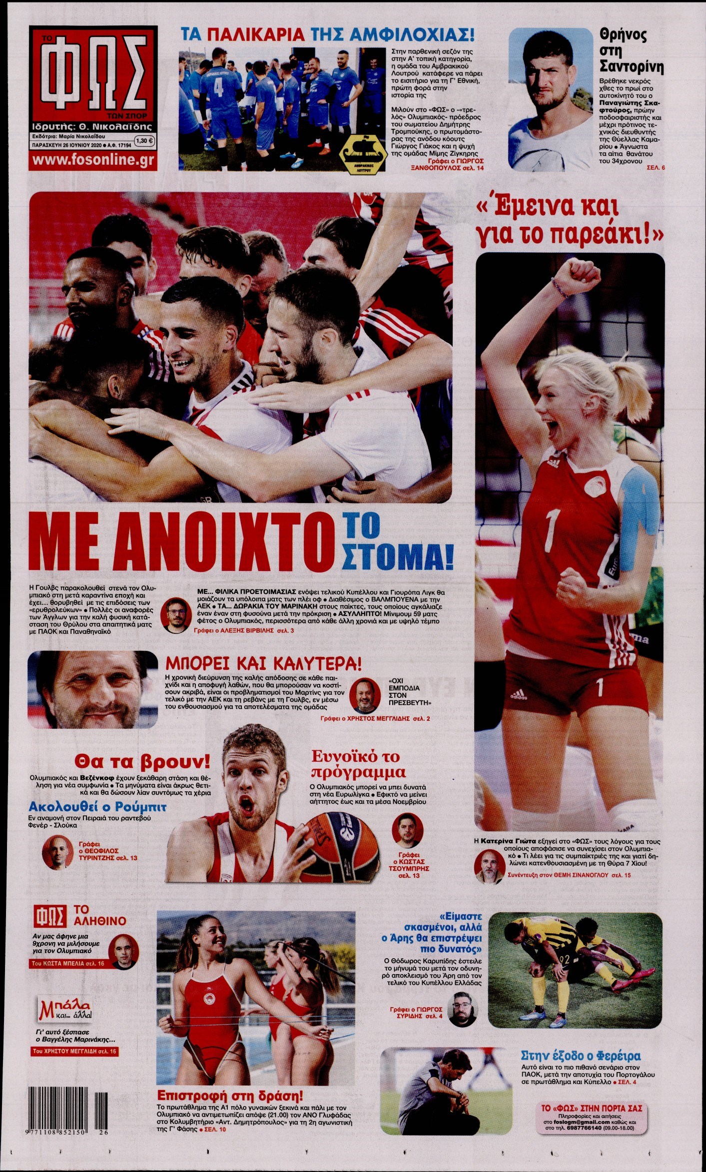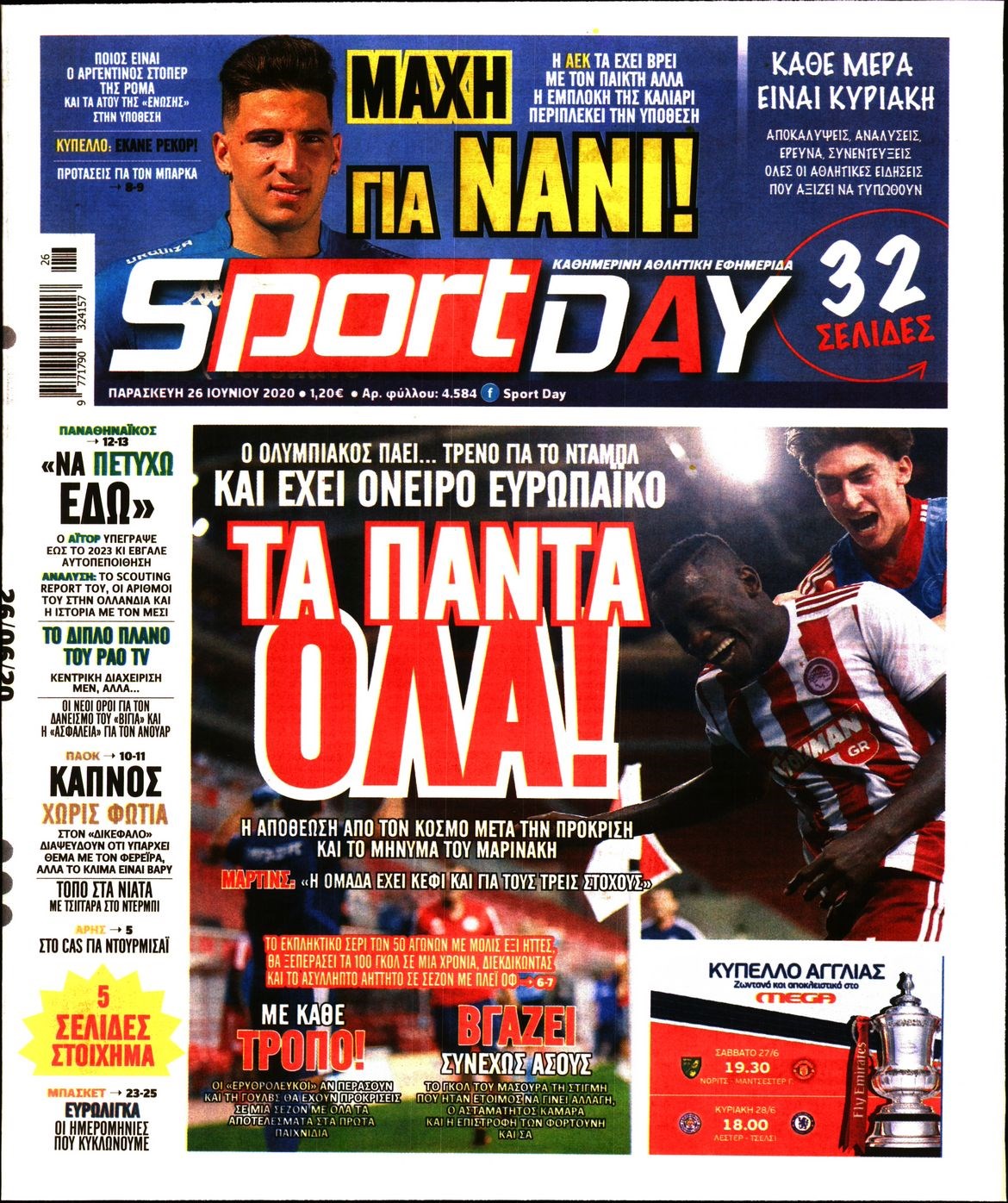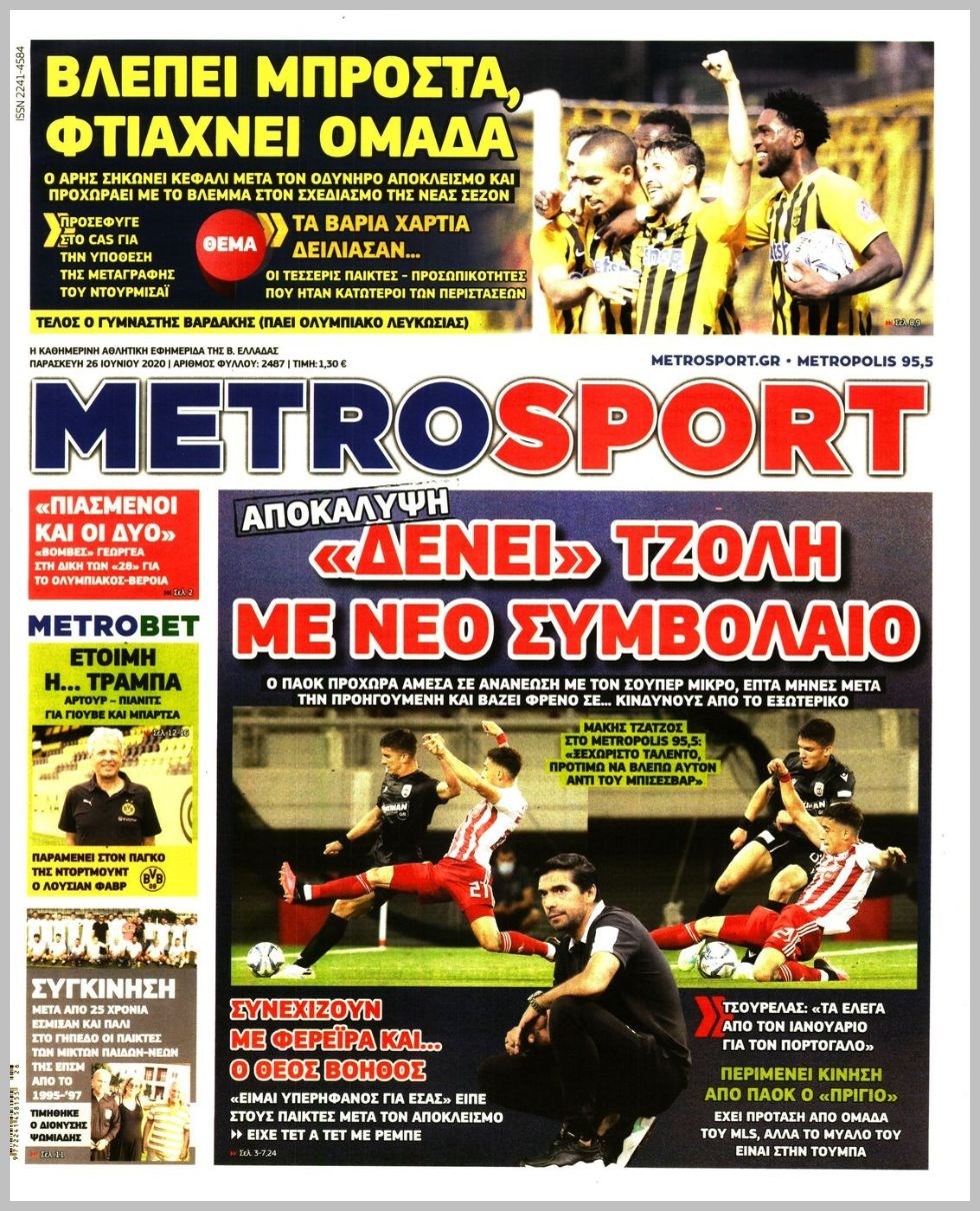 Οι αθλητικές εφημερίδες 26/6/2020 Διονύσης Νίκκας 06:42, Παρασκευή 26 Ιουνίου 2020 Media Διαβάστε τα πρωτοσέλιδα των αθλητικών εφημερίδων… ΑΘΛΗΤΙΚΕΣ ΕΦΗΜΕΡΙΔΕΣ Μοιράσου το: σχολίασε κι εσύ (0 σχόλια) Ακολουθήστε το enikos.gr στο Google News και μάθετε πρώτοι όλες τις ειδήσεις Δείτε όλες τις τελευταίες ειδήσεις από την Ελλάδα και τον Κόσμο στο enikos.gr Ειδήσεις Ροή Ειδήσεων 10 λεπτά πριν Υπόθεση Έπσταϊν: Το Υπουργείο Δικαιοσύνης δημοσιοποίησε μια σειρά από εξαιρετικά επεξεργασμένα αρχεία – «Λείπουν τα πιο σημαντικά έγγραφα», λένε οι Δημοκρατικοί 2 ώρες πριν Σαρωτικοί οι έλεγχοι στους δρόμους ενόψει εορτών – Μπλόκα της τροχαίας σε κεντρικές αρτηρίες της Αττικής 21 λεπτά πριν ΟΝΕΧ – MEGATUGS: Ξεκίνησε η ναυπήγηση ρυμουλκών στην Ελλάδα – Προθάλαμος πολεμικών πλοίων – Δείτε φωτογραφίες και βίντεο 9 ώρες πριν Χριστούγεννα στα μπλόκα: Επιμένουν στις κινητοποιήσεις τους οι αγρότες – Ανοίγουν τα διόδια το Σαββατοκύριακο 9 ώρες πριν Πούτιν: Τα μηνύματα σε Ευρώπη και ΝΑΤΟ από το μαραθώνιο «σόου» του – Η απαίτηση για «σεβασμό» και η ειρήνη «με τους όρους» της Μόσχας 2 ώρες πριν Αυγά: Πόσα μπορείτε να τρώτε την ημέρα με ασφάλεια για μέγιστη πρόσληψη πρωτεΐνης 2 ώρες πριν Τα ζώδια σήμερα, Σάββατο 20 Δεκεμβρίου: Παρθένοι, το σύμπαν σας δίνει το κλειδί 9 ώρες πριν Ανακαλύφθηκαν αρχαία χρυσά νομίσματα 2.200 ετών που απεικονίζουν τον θεό Απόλλωνα – Η άγνωστη σύνδεση με τον Φίλιππο Β΄ της Μακεδονίας 2 ώρες πριν Οπτική ψευδαίσθηση: Μόνο αν είσαι ο Σέρλοκ Χολμς θα βρεις τον αριθμό «87» σε 7 δευτερόλεπτα 5 λεπτά πριν ΗΠΑ: Τέσσερις μετανάστες πέθαναν σε κέντρα κράτησης – Αύξηση θανάτων σε επίπεδο ρεκόρ το 2025 10 λεπτά πριν Υπόθεση Έπσταϊν: Το Υπουργείο Δικαιοσύνης δημοσιοποίησε μια σειρά από εξαιρετικά επεξεργασμένα αρχεία – «Λείπουν τα πιο σημαντικά έγγραφα», λένε οι Δημοκρατικοί 13 λεπτά πριν Καιρός: Αλλαγή σκηνικού σήμερα με βροχές και πτώση της θερμοκρασίας – Οι προβλέψεις των μετεωρολόγων για τα Χριστούγεννα 21 λεπτά πριν ΟΝΕΧ – MEGATUGS: Ξεκίνησε η ναυπήγηση ρυμουλκών στην Ελλάδα – Προθάλαμος πολεμικών πλοίων – Δείτε φωτογραφίες και βίντεο 30 λεπτά πριν Φοινικούντα: Σήμερα απολογείται ο 30χρονος γιος γνωστού επιχειρηματία της Πλάκας ENIKOS NETWORK Το τεστ των 10 δευτερολέπτων που μπορεί να προβλέψει το προσδόκιμο ζωής σας – Τι λέει ειδικός του Cleveland Επιλέξτε καρέκλα για να μάθετε ποια είναι τα κρυφά χαρακτηριστικά σας – Τι αποκάλυψε για εσάς αυτό το τεστ προσωπικότητας; Αναστολή μέτρων αναγκαστικής εκτέλεσης για κτηνοτρόφους που πλήττονται από την ευλογιά των αιγοπροβάτων Πλήρης επάρκεια προϊόντων στις λαϊκές της Αττικής, παρά τις αγροτικές κινητοποιήσεις – Τι απαντούν οι πωλητές Χαρτογραφώντας το «σημείο χωρίς επιστροφή»: Για πρώτη φορά αποκαλύπτεται με λεπτομέρεια το ακανθώδες όριο της ατμόσφαιρας τ... Η Google καταργεί τη λειτουργία «dark web report» – Πώς θα μπορούν οι χρήστες να διαγράφουν τα δεδομένα τους περισσότερα 05:48 , Σάββατο 20 Δεκεμβρίου 2025 Οι οικονομικές εφημερίδες 20/12/2025 Διαβάστε τα πρωτοσέλιδα από τις οικονομικές εφημερίδες, σήμερα 20/12/2025. 05:43 , Σάββατο 20 Δεκεμβρίου 2025 Οι αθλητικές εφημερίδες 20/12/2025 Διαβάστε τα πρωτοσέλιδα από τις αθλητικές εφημερίδες, σήμερα 20/12/2025. 05:38 , Σάββατο 20 Δεκεμβρίου 2025 Οι πολιτικές εφημερίδες 20/12/2025 Διαβάστε τα πρωτοσέλιδα από τις πολιτικές εφημερίδες, σήμερα 20/12/2025. 04:20 , Σάββατο 20 Δεκεμβρίου 2025 Αγγελική Νικολούλη: Τα συλλυπητήρια για την απώλεια της Ειρήν