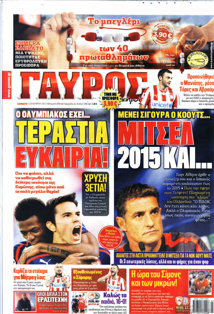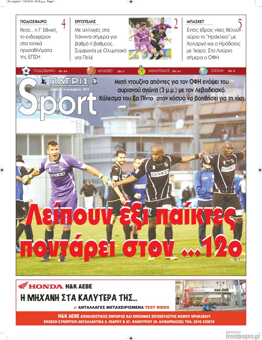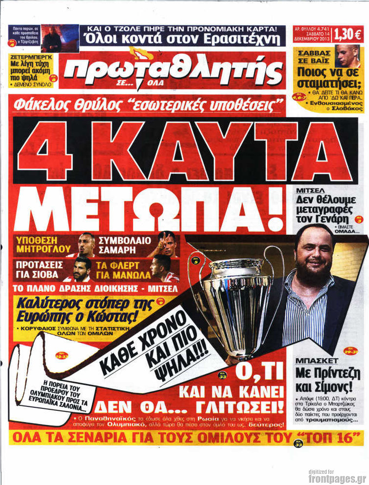 Οι αθλητικές εφημερίδες Enikos Newsroom 08:31, Σάββατο 14 Δεκεμβρίου 2013 Media Οι αθλητικές εφημερίδες Διαβάστε τα πρωτοσέλιδα των αθλητικών εφημερίδων: ΑΘΛΗΤΙΚΕΣ ΕΦΗΜΕΡΙΔΕΣ ΠΡΩΤΟΣΕΛΙΔΑ Μοιράσου το: σχολίασε κι εσύ (0 σχόλια) Ακολουθήστε το enikos.gr στο Google News και μάθετε πρώτοι όλες τις ειδήσεις Δείτε όλες τις τελευταίες ειδήσεις από την Ελλάδα και τον Κόσμο στο enikos.gr Ειδήσεις Ροή Ειδήσεων 2 ώρες πριν Αυξάνουν την πίεση προς την κυβέρνηση οι αγρότες: Κλείνουν παρακαμπτήριους και ανοίγουν διόδια – Τι θα γίνει τις γιορτές 28 λεπτά πριν ΟΠΕΚΕΠΕ: Προφυλακιστέος ο φερόμενος αρχηγός και ο λογιστής της εγκληματικής οργάνωσης 1 ώρα πριν Φοινικούντα: Το Σάββατο απολογείται ο 30χρονος γιος γνωστού επιχειρηματία της Πλάκας που παραδόθηκε – Όσα είπε στους αστυνομικούς και ο ρόλος του στο έγκλημα 1 ώρα πριν Μπορεί ο Μαδούρο να αντέξει τον αποκλεισμό του Τραμπ; Τι θα χρειαστεί η Ουάσινγκτον για να τον ανατρέψει 3 ώρες πριν Πρίγκιπας Ουίλιαμ – Κέιτ: Η νέα οικογενειακή φωτογραφία για τις Χριστουγεννιάτικες κάρτες του 2025 2 ώρες πριν Ύπνος: Η απλή βραδινή ρουτίνα για να προστατεύσετε τα μαλλιά σας από το κρύο κατά τη διάρκεια του χειμώνα 3 ώρες πριν Manifesting: Πώς να συναντήσετε τον σύντροφο της ζωής σας, ανάλογα με τον μήνα γέννησής σας 2 ημέρες πριν 20 χρόνια τα Χριστούγεννα ξεκινούν στα Public με μεγάλη ποικιλία σε δώρα! 1 ώρα πριν Αρχαιολόγοι ανακάλυψαν ρωμαϊκά τεχνουργήματα από μια πόλη που δεν υπήρξε ποτέ – Τα τρία εντυπωσιακά κτίρια και ο αμφορέας με τις… σαρδέλες 8 λεπτά πριν ΑΕΚ – Κραϊόβα 3-2: Επική ανατροπή και πρόκριση στους «16» του Conference League η Ένωση 28 λεπτά πριν ΟΠΕΚΕΠΕ: Προφυλακιστέος ο φερόμενος αρχηγός και ο λογιστής της εγκληματικής οργάνωσης 38 λεπτά πριν Αθηνά Μαξίμου: Η τρυφερή ανάρτηση για τα γενέθλια του Αιμίλιου Χειλάκη – «Είναι η εκλεκτική συγγένειά μου, η επιλογή και η ευθύνη μου» 53 λεπτά πριν Παναθηναϊκός – Χάποελ Τελ Αβίβ 93-82: Με… φόρα από την Κωνσταντινούπολη 1 ώρα πριν Μπορεί ο Μαδούρο να αντέξει τον αποκλεισμό του Τραμπ; Τι θα χρειαστεί η Ουάσινγκτον για να τον ανατρέψει ENIKOS NETWORK Σε περίοδο αυξημένης δραστηριότητας η γρίπη στην Ελλάδα-Μέτρα προστασίας από τον ΕΟΔΥ Σκέφτεστε συνέχεια συζητήσεις που έχετε κάνει; Τι σημαίνει αυτό, σύμφωνα με ειδικό Στεγαστικό: Τι λέει η ΠΟΜΙΔΑ για τα νέα μέτρα που ανακοίνωσε ο Κυριάκος Μητσοτάκης Λαγκάρντ: Αισιόδοξη για την ανάπτυξη της Ευρωζώνης, αβέβαιη για τον πληθωρισμό Χαρτογραφώντας το «σημείο χωρίς επιστροφή»: Για πρώτη φορά αποκαλύπτεται με λεπτομέρεια το ακανθώδες όριο της ατμόσφαιρας τ... Η Google καταργεί τη λειτουργία «dark web report» – Πώς θα μπορούν οι χρήστες να διαγράφουν τα δεδομένα τους περισσότερα 17:45 , Πέμπτη 18 Δεκεμβρίου 2025 ROUK ZOUK: Εορταστικό επεισόδιο με καλεσμένους τους πρωταγωνιστές του «Γιατί ρε πατέρα» Το Σάββατο 20 Δεκεμβρίου στις 21:00, η Ζέτα Μακρυπούλια υποδέχεται εκλεκτούς ηθοποιούς που όλο... 17:20 , Πέμπτη 18 Δεκεμβρίου 2025 Άγιος έρωτας: Η Χριστίνα εξομολογείται στον πατέρα Νικόλαο, απόψε στις 21:00 στον Alpha Η Νότα αποφασίζει να εκδικηθεί τον Πέτρο και τον Στέφανο, για χάρη του Λούη, όμως τα πράγματα ... 16:50 , Πέμπτη 18 Δεκεμβρίου 2025 Να μ’ αγαπάς: Ζωή και Φωτεινή συμφιλιώνονται ως μάνα με κόρη, απόψε στις 20:00 Η ταυτότητα του Άγγελου αποκαλύπτεται στο νέο επεισόδιο της σειράς “Να μ’ αγαπάς... 15:52 , Πέμπτη 18 Δεκεμβρίου 2025 Το Σπίτι Δίπλα Στο Ποτάμι: Το καθηλωτικό τελευταίο επεισόδιο για το 2025 απόψε στις 22:30 Καθηλώνει το 