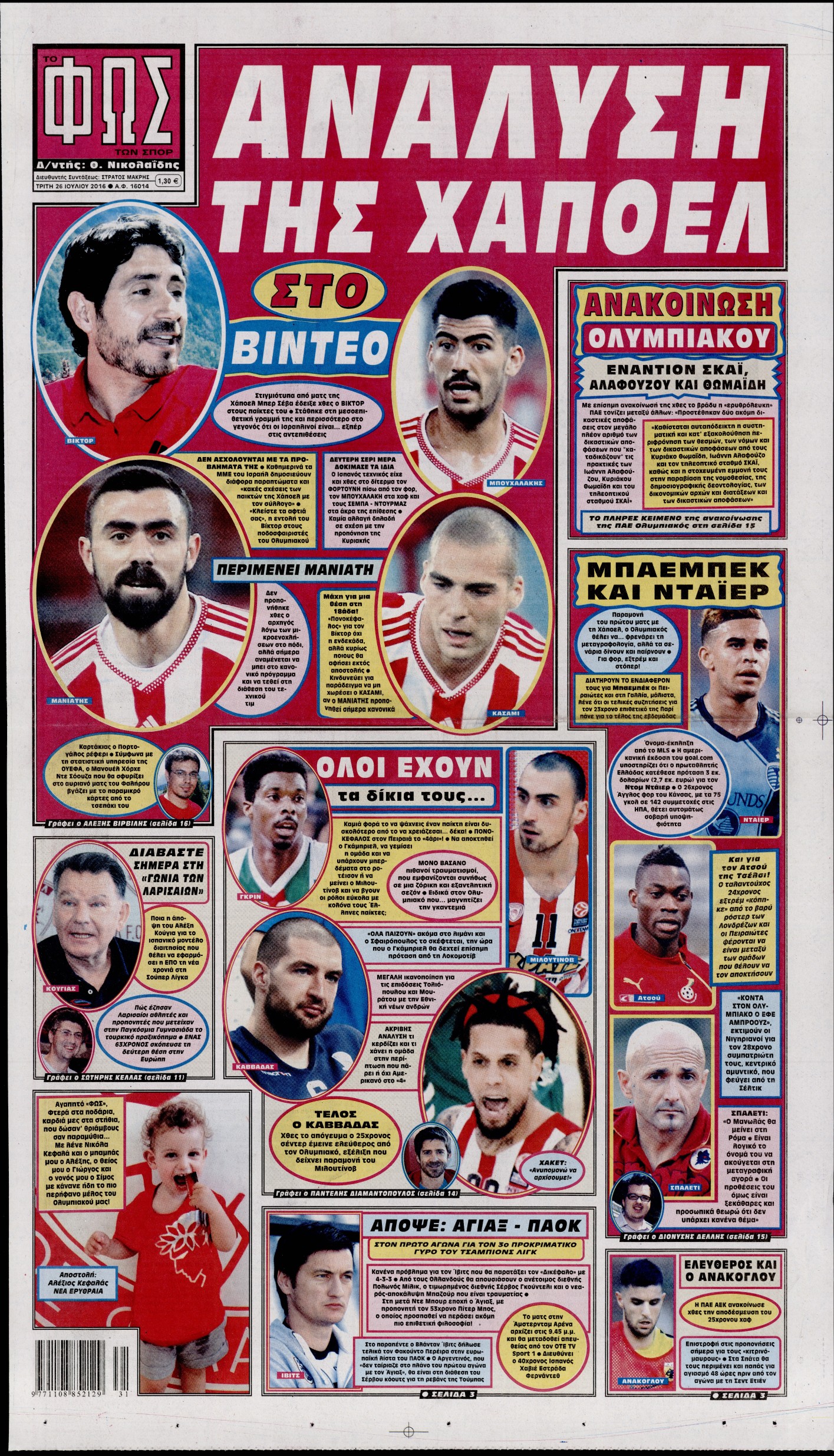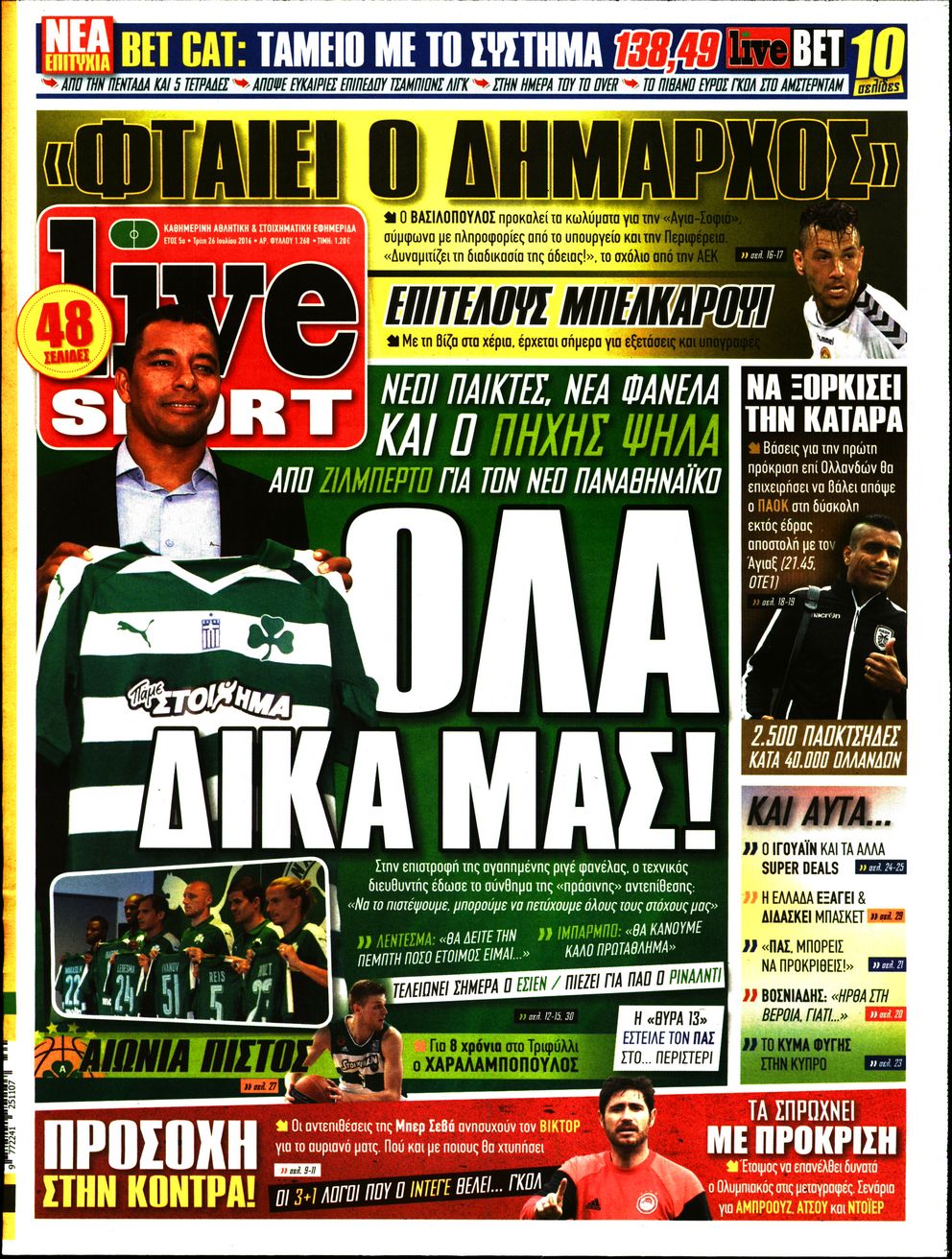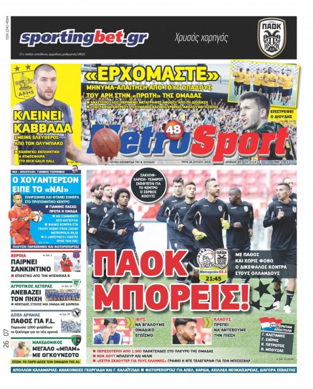 Oι αθλητικές εφημερίδες 26/7/2016 Enikos Newsroom 04:59, Τρίτη 26 Ιουλίου 2016 Media Διαβάστε τα σημερινά πρωτοσέλιδα των αθλητικών εφημερίδων: ΑΘΛΗΤΙΚΕΣ ΕΦΗΜΕΡΙΔΕΣ ΠΡΩΤΟΣΕΛΙΔΑ Μοιράσου το: σχολίασε κι εσύ (0 σχόλια) Ακολουθήστε το enikos.gr στο Google News και μάθετε πρώτοι όλες τις ειδήσεις Δείτε όλες τις τελευταίες ειδήσεις από την Ελλάδα και τον Κόσμο στο enikos.gr Ειδήσεις Ροή Ειδήσεων 4 ώρες πριν Αγρότες: «Όχι στον διάλογο, μας εμπαίζει η κυβέρνηση» – Αποφάσισαν κλιμάκωση των κινητοποιήσεων, τι θα γίνει τα Χριστούγεννα 1 ώρα πριν Αθήνα: Εξαρθρώθηκε εγκληματική οργάνωση που διακινούσε ναρκωτικά σε μορφή σοκολάτας – Δύο τράπερ ανάμεσα στους 4 συλληφθέντες – ΒΙΝΤΕΟ 1 ώρα πριν Στη φυλακή ο «Έλληνας Εσκομπάρ» και τρεις συνεργοί του για το φορτίο με την κοκαΐνη – Τι υποστήριξε στην απολογία του 3 ώρες πριν Γιώργος Μαζωνάκης: «Έχει υποστεί ένα σωρό εκβιαστικές πρακτικές – Του είπαν ότι θα του βάλουν τον συγκεκριμένο άνθρωπο να τον καταγγείλει» 1 ώρα πριν Γεωργιάδης για Κωνσταντοπούλου: «Έχει καταφέρει να ξεπεράσει ακόμη και τον εαυτό της – Το ερώτημα είναι “γιατί τώρα;”» 5 ώρες πριν Τα 5 ζώδια που θα ευνοηθούν στα οικονομικά τους το 2026 – «Τραβούν το χρήμα σαν μαγνήτες» 2 ώρες πριν Γάμος: 11 ψυχρές αλλά ευγενικές φράσεις, που λέει ένας άνδρας όταν σκέφτεται τον χωρισμό 1 ώρα πριν Σφουγγάρισμα: Η συνήθεια που θα σας βοηθήσει να διατηρήσετε το σπίτι σας καθαρό και τακτοποιημένο 1 ημέρα πριν 20 χρόνια τα Χριστούγεννα ξεκινούν στα Public με μεγάλη ποικιλία σε δώρα! 4 λεπτά πριν Ολυμπιακός: Τι ζήτησε από τον Άγιο Βασίλη ο Χοσέ Λουίς Μεντιλίμπαρ 10 λεπτά πριν Manifesting: Πώς να συναντήσετε τον σύντροφο της ζωής σας, ανάλογα με τον μήνα γέννησής σας 19 λεπτά πριν Hellenic Train: Καθυστερήσεις στον Προαστιακό λόγω φωτιάς κοντά στη σιδηροδρομική γραμμή 31 λεπτά πριν ΗΠΑ: Νέες φωτογραφίες από τον φάκελο Επστάιν έδωσαν στην δημοσιότητα οι Δημοκρατικοί 36 λεπτά πριν ΕΦΕΤ: Συμβουλές για ασφαλή κατανάλωση τροφίμων κατά την εορταστική περίοδο των Χριστουγέννων ENIKOS NETWORK Σε περίοδο αυξημένης δραστηριότητας η γρίπη στην Ελλάδα-Μέτρα προστασίας από τον ΕΟΔΥ Σκέφτεστε συνέχεια συζητήσεις που έχετε κάνει; Τι σημαίνει αυτό, σύμφωνα με ειδικό Servicers: Μικρή μείωση στα κόκκινα δάνεια που διαχειρίζονται – Αναλυτικά τα στοιχεία ΑΑΔΕ: “Αλλάζει πρόσωπο” το Φορολογικό Μητρώο για πολίτες και επιχειρήσεις – Όλες οι λεπτομέρειες Χαρτογραφώντας το «σημείο χωρίς επιστροφή»: Για πρώτη φορά αποκαλύπτεται με λεπτομέρεια το ακανθώδες όριο της ατμόσφαιρας τ... Η Google καταργεί τη λειτουργία «dark web report» – Πώς θα μπορούν οι χρήστες να διαγράφουν τα δεδομένα τους περισσότερα 17:45 , Πέμπτη 18 Δεκεμβρίου 2025 ROUK ZOUK: Εορταστικό επεισόδιο με καλεσμένους τους πρωταγωνιστές του «Γιατί ρε πατέρα» Το Σάββατο 20 Δεκεμβρίου στις 21:00, η Ζέτα Μακρυπούλια υποδέχεται εκλεκτούς ηθοποιούς που όλο... 17:20 , Πέμπτη 18 Δεκεμβρίου 2025 Άγιος έρωτας: Η Χριστίνα εξομολογείται στον πατέρα Νικόλαο, απόψε στις 21:00 στον Alpha Η Νότα αποφασίζει να εκδικηθεί τον Πέτρο και τον Στέφανο, για χάρη του Λούη, όμως τα πράγματα ... 16:50 , Πέμπτη 18 Δεκεμβρίου 2025 Να μ’ αγαπάς: Ζωή και Φωτεινή συμφιλιώνονται ως μάνα με κόρη, απόψε στις 20:00 Η ταυτότητα του Άγγελου αποκαλύπτεται στο νέο επεισόδιο της σειράς “Να μ’ αγαπάς... 15:52 , Πέμπτη 18 Δεκεμβρίου 2025 Το Σπίτι Δίπλα Στο Ποτάμι: Το καθηλωτικό τελευταίο επεισόδιο για το 2025 απόψε στις 22:30 Καθηλώνει το σημερινό επεισόδιο της σειράς “Το Σπίτι 
