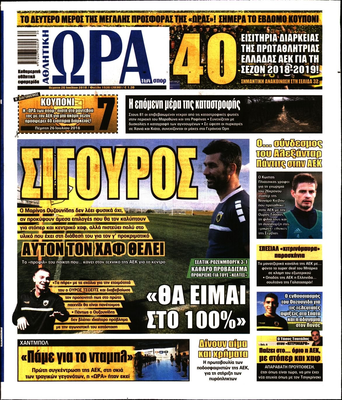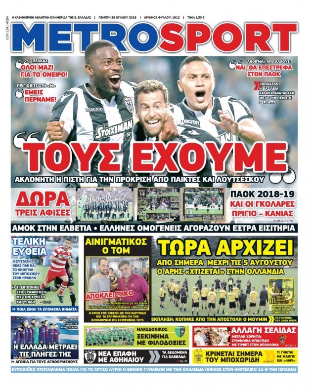 Οι αθλητικές εφημερίδες 26/7/2018 Enikos Newsroom 06:52, Πέμπτη 26 Ιουλίου 2018 Media Διαβάστε τα σημερινά πρωτοσέλιδα των αθλητικών εφημερίδων. ΑΘΛΗΤΙΚΕΣ ΕΦΗΜΕΡΙΔΕΣ ΠΡΩΤΟΣΕΛΙΔΑ Μοιράσου το: σχολίασε κι εσύ (0 σχόλια) Ακολουθήστε το enikos.gr στο Google News και μάθετε πρώτοι όλες τις ειδήσεις Δείτε όλες τις τελευταίες ειδήσεις από την Ελλάδα και τον Κόσμο στο enikos.gr Ειδήσεις Ροή Ειδήσεων 3 ώρες πριν Μεσόγειος: Η διαδρομή του ρωσικού τάνκερ «Qendil» και η στοχευμένη επίθεση της Ουκρανίας με drone – Ο Πούτιν προειδοποίησε για αντίποινα 6 λεπτά πριν Αγρότες: Έκλεισαν την παρακαμπτήρια της Ιόνιας Οδού στη θέση Χαλίκι 2 ώρες πριν Εμπλοκή και αερομαχίες με οπλισμένα τουρκικά F-16 στο Αιγαίο 3 ώρες πριν Αττική: Θρίλερ με νεκρό βρέφος 5 μηνών – Κοιμόταν στο ίδιο κρεβάτι με τους γονείς του 2 ώρες πριν Πούτιν: «Ναι, είμαι ερωτευμένος» – Βίντεο από τη σπάνια προσωπική παραδοχή του 19 λεπτά πριν Αριθμολογία: Οι άνθρωποι που έχουν γεννηθεί αυτές τις 4 ημερομηνίες, συχνά παρεξηγούνται – «Η καλοσύνη τους κρύβει τεράστια δύναμη» 2 ώρες πριν Μήπως έχετε χάσει τον εαυτό σας στη σχέση σας; 7 «αθόρυβες» υποχωρήσεις που μάλλον κάνατε, χωρίς να το συνειδητοποιήσετε 1 ώρα πριν Ξεχάστε το καθάρισμα το Σαββατοκύριακο: Ο «κανόνας των 20 λεπτών» που θα σας λύσει τα χέρια 4 ώρες πριν Κουίζ για την παλιά Αθήνα: Αναγνωρίζετε την περιοχή; Έχετε περάσει 100% από εκεί 6 λεπτά πριν Αγρότες: Έκλεισαν την παρακαμπτήρια της Ιόνιας Οδού στη θέση Χαλίκι 9 λεπτά πριν Ανδρέας Λυκουρέντζος: Υπέβαλε την παραίτησή του ο πρόεδρος του ΕΛΓΑ, αλλά δεν έγινε δεκτή – Όλο το παρασκήνιο 14 λεπτά πριν Ηράκλειο: «Ιπτάμενοι» Άγιοι Βασίληδες μοίρασαν δώρα και χαμόγελα στα παιδιά στο ΠΑΓΝΗ – Δείτε βίντεο 19 λεπτά πριν Αριθμολογία: Οι άνθρωποι που έχουν γεννηθεί αυτές τις 4 ημερομηνίες, συχνά παρεξηγούνται – «Η καλοσύνη τους κρύβει τεράστια δύναμη» 26 λεπτά πριν Ρύθμιση του ΥΠΑΑΤ για τους αγρότες που δεν έλαβαν τη βασική ενίσχυση λόγω εκκρεμοτήτων στο Κτηματολόγιο ENIKOS NETWORK Το ΕΚΑΒ τιμήθηκε από την Ακαδημία Αθηνών για τα 40 χρόνια προσφοράς του Έχετε πραγματικά μεγάλη καρδιά; 10 χαρακτηριστικά όσων έχουν καλοσύνη Έρχονται νέες προσλήψεις σε Δήμο – Όλες οι λεπτομέρειες Επίδομα παιδιού: Πότε ανοίγει ξανά η πλατφόρμα για τις αιτήσεις Χαρτογραφώντας το «σημείο χωρίς επιστροφή»: Για πρώτη φορά αποκαλύπτεται με λεπτομέρεια το ακανθώδες όριο της ατμόσφαιρας τ... Η Google καταργεί τη λειτουργία «dark web report» – Πώς θα μπορούν οι χρήστες να διαγράφουν τα δεδομένα τους περισσότερα 20:37 , Παρασκευή 19 Δεκεμβρίου 2025 Don’t Forget The Lyrics: Η Έλλη Κοκκίνου υποδέχεται 4 παίκτες που θα κάνουν τα πάντα για να μη χάσουν ούτε… μισή λέξη από τους στίχους Το «Don’t Forget The Lyrics» επιστρέφει απόψε, Παρασκευή 19 Δεκεμβρίου, στις 21:00 με νέο επει... 19:31 , Παρασκευή 19 Δεκεμβρίου 2025 GNTM: Απόψε ο μεγάλος τελικός για τους 4 φιναλίστ Έπειτα από μήνες γεμάτους μόδα, δημιουργία και έντονες αναμετρήσεις, το GNTM 2025 κορυφώνεται,... 18:11 , Παρασκευή 19 Δεκεμβρίου 2025 Το σόι σου: Ο Άρης έρχεται στην Ελλάδα για τις γιορτές των Χριστουγέννων – Τι θα δούμε στο αποψινό εορταστικό επεισόδιο Ένα απολαυστικό, εορταστικό επεισόδιο της σειράς “Το σόι σου”, γεμάτο ευτράπελα αλ... 15:15 , Παρασκευή 19 Δεκεμβρίου 2025 Την Κυριακή με τη Realnews: Ό,τι και αν αγοράσεις, σκανάρεις και κερδίζεις! Την Κυριακή με τη Realnews: Ό,τι και αν αγοράσεις, σκανάρεις και κερδίζεις! Με το PADU app, το... ΤΕΛΕΥΤΑΙΕΣ ΕΙΔΗΣΕΙΣ 6 λεπτά πριν Αγρότες: Έκλεισαν την πα