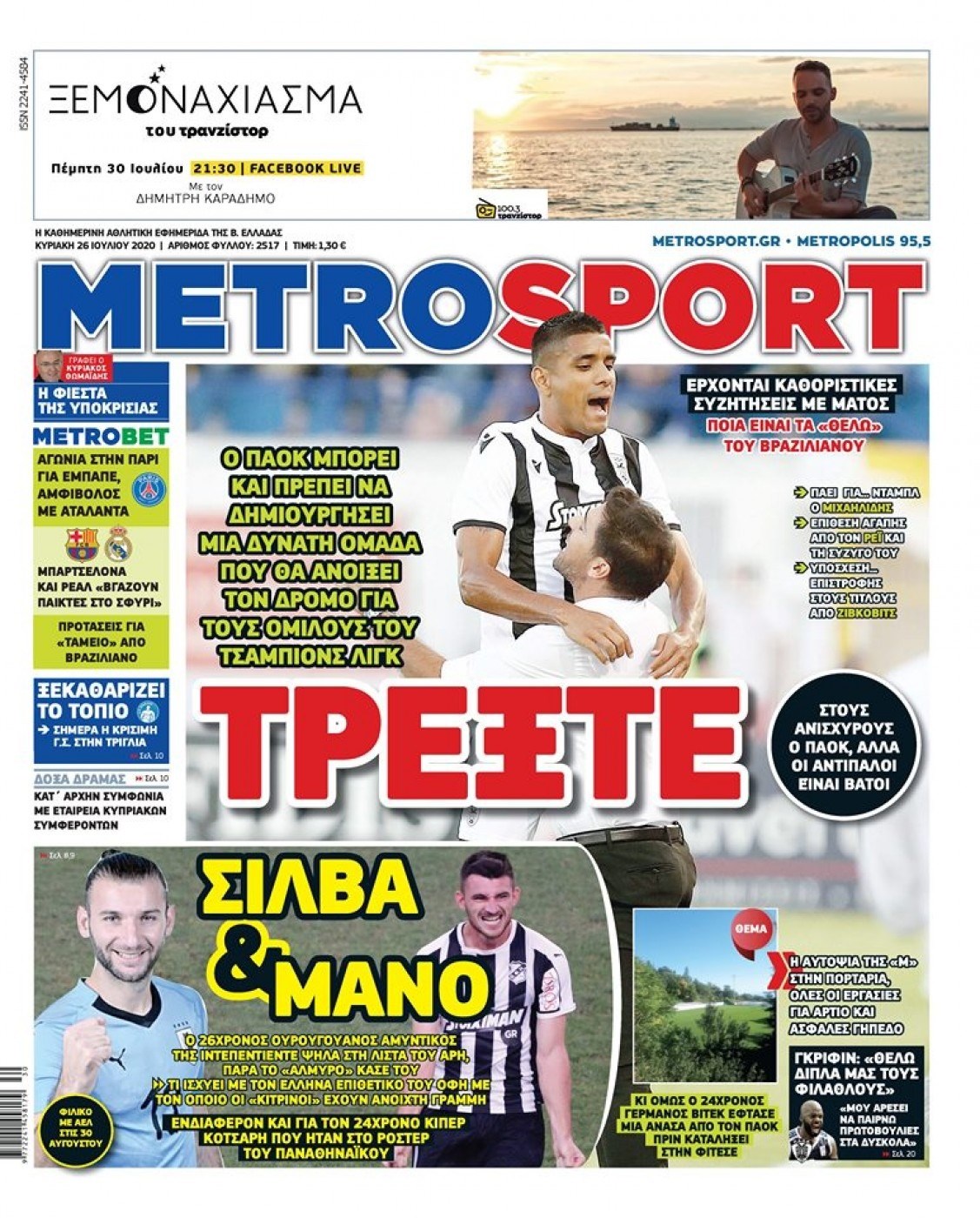 Οι αθλητικές εφημερίδες 26/7/2020 Κώστας Τεό 07:55, Κυριακή 26 Ιουλίου 2020 Media Διαβάστε τα πρωτοσέλιδα των αθλητικών εφημερίδων: ΑΘΛΗΤΙΚΕΣ ΕΦΗΜΕΡΙΔΕΣ ΠΡΩΤΟΣΕΛΙΔΑ Μοιράσου το: σχολίασε κι εσύ (0 σχόλια) Ακολουθήστε το enikos.gr στο Google News και μάθετε πρώτοι όλες τις ειδήσεις Δείτε όλες τις τελευταίες ειδήσεις από την Ελλάδα και τον Κόσμο στο enikos.gr Ειδήσεις Ροή Ειδήσεων 3 ώρες πριν Υπόθεση Έπσταϊν: Το Υπουργείο Δικαιοσύνης δημοσιοποίησε μια σειρά από εξαιρετικά επεξεργασμένα αρχεία – «Λείπουν τα πιο σημαντικά έγγραφα», λένε οι Δημοκρατικοί 15 λεπτά πριν Γιορτές με μπλόκα για τους αγρότες: Ανοίγουν διόδια και μοιράζουν προϊόντα στους ταξιδιώτες 48 λεπτά πριν Εξαφάνιση 33χρονου γιατρού στην Κρήτη: «Άναψα τα φώτα, τρόμαξε και άρχισε να τρέχει στα χωράφια» – Η τελευταία διαδρομή και η μαρτυρία «κλειδί» 2 ώρες πριν Ο «χάρτης» με τις αυξήσεις και τις φοροελαφρύνσεις του 2026 – Ποιοι και πόσα κερδίζουν 31 λεπτά πριν Τα αρχεία του Έπσταϊν αποκαλύπτουν φωτογραφία του έκπτωτου πρίγκιπα Άντριου – Είναι ξαπλωμένος στην αγκαλιά 5 γυναικών 38 λεπτά πριν Μία νέα «χρυσή» περίοδος αρχίζει για 3 ζώδια από σήμερα – «Μία αναπάντεχη ευκαιρία οδηγεί στην επιτυχία» 5 ώρες πριν Αυγά: Πόσα μπορείτε να τρώτε την ημέρα με ασφάλεια για μέγιστη πρόσληψη πρωτεΐνης 3 ώρες πριν Αρχαιολόγοι ανακάλυψαν σε χωράφι απεικόνιση 600 ετών ενός Αγίου – Τα στοιχεία που δείχνουν ότι μαρτύρησε 2 ώρες πριν Αγχώνεται για το χριστουγεννιάτικο δώρο που πήρε στην πλούσια σύντροφό του – «Φοβάμαι πως θα το βρει φθηνιάρικο, φοράει βραχιόλια Cartier» 7 λεπτά πριν e-ΕΦΚΑ και ΔΥΠΑ: Οι πληρωμές από 22 έως 24 Δεκεμβρίου – Ποιοι θα δουν χρήματα στους λογαριασμούς τους 15 λεπτά πριν Συνελήφθη οδηγός μηχανής που έτρεχε με 161 χλμ στη Συγγρού – Τον έπιασε το ραντάρ της Τροχαίας 15 λεπτά πριν Γιορτές με μπλόκα για τους αγρότες: Ανοίγουν διόδια και μοιράζουν προϊόντα στους ταξιδιώτες 24 λεπτά πριν Τηλεθέαση (19/12): Κυριάρχησε η σειρά «Το σόι σου» – Τι νούμερα έκανε ο τελικός του GNTM 31 λεπτά πριν Τα αρχεία του Έπσταϊν αποκαλύπτουν φωτογραφία του έκπτωτου πρίγκιπα Άντριου – Είναι ξαπλωμένος στην αγκαλιά 5 γυναικών ENIKOS NETWORK Είστε μόνιμα απρόσεκτοι; 3 σημάδια που δείχνουν ότι μπορεί να είναι σύμπτωμα πάθησης Πόσα κιλά παίρνουμε πραγματικά τα Χριστούγεννα, σύμφωνα με την επιστήμη – Πώς να το αποτρέψουμε; Επίδομα παιδιού: Τι αλλάζει από το 2026 – Το όφελος από τις φορολογικές ελαφρύνσεις Mega χριστουγεννιάτικη φορολοταρία: «Κλείδωσε» η ημερομηνία για την κλήρωση – Ερωτήσεις και απαντήσεις Χαρτογραφώντας το «σημείο χωρίς επιστροφή»: Για πρώτη φορά αποκαλύπτεται με λεπτομέρεια το ακανθώδες όριο της ατμόσφαιρας τ... Η Google καταργεί τη λειτουργία «dark web report» – Πώς θα μπορούν οι χρήστες να διαγράφουν τα δεδομένα τους περισσότερα 09:30 , Σάββατο 20 Δεκεμβρίου 2025 «Porto Leone: Στη γειτονιά με τα κόκκινα φανάρια» – Ο Χρόνης αποκαλύπτει στην Αλεξάνδρα το μυστικό για το παιδί της Λένας Η μεγάλη δραματική σειρά του Apha «Porto Leone: Στη γειτονιά με τα κόκκινα φανάρια» μας μεταφέ... 08:14 , Σάββατο 20 Δεκεμβρίου 2025 Τρομεροί γονείς: Η Μαρία Καβογιάννη εισβάλλει στο σπίτι της οικογένειας Στεφανίδη Όσα θα δούμε στο νέο διπλό επεισόδιο της σειράς «Τρομεροί γονείς», σήμερα Σάββατο 20 Δεκεμβρίο... 05:48 , Σάββατο 20 Δεκεμβρίου 2025 Οι οικονομικές εφημερίδες 20/12/2025 Διαβάστε τα πρωτοσέλιδα από τις οικονομικές εφημερίδες, σήμερα 20/12/2025. 05:43 , Σάββατο 20 Δεκεμβρίου 2025 Οι αθλητικές εφημε