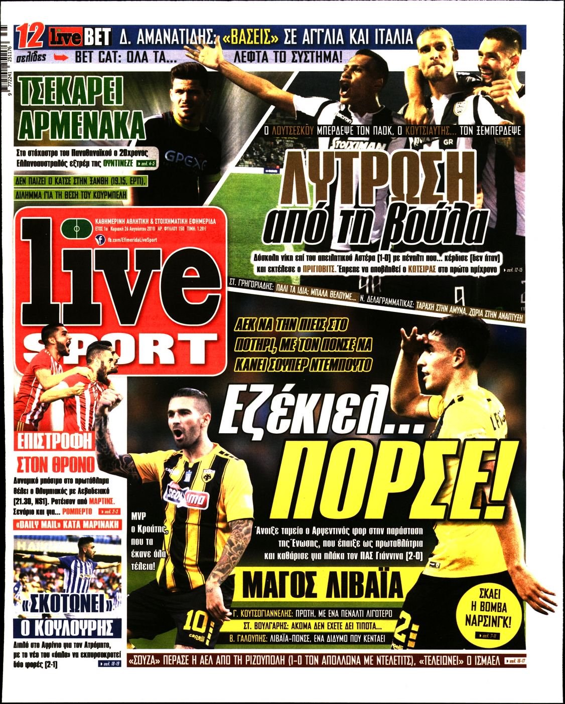 Οι αθλητικές εφημερίδες 26/8/18 Enikos Newsroom 06:38, Κυριακή 26 Αυγούστου 2018 Media Διαβάστε τα πρωτοσέλιδα των αθλητικών εφημερίδων. ΑΘΛΗΤΙΚΕΣ ΕΦΗΜΕΡΙΔΕΣ ΠΡΩΤΟΣΕΛΙΔΑ Μοιράσου το: σχολίασε κι εσύ (0 σχόλια) Ακολουθήστε το enikos.gr στο Google News και μάθετε πρώτοι όλες τις ειδήσεις Δείτε όλες τις τελευταίες ειδήσεις από την Ελλάδα και τον Κόσμο στο enikos.gr Ειδήσεις Ροή Ειδήσεων 3 ώρες πριν Μεσόγειος: Η διαδρομή του ρωσικού τάνκερ «Qendil» και η στοχευμένη επίθεση της Ουκρανίας με drone – Ο Πούτιν προειδοποίησε για αντίποινα 6 λεπτά πριν Αγρότες: Έκλεισαν την παρακαμπτήρια της Ιόνιας Οδού στη θέση Χαλίκι 2 ώρες πριν Εμπλοκή και αερομαχίες με οπλισμένα τουρκικά F-16 στο Αιγαίο 3 ώρες πριν Αττική: Θρίλερ με νεκρό βρέφος 5 μηνών – Κοιμόταν στο ίδιο κρεβάτι με τους γονείς του 2 ώρες πριν Πούτιν: «Ναι, είμαι ερωτευμένος» – Βίντεο από τη σπάνια προσωπική παραδοχή του 19 λεπτά πριν Αριθμολογία: Οι άνθρωποι που έχουν γεννηθεί αυτές τις 4 ημερομηνίες, συχνά παρεξηγούνται – «Η καλοσύνη τους κρύβει τεράστια δύναμη» 2 ώρες πριν Μήπως έχετε χάσει τον εαυτό σας στη σχέση σας; 7 «αθόρυβες» υποχωρήσεις που μάλλον κάνατε, χωρίς να το συνειδητοποιήσετε 1 ώρα πριν Ξεχάστε το καθάρισμα το Σαββατοκύριακο: Ο «κανόνας των 20 λεπτών» που θα σας λύσει τα χέρια 4 ώρες πριν Κουίζ για την παλιά Αθήνα: Αναγνωρίζετε την περιοχή; Έχετε περάσει 100% από εκεί 6 λεπτά πριν Αγρότες: Έκλεισαν την παρακαμπτήρια της Ιόνιας Οδού στη θέση Χαλίκι 9 λεπτά πριν Ανδρέας Λυκουρέντζος: Υπέβαλε την παραίτησή του ο πρόεδρος του ΕΛΓΑ, αλλά δεν έγινε δεκτή – Όλο το παρασκήνιο 14 λεπτά πριν Ηράκλειο: «Ιπτάμενοι» Άγιοι Βασίληδες μοίρασαν δώρα και χαμόγελα στα παιδιά στο ΠΑΓΝΗ – Δείτε βίντεο 19 λεπτά πριν Αριθμολογία: Οι άνθρωποι που έχουν γεννηθεί αυτές τις 4 ημερομηνίες, συχνά παρεξηγούνται – «Η καλοσύνη τους κρύβει τεράστια δύναμη» 26 λεπτά πριν Ρύθμιση του ΥΠΑΑΤ για τους αγρότες που δεν έλαβαν τη βασική ενίσχυση λόγω εκκρεμοτήτων στο Κτηματολόγιο ENIKOS NETWORK Το ΕΚΑΒ τιμήθηκε από την Ακαδημία Αθηνών για τα 40 χρόνια προσφοράς του Έχετε πραγματικά μεγάλη καρδιά; 10 χαρακτηριστικά όσων έχουν καλοσύνη Έρχονται νέες προσλήψεις σε Δήμο – Όλες οι λεπτομέρειες Επίδομα παιδιού: Πότε ανοίγει ξανά η πλατφόρμα για τις αιτήσεις Χαρτογραφώντας το «σημείο χωρίς επιστροφή»: Για πρώτη φορά αποκαλύπτεται με λεπτομέρεια το ακανθώδες όριο της ατμόσφαιρας τ... Η Google καταργεί τη λειτουργία «dark web report» – Πώς θα μπορούν οι χρήστες να διαγράφουν τα δεδομένα τους περισσότερα 20:37 , Παρασκευή 19 Δεκεμβρίου 2025 Don’t Forget The Lyrics: Η Έλλη Κοκκίνου υποδέχεται 4 παίκτες που θα κάνουν τα πάντα για να μη χάσουν ούτε… μισή λέξη από τους στίχους Το «Don’t Forget The Lyrics» επιστρέφει απόψε, Παρασκευή 19 Δεκεμβρίου, στις 21:00 με νέο επει... 19:31 , Παρασκευή 19 Δεκεμβρίου 2025 GNTM: Απόψε ο μεγάλος τελικός για τους 4 φιναλίστ Έπειτα από μήνες γεμάτους μόδα, δημιουργία και έντονες αναμετρήσεις, το GNTM 2025 κορυφώνεται,... 18:11 , Παρασκευή 19 Δεκεμβρίου 2025 Το σόι σου: Ο Άρης έρχεται στην Ελλάδα για τις γιορτές των Χριστουγέννων – Τι θα δούμε στο αποψινό εορταστικό επεισόδιο Ένα απολαυστικό, εορταστικό επεισόδιο της σειράς “Το σόι σου”, γεμάτο ευτράπελα αλ... 15:15 , Παρασκευή 19 Δεκεμβρίου 2025 Την Κυριακή με τη Realnews: Ό,τι και αν αγοράσεις, σκανάρεις και κερδίζεις! Την Κυριακή με τη Realnews: Ό,τι και αν αγοράσεις, σκανάρεις και κερδίζεις! Με το PADU app, το... ΤΕΛΕΥΤΑΙΕΣ ΕΙΔΗΣΕΙΣ 6 λεπτά πριν Αγρότες: Έκλεισαν την παρακαμπ