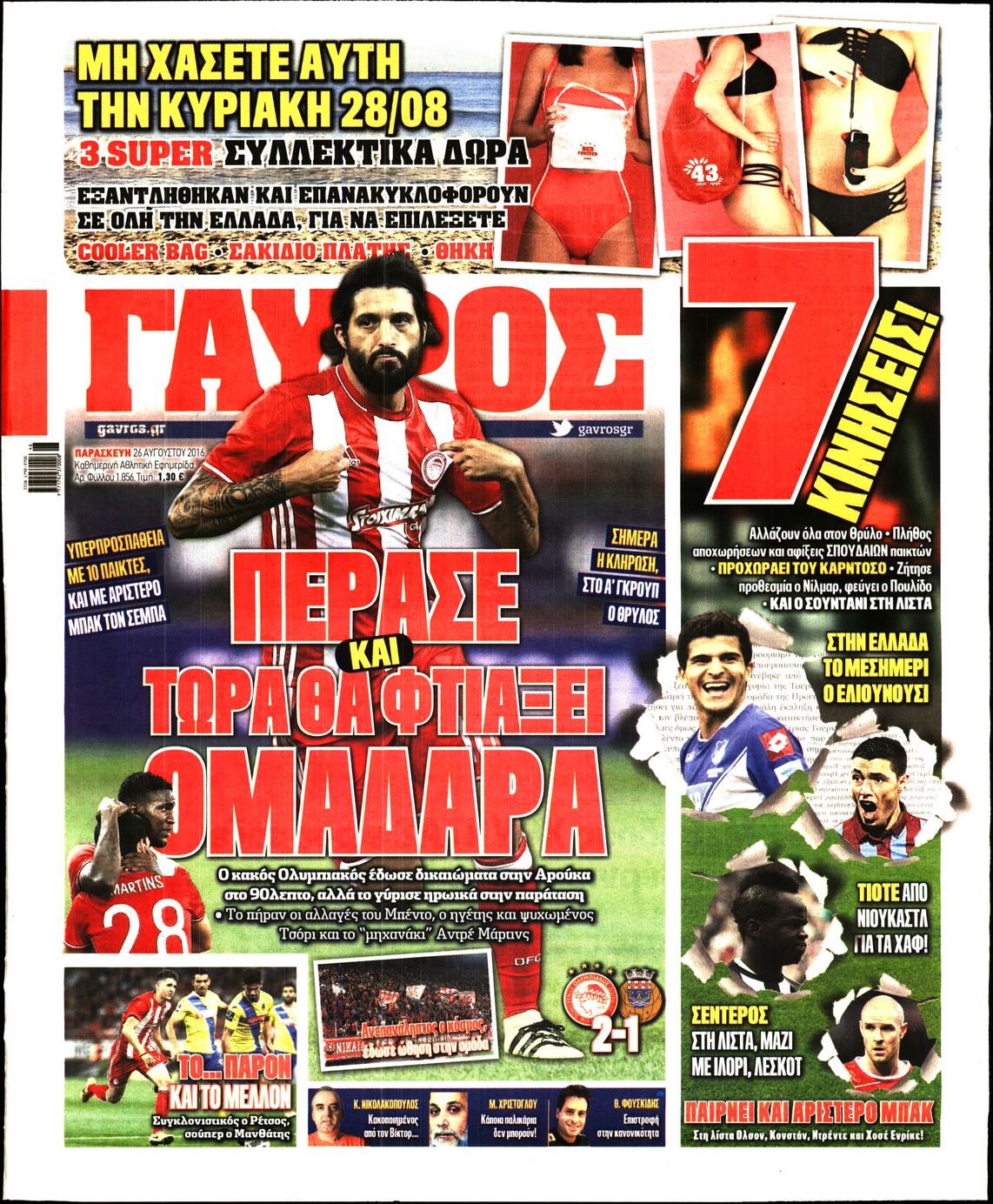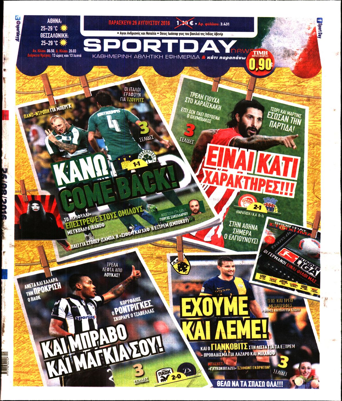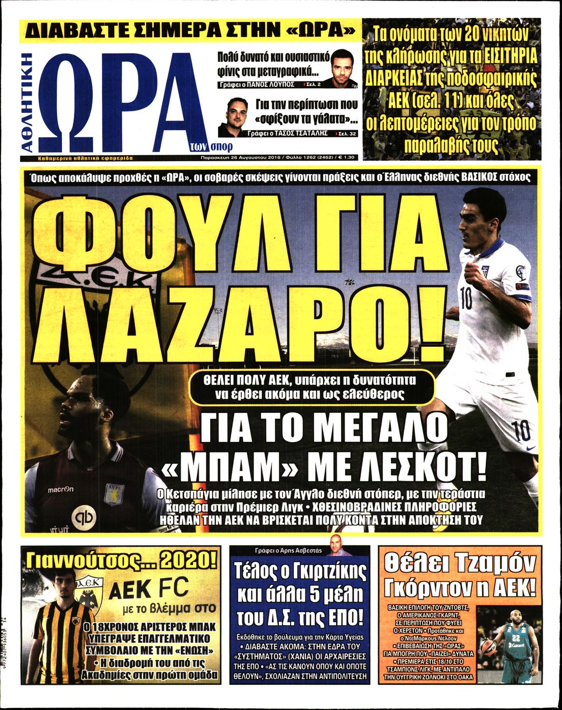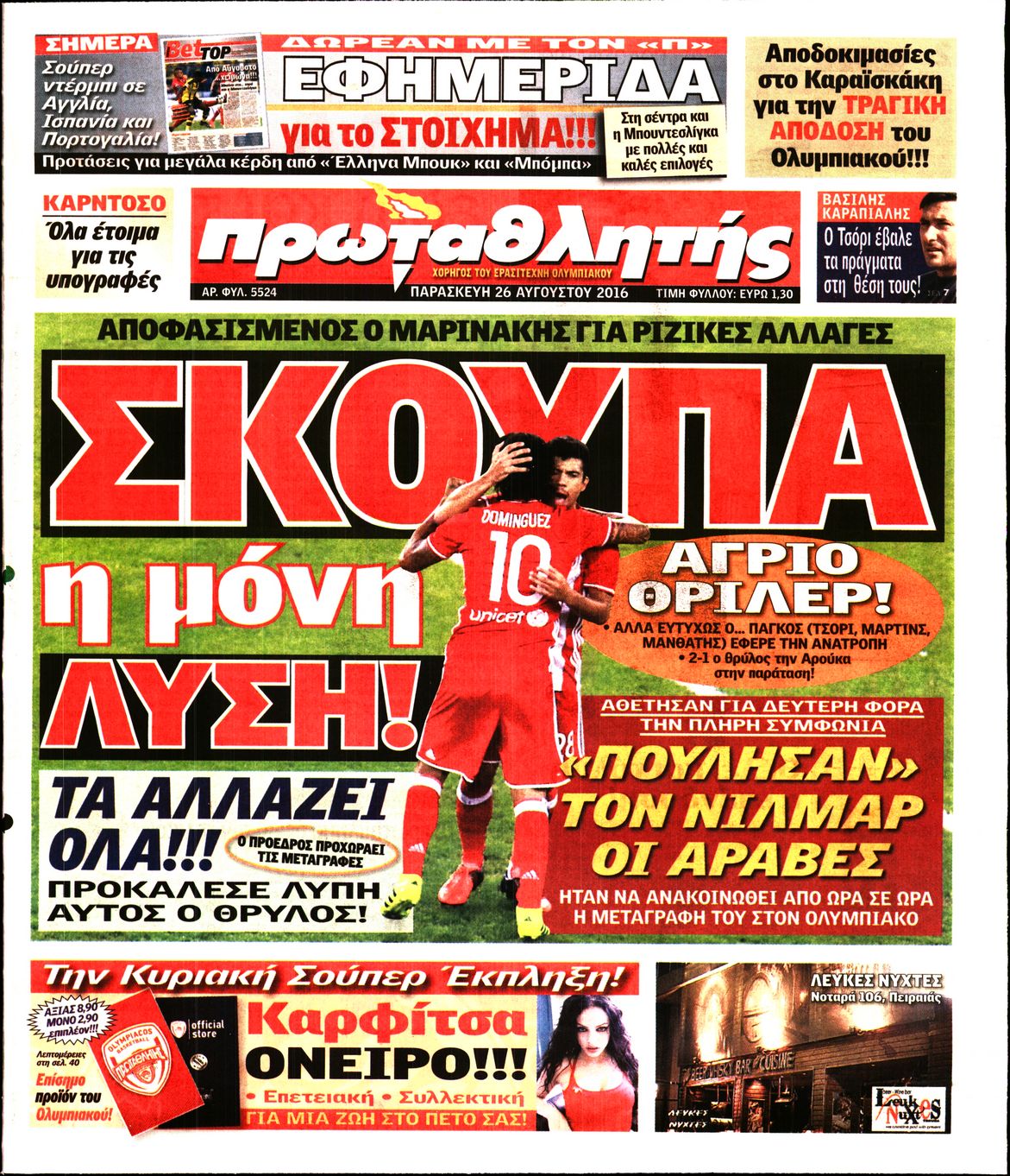 Οι αθλητικές εφημερίδες 26/8/2016 Enikos Newsroom 05:31, Παρασκευή 26 Αυγούστου 2016 Media Διαβάστε τα σημερινά πρωτοσέλιδα των αθλητικών εφημερίδων: ΑΘΛΗΤΙΚΕΣ ΕΦΗΜΕΡΙΔΕΣ ΠΡΩΤΟΣΕΛΙΔΑ Μοιράσου το: σχολίασε κι εσύ (0 σχόλια) Ακολουθήστε το enikos.gr στο Google News και μάθετε πρώτοι όλες τις ειδήσεις Δείτε όλες τις τελευταίες ειδήσεις από την Ελλάδα και τον Κόσμο στο enikos.gr Ειδήσεις Ροή Ειδήσεων 3 ώρες πριν Εκτός ευρωομάδας ΣΥΡΙΖΑ ο Νίκος Παππάς μετά την επίθεση στον δημοσιογράφο Νίκο Γιαννόπουλο – Η μήνυση και οι νέες δηλώσεις 3 ώρες πριν «Αγριεύουν» οι αγρότες: «Δεν συντρέχει λόγος συνάντησης με τον πρωθυπουργό» – Ώρα αποφάσεων στη σύσκεψη της Πέμπτης 3 ώρες πριν Κυψέλη: Χωρίς την οικογένειά της δίπλα της απολογήθηκε η 16χρονη – «Της είχε επιτεθεί κάποιος για να την βιάσει, φοβήθηκε και κυκλοφορούσε με μαχαίρι» 3 ώρες πριν Politico: Το πρόβλημα της Ευρώπης δεν είναι το Βέλγιο αλλά ο Ντόναλντ Τραμπ 4 ώρες πριν Αλεξανδρούπολη: Πολυοργανική ανεπάρκεια λόγω υποσιτισμού η αιτία θανάτου του 3χρονου αγοριού 3 ώρες πριν Μυστήριο με τεράστιες κυκλικές πέτρες 200 κιλών – Ανακαλύφθηκαν τυχαία κατά τη διάρκεια οδικών έργων και κανείς δεν ξέρει από πού προέρχονται 4 ώρες πριν Ύπνος: Ειδικός εξηγεί τον πραγματικό λόγο που ξυπνάτε στις 4 τα ξημερώματα – Ο ρόλος των ορμονών και του κιρκάδιου ρυθμού 5 ώρες πριν Αριθμολογία: Οι άνθρωποι που έχουν γεννηθεί αυτές τις 4 ημερομηνίες, είναι τρυφεροί και αγαπούν ανιδιοτελώς 17 ώρες πριν 20 χρόνια τα Χριστούγεννα ξεκινούν στα Public με μεγάλη ποικιλία σε δώρα! 2 λεπτά πριν Βρυξέλλες: Νυχτερινό… μπλόκο αγροτών μπροστά από το κτίριο της Ευρωπαϊκής Επιτροπής – Πάνω από 100 τρακτέρ απέκλεισαν την λεωφόρο 17 λεπτά πριν Euroleague: Απρόσμενη ήττα για την Μονακό του Βασίλη Σπανούλη – Η βαθμολογία μετά το τέλος της 16ης αγωνιστικής 33 λεπτά πριν Μουντιάλ 2026: Η νέα ταξιδιωτική απαγόρευση του Ντόναλντ Τραμπ πλήττει (και) τους οπαδούς Σενεγάλης – Ακτής Ελεφαντοστού 44 λεπτά πριν Κυριάκος Μητσοτάκης: Στις Βρυξέλλες για την Σύνοδο Κορυφής ΕΕ και Δυτικών Βαλκανίων – Δείτε φωτογραφίες 56 λεπτά πριν Σάρα Εσκενάζυ: Η πρώτη ανάρτηση για το θάνατο του πατέρα της, Αλμπέρτο Εσκενάζυ και η επιθυμία της οικογένειας ENIKOS NETWORK Αϋπνία: Το κόλπο που θα σας βοηθήσει να κοιμηθείτε απόψε – Είναι απλό και έχει αποτέλεσμα 2,6 εκατομμύρια πολίτες έχουν ήδη εμβολιαστεί κατά της γρίπης ΕΛΣΤΑΤ: Τι δείχνουν τα νέα στοιχεία για τις ηλεκτρονικές παραγγελίες των επιχειρήσεων ΚΕΠΕ: Οι 3 διακριτές συμβολές των ΜμΕ και της μεταποίησης στην ελληνική οικονομία Χαρτογραφώντας το «σημείο χωρίς επιστροφή»: Για πρώτη φορά αποκαλύπτεται με λεπτομέρεια το ακανθώδες όριο της ατμόσφαιρας τ... Η Google καταργεί τη λειτουργία «dark web report» – Πώς θα μπορούν οι χρήστες να διαγράφουν τα δεδομένα τους περισσότερα 22:24 , Τετάρτη 17 Δεκεμβρίου 2025 Το Σπίτι Δίπλα Στο Ποτάμι: Σε κίνδυνο η υγεία του Απόστολου – Τι θα δούμε απόψε “Το Σπίτι Δίπλα στο Ποτάμι” ξετυλίγει το νήμα της ζωής των πέντε αδελφών με καταισ... 21:14 , Τετάρτη 17 Δεκεμβρίου 2025 Παιχνίδια Εκδίκησης: Θα καταφέρει ο Χρήστος να κλονίσει την εμπιστοσύνη της Μάγιας απέναντι στον Άγη; Τα «Παιχνίδια Εκδίκησης» έρχονται απόψε στις 22:30, στον Αντ1, με το τελευταίο επεισόδιο της χ... 20:57 , Τετάρτη 17 Δεκεμβρίου 2025 Άγιος Έρωτας: Η Χλόη καταθέτει εναντίον του πατέρα της και ο Χάρης αποκαλύπτει στον Κλεάνθη ότι δεν είναι ο βιολογικός του πατέρας. Γεμάτο αποκαλύψεις είναι το νέο επεισό