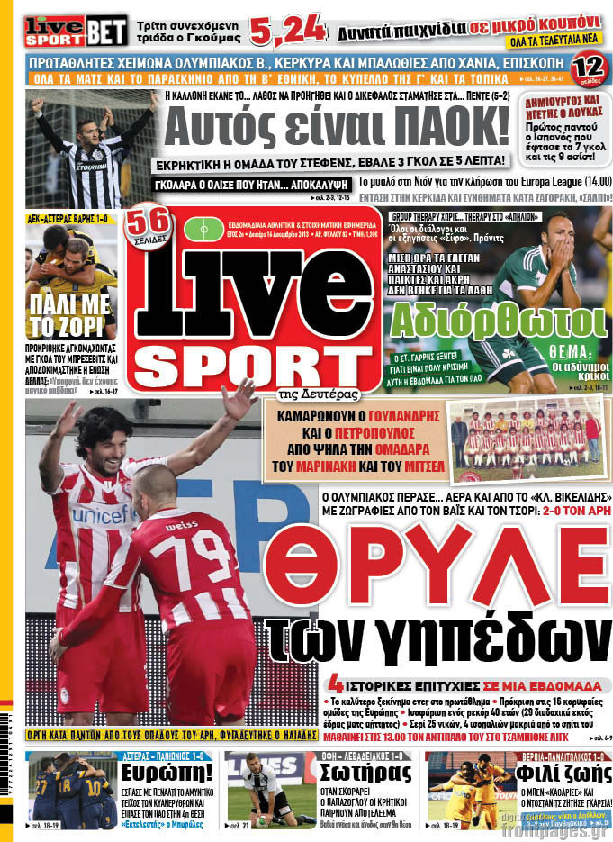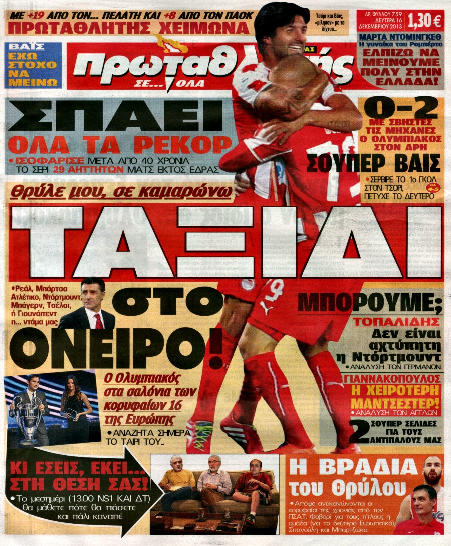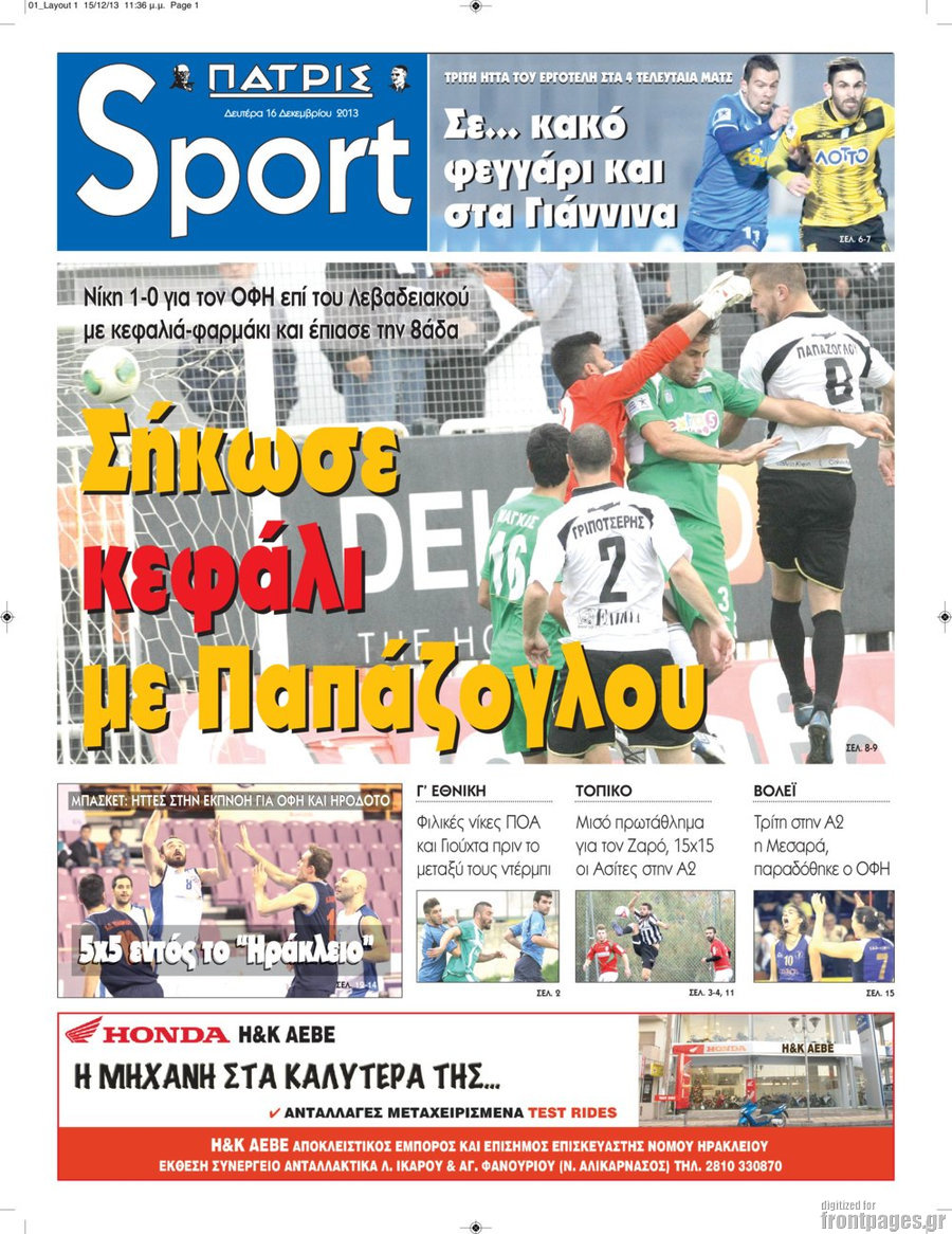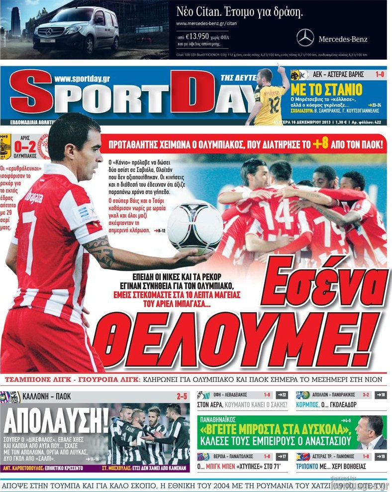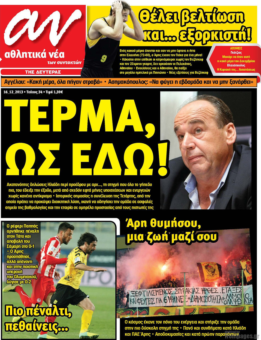 Οι αθλητικές εφημερίδες Enikos Newsroom 08:23, Δευτέρα 16 Δεκεμβρίου 2013 Media Οι αθλητικές εφημερίδες Διαβάστε τα πρωτοσέλιδα των αθλητικών εφημερίδων: ΑΘΛΗΤΙΚΕΣ ΕΦΗΜΕΡΙΔΕΣ ΕΦΗΜΕΡΙΔΕΣ ΠΡΩΤΟΣΕΛΙΔΑ Μοιράσου το: σχολίασε κι εσύ (0 σχόλια) Ακολουθήστε το enikos.gr στο Google News και μάθετε πρώτοι όλες τις ειδήσεις Δείτε όλες τις τελευταίες ειδήσεις από την Ελλάδα και τον Κόσμο στο enikos.gr Ειδήσεις Ροή Ειδήσεων 5 ώρες πριν Αυξάνουν την πίεση προς την κυβέρνηση οι αγρότες: Κλείνουν παρακαμπτήριους και ανοίγουν διόδια – Τι θα γίνει τις γιορτές 4 ώρες πριν ΟΠΕΚΕΠΕ: Προφυλακιστέος ο φερόμενος αρχηγός και ο λογιστής της εγκληματικής οργάνωσης 25 λεπτά πριν Ευρωπαϊκή Ένωση: Χωρίς συμφωνία, για την μακροπρόθεσμη χρηματοδότηση της Ουκρανίας, ολοκληρώθηκε η Σύνοδος Κορυφής στις Βρυξέλλες 3 ώρες πριν ΑΕΚ – Κραϊόβα 3-2: Επική ανατροπή και πρόκριση στους «16» του Conference League η Ένωση 5 ώρες πριν Φοινικούντα: Το Σάββατο απολογείται ο 30χρονος γιος γνωστού επιχειρηματία της Πλάκας που παραδόθηκε – Όσα είπε στους αστυνομικούς και ο ρόλος του στο έγκλημα 4 ώρες πριν Αρχαιολόγοι ανακάλυψαν ρωμαϊκά τεχνουργήματα από μια πόλη που δεν υπήρξε ποτέ – Τα τρία εντυπωσιακά κτίρια και ο αμφορέας με τις… σαρδέλες 5 ώρες πριν Ύπνος: Η απλή βραδινή ρουτίνα για να προστατεύσετε τα μαλλιά σας από το κρύο κατά τη διάρκεια του χειμώνα 6 ώρες πριν Manifesting: Πώς να συναντήσετε τον σύντροφο της ζωής σας, ανάλογα με τον μήνα γέννησής σας 2 ημέρες πριν 20 χρόνια τα Χριστούγεννα ξεκινούν στα Public με μεγάλη ποικιλία σε δώρα! 25 λεπτά πριν Ευρωπαϊκή Ένωση: Χωρίς συμφωνία, για την μακροπρόθεσμη χρηματοδότηση της Ουκρανίας, ολοκληρώθηκε η Σύνοδος Κορυφής στις Βρυξέλλες 40 λεπτά πριν GNTM: «Κλείδωσαν» οι τέσσερις φιναλίστ – Μεγάλη ανατροπή στις τελευταίες αποχωρήσεις 54 λεπτά πριν Γιώργος Μαζωνάκης: Αποθεώθηκε στην πρεμιέρα του στην «Ακτή Πειραιώς» λίγες ώρες μετά τις καταγγελίες – «Είμαι αληθινός», είπε με νόημα 1 ώρα πριν Πόλεμος στην Ουκρανία: Ρωσικά drones έπληξαν την Οδησσό – Μία νεκρή και ζημιές σε ενεργειακές υποδομές 1 ώρα πριν ΑΕΚ-Κραϊόβα: Τα highlights της μυθικής ανατροπής της «Ένωσης» ENIKOS NETWORK Σε περίοδο αυξημένης δραστηριότητας η γρίπη στην Ελλάδα-Μέτρα προστασίας από τον ΕΟΔΥ Σκέφτεστε συνέχεια συζητήσεις που έχετε κάνει; Τι σημαίνει αυτό, σύμφωνα με ειδικό Στεγαστικό: Τι λέει η ΠΟΜΙΔΑ για τα νέα μέτρα που ανακοίνωσε ο Κυριάκος Μητσοτάκης Λαγκάρντ: Αισιόδοξη για την ανάπτυξη της Ευρωζώνης, αβέβαιη για τον πληθωρισμό Χαρτογραφώντας το «σημείο χωρίς επιστροφή»: Για πρώτη φορά αποκαλύπτεται με λεπτομέρεια το ακανθώδες όριο της ατμόσφαιρας τ... Η Google καταργεί τη λειτουργία «dark web report» – Πώς θα μπορούν οι χρήστες να διαγράφουν τα δεδομένα τους περισσότερα 02:50 , Παρασκευή 19 Δεκεμβρίου 2025 GNTM: «Κλείδωσαν» οι τέσσερις φιναλίστ – Μεγάλη ανατροπή στις τελευταίες αποχωρήσεις Για προτελευταία φορά εμφανίστηκαν στο πλατό του GNTM οι φιναλίστ του φετινού κύκλου, το βράδυ... 17:45 , Πέμπτη 18 Δεκεμβρίου 2025 ROUK ZOUK: Εορταστικό επεισόδιο με καλεσμένους τους πρωταγωνιστές του «Γιατί ρε πατέρα» Το Σάββατο 20 Δεκεμβρίου στις 21:00, η Ζέτα Μακρυπούλια υποδέχεται εκλεκτούς ηθοποιούς που όλο... 17:20 , Πέμπτη 18 Δεκεμβρίου 2025 Άγιος έρωτας: Η Χριστίνα εξομολογείται στον πατέρα Νικόλαο, απόψε στις 21:00 στον Alpha Η Νότα αποφασίζει να εκδικηθεί τον Πέτρο και τον Στέφανο, για χάρη του Λούη, όμως τα πράγματα ... 16:50 , Πέμπτη 18 Δεκεμβρίου 2025 Να μ’ αγαπάς: Ζωή και