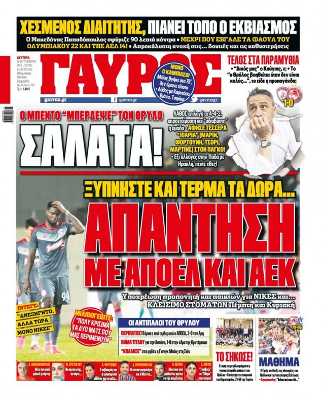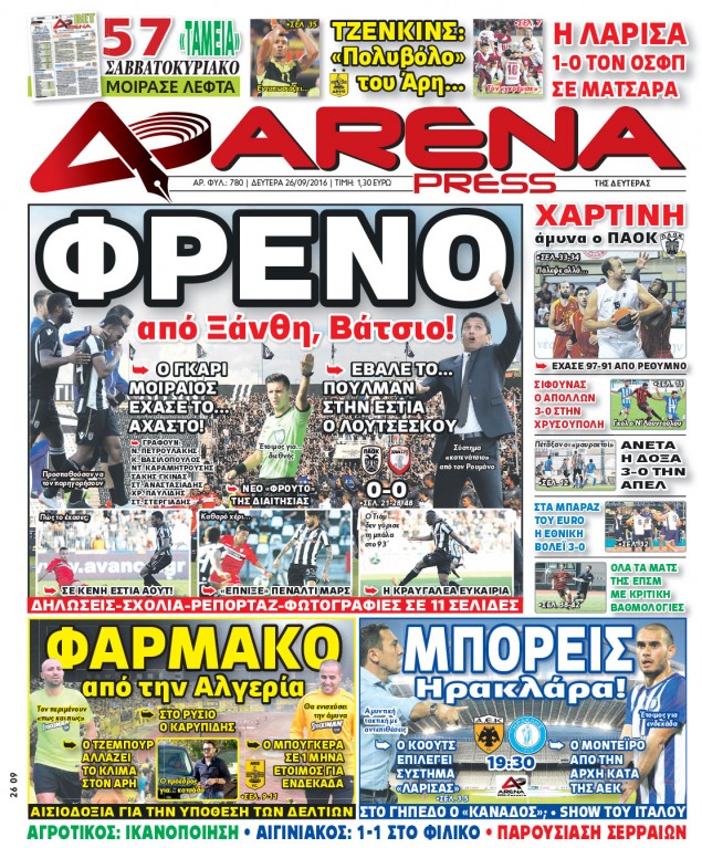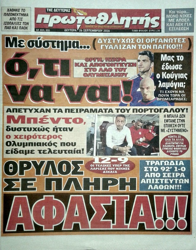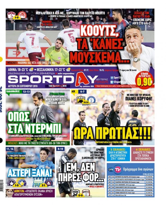 Oι αθλητικές εφημερίδες 26/9/2016 Enikos Newsroom 03:40, Δευτέρα 26 Σεπτεμβρίου 2016 Media Διαβάστε τα σημερινά πρωτοσέλιδα των αθλητικών εφημερίδων: ΑΘΛΗΤΙΚΕΣ ΕΦΗΜΕΡΙΔΕΣ ΠΡΩΤΟΣΕΛΙΔΑ Μοιράσου το: σχολίασε κι εσύ (0 σχόλια) Ακολουθήστε το enikos.gr στο Google News και μάθετε πρώτοι όλες τις ειδήσεις Δείτε όλες τις τελευταίες ειδήσεις από την Ελλάδα και τον Κόσμο στο enikos.gr Ειδήσεις Ροή Ειδήσεων 2 ώρες πριν Μπλόκα: Οι αγρότες σηκώνουν τις μπάρες σε διόδια για τους εκδρομείς των Χριστουγέννων και μοιράζουν προϊόντα – Βίντεο 3 ώρες πριν Τσιάρας προς αγρότες: Τα μπλόκα και τα πείσματα δεν ωφελούν – Οι λύσεις περνούν μέσα από τον διάλογο 4 ώρες πριν Αρχεία Έπσταϊν: Οι συγκλονιστικές φωτογραφίες – Ο Μάικλ Τζάκσον, ο Μικ Τζάγκερ και ο Κέβιν Σπέισι ανάμεσα στους διάσημους που απεικονίζονται 1 ώρα πριν Μαθητές διακινούσαν κοκαΐνη και χασίς σε σχολείο της Αττικής – 12 συλλήψεις 2 ώρες πριν Βέλγιο: Άγνωστοι έριξαν κόκκινη μπογιά στο προξενείο της Πολωνίας στις Βρυξέλλες 6 ώρες πριν Μία νέα «χρυσή» περίοδος αρχίζει για 3 ζώδια από σήμερα – «Μία αναπάντεχη ευκαιρία οδηγεί στην επιτυχία» 4 ώρες πριν Διαιτολόγος αποκαλύπτει 9 πρωινές συνήθειες που «λιώνουν» το κοιλιακό λίπος – «Υποστηρίζουν την υγιεινή απώλεια βάρους» 5 ώρες πριν Οι 7 φράσεις που δεν λένε ποτέ οι συναισθηματικά έξυπνοι άνθρωποι κατά τη διάρκεια ενός καβγά 7 ώρες πριν Enerwave: Το νέο «ρεύμα» στη λιανική ενέργειας που αλλάζει την εμπειρία του καταναλωτή 6 λεπτά πριν Στο νοσοκομείο ο Λευτέρης Πανταζής – Τι συνέβη 15 λεπτά πριν Super League: Με Κηφισιά ο Ολυμπιακός για να «κλείσει» το 2025 στην κορυφή – Αναλυτικά το πρόγραμμα της 15ης αγωνιστικής 20 λεπτά πριν ΕΛΑΣ: Συνελήφθησαν Υπαρχιπυροσβέστης και δύο ακόμη άτομα για κατοχή και διακίνηση ναρκωτικών ουσιών – Η καταγγελία και ο τιμοκατάλογος 28 λεπτά πριν Πακιστάν: Σε κάθειρξη 17 ετών καταδικάστηκαν ο πρώην πρωθυπουργός Ίμραν Χαν και η σύζυγός του 36 λεπτά πριν Μαρινάκης στον Realfm 97,8: Η κυβέρνηση σέβεται κάθε λογική διεκδίκηση των αγροτών, αλλά και το αίτημα των πολιτών να μην ταλαιπωρούνται ENIKOS NETWORK Η αποχή από την αναπαραγωγή παρατείνει τη ζωή στα ζώα, σύμφωνα με μελέτη – Τι ισχύει για τους ανθρώπους; Σημαντικές επαφές στις ΗΠΑ είχε ο υπουργός Υγείας Άδωνις Γεωργιάδης Επιτροπή Ανταγωνισμού: Στο μικροσκόπιο σχολικές τσάντες και επώνυμα brands – Τι ερευνάται Ευλογιά αιγοπροβάτων: Παρατεταμένη επιζωοτία, αυστηρά μέτρα – Τι ισχύει για τον εμβολιασμό και την ανασύσταση του ζωικού κε... Χαρτογραφώντας το «σημείο χωρίς επιστροφή»: Για πρώτη φορά αποκαλύπτεται με λεπτομέρεια το ακανθώδες όριο της ατμόσφαιρας τ... Η Google καταργεί τη λειτουργία «dark web report» – Πώς θα μπορούν οι χρήστες να διαγράφουν τα δεδομένα τους περισσότερα 14:04 , Σάββατο 20 Δεκεμβρίου 2025 Η Realnews αυτής της Κυριακής (21/12/2025) Με τίτλο: «Ασπίδα προστασίας για την Ελλάδα» κυκλοφορεί, αυτήν την Κυριακή, η Realnews. Σημαντ... 12:53 , Σάββατο 20 Δεκεμβρίου 2025 Να μ’ αγαπάς: Το παρελθόν έρχεται στο φως – Καταιγιστικές εξελίξεις στα τελευταία επεισόδια του 2025 Ο Άγγελος αποκαλύπτεται, η Φωτεινή ανησυχεί για τον Λευτέρη και η Ζωή έρχεται αντιμέτωπη με το... 11:41 , Σάββατο 20 Δεκεμβρίου 2025 «Η αγάπη δεν χάνεται ποτέ»: Η μικρού μήκους ταινία κινουμένων σχεδίων που θέτει ερωτήματα για τη ζωή και τον θάνατο Ο θάνατος είναι ένα από τα πιο σκληρά θέματα που καλείται να διαχειριστεί κάποιος στη διάρκεια... 09:30 , Σάββατο 20 Δεκεμβρίου 2025 «Porto Leone: Στη γειτονιά με τα 