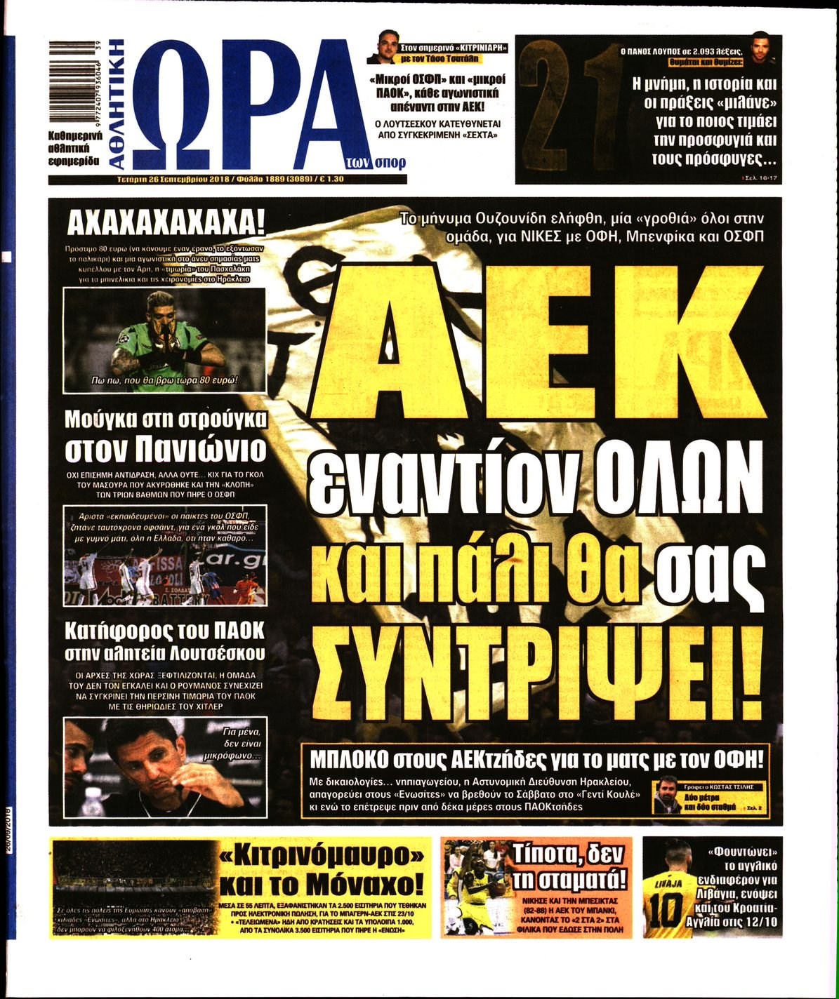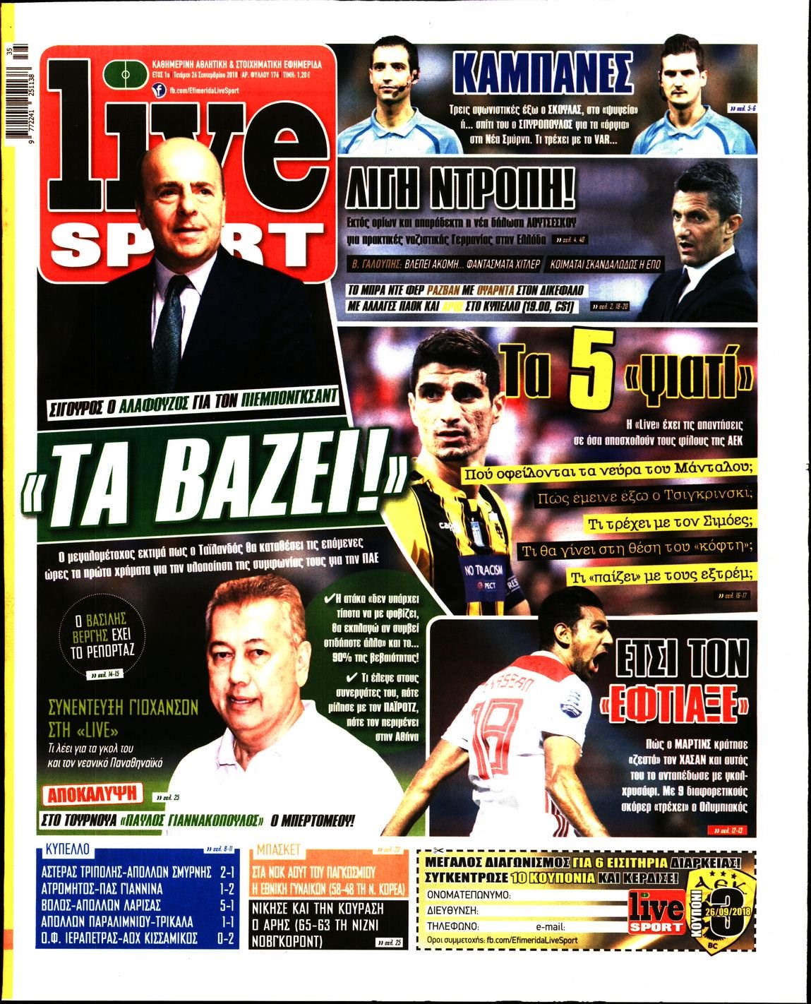 Οι αθλητικές εφημερίδες 26/9/2018 Enikos Newsroom 06:37, Τετάρτη 26 Σεπτεμβρίου 2018 Media Διαβάστε τα πρωτοσέλιδα: ΑΘΛΗΤΙΚΕΣ ΕΦΗΜΕΡΙΔΕΣ ΠΡΩΤΟΣΕΛΙΔΑ Μοιράσου το: σχολίασε κι εσύ (0 σχόλια) Ακολουθήστε το enikos.gr στο Google News και μάθετε πρώτοι όλες τις ειδήσεις Δείτε όλες τις τελευταίες ειδήσεις από την Ελλάδα και τον Κόσμο στο enikos.gr Ειδήσεις Ροή Ειδήσεων 43 λεπτά πριν Χριστούγεννα στα μπλόκα: Επιμένουν στις κινητοποιήσεις τους οι αγρότες – Ανοίγουν τα διόδια το Σαββατοκύριακο 1 ώρα πριν Ουκρανία: Η άνευ προηγουμένου επίθεση σε ρωσικό τάνκερ στη Μεσόγειο και το μήνυμα προς στον Πούτιν – Το «μακρύ χέρι» του Κιέβου 20 λεπτά πριν Πούτιν: Τα μηνύματα σε Ευρώπη και ΝΑΤΟ από το μαραθώνιο «σόου» του – Η απαίτηση για «σεβασμό» και η ειρήνη «με τους όρους» της Μόσχας 1 ώρα πριν Τραμπ: Δεν αποκλείει την πιθανότητα ενός πολέμου στη Βενεζουέλα – «Ο Μαδούρο ξέρει καλύτερα από τον καθένα τι ακριβώς θέλω» 2 ώρες πριν Συνεχίζει να προκαλεί ο Μίτσκοσκι: «Για μένα το όνομα Μακεδονία είναι ιερό» 4 ώρες πριν Πούτιν: «Ναι, είμαι ερωτευμένος» – Βίντεο από τη σπάνια προσωπική παραδοχή του 2 ώρες πριν Αριθμολογία: Οι άνθρωποι που έχουν γεννηθεί αυτές τις 4 ημερομηνίες, συχνά παρεξηγούνται – «Η καλοσύνη τους κρύβει τεράστια δύναμη» 1 ώρα πριν Ύπνος: Μια κρυφή κατάσταση του εγκεφάλου πριν από τον ύπνο μπορεί να είναι το “κλειδί” για υψηλή ευφυΐα και δημιουργικότητα 3 ώρες πριν Ξεχάστε το καθάρισμα το Σαββατοκύριακο: Ο «κανόνας των 20 λεπτών» που θα σας λύσει τα χέρια 21 λεπτά πριν Ανακαλύφθηκαν αρχαία χρυσά νομίσματα 2.200 ετών που απεικονίζουν τον θεό Απόλλωνα – Η άγνωστη σύνδεση με τον Φίλιππο Β΄ της Μακεδονίας 5 λεπτά πριν Ολυμπιακός – Βιλερμπάν 107-84: Επιστροφή στις νίκες με… προπόνηση 11 λεπτά πριν Νέος Κόσμος: Συνελήφθη 41χρονος με ένταλμα από την Τουρκία για εμπόριο ναρκωτικών και ληστεία 20 λεπτά πριν Πούτιν: Τα μηνύματα σε Ευρώπη και ΝΑΤΟ από το μαραθώνιο «σόου» του – Η απαίτηση για «σεβασμό» και η ειρήνη «με τους όρους» της Μόσχας 21 λεπτά πριν Ανακαλύφθηκαν αρχαία χρυσά νομίσματα 2.200 ετών που απεικονίζουν τον θεό Απόλλωνα – Η άγνωστη σύνδεση με τον Φίλιππο Β΄ της Μακεδονίας 26 λεπτά πριν Νίκος Ξυλούρης: Συγκινεί η χήρα του σπουδαίου καλλιτέχνη – «Ευχαριστώ όλο τον κόσμο που τον κρατάει ζωντανό 45 χρόνια» ENIKOS NETWORK Το ΕΚΑΒ τιμήθηκε από την Ακαδημία Αθηνών για τα 40 χρόνια προσφοράς του Έχετε πραγματικά μεγάλη καρδιά; 10 χαρακτηριστικά όσων έχουν καλοσύνη Αναστολή μέτρων αναγκαστικής εκτέλεσης για κτηνοτρόφους που πλήττονται από την ευλογιά των αιγοπροβάτων Πλήρης επάρκεια προϊόντων στις λαϊκές της Αττικής, παρά τις αγροτικές κινητοποιήσεις – Τι απαντούν οι πωλητές Χαρτογραφώντας το «σημείο χωρίς επιστροφή»: Για πρώτη φορά αποκαλύπτεται με λεπτομέρεια το ακανθώδες όριο της ατμόσφαιρας τ... Η Google καταργεί τη λειτουργία «dark web report» – Πώς θα μπορούν οι χρήστες να διαγράφουν τα δεδομένα τους περισσότερα 22:42 , Παρασκευή 19 Δεκεμβρίου 2025 Γιώργος Γιαννόπουλος για “Το σόι σου”: “Είναι ευτυχία και ευλογία αυτή η σειρά” «Είναι ευτυχία και ευλογία η συγκυρία αυτής της σειράς», θα πει ο Γιώργος Γιαννόπουλος -ο αγαπ... 20:37 , Παρασκευή 19 Δεκεμβρίου 2025 Don’t Forget The Lyrics: Η Έλλη Κοκκίνου υποδέχεται 4 παίκτες που θα κάνουν τα πάντα για να μη χάσουν ούτε… μισή λέξη από τους στίχους Το «Don’t Forget The Lyrics» επιστρέφει απόψε, Παρασκευή 19 Δεκεμβρίου, στις 21:00 με νέο επει... 19:31 , Παρασκευή 19 Δεκεμβρίου 2025 GNTM: Απόψε ο μεγά