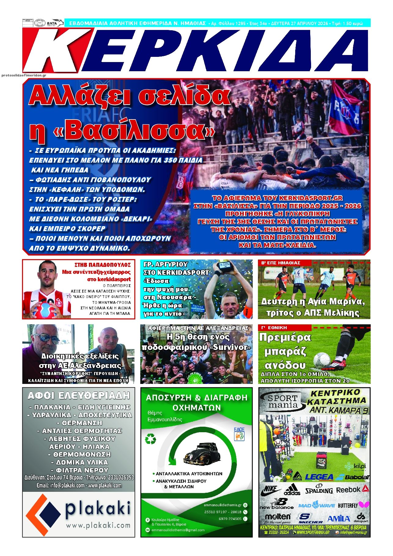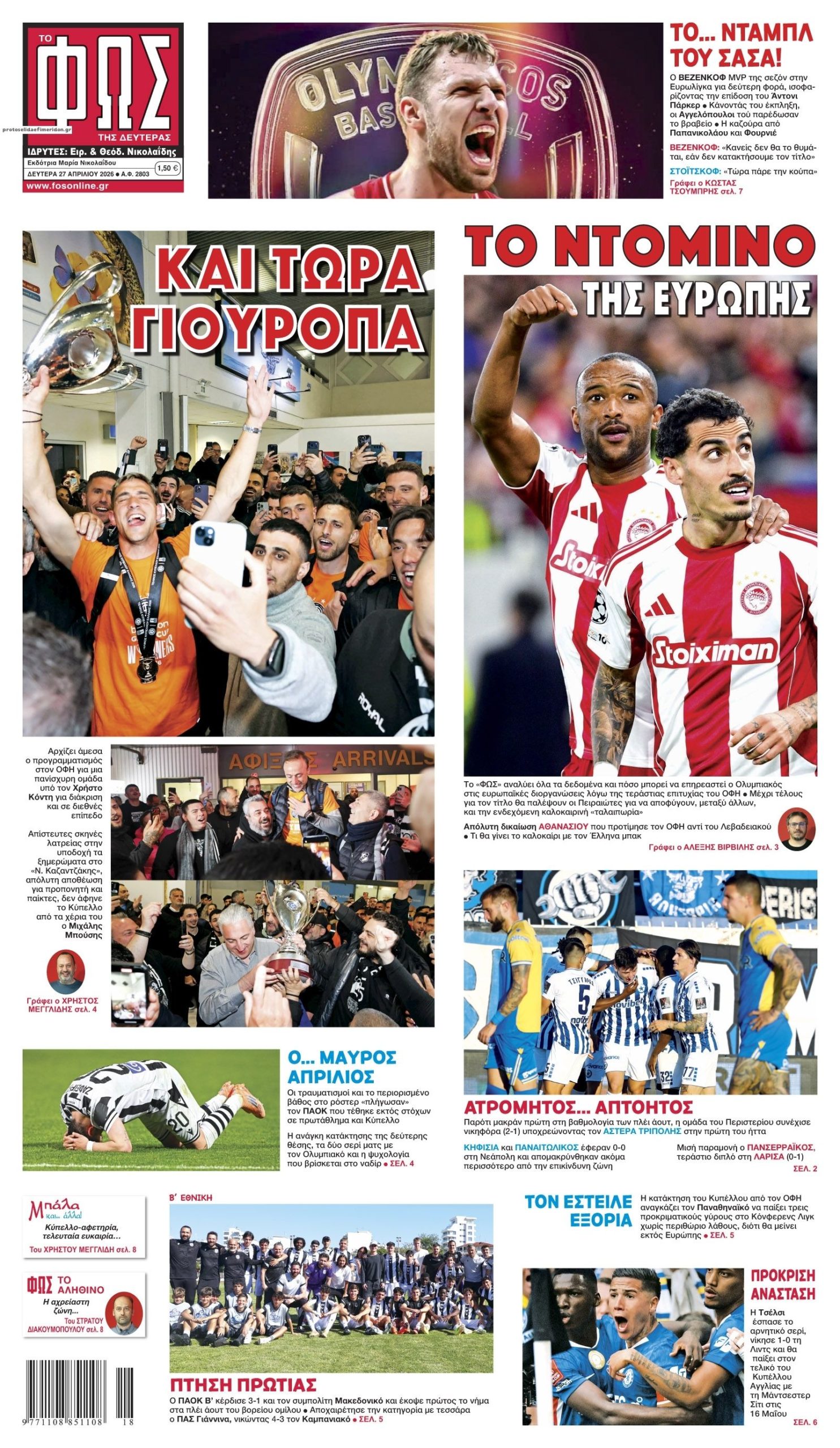 Οι αθλητικές εφημερίδες 27/4/2026 Enikos Newsroom 05:43, Δευτέρα 27 Απριλίου 2026 Media & Τηλεοπτικά Νέα Διαβάστε τα πρωτοσέλιδα από τις αθλητικές εφημερίδες, σήμερα 27/4/2026. ΑΘΛΗΤΙΚΕΣ ΕΦΗΜΕΡΙΔΕΣ ΕΦΗΜΕΡΙΔΕΣ ΠΡΩΤΟΣΕΛΙΔΑ Μοιράσου το: Serie A: Λευκές ισοπαλίες για Μίλαν και Γιουβέντους – Όλα τα αποτελέσματα και η βαθμολογία Προκρίθηκε και στο διπλό ο Στέφανος Τσιτσιπάς στη Μαδρίτη Πόλο γυναικών: Νίκη της εθνικής επί της Ουγγαρίας σε φιλικό πριν το Ρότερνταμ – Δείτε τα highlights σχολίασε κι εσύ (0 σχόλια) Ακολουθήστε το Enikos στο Google News και μάθετε πρώτοι όλες τις ειδήσεις Δείτε όλες τις τελευταίες ειδήσεις από την Ελλάδα και τον Κόσμο στο enikos.gr Ειδήσεις Ροή Ειδήσεων 11 ώρες πριν «Φιλικός ομοσπονδιακός δολοφόνος»: Τι έγραφε το μανιφέστο του δράστη κατά του Τραμπ – Το έστειλε στην οικογένειά του λίγα λεπτά πριν από την επίθεση 23 ώρες πριν LIVE: 58η ημέρα πολέμου ΗΠΑ – Ισραήλ με Ιράν – Όλες οι εξελίξεις στη Μέση Ανατολή 8 ώρες πριν Δολοφονία στον Άγιο Δημήτριο: Βίντεο από τη στιγμή που ο 20χρονος δράστης φτάνει στο ραντεβού θανάτου – Τα σβησμένα μηνύματα 10 ώρες πριν Μυστήριο με τον θάνατο βετεράνου της Πολεμικής Αεροπορίας στις ΗΠΑ – Πέθανε ξαφνικά λίγο πριν καταθέσει για τα UFO 8 ώρες πριν Θάνατος 19χρονης στην Κεφαλονιά: Τι έδειξε η αυτοψία στο δωμάτιο «10» – Απαντήσεις από την άρση τηλεφωνικού και τραπεζικού απορρήτου 37 λεπτά πριν Οπτική ψευδαίσθηση: Μόνο το 1% των ανθρώπων θα βρει τη γάτα σε 8 δευτερόλεπτα 53 λεπτά πριν Μπύρα: Το απρόσμενο όφελος για την υγεία και τον εγκέφαλο, σύμφωνα με μελέτη 4 ώρες πριν Ζώδια 27/4: Ημερήσιες προβλέψεις – Καρκίνοι, διαλέξτε πιο προσεκτικά τι αφήνετε να μπαίνει στις ζωές σας 8 ώρες πριν Σπουδαίες αρχαιολογικές ανακαλύψεις κατά την κατασκευή σιδηροδρόμου – Η ρωμαϊκή «μήτρα» που δημιουργούσε τις πανοπλίες των λεγεωνάριων 8 λεπτά πριν Στη Λιβύη σήμερα ο Γιώργος Γεραπετρίτης για σειρά επαφών με την πολιτική ηγεσία της χώρας 18 λεπτά πριν ΔΕΔΔΗΕ: Διακοπές ρεύματος σήμερα (27/4) στην Αθήνα και σε άλλες 6 περιοχές της Αττικής 22 λεπτά πριν ΗΠΑ – Ιράν: «Ούτε πόλεμος, ούτε ειρήνη» – Ο επικίνδυνος αγώνας αντοχής, οι παγίδες και ο «παράγοντας» Ρωσία 33 λεπτά πριν Αυξάνονται οι αντιρρησίες συνείδησης στη Γερμανία, ενώ η κυβέρνηση προωθεί την υποχρεωτική στράτευση 37 λεπτά πριν Οπτική ψευδαίσθηση: Μόνο το 1% των ανθρώπων θα βρει τη γάτα σε 8 δευτερόλεπτα ENIKOS NETWORK Anne Hathaway: Το εκλεπτυσμένο mani pedi στο ζουμερό κόκκινο που έχει γίνει η απόλυτη νέα τάση 7 τρόποι να αντιμετωπίσετε έναν ναρκισσιστή που μιλάει ακατάπαυστα Ανοιξιάτικος ο καιρός τη Δευτέρα, πού θα βρέξει – Αναλυτική πρόγνωση Συντάξεις δημόσιου και ιδιωτικού τομέα: Γιατί παραμένει το χάσμα – Οι 5 αιτίες πίσω από τη μεγάλη διαφορά Έπειτα από 6 δεκαετίες ένα φάρμακο εξακολουθεί να βρίσκει νέες εφαρμογές στην ιατρική Κουίζ: Πόσο καλά γνωρίζεις την ελληνική μυθολογία; Μπορείς να κάνεις το 3 στα 3; περισσότερα 05:38 , Δευτέρα 27 Απριλίου 2026 Οι πολιτικές εφημερίδες 27/4/2026 Διαβάστε τα πρωτοσέλιδα από τις πολιτικές εφημερίδες, σήμερα 27/4/2026. 01:20 , Δευτέρα 27 Απριλίου 2026 Μάνος Νιφλής: Μας έχει γίνει παλαιότερα πρόταση για εκπομπή μαζί με την Ελισάβετ Μουτάφη – Δείτε το βίντεο Επιβεβαίωσε ότι πράγματι έχει δεχθεί πρόταση για να παρουσιάσει εκπομπή με τη σύζυγο του, Ελισ... 19:56 , Κυριακή 26 Απριλίου 2026 Porto Leone: Στη γειτονιά με τα κόκκινα φανάρια – Η Αλεξάνδρα απαγάγει το παιδί του Στράτου Καταιγιστικές αυτή την εβδομάδα οι εξελίξεις 