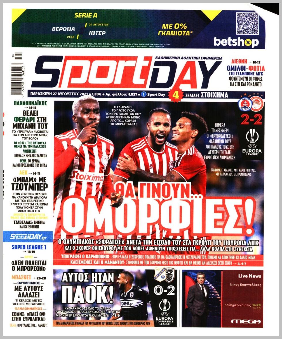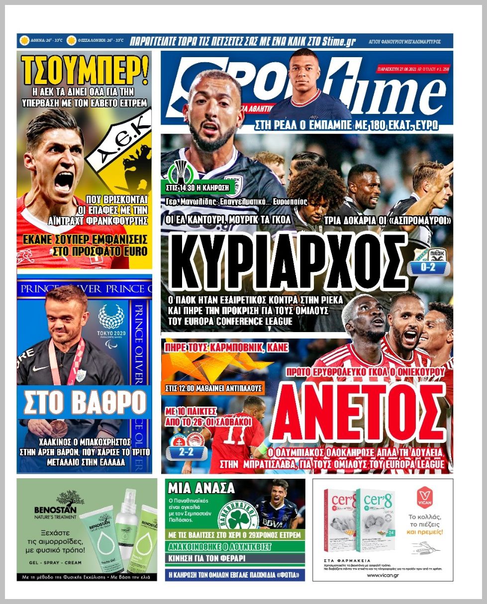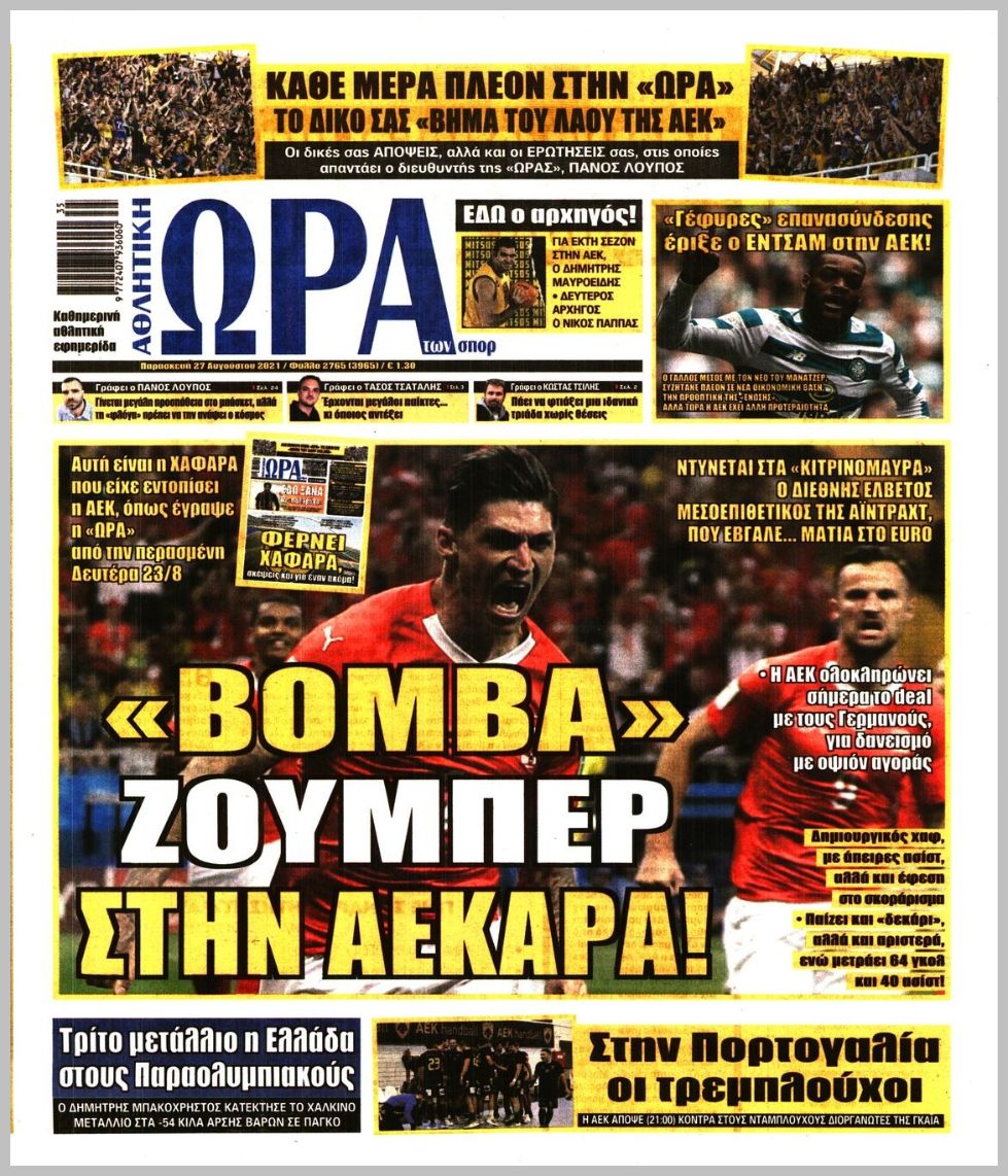 Οι αθλητικές εφημερίδες 27/8/2021 Διονύσης Νίκκας 06:37, Παρασκευή 27 Αυγούστου 2021 Media Διαβάστε τα πρωτοσέλιδα των αθλητικών εφημερίδων… ΑΘΛΗΤΙΚΕΣ ΕΦΗΜΕΡΙΔΕΣ Μοιράσου το: σχολίασε κι εσύ (0 σχόλια) Ακολουθήστε το enikos.gr στο Google News και μάθετε πρώτοι όλες τις ειδήσεις Δείτε όλες τις τελευταίες ειδήσεις από την Ελλάδα και τον Κόσμο στο enikos.gr Ειδήσεις Ροή Ειδήσεων 3 ώρες πριν Πώς δρούσε το κύκλωμα που διακινούσε ναρκωτικά σε σχολεία – Υπέβαλαν σε βασανιστήρια όσους δεν τηρούσαν τους «κανόνες πειθαρχίας» 4 ώρες πριν Αγρότες: Γιορτές στα μπλόκα με ανοιχτά διόδια – Δικογραφία στα Ιωάννινα για το σήκωμα των μπαρών 3 ώρες πριν Ζελένσκι: Οι Αμερικανοί πρότειναν συνάντηση Ουκρανίας, ΗΠΑ, Ρωσίας στο Μαϊάμι 2 ώρες πριν Τραμπ: Πώς περνάει τις γιορτές των Χριστουγέννων – Τα δώρα που κάνει στα εγγόνια του 2 ώρες πριν Μικαέλα Μπέντχαους: Ο πρώτος άνθρωπος σε αναπηρικό αμαξίδιο που ταξίδεψε στο διάστημα – ΒΙΝΤΕΟ 4 ώρες πριν Η τύχη χαμογελά σε 3 ζώδια έως τις 28 Δεκεμβρίου – «Προσέξτε τις επιλογές σας και η επιμονή σας θα ανταμειφθεί» 5 ώρες πριν Μία ανεκμετάλλευτη πηγή θα μπορούσε να προσφέρει ανεξάντλητη ενέργεια – Οι επιστήμονες ίσως γνωρίζουν πώς να την ξεκλειδώσουν 1 ώρα πριν Μήπως οι γιορτές σας δεν είναι τόσο τέλειες; 7 χριστουγεννιάτικες συνήθειες που μαρτυρούν ότι μια οικογένεια είναι δυσλειτουργική 11 ώρες πριν Enerwave: Το νέο «ρεύμα» στη λιανική ενέργειας που αλλάζει την εμπειρία του καταναλωτή 2 λεπτά πριν Πέθανε η σπουδαία αρχαιολόγος Λίλα Μαραγκού – 12 λεπτά πριν Πώς να απαλλαγείτε από τη μυρωδιά του τηγανητού φαγητού: Το μυστικό βρίσκεται στην κουζίνα σας 18 λεπτά πριν Βλαχοδήμος: «Νιώθω καλά που είμαι σημαντικός για τη Σεβίλλη» – Τι είπε για τη Ρεάλ Μαδρίτης και τον Μπαπέ 27 λεπτά πριν Πρίγκιπας Ουίλιαμ: Μαγείρεψε παρέα με τον πρίγκιπα Τζορτζ για τους αστέγους – ΦΩΤΟ και ΒΙΝΤΕΟ 36 λεπτά πριν Επιχείρηση της Τροχαίας κατά της παράνομης στάθμευσης στο Νέο Ψυχικό – Τέσσερις συλλήψεις ENIKOS NETWORK Οι γυναίκες αποκαλύπτουν το πιο ελκυστικό πράγμα που μπορεί να κάνει ένας άνδρας Ομορφιά και αντιγήρανση: Ειδικοί μιλούν για συσκευές περιποίησης του δέρματος Θεοδωρικάκος: Εθνική στρατηγική για τους ημιαγωγούς – Πρώτο βήμα η χρηματοδότηση του πρώτου Κέντρου Ικανοτήτων, με 3,63 εκα... Επίδομα θέρμανσης: Μπαίνει η πρώτη δόση την Τρίτη – Οι επόμενες πληρωμές Χαρτογραφώντας το «σημείο χωρίς επιστροφή»: Για πρώτη φορά αποκαλύπτεται με λεπτομέρεια το ακανθώδες όριο της ατμόσφαιρας τ... Η Google καταργεί τη λειτουργία «dark web report» – Πώς θα μπορούν οι χρήστες να διαγράφουν τα δεδομένα τους περισσότερα 18:19 , Σάββατο 20 Δεκεμβρίου 2025 HOTΕΛ ΕΛVIRA: Η Ελβίρα μαθαίνει πως ο Χάρι μένει κρυφά στο ξενοδοχείο του Παντελή Συνεχίζονται οι εκλογές για πρόεδρο, στο νέο επεισόδιο της κωμικής σειράς του MEGA, HOTΕΛ ΕΛVI... 14:04 , Σάββατο 20 Δεκεμβρίου 2025 Η Realnews αυτής της Κυριακής (21/12/2025) Με τίτλο: «Ασπίδα προστασίας για την Ελλάδα» κυκλοφορεί, αυτήν την Κυριακή, η Realnews. Σημαντ... 12:53 , Σάββατο 20 Δεκεμβρίου 2025 Να μ’ αγαπάς: Το παρελθόν έρχεται στο φως – Καταιγιστικές εξελίξεις στα τελευταία επεισόδια του 2025 Ο Άγγελος αποκαλύπτεται, η Φωτεινή ανησυχεί για τον Λευτέρη και η Ζωή έρχεται αντιμέτωπη με το... 11:41 , Σάββατο 20 Δεκεμβρίου 2025 «Η αγάπη δεν χάνεται ποτέ»: Η μικρού μήκους ταινία κινουμένων σχεδίων που θέτει ερωτήματα για τη ζωή και τον θάνατο Ο θάνατος είναι ένα από τα πιο σκληρά θέματα που καλείται να διαχει