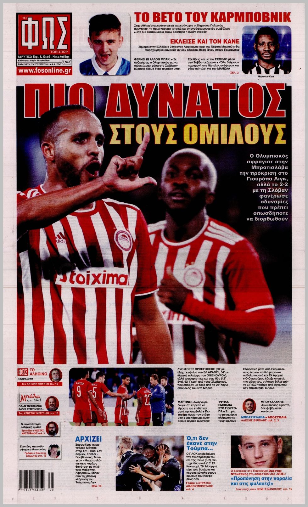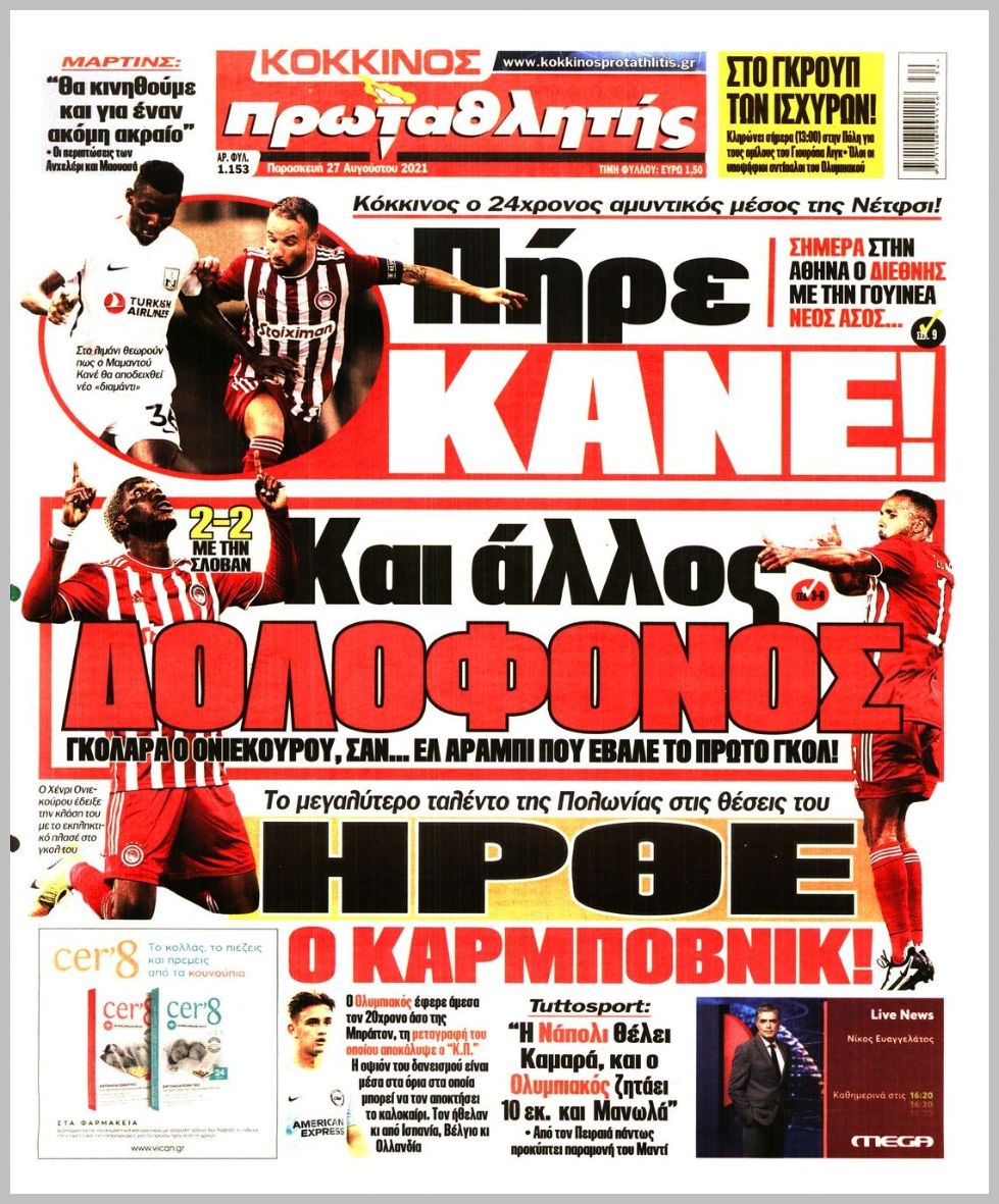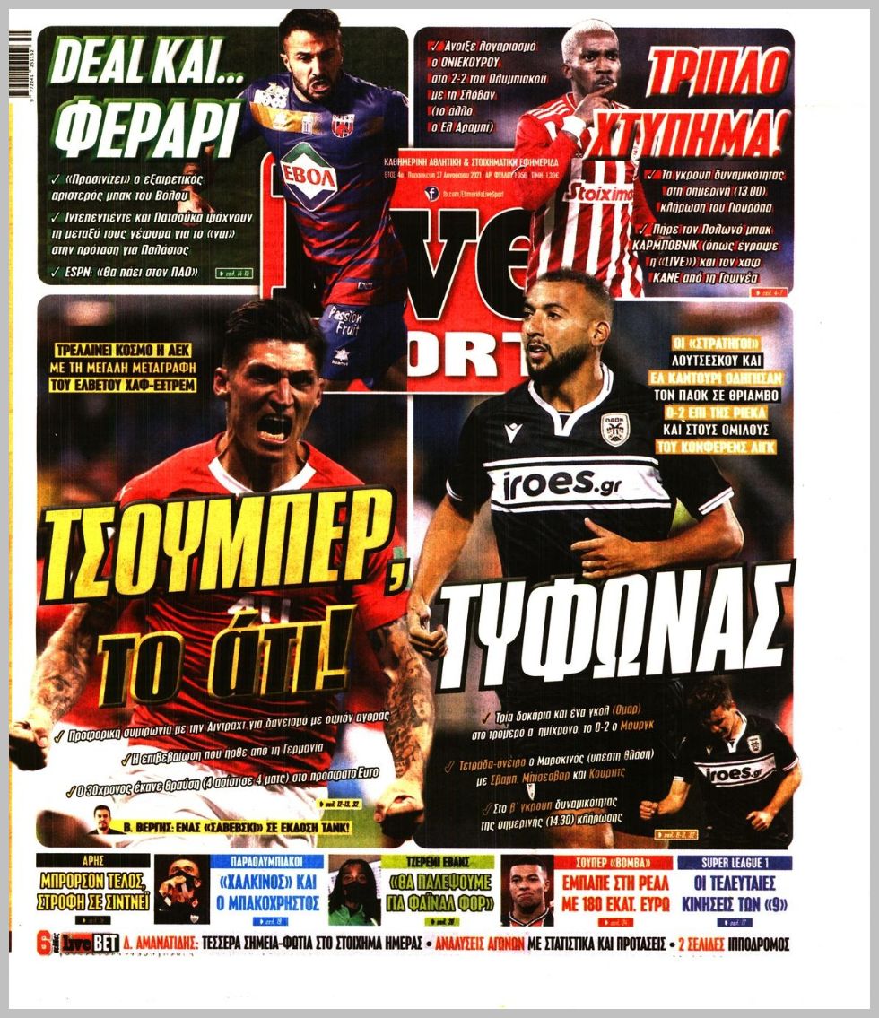 Οι αθλητικές εφημερίδες 27/8/2021 Διονύσης Νίκκας 06:37, Παρασκευή 27 Αυγούστου 2021 Media Διαβάστε τα πρωτοσέλιδα των αθλητικών εφημερίδων… ΑΘΛΗΤΙΚΕΣ ΕΦΗΜΕΡΙΔΕΣ Μοιράσου το: σχολίασε κι εσύ (0 σχόλια) Ακολουθήστε το enikos.gr στο Google News και μάθετε πρώτοι όλες τις ειδήσεις Δείτε όλες τις τελευταίες ειδήσεις από την Ελλάδα και τον Κόσμο στο enikos.gr Ειδήσεις Ροή Ειδήσεων 3 ώρες πριν Πώς δρούσε το κύκλωμα που διακινούσε ναρκωτικά σε σχολεία – Υπέβαλαν σε βασανιστήρια όσους δεν τηρούσαν τους «κανόνες πειθαρχίας» 4 ώρες πριν Αγρότες: Γιορτές στα μπλόκα με ανοιχτά διόδια – Δικογραφία στα Ιωάννινα για το σήκωμα των μπαρών 3 ώρες πριν Ζελένσκι: Οι Αμερικανοί πρότειναν συνάντηση Ουκρανίας, ΗΠΑ, Ρωσίας στο Μαϊάμι 2 ώρες πριν Τραμπ: Πώς περνάει τις γιορτές των Χριστουγέννων – Τα δώρα που κάνει στα εγγόνια του 2 ώρες πριν Μικαέλα Μπέντχαους: Ο πρώτος άνθρωπος σε αναπηρικό αμαξίδιο που ταξίδεψε στο διάστημα – ΒΙΝΤΕΟ 4 ώρες πριν Η τύχη χαμογελά σε 3 ζώδια έως τις 28 Δεκεμβρίου – «Προσέξτε τις επιλογές σας και η επιμονή σας θα ανταμειφθεί» 5 ώρες πριν Μία ανεκμετάλλευτη πηγή θα μπορούσε να προσφέρει ανεξάντλητη ενέργεια – Οι επιστήμονες ίσως γνωρίζουν πώς να την ξεκλειδώσουν 1 ώρα πριν Μήπως οι γιορτές σας δεν είναι τόσο τέλειες; 7 χριστουγεννιάτικες συνήθειες που μαρτυρούν ότι μια οικογένεια είναι δυσλειτουργική 11 ώρες πριν Enerwave: Το νέο «ρεύμα» στη λιανική ενέργειας που αλλάζει την εμπειρία του καταναλωτή 2 λεπτά πριν Πέθανε η σπουδαία αρχαιολόγος Λίλα Μαραγκού – 12 λεπτά πριν Πώς να απαλλαγείτε από τη μυρωδιά του τηγανητού φαγητού: Το μυστικό βρίσκεται στην κουζίνα σας 18 λεπτά πριν Βλαχοδήμος: «Νιώθω καλά που είμαι σημαντικός για τη Σεβίλλη» – Τι είπε για τη Ρεάλ Μαδρίτης και τον Μπαπέ 27 λεπτά πριν Πρίγκιπας Ουίλιαμ: Μαγείρεψε παρέα με τον πρίγκιπα Τζορτζ για τους αστέγους – ΦΩΤΟ και ΒΙΝΤΕΟ 36 λεπτά πριν Επιχείρηση της Τροχαίας κατά της παράνομης στάθμευσης στο Νέο Ψυχικό – Τέσσερις συλλήψεις ENIKOS NETWORK Οι γυναίκες αποκαλύπτουν το πιο ελκυστικό πράγμα που μπορεί να κάνει ένας άνδρας Ομορφιά και αντιγήρανση: Ειδικοί μιλούν για συσκευές περιποίησης του δέρματος Θεοδωρικάκος: Εθνική στρατηγική για τους ημιαγωγούς – Πρώτο βήμα η χρηματοδότηση του πρώτου Κέντρου Ικανοτήτων, με 3,63 εκα... Επίδομα θέρμανσης: Μπαίνει η πρώτη δόση την Τρίτη – Οι επόμενες πληρωμές Χαρτογραφώντας το «σημείο χωρίς επιστροφή»: Για πρώτη φορά αποκαλύπτεται με λεπτομέρεια το ακανθώδες όριο της ατμόσφαιρας τ... Η Google καταργεί τη λειτουργία «dark web report» – Πώς θα μπορούν οι χρήστες να διαγράφουν τα δεδομένα τους περισσότερα 18:19 , Σάββατο 20 Δεκεμβρίου 2025 HOTΕΛ ΕΛVIRA: Η Ελβίρα μαθαίνει πως ο Χάρι μένει κρυφά στο ξενοδοχείο του Παντελή Συνεχίζονται οι εκλογές για πρόεδρο, στο νέο επεισόδιο της κωμικής σειράς του MEGA, HOTΕΛ ΕΛVI... 14:04 , Σάββατο 20 Δεκεμβρίου 2025 Η Realnews αυτής της Κυριακής (21/12/2025) Με τίτλο: «Ασπίδα προστασίας για την Ελλάδα» κυκλοφορεί, αυτήν την Κυριακή, η Realnews. Σημαντ... 12:53 , Σάββατο 20 Δεκεμβρίου 2025 Να μ’ αγαπάς: Το παρελθόν έρχεται στο φως – Καταιγιστικές εξελίξεις στα τελευταία επεισόδια του 2025 Ο Άγγελος αποκαλύπτεται, η Φωτεινή ανησυχεί για τον Λευτέρη και η Ζωή έρχεται αντιμέτωπη με το... 11:41 , Σάββατο 20 Δεκεμβρίου 2025 «Η αγάπη δεν χάνεται ποτέ»: Η μικρού μήκους ταινία κινουμένων σχεδίων που θέτει ερωτήματα για τη ζωή και τον θάνατο Ο θάνατος είναι ένα από τα πιο σκληρά θέματα που καλείται να διαχει