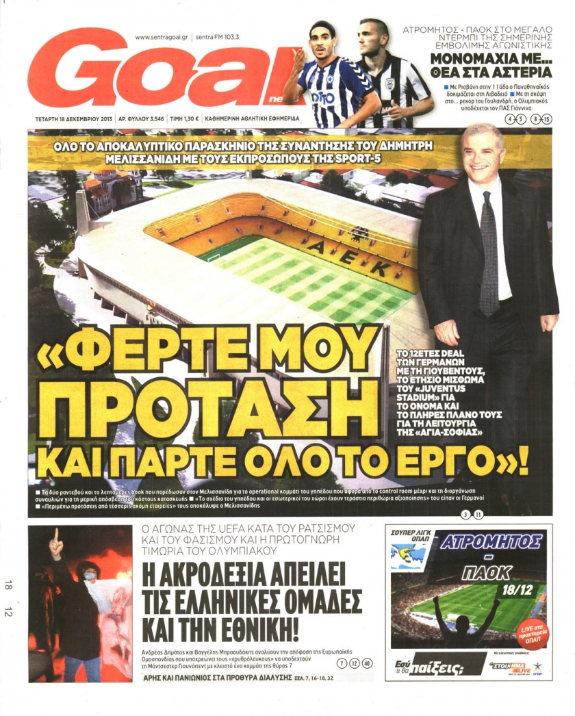 Οι αθλητικές εφημερίδες Enikos Newsroom 08:42, Τετάρτη 18 Δεκεμβρίου 2013 Media Οι αθλητικές εφημερίδες Διαβάστε τα πρωτοσέλιδα των αθλητικών εφημερίδων: ΑΘΛΗΤΙΚΕΣ ΕΦΗΜΕΡΙΔΕΣ ΕΦΗΜΕΡΙΔΕΣ ΠΡΩΤΟΣΕΛΙΔΑ Μοιράσου το: σχολίασε κι εσύ (0 σχόλια) Ακολουθήστε το enikos.gr στο Google News και μάθετε πρώτοι όλες τις ειδήσεις Δείτε όλες τις τελευταίες ειδήσεις από την Ελλάδα και τον Κόσμο στο enikos.gr Ειδήσεις Ροή Ειδήσεων 4 ώρες πριν Δολοφονία στη Νέα Πέραμο: Με 10 σφαίρες πισώπλατα εκτέλεσαν τον 27χρονο – Τον κράτησαν 6 μέρες όμηρο; 1 ώρα πριν Αγιόκαμπος: «Μια στιγμή μπορεί να σε τελειώσει για μια ζωή» λέει ο ιδιοκτήτης του παντοπωλείου που «χτυπήθηκε» για τρίτη φορά από την κακοκαιρία – «Είχα όνειρα, όλα κατέρρευσαν» 3 ώρες πριν Βουλή: Ξεκινούν οι εσωκομματικές διεργασίες για την Αναθεώρηση του Συντάγματος – Οι κοινοβουλευτικές διαδικασίες που προβλέπονται 49 λεπτά πριν Δημοσκόπηση Alco: Στις 13 μονάδες η διαφορά ΝΔ-ΠΑΣΟΚ – Πώς αξιολογούν οι πολίτες τις νέες πολιτικές κινήσεις; 3 ώρες πριν Τέμπη: Το πόρισμα του ΕΟΔΑΣΑΑΜ για τα καθίσματα της επιβατικής αμαξοστοιχίας – Δεν πληρούσαν τις προδιαγραφές πυραντοχής 43 λεπτά πριν Oι άνθρωποι που δεν αλλάζουν ποτέ κούρεμα, συνήθως διαθέτουν αυτά τα 9 σπάνια χαρακτηριστικά 5 ώρες πριν Τα 3 ζώδια που θα έχουν την τύχη με το μέρος τους έως τις 8 Φεβρουαρίου – «Αρπάξτε τις ευκαιρίες για το επόμενο βήμα στη ζωή σας» 6 ώρες πριν Ο φλοιός της Γης αψηφά τους κανόνες και οι επιστήμονες μόλις ανακάλυψαν τον λόγο 2 ώρες πριν Λευκές περσίδες ξανά: Η απλή μέθοδος για να εξαφανίσετε την κιτρινίλα χωρίς τρίψιμο 2 λεπτά πριν Eurostat: Το 9,2% του πληθυσμού της ΕΕ δυσκολεύεται να διατηρήσει το σπίτι του ζεστό 6 λεπτά πριν ΑΕΚ: Εξέδωσε ανακοίνωση για τη διαιτησία του Μάκελι στο ντέρμπι με τον Ολυμπιακό – «21 σοβαρά λάθη εις βάρος μας» 12 λεπτά πριν Εξαφανίστηκε 16χρονη από χώρο φιλοξενίας ανηλίκων στη Νέα Σμύρνη – Η ανακοίνωση από το «Χαμόγελο του Παιδιού» 19 λεπτά πριν Βουλή-Πλεύρης: Δύο προσωρινές και μία μόνιμη δομή μεταναστών στην Κρήτη 23 λεπτά πριν Μεγάλη άνοδος για την ενημέρωση του OPEN και τον Ιανουάριο του 2026 ENIKOS NETWORK 5 πράγματα που κάνουν μαζί τα ευτυχισμένα ζευγάρια Δύο παιδιά με γρίπη στις ΜΕΘ – Συνεχίζεται η απειλή των εποχικών λοιμώξεων Προκήρυξη ΑΣΕΠ για 132 μόνιμες προσλήψεις: Ανακοινώθηκαν τα προσωρινά αποτελέσματα – Πότε αρχίζει η υποβολή ενστάσεων Σημαντικά κέρδη στο Χρηματιστήριο – Έκλεισε με άνοδο 1,38% Ευπάθεια στο moltbook ai αποκαλύπτει email, tokens σύνδεσης και api keys Αυτός είναι ο ρόλος της μικρής τρύπας στους νυχοκόπτες – «Είμαι ο μόνος που δεν το ήξερε;»» περισσότερα 18:18 , Δευτέρα 02 Φεβρουαρίου 2026 Άγιος Έρωτας: Η μικρή Ελευθερία δεν θέλει τους νέους της γονείς και η Χλόη καταφεύγει στον πατέρα Νικόλαο Όσα θα δούμε απόψε στο νέο επεισόδιο της σειράς “Άγιος Έρωτας” στις 22:00 στον Alp... 18:07 , Δευτέρα 02 Φεβρουαρίου 2026 MasterChef 10: Το πρώτο Mystery Box έχει την παιχνιδιάρικη υπογραφή του Πάνου Ιωαννίδη Μετά τις πρώτες εβδομάδες και τις διαδικασίες, που προηγήθηκαν, 14 διαγωνιζόμενοι της πρώτης μ... 17:45 , Δευτέρα 02 Φεβρουαρίου 2026 Grand Hotel: Ο Πέτρος και η Αλίκη είναι και πάλι μαζί Καταιγιστικές οι εξελίξεις στο νέο διπλό επεισόδιο της σειράς “Grand Hotel” στις 2... 17:15 , Δευτέρα 02 Φεβρουαρίου 2026 Να μ’ αγαπάς: Η Φωτεινή ανακοινώνει στη Ζωή πως είναι έγκυος, απόψε στις 20:00, με διπλό επεισόδιο Ο Θεόφιλος λαμβάνει τα αποτελέσματα του τεστ DΝA, στο νέο διπλό επεισόδιο της σειράς “Να... ΤΕΛΕΥΤΑΙ