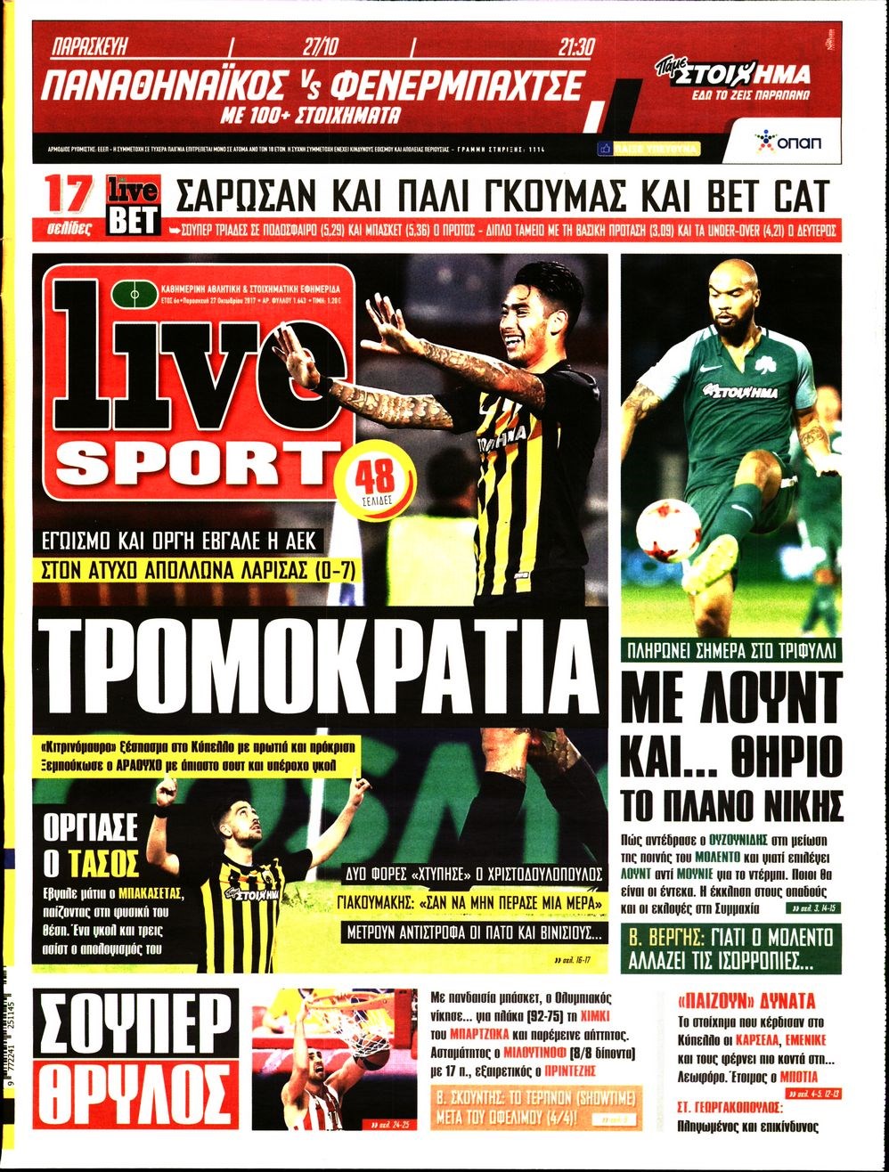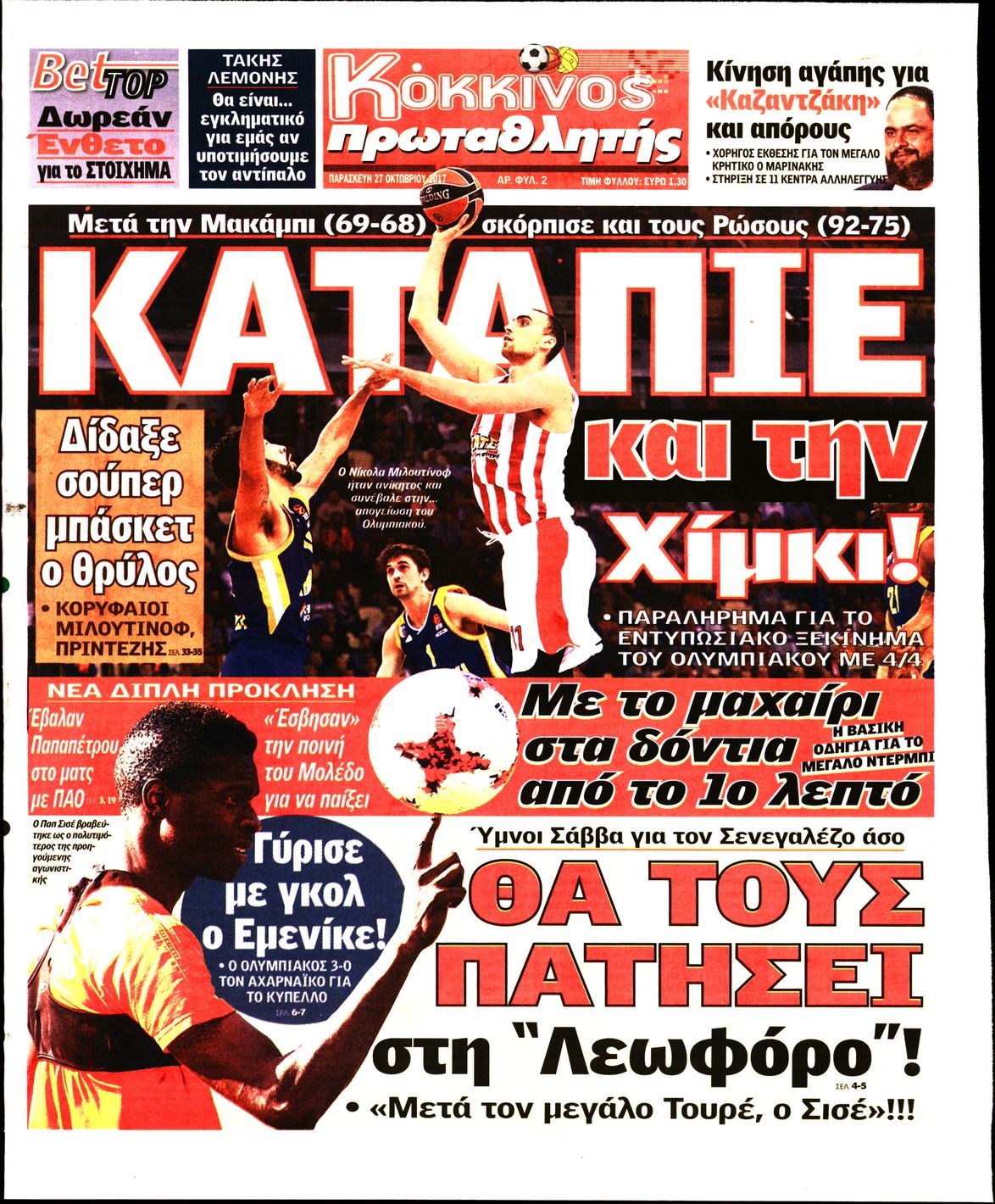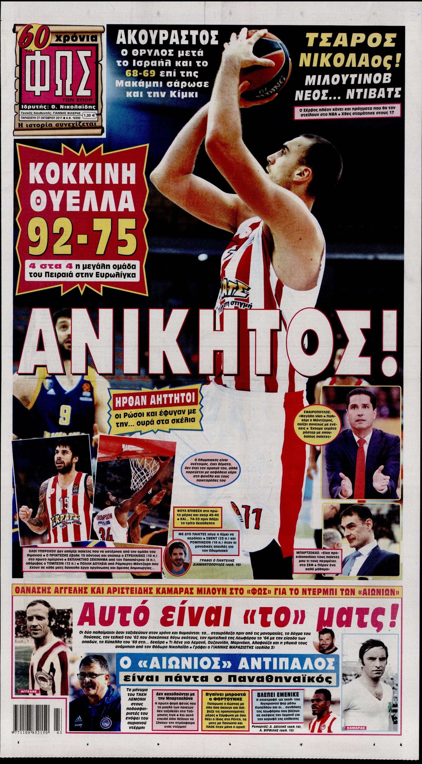 Οι αθλητικές εφημερίδες 27/10/2017 Enikos Newsroom 07:57, Παρασκευή 27 Οκτωβρίου 2017 Media Διαβάστε τα σημερινά πρωτοσέλιδα των αθλητικών εφημερίδων: ΑΘΛΗΤΙΚΕΣ ΕΦΗΜΕΡΙΔΕΣ ΠΡΩΤΟΣΕΛΙΔΑ Μοιράσου το: σχολίασε κι εσύ (0 σχόλια) Ακολουθήστε το enikos.gr στο Google News και μάθετε πρώτοι όλες τις ειδήσεις Δείτε όλες τις τελευταίες ειδήσεις από την Ελλάδα και τον Κόσμο στο enikos.gr Ειδήσεις Ροή Ειδήσεων 4 ώρες πριν Από το Ορμένιο ως τα Μάλγαρα κι από τη Σιάτιστα μέχρι τη Νίκαια: Μπλόκα σε όλη την Ελλάδα – Το Σάββατο ανοίγουν τα διόδια οι αγρότες 1 ώρα πριν Εμπλοκή και αερομαχίες με οπλισμένα τουρκικά F-16 στο Αιγαίο 3 ώρες πριν Αττική: Θρίλερ με νεκρό βρέφος 5 μηνών – Κοιμόταν στο ίδιο κρεβάτι με τους γονείς του 59 λεπτά πριν Πούτιν: «Ναι, είμαι ερωτευμένος» – Βίντεο από τη σπάνια προσωπική παραδοχή του 3 ώρες πριν Μεσόγειος: Η διαδρομή του ρωσικού τάνκερ «Qendil» και η στοχευμένη επίθεση της Ουκρανίας με drone – Ο Πούτιν προειδοποίησε για αντίποινα 5 ώρες πριν Τα 5 ζώδια που ευνοούνται στην ερωτική ζωή τους την επόμενη εβδομάδα – «Η ενέργεια του Αιγόκερου φέρνει αγάπη και σταθερότητα» 6 ώρες πριν Αυτό το έξυπνο μαθηματικό κόλπο θα μπορούσε να αλλάξει τον τρόπο με τον οποίο οι επιστήμονες μελετούν τους σεισμούς 2 ώρες πριν Μήπως έχετε χάσει τον εαυτό σας στη σχέση σας; 7 «αθόρυβες» υποχωρήσεις που μάλλον κάνατε, χωρίς να το συνειδητοποιήσετε 4 ώρες πριν Κουίζ για την παλιά Αθήνα: Αναγνωρίζετε την περιοχή; Έχετε περάσει 100% από εκεί 6 λεπτά πριν Μπαράκ Ομπάμα: Τα βιβλία, οι ταινίες και τα τραγούδια που ξεχώρισε το 2025 – Πλήρης λίστα 10 λεπτά πριν Don’t Forget The Lyrics: Η Έλλη Κοκκίνου υποδέχεται 4 παίκτες που θα κάνουν τα πάντα για να μη χάσουν ούτε… μισή λέξη από τους στίχους 16 λεπτά πριν Πλεύρης στον ΑΝΤ1: Η βασική πολιτική που ψηφίστηκε από τους υπουργούς Μετανάστευσης είναι η δημιουργία κέντρων κράτησης μεταναστών στην Αφρική – ΒΙΝΤΕΟ 21 λεπτά πριν Η εξομολόγηση της Νίκης Σερέτη: «Δεν κρύβω ότι ήταν πάρα πολύ δύσκολο όλο αυτό που βίωσα» 26 λεπτά πριν Αγρότες: Κλειστό ξανά το ρεύμα εισόδου στα Μάλγαρα – Άνοιξαν τον κόμβο της Χαλκηδόνας ENIKOS NETWORK Έχετε πραγματικά μεγάλη καρδιά; 10 χαρακτηριστικά όσων έχουν καλοσύνη «Η σούπερ» γρίπη εξαπλώνεται στην Ευρώπη-Στοιχεία από το ECDC για την αποτελεσματικότητα του εμβολίου Επίδομα παιδιού: Πότε ανοίγει ξανά η πλατφόρμα για τις αιτήσεις Προκήρυξη ΑΣΕΠ για 397 μόνιμες προσλήψεις στο Δημόσιο: Βγήκαν τα προσωρινά αποτελέσματα – Πότε αρχίζει η υποβολή ενστάσεων Χαρτογραφώντας το «σημείο χωρίς επιστροφή»: Για πρώτη φορά αποκαλύπτεται με λεπτομέρεια το ακανθώδες όριο της ατμόσφαιρας τ... Η Google καταργεί τη λειτουργία «dark web report» – Πώς θα μπορούν οι χρήστες να διαγράφουν τα δεδομένα τους περισσότερα 20:37 , Παρασκευή 19 Δεκεμβρίου 2025 Don’t Forget The Lyrics: Η Έλλη Κοκκίνου υποδέχεται 4 παίκτες που θα κάνουν τα πάντα για να μη χάσουν ούτε… μισή λέξη από τους στίχους Το «Don’t Forget The Lyrics» επιστρέφει απόψε, Παρασκευή 19 Δεκεμβρίου, στις 21:00 με νέο επει... 19:31 , Παρασκευή 19 Δεκεμβρίου 2025 GNTM: Απόψε ο μεγάλος τελικός για τους 4 φιναλίστ Έπειτα από μήνες γεμάτους μόδα, δημιουργία και έντονες αναμετρήσεις, το GNTM 2025 κορυφώνεται,... 18:11 , Παρασκευή 19 Δεκεμβρίου 2025 Το σόι σου: Ο Άρης έρχεται στην Ελλάδα για τις γιορτές των Χριστουγέννων – Τι θα δούμε στο αποψινό εορταστικό επεισόδιο Ένα απολαυστικό, εορταστικό επεισόδιο της σειράς “Το σόι σου”, γεμάτο ευτράπελα αλ... 15:15 , Παρασκευή 19 Δεκεμβρίου 2025 Την Κ