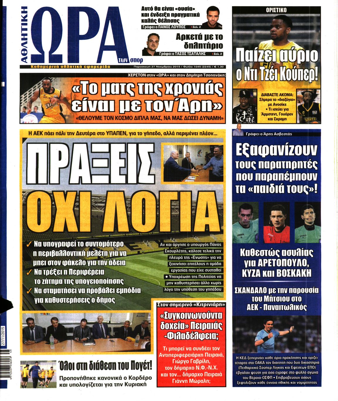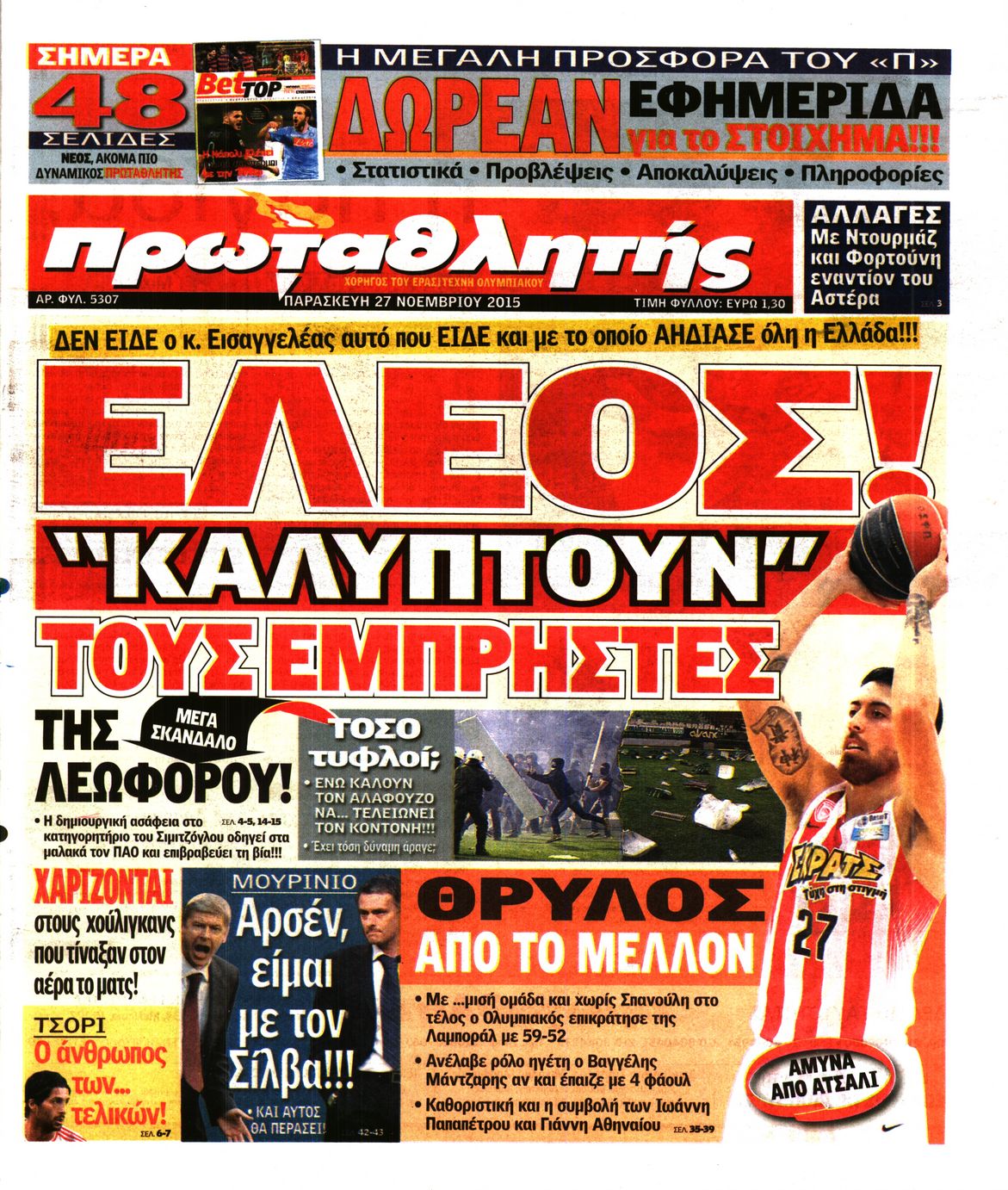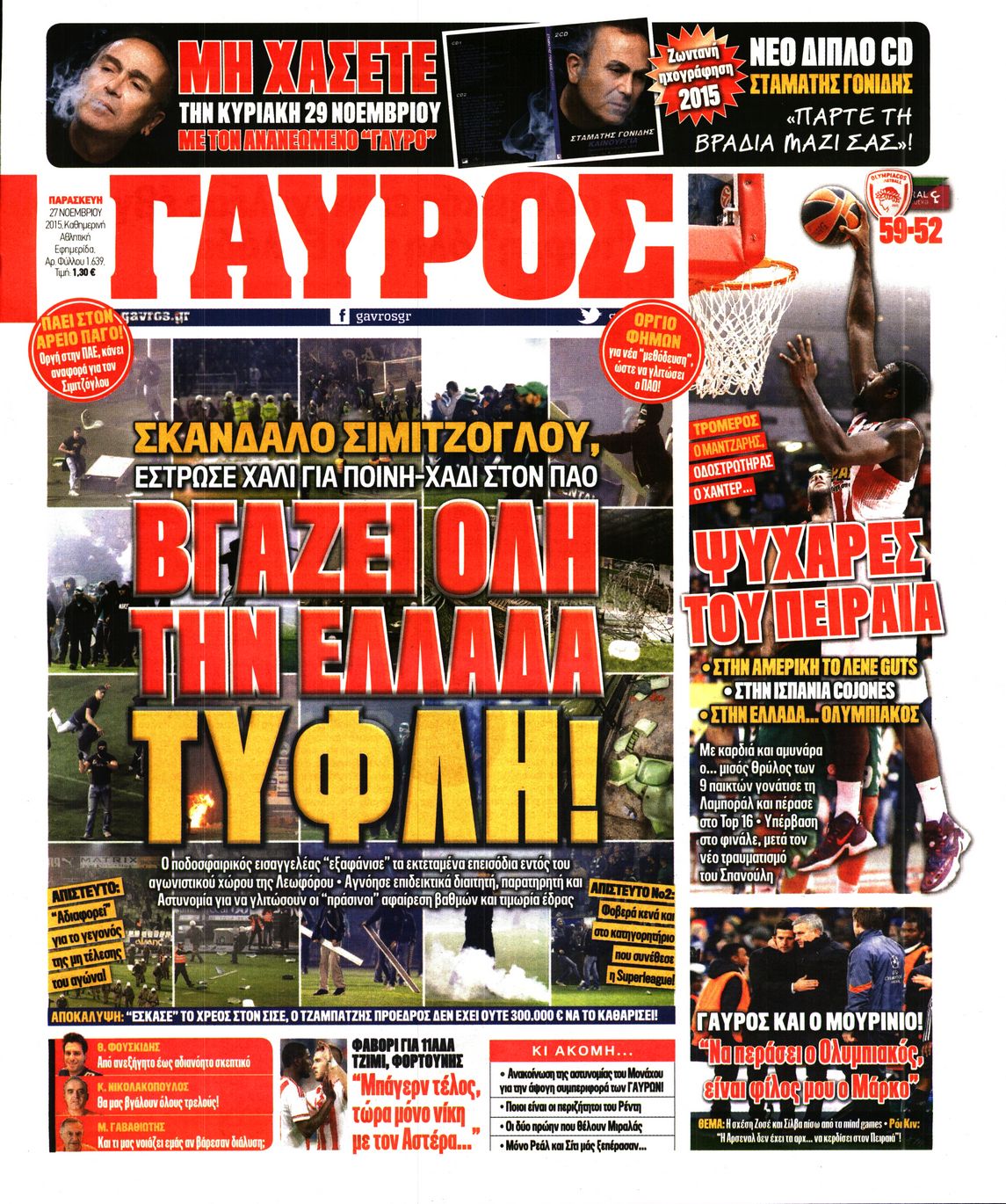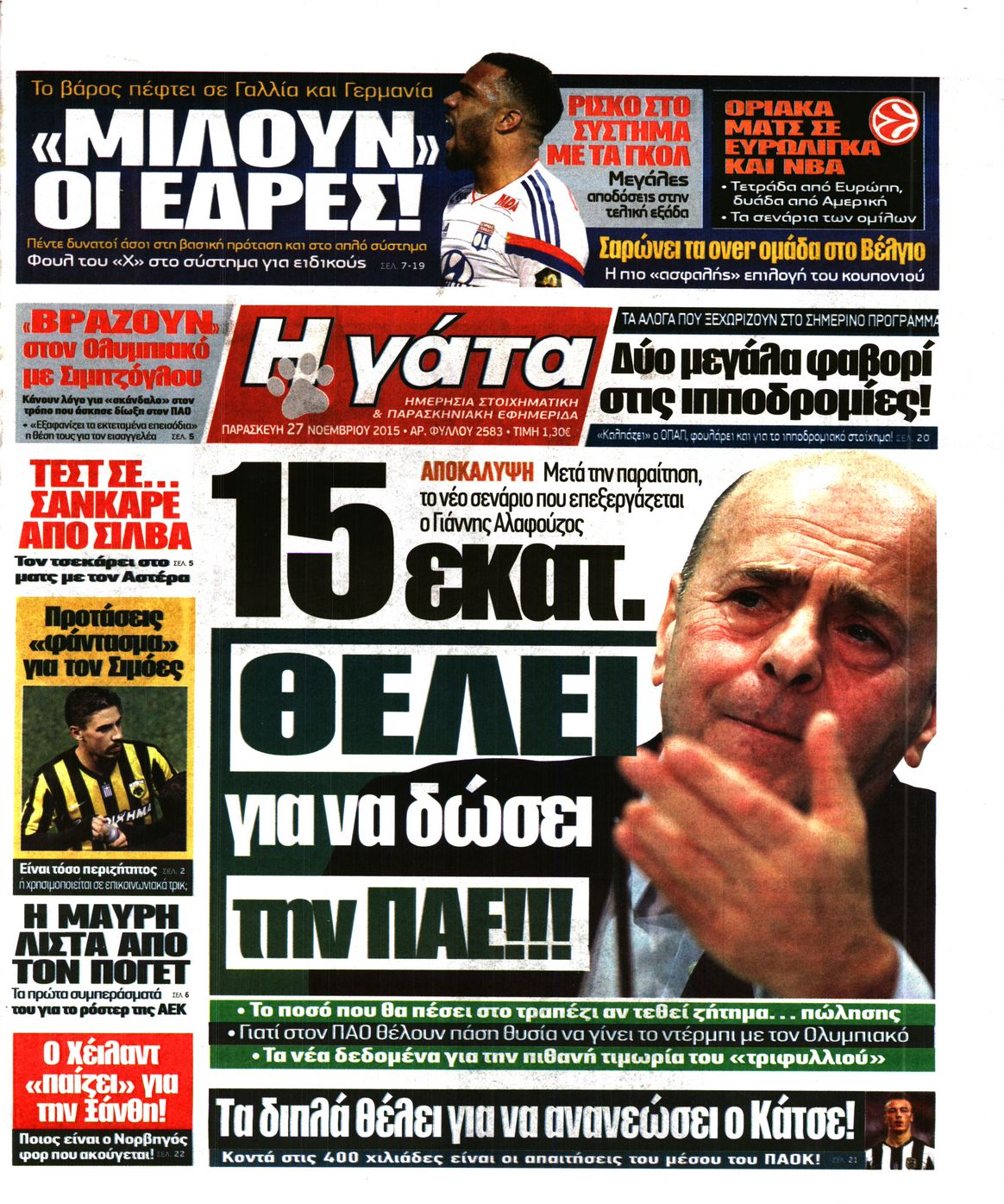 Οι αθλητικές εφημερίδες 27/11/2015 Enikos Newsroom 05:54, Παρασκευή 27 Νοεμβρίου 2015 Media Διαβάστε τα σημερινά πρωτοσέλιδα των αθλητικών εφημερίδων: ΑΘΛΗΤΙΚΕΣ ΕΦΗΜΕΡΙΔΕΣ ΠΡΩΤΟΣΕΛΙΔΑ Μοιράσου το: σχολίασε κι εσύ (0 σχόλια) Ακολουθήστε το enikos.gr στο Google News και μάθετε πρώτοι όλες τις ειδήσεις Δείτε όλες τις τελευταίες ειδήσεις από την Ελλάδα και τον Κόσμο στο enikos.gr Ειδήσεις Ροή Ειδήσεων 1 ώρα πριν Δημοσκόπηση Metron Analysis: Στις 10 μονάδες η διαφορά ΝΔ-ΠΑΣΟΚ, στην 3η θέση η Πλεύση Ελευθερίας – 8 στους 10 στηρίζουν τον αγώνα των αγροτών 6 ώρες πριν Αγρότες: «Όχι στον διάλογο, μας εμπαίζει η κυβέρνηση» – Αποφάσισαν κλιμάκωση των κινητοποιήσεων, τι θα γίνει τα Χριστούγεννα 1 ώρα πριν Νίκος Παππάς στον ΑΝΤ1: «Δεν κρύβομαι – Μετά το συμβάν ακολούθησα κανονικά το πρόγραμμά μου» – ΒΙΝΤΕΟ 3 ώρες πριν Αθήνα: Εξαρθρώθηκε εγκληματική οργάνωση που διακινούσε ναρκωτικά σε μορφή σοκολάτας – Δύο τράπερ ανάμεσα στους 4 συλληφθέντες – ΒΙΝΤΕΟ 1 ώρα πριν Διαμαντής Καραναστάσης: Οδηγούσε υπό την επήρεια αλκοόλ – Του αφαιρέθηκε το δίπλωμα και του επιβλήθηκε πρόστιμο 350 ευρώ 2 ώρες πριν Manifesting: Πώς να συναντήσετε τον σύντροφο της ζωής σας, ανάλογα με τον μήνα γέννησής σας 4 ώρες πριν Γάμος: 11 ψυχρές αλλά ευγενικές φράσεις, που λέει ένας άνδρας όταν σκέφτεται τον χωρισμό 3 ώρες πριν Σφουγγάρισμα: Η συνήθεια που θα σας βοηθήσει να διατηρήσετε το σπίτι σας καθαρό και τακτοποιημένο 2 ημέρες πριν 20 χρόνια τα Χριστούγεννα ξεκινούν στα Public με μεγάλη ποικιλία σε δώρα! 3 λεπτά πριν Αυξάνουν την πίεση προς την κυβέρνηση οι αγρότες: Κλείνουν παρακαμπτήριους και ανοίγουν διόδια – Τι θα γίνει τις γιορτές 8 λεπτά πριν Ελισάβετ Κωνσταντινίδου για τον Γεράσιμο Μιχελή και την Πόπη Χριστοδούλου: «Ξέρω ότι έχουν πάει απλώς κάπου αλλού, ότι δεν είναι ο θάνατος έτσι όπως τον έχουμε στο μυαλό μας» 12 λεπτά πριν Κρήτη: Νέες αποκαλύψεις για τον 54χρονο που κατηγορείται ότι εξαπάτησε τους γονείς του 33χρονου – Ζητούσε τρίχες αγνοουμένων 19 λεπτά πριν Τσιάρας: Δεν θα κινδυνέψουν οι πληρωμές των αγροτών – Χρειαζόμαστε μια νέα πολιτική, ένα restart 26 λεπτά πριν Δέσποινα Βανδή: Το βίντεο που δημοσίευσε με τον Γιώργο Νικολαΐδη – «Έχουμε καταστραφεί από τα μελομακάρονά σου» ENIKOS NETWORK Σε περίοδο αυξημένης δραστηριότητας η γρίπη στην Ελλάδα-Μέτρα προστασίας από τον ΕΟΔΥ Σκέφτεστε συνέχεια συζητήσεις που έχετε κάνει; Τι σημαίνει αυτό, σύμφωνα με ειδικό ΑΣΕΠ 2ΓΒ/2025: Σήμερα αρχίζει η υποβολή ενστάσεων – Πότε θα βγουν τα οριστικά αποτελέσματα ΕΛΤΑ: Αυτό είναι το νέο σχέδιο μετασχηματισμού του Οργανισμού- Τι δήλωσαν Πιερρακάκης και Παπαστεργίου Χαρτογραφώντας το «σημείο χωρίς επιστροφή»: Για πρώτη φορά αποκαλύπτεται με λεπτομέρεια το ακανθώδες όριο της ατμόσφαιρας τ... Η Google καταργεί τη λειτουργία «dark web report» – Πώς θα μπορούν οι χρήστες να διαγράφουν τα δεδομένα τους περισσότερα 17:45 , Πέμπτη 18 Δεκεμβρίου 2025 ROUK ZOUK: Εορταστικό επεισόδιο με καλεσμένους τους πρωταγωνιστές του «Γιατί ρε πατέρα» Το Σάββατο 20 Δεκεμβρίου στις 21:00, η Ζέτα Μακρυπούλια υποδέχεται εκλεκτούς ηθοποιούς που όλο... 17:20 , Πέμπτη 18 Δεκεμβρίου 2025 Άγιος έρωτας: Η Χριστίνα εξομολογείται στον πατέρα Νικόλαο, απόψε στις 21:00 στον Alpha Η Νότα αποφασίζει να εκδικηθεί τον Πέτρο και τον Στέφανο, για χάρη του Λούη, όμως τα πράγματα ... 16:50 , Πέμπτη 18 Δεκεμβρίου 2025 Να μ’ αγαπάς: Ζωή και Φωτεινή συμφιλιώνονται ως μάνα με κόρη, απόψε στις 20:00 Η ταυτότητα του Άγγελου αποκαλύπτεται στο νέο 
