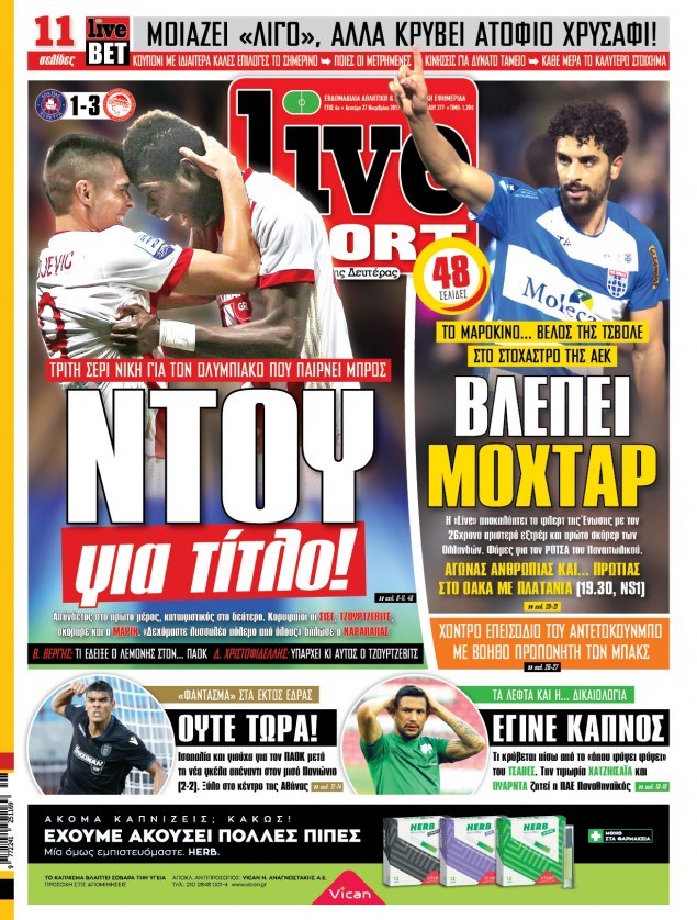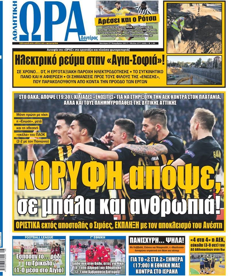 Οι αθλητικές εφημερίδες 27/11/2017 Κώστας Τεό 06:50, Δευτέρα 27 Νοεμβρίου 2017 Media Διαβάστε τα σημερινά πρωτοσέλιδα των αθλητικών εφημερίδων: ΑΘΛΗΤΙΚΕΣ ΕΦΗΜΕΡΙΔΕΣ ΠΡΩΤΟΣΕΛΙΔΑ Μοιράσου το: σχολίασε κι εσύ (0 σχόλια) Ακολουθήστε το enikos.gr στο Google News και μάθετε πρώτοι όλες τις ειδήσεις Δείτε όλες τις τελευταίες ειδήσεις από την Ελλάδα και τον Κόσμο στο enikos.gr Ειδήσεις Ροή Ειδήσεων 37 λεπτά πριν Μεσόγειος: Η διαδρομή του ρωσικού τάνκερ «Qendil» και η στοχευμένη επίθεση της Ουκρανίας με drone – Ο Πούτιν προειδοποίησε για αντίποινα 31 λεπτά πριν Αττική: Θρίλερ με νεκρό βρέφος 5 μηνών – Κοιμόταν στο ίδιο κρεβάτι με τους γονείς του 1 ώρα πριν Από το Ορμένιο ως τα Μάλγαρα κι από τη Σιάτιστα μέχρι τη Νίκαια: Μπλόκα σε όλη την Ελλάδα – Το Σάββατο ανοίγουν τα διόδια οι αγρότες 2 ώρες πριν «Έλληνας Εσκομπάρ»: Φωτογραφίες με τους 4 τόνους κοκαΐνης που κατασχέθηκαν από το σκάφος «Ουρανία» 3 ώρες πριν Πούτιν: Σαρκαστικά μηνύματα, παράπονα και απρόοπτα στη συνέντευξη Τύπου – Η πρόταση γάμου on air και οι ερωτήσεις για τα αγγούρια και τους… εξωγήινους 3 ώρες πριν Τα 5 ζώδια που ευνοούνται στην ερωτική ζωή τους την επόμενη εβδομάδα – «Η ενέργεια του Αιγόκερου φέρνει αγάπη και σταθερότητα» 7 ώρες πριν Ειδικός μοιράζεται 6 κόλπα για να διατηρείστε σε φόρμα με πάνω από 40 ώρες εργασίας την εβδομάδα: «Προπονηθείτε πριν από τη δουλειά, όχι μετά» 4 ώρες πριν Αυτό το έξυπνο μαθηματικό κόλπο θα μπορούσε να αλλάξει τον τρόπο με τον οποίο οι επιστήμονες μελετούν τους σεισμούς 1 ώρα πριν Κουίζ για την παλιά Αθήνα: Αναγνωρίζετε την περιοχή; Έχετε περάσει 100% από εκεί 6 λεπτά πριν Επίσημη η «βόμβα»: Ο ΠΑΟΚ ανακοίνωσε την απόκτηση του Πάτρικ Μπέβερλι 11 λεπτά πριν Θεσσαλονίκη: Πατέρας εγκαλεί τον Ιατρικό Σύλλογο για ποινές «χάδι» σε γιατρό που κατηγορείται για τον θάνατο του παιδιού του 17 λεπτά πριν Κερατσίνι: Αστυνομικός εκτός υπηρεσίας απέτρεψε κλοπή μηχανών – Συνελήφθησαν τρεις ανήλικοι 21 λεπτά πριν Το σόι σου: Ο Άρης έρχεται στην Ελλάδα για τις γιορτές των Χριστουγέννων – Τι θα δούμε στο αποψινό εορταστικό επεισόδιο 28 λεπτά πριν ΠΑΣΟΚ σε Μαρινάκη: Δεν νομιμοποιούμε πολιτικές επιλογές που μεταφέρουν το πρόβλημα από υπηρεσία σε υπηρεσία ENIKOS NETWORK «Η σούπερ» γρίπη εξαπλώνεται στην Ευρώπη-Στοιχεία για την αποτελεσματικότητα του εμβολίου από το ECDC ΕΛΣΤΑΤ: Αύξηση κατά 1,7% των επαγγελματιών υγείας το 2024 Η απάντηση της κυβέρνησης στα αιτήματα των αγροτών: 16 έχουν ικανοποιηθεί, 4 βρίσκονται υπό επεξεργασία και 7 δεν είναι εφι... Μισθολογική διαφάνεια: Το 68% των εργαζομένων αγνοεί τη νέα οδηγία – Αναλυτικά τα στοιχεία έρευνας Χαρτογραφώντας το «σημείο χωρίς επιστροφή»: Για πρώτη φορά αποκαλύπτεται με λεπτομέρεια το ακανθώδες όριο της ατμόσφαιρας τ... Η Google καταργεί τη λειτουργία «dark web report» – Πώς θα μπορούν οι χρήστες να διαγράφουν τα δεδομένα τους περισσότερα 18:11 , Παρασκευή 19 Δεκεμβρίου 2025 Το σόι σου: Ο Άρης έρχεται στην Ελλάδα για τις γιορτές των Χριστουγέννων – Τι θα δούμε στο αποψινό εορταστικό επεισόδιο Ένα απολαυστικό, εορταστικό επεισόδιο της σειράς “Το σόι σου”, γεμάτο ευτράπελα αλ... 15:15 , Παρασκευή 19 Δεκεμβρίου 2025 Την Κυριακή με τη Realnews: Ό,τι και αν αγοράσεις, σκανάρεις και κερδίζεις! Την Κυριακή με τη Realnews: Ό,τι και αν αγοράσεις, σκανάρεις και κερδίζεις! Με το PADU app, το... 08:00 , Παρασκευή 19 Δεκεμβρίου 2025 Την Κυριακή με τη Realnews: Δωροεπιταγή 10€ Δωροεπιταγή αξίας 10€ για αγορές άνω των 60€ από τα πολυκατ