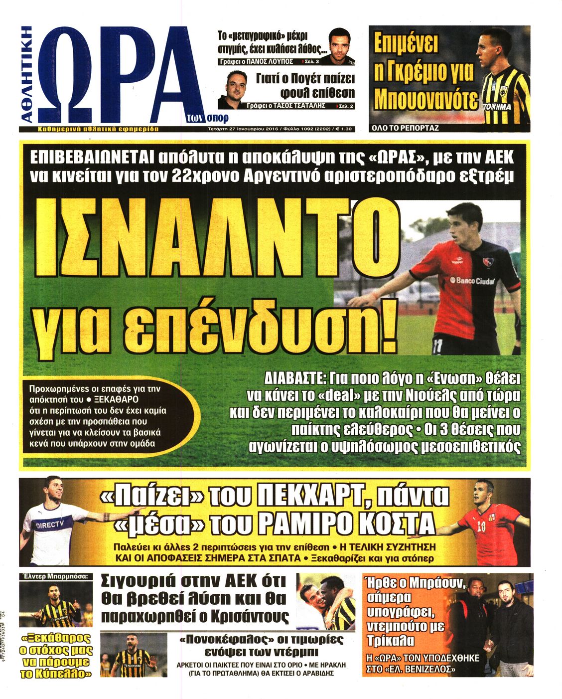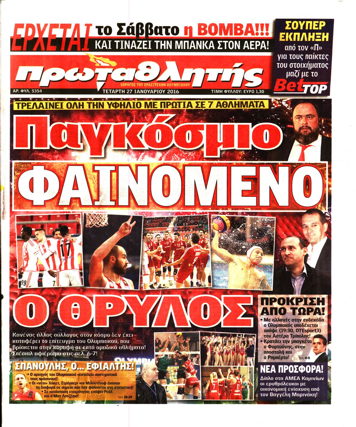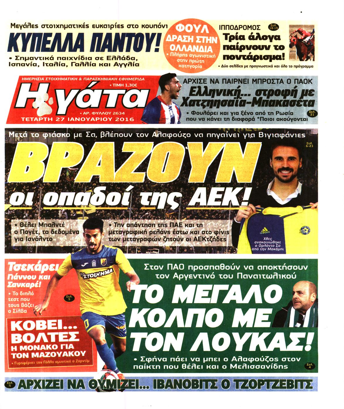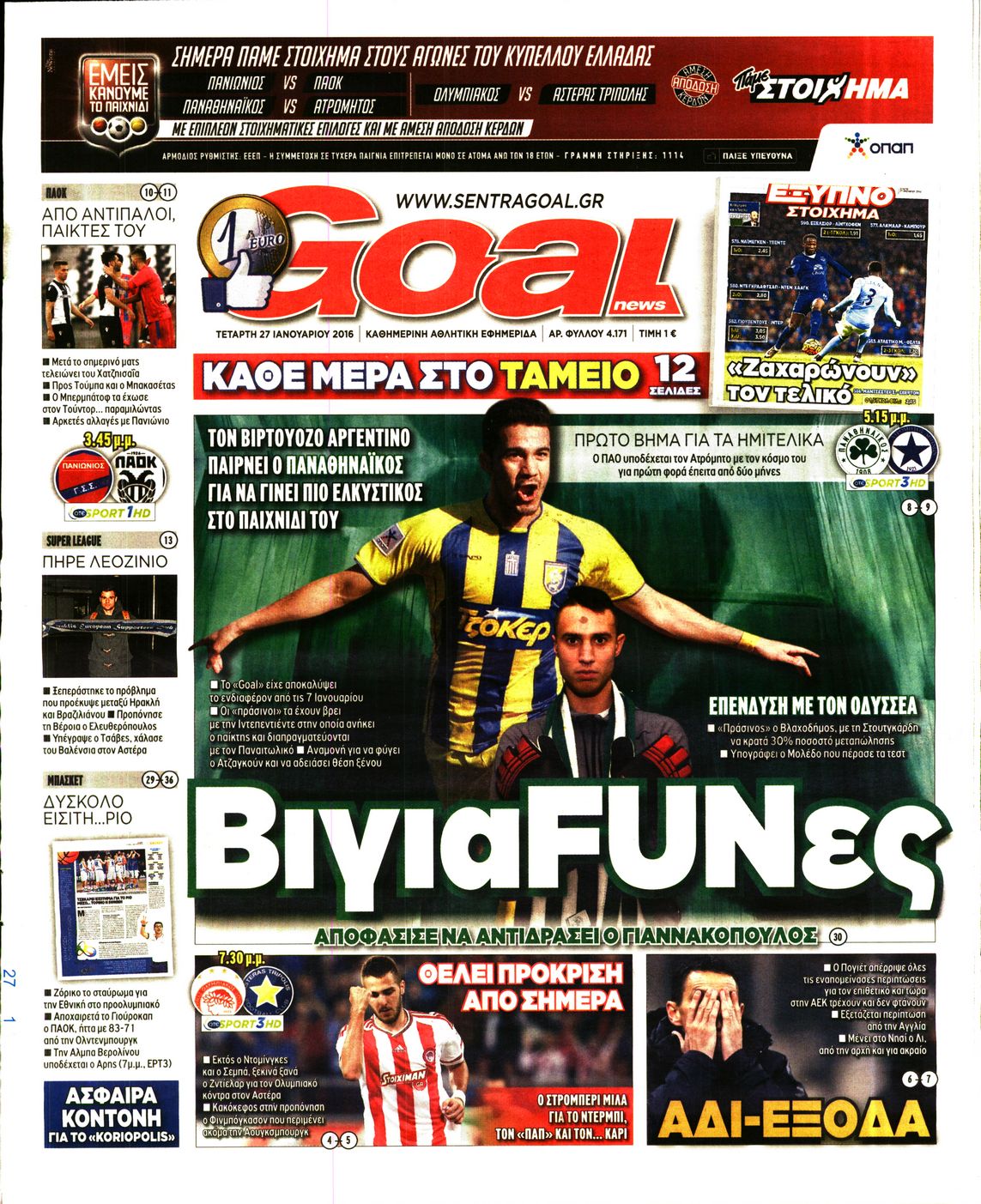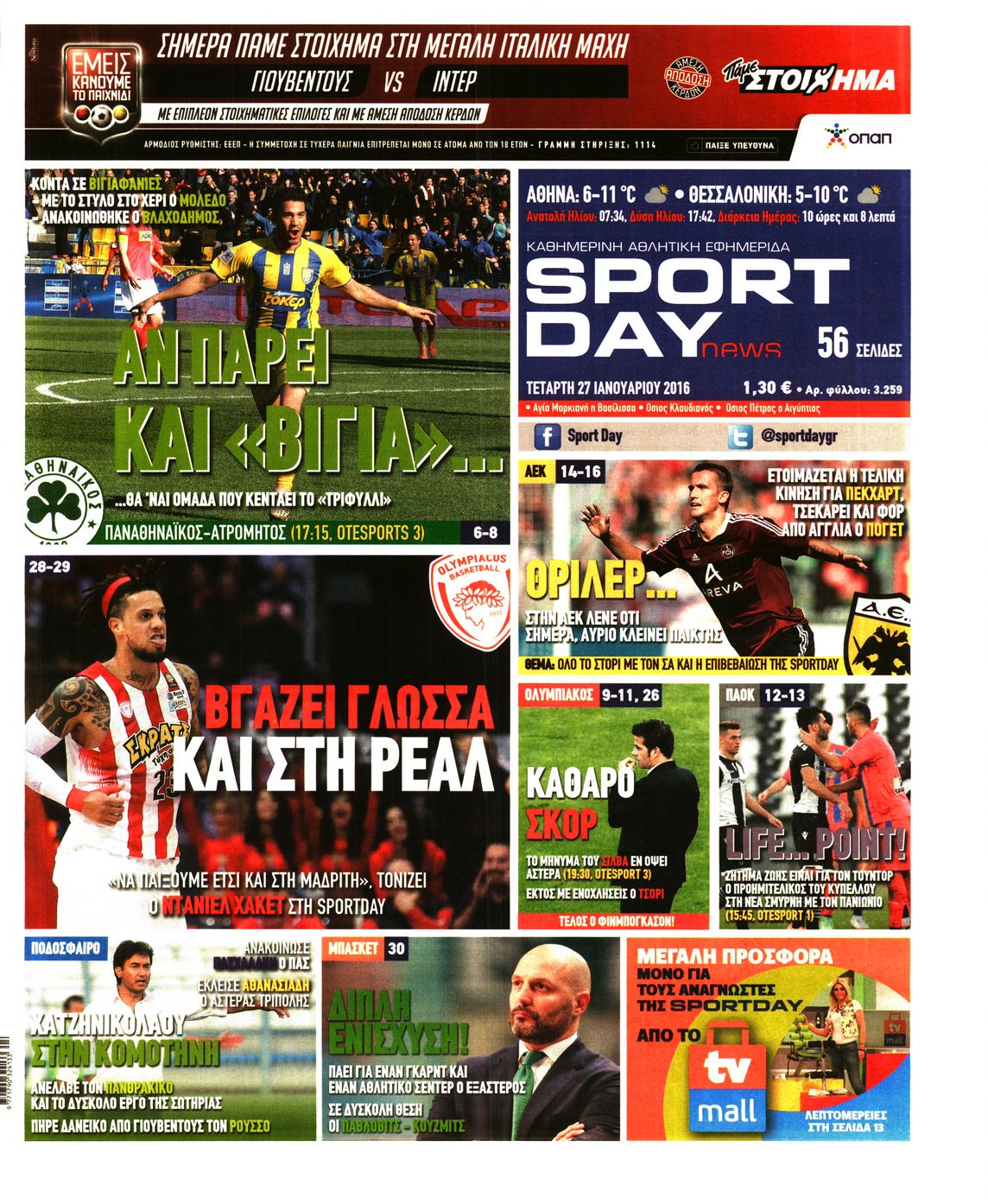 Οι αθλητικές εφημερίδες 27/1/2016 Enikos Newsroom 05:39, Τετάρτη 27 Ιανουαρίου 2016 Media Διαβάστε τα σημερινά πρωτοσέλιδα των αθλητικών εφημερίδων: ΑΘΛΗΤΙΚΕΣ ΕΦΗΜΕΡΙΔΕΣ ΠΡΩΤΟΣΕΛΙΔΑ Μοιράσου το: σχολίασε κι εσύ (0 σχόλια) Ακολουθήστε το enikos.gr στο Google News και μάθετε πρώτοι όλες τις ειδήσεις Δείτε όλες τις τελευταίες ειδήσεις από την Ελλάδα και τον Κόσμο στο enikos.gr Ειδήσεις Ροή Ειδήσεων 2 ώρες πριν Κλιμακώνουν από σήμερα τις κινητοποιήσεις οι αγρότες: Νέα μπλόκα, κλείσιμο παρακαμπτηρίων και άνοιγμα διοδίων – Το νέο μήνυμα Μητσοτάκη 43 λεπτά πριν Ευρωπαϊκό Συμβούλιο: Όλες οι λεπτομέρειες για το δάνειο των 90 δισ. ευρώ στην Ουκρανία – Τα συμπεράσματα της Συνόδου Κορυφής 25 λεπτά πριν Νίκος Παππάς: Δρομολογήθηκαν οι διαδικασίες για τη διαγραφή του από τον ΣΥΡΙΖΑ μέσα στις γιορτές 2 ώρες πριν Συντάξεις: Οι κερδισμένοι και οι χαμένοι από τις αυξήσεις – Αναλυτικός οδηγός και παραδείγματα 46 λεπτά πριν Peter Greene: Ο πρωταγωνιστής του «Pulp Fiction» είχε τραύματα στο σώμα του όταν βρέθηκε νεκρός στο αιματοβαμμένο διαμέρισμα 3 ώρες πριν Κρύα χέρια και πόδια: Γιατρός εξηγεί ποια είναι η αίτια και πότε πρέπει να ανησυχήσετε 1 ώρα πριν Πώς το αρχαίο DNA του κυνηγού – συλλέκτη ξεκλείδωσε τα μυστικά της μακροζωίας 2 ημέρες πριν 20 χρόνια τα Χριστούγεννα ξεκινούν στα Public με μεγάλη ποικιλία σε δώρα! 20 λεπτά πριν Ο σύζυγός της συμπεριφέρεται όπως το παιδί τους – «Χρησιμοποιεί αστείες δικαιολογίες για να μην κάνει δουλειές και να ξοδεύει λεφτά» 5 λεπτά πριν Στην Ουάσινγκτον ο Άδωνις Γεωργιάδης – Επαφές σε Καπιτώλιο και Λευκό Οίκο για Υγεία και αμερικανικές επενδύσεις 10 λεπτά πριν Ηρώ Κυριακάκη: Η σπάνια δημόσια εμφάνιση της 94χρονης ηθοποιού – «Είναι τόσο μεγάλη η συγκίνησή μου» 15 λεπτά πριν Πούτιν: Σήμερα η μαραθώνια συνέντευξη Τύπου για τον ετήσιο απολογισμό του – Τι αναμένεται να πει 20 λεπτά πριν Ο σύζυγός της συμπεριφέρεται όπως το παιδί τους – «Χρησιμοποιεί αστείες δικαιολογίες για να μην κάνει δουλειές και να ξοδεύει λεφτά» 25 λεπτά πριν Νίκος Παππάς: Δρομολογήθηκαν οι διαδικασίες για τη διαγραφή του από τον ΣΥΡΙΖΑ μέσα στις γιορτές ENIKOS NETWORK 24χρονη που έπασχε από καρκίνο του εντέρου αγνόησε 3 βασικά συμπτώματα: «Μην κάνετε το ίδιο λάθος με μένα» Άνοια: Ειδικοί προειδοποιούν για 5 κοινές συνήθειες που μπορεί να αυξήσουν τον κίνδυνο Συντάξεις: Οι κερδισμένοι και οι χαμένοι από τις αυξήσεις – Αναλυτικός οδηγός Στεγαστικό: Τι λέει η ΠΟΜΙΔΑ για τα νέα μέτρα που ανακοίνωσε ο Κυριάκος Μητσοτάκης Χαρτογραφώντας το «σημείο χωρίς επιστροφή»: Για πρώτη φορά αποκαλύπτεται με λεπτομέρεια το ακανθώδες όριο της ατμόσφαιρας τ... Η Google καταργεί τη λειτουργία «dark web report» – Πώς θα μπορούν οι χρήστες να διαγράφουν τα δεδομένα τους περισσότερα 08:00 , Παρασκευή 19 Δεκεμβρίου 2025 Την Κυριακή με τη Realnews: Δωροεπιταγή 10€ Δωροεπιταγή αξίας 10€ για αγορές άνω των 60€ από τα πολυκαταστήματα FactoryOutlet H προσφορά ι... 05:48 , Παρασκευή 19 Δεκεμβρίου 2025 Οι οικονομικές εφημερίδες 19/12/2025 Διαβάστε τα πρωτοσέλιδα από τις οικονομικές εφημερίδες, σήμερα 19/12/2025. 05:43 , Παρασκευή 19 Δεκεμβρίου 2025 Οι αθλητικές εφημερίδες 19/12/2025 Διαβάστε τα πρωτοσέλιδα από τις αθλητικές εφημερίδες, σήμερα 19/12/2025. 05:38 , Παρασκευή 19 Δεκεμβρίου 2025 Οι πολιτικές εφημερίδες 19/12/2025 Διαβάστε τα πρωτοσέλιδα από τις πολιτικές εφημερίδες, σήμερα 19/12/2025. ΤΕΛΕΥΤΑΙΕΣ ΕΙΔΗΣΕΙΣ 5 λεπτά πριν Στην Ουάσινγκτον ο Άδωνις Γεωργιάδης – Επαφές σε... 10 λεπτά πριν Ηρώ Κυριακάκη: Η σ