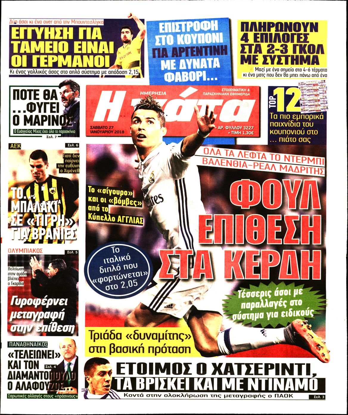 Οι αθλητικές εφημερίδες 27/1/2018 Enikos Newsroom 07:30, Σάββατο 27 Ιανουαρίου 2018 Media Διαβάστε τα σημερινά πρωτοσέλιδα των αθλητικών εφημερίδων: ΑΘΛΗΤΙΚΕΣ ΕΦΗΜΕΡΙΔΕΣ ΠΡΩΤΟΣΕΛΙΔΑ Μοιράσου το: σχολίασε κι εσύ (0 σχόλια) Ακολουθήστε το enikos.gr στο Google News και μάθετε πρώτοι όλες τις ειδήσεις Δείτε όλες τις τελευταίες ειδήσεις από την Ελλάδα και τον Κόσμο στο enikos.gr Ειδήσεις Ροή Ειδήσεων 1 ώρα πριν Η Ουκρανία χτύπησε τάνκερ του σκιώδους στόλου της Ρωσίας στη Μεσόγειο – Έπλεε νότια της Κρήτης 4 ώρες πριν Πούτιν: Η Ουκρανία δεν είναι έτοιμη για ειρηνευτικές συνομιλίες – Ο ρωσικός στρατός προελαύνει σε όλα τα μέτωπα 23 λεπτά πριν Θεσσαλονίκη: Στη φυλακή ο 44χρονος που κατηγορείται ότι προσπάθησε να πνίξει με κορδόνι την 34χρονη σύντροφό του 41 λεπτά πριν Εξώδικο επιχειρηματία στον Γιώργο Μαζωνάκη – Τι απαντά στις καταγγελίες του τραγουδιστή 1 ώρα πριν Βουλή: Υπερψηφίστηκε το νομοσχέδιο για την ένταξη του ΟΠΕΚΕΠΕ στην ΑΑΔΕ 5 ώρες πριν Αλλαγή σελίδας για 3 ζώδια – «Μία δύσκολη περίοδος φτάνει στο τέλος της» 2 ημέρες πριν 20 χρόνια τα Χριστούγεννα ξεκινούν στα Public με μεγάλη ποικιλία σε δώρα! 4 ώρες πριν Γεμάτος νεροχύτης; 5 σοβαρές ευθύνες που «φοβίζουν» όσους αφήνουν άπλυτα πιάτα 3 ώρες πριν Ειδικός μοιράζεται 6 κόλπα για να διατηρείστε σε φόρμα με πάνω από 40 ώρες εργασίας την εβδομάδα: «Προπονηθείτε πριν από τη δουλειά, όχι μετά» 4 λεπτά πριν Η απάντηση της κυβέρνησης στα αιτήματα των αγροτών: 16+4 υλοποιούνται ή βρίσκονται υπό επεξεργασία για να βρεθεί λύση – 7 δεν μπορούν να επιλυθούν 11 λεπτά πριν Την Κυριακή με τη Realnews: Ό,τι και αν αγοράσεις, σκανάρεις και κερδίζεις! 17 λεπτά πριν ΝΒΑ: Η πρώτη… πεντάδα του Γιάννη Αντετοκούνμπο 19 λεπτά πριν Η Σάντυ Χατζηϊωάννου στο Game Time: Το παιδικό όνειρο με τον Αντώνη Νικοπολίδη και το ντουέτο με την Ευγενία Σαμαρά 23 λεπτά πριν Θεσσαλονίκη: Στη φυλακή ο 44χρονος που κατηγορείται ότι προσπάθησε να πνίξει με κορδόνι την 34χρονη σύντροφό του ENIKOS NETWORK Τάξη στις ιατρικές διαφημίσεις για την προστασία των πολιτών βάζει ο ΙΣΑ Μακροζωία: Τι παίζει πιο σημαντικό ρόλο ακόμα και από την διατροφή και την άσκηση, σύμφωνα με μελέτη Βουλή: Υπερψηφίστηκε το νομοσχέδιο για τη μετάβαση του ΟΠΕΚΕΠΕ στην ΑΑΔΕ ΕΥΔΑΠ: Οδηγός για τις αλλαγές στα τιμολόγια του νερού – 17 ερωτήσεις και απαντήσεις Χαρτογραφώντας το «σημείο χωρίς επιστροφή»: Για πρώτη φορά αποκαλύπτεται με λεπτομέρεια το ακανθώδες όριο της ατμόσφαιρας τ... Η Google καταργεί τη λειτουργία «dark web report» – Πώς θα μπορούν οι χρήστες να διαγράφουν τα δεδομένα τους περισσότερα 15:15 , Παρασκευή 19 Δεκεμβρίου 2025 Την Κυριακή με τη Realnews: Ό,τι και αν αγοράσεις, σκανάρεις και κερδίζεις! Την Κυριακή με τη Realnews: Ό,τι και αν αγοράσεις, σκανάρεις και κερδίζεις! Με το PADU app, το... 08:00 , Παρασκευή 19 Δεκεμβρίου 2025 Την Κυριακή με τη Realnews: Δωροεπιταγή 10€ Δωροεπιταγή αξίας 10€ για αγορές άνω των 60€ από τα πολυκαταστήματα FactoryOutlet H προσφορά ι... 05:48 , Παρασκευή 19 Δεκεμβρίου 2025 Οι οικονομικές εφημερίδες 19/12/2025 Διαβάστε τα πρωτοσέλιδα από τις οικονομικές εφημερίδες, σήμερα 19/12/2025. 05:43 , Παρασκευή 19 Δεκεμβρίου 2025 Οι αθλητικές εφημερίδες 19/12/2025 Διαβάστε τα πρωτοσέλιδα από τις αθλητικές εφημερίδες, σήμερα 19/12/2025. ΤΕΛΕΥΤΑΙΕΣ ΕΙΔΗΣΕΙΣ 4 λεπτά πριν Η απάντηση της κυβέρνησης στα αιτήματα των αγροτών: 16+4... 11 λεπτά πριν Την Κυριακή με τη Realnews: Ό,τι και αν αγοράσεις,... 17 λεπτά πριν ΝΒΑ: Η πρώτη… πεντάδα του Γιάννη Αντετοκούνμπο 19 λεπτά πριν Η Σάντυ Χατζηϊωά