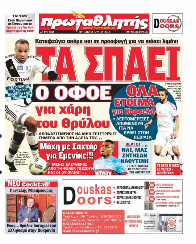 Οι αθλητικές εφημερίδες 2/7/2017 Κώστας Τεό 06:37, Κυριακή 02 Ιουλίου 2017 Media Διαβάστε τα σημερινά πρωτοσέλιδα των αθλητικών εφημερίδων: ΑΘΛΗΤΙΚΕΣ ΕΦΗΜΕΡΙΔΕΣ ΠΡΩΤΟΣΕΛΙΔΑ Μοιράσου το: σχολίασε κι εσύ (0 σχόλια) Ακολουθήστε το enikos.gr στο Google News και μάθετε πρώτοι όλες τις ειδήσεις Δείτε όλες τις τελευταίες ειδήσεις από την Ελλάδα και τον Κόσμο στο enikos.gr Ειδήσεις Ροή Ειδήσεων 10 λεπτά πριν Ουκρανία: Xτύπησε με drones ρωσικό τάνκερ στη Μεσόγειο 2 ώρες πριν Πούτιν: Η Ουκρανία δεν είναι έτοιμη για ειρηνευτικές συνομιλίες – ο ρωσικός στρατός προελαύνει σε όλα τα μέτωπα 3 ώρες πριν Νίκος Παππάς: Ζητώ συγγνώμη για αυτό το επεισόδιο – Δεν τον γρονθοκόπησα 52 λεπτά πριν Θεσσαλονίκη: Άφησαν τα ανήλικα παιδιά τους να κοιμούνται στην αυλή – Κάτοικος ειδοποίησε το «Χαμόγελο του Παιδιού» 13 λεπτά πριν Βουλή: Υπερψηφίστηκε το νομοσχέδιο για την ένταξη του ΟΠΕΚΕΠΕ στην ΑΑΔΕ 4 ώρες πριν Αλλαγή σελίδας για 3 ζώδια – «Μία δύσκολη περίοδος φτάνει στο τέλος της» 2 ημέρες πριν 20 χρόνια τα Χριστούγεννα ξεκινούν στα Public με μεγάλη ποικιλία σε δώρα! 3 ώρες πριν Γεμάτος νεροχύτης; 5 σοβαρές ευθύνες που «φοβίζουν» όσους αφήνουν άπλυτα πιάτα 2 ώρες πριν Ειδικός μοιράζεται 6 κόλπα για να διατηρείστε σε φόρμα με πάνω από 40 ώρες εργασίας την εβδομάδα: «Προπονηθείτε πριν από τη δουλειά, όχι μετά» 6 λεπτά πριν Ανδρουλάκης για ΕΛΤΑ: Το σκάνδαλο αυτό είναι η ωμή εκδοχή του κράτους-λάφυρου 10 λεπτά πριν Ουκρανία: Xτύπησε με drones ρωσικό τάνκερ στη Μεσόγειο 11 λεπτά πριν Βουλή: Εγκρίθηκε ο διορισμός της νέας διοικήτριας της Ανεξάρτητης Αρχής Ελέγχου της Αγοράς και Προστασίας του Καταναλωτή 13 λεπτά πριν Βουλή: Υπερψηφίστηκε το νομοσχέδιο για την ένταξη του ΟΠΕΚΕΠΕ στην ΑΑΔΕ 17 λεπτά πριν Θεσσαλονίκη: Οδηγός μηχανής εμβόλισε ηλεκτρικό πατίνι και γρονθοκόπησε τον αναβάτη ENIKOS NETWORK Τάξη στις ιατρικές διαφημίσεις για την προστασία των πολιτών βάζει ο ΙΣΑ Μακροζωία: Τι παίζει πιο σημαντικό ρόλο ακόμα και από την διατροφή και την άσκηση, σύμφωνα με μελέτη e-ΕΦΚΑ: Νέα παράταση της προθεσμίας υποβολής για τις ΑΠΔ – Ποιες επιχειρήσεις αφορά Αγορά πολυτελών κατοικιών: Αυτές είναι οι προτεραιότητες των αγοραστών – Σε ποιες περιοχές στρέφονται και τι επιλέγουν Χαρτογραφώντας το «σημείο χωρίς επιστροφή»: Για πρώτη φορά αποκαλύπτεται με λεπτομέρεια το ακανθώδες όριο της ατμόσφαιρας τ... Η Google καταργεί τη λειτουργία «dark web report» – Πώς θα μπορούν οι χρήστες να διαγράφουν τα δεδομένα τους περισσότερα 08:00 , Παρασκευή 19 Δεκεμβρίου 2025 Την Κυριακή με τη Realnews: Δωροεπιταγή 10€ Δωροεπιταγή αξίας 10€ για αγορές άνω των 60€ από τα πολυκαταστήματα FactoryOutlet H προσφορά ι... 05:48 , Παρασκευή 19 Δεκεμβρίου 2025 Οι οικονομικές εφημερίδες 19/12/2025 Διαβάστε τα πρωτοσέλιδα από τις οικονομικές εφημερίδες, σήμερα 19/12/2025. 05:43 , Παρασκευή 19 Δεκεμβρίου 2025 Οι αθλητικές εφημερίδες 19/12/2025 Διαβάστε τα πρωτοσέλιδα από τις αθλητικές εφημερίδες, σήμερα 19/12/2025. 05:38 , Παρασκευή 19 Δεκεμβρίου 2025 Οι πολιτικές εφημερίδες 19/12/2025 Διαβάστε τα πρωτοσέλιδα από τις πολιτικές εφημερίδες, σήμερα 19/12/2025. ΤΕΛΕΥΤΑΙΕΣ ΕΙΔΗΣΕΙΣ 6 λεπτά πριν Ανδρουλάκης για ΕΛΤΑ: Το σκάνδαλο αυτό είναι η ωμή... 10 λεπτά πριν Ουκρανία: Xτύπησε με drones ρωσικό τάνκερ στη Μεσόγειο 11 λεπτά πριν Βουλή: Εγκρίθηκε ο διορισμός της νέας διοικήτριας της... 13 λεπτά πριν Βουλή: Υπερψηφίστηκε το νομοσχέδιο για την ένταξη του... 17 λεπτά πριν Θεσσαλονίκη: Οδηγός μηχανής εμβόλισε ηλεκτρικό... 22 λεπτά πριν Κατερίνα Καινού