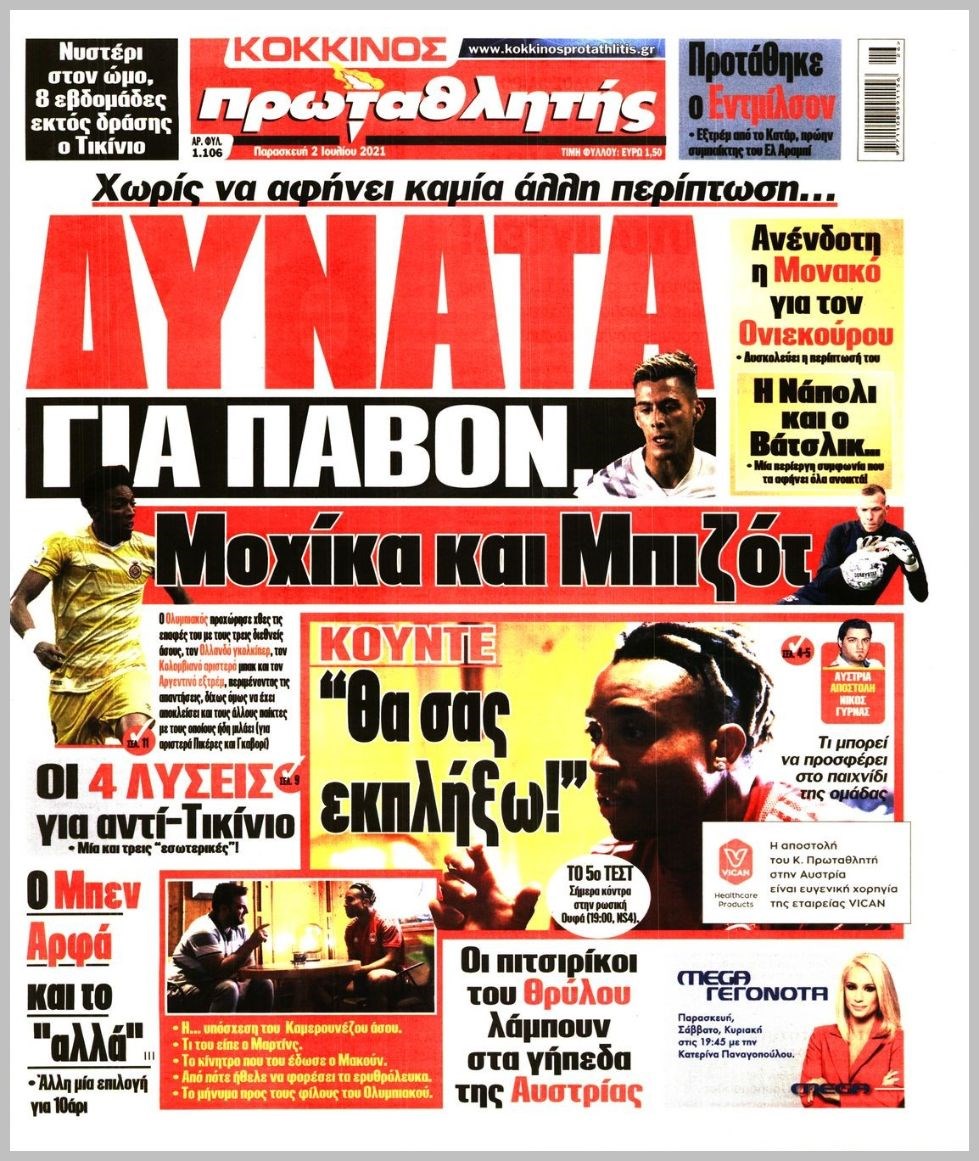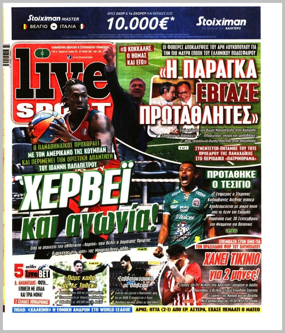 Οι αθλητικές εφημερίδες 2/7/2021 Διονύσης Νίκκας 06:50, Παρασκευή 02 Ιουλίου 2021 Media Διαβάστε τα πρωτοσέλιδα των αθλητικών εφημερίδων… ΑΘΛΗΤΙΚΕΣ ΕΦΗΜΕΡΙΔΕΣ Μοιράσου το: σχολίασε κι εσύ (0 σχόλια) Ακολουθήστε το enikos.gr στο Google News και μάθετε πρώτοι όλες τις ειδήσεις Δείτε όλες τις τελευταίες ειδήσεις από την Ελλάδα και τον Κόσμο στο enikos.gr Ειδήσεις Ροή Ειδήσεων 1 ώρα πριν Μεσόγειος: Η διαδρομή του ρωσικού τάνκερ «Qendil» και η στοχευμένη επίθεση της Ουκρανίας με drone – Ο Πούτιν προειδοποίησε για αντίποινα 1 ώρα πριν Αττική: Θρίλερ με νεκρό βρέφος 5 μηνών – Κοιμόταν στο ίδιο κρεβάτι με τους γονείς του 2 ώρες πριν Από το Ορμένιο ως τα Μάλγαρα κι από τη Σιάτιστα μέχρι τη Νίκαια: Μπλόκα σε όλη την Ελλάδα – Το Σάββατο ανοίγουν τα διόδια οι αγρότες 2 ώρες πριν «Έλληνας Εσκομπάρ»: Φωτογραφίες με τους 4 τόνους κοκαΐνης που κατασχέθηκαν από το σκάφος «Ουρανία» 4 ώρες πριν Πούτιν: Σαρκαστικά μηνύματα, παράπονα και απρόοπτα στη συνέντευξη Τύπου – Η πρόταση γάμου on air και οι ερωτήσεις για τα αγγούρια και τους… εξωγήινους 3 ώρες πριν Τα 5 ζώδια που ευνοούνται στην ερωτική ζωή τους την επόμενη εβδομάδα – «Η ενέργεια του Αιγόκερου φέρνει αγάπη και σταθερότητα» 7 ώρες πριν Ειδικός μοιράζεται 6 κόλπα για να διατηρείστε σε φόρμα με πάνω από 40 ώρες εργασίας την εβδομάδα: «Προπονηθείτε πριν από τη δουλειά, όχι μετά» 4 ώρες πριν Αυτό το έξυπνο μαθηματικό κόλπο θα μπορούσε να αλλάξει τον τρόπο με τον οποίο οι επιστήμονες μελετούν τους σεισμούς 2 ώρες πριν Κουίζ για την παλιά Αθήνα: Αναγνωρίζετε την περιοχή; Έχετε περάσει 100% από εκεί 4 λεπτά πριν ΗΠΑ: Νέος γύρος συνομιλιών στο Μαϊάμι – Σήμερα συνάντηση Γουίτκοφ με Ουκρανούς και Ευρωπαίους διαπραγματευτές, το Σαββατοκύριακο με Ρώσους αξιωματούχους 8 λεπτά πριν Νέα σειρά γραμματοσήμων «ΕΛΠΙΔΑ-Μαριάννα Β. Βαρδινογιάννη» 12 λεπτά πριν Ιταλία: Με εισιτήριο από την 1η Φεβρουαρίου 2026 η πρόσβαση στη Φοντάνα ντι Τρέβι – Πόσο θα κοστίζει 20 λεπτά πριν Μήπως έχετε χάσει τον εαυτό σας στη σχέση σας; 7 «αθόρυβες» υποχωρήσεις που μάλλον κάνατε, χωρίς να το συνειδητοποιήσετε 26 λεπτά πριν Λάρισα: Ασθενοφόρο έπεσε πάνω σε κλούβα της ΕΛ.ΑΣ στον Πλατύκαμπο – Τραυματίστηκε ο συνοδηγός – ΒΙΝΤΕΟ ENIKOS NETWORK «Η σούπερ» γρίπη εξαπλώνεται στην Ευρώπη-Στοιχεία από το ECDC για την αποτελεσματικότητα του εμβολίου ΕΛΣΤΑΤ: Αύξηση κατά 1,7% των επαγγελματιών υγείας το 2024 Προκήρυξη ΑΣΕΠ για 397 μόνιμες προσλήψεις στο Δημόσιο: Βγήκαν τα προσωρινά αποτελέσματα – Πότε αρχίζει η υποβολή ενστάσεων Η απάντηση της κυβέρνησης στα αιτήματα των αγροτών: 16 έχουν ικανοποιηθεί, 4 βρίσκονται υπό επεξεργασία και 7 δεν είναι εφι... Χαρτογραφώντας το «σημείο χωρίς επιστροφή»: Για πρώτη φορά αποκαλύπτεται με λεπτομέρεια το ακανθώδες όριο της ατμόσφαιρας τ... Η Google καταργεί τη λειτουργία «dark web report» – Πώς θα μπορούν οι χρήστες να διαγράφουν τα δεδομένα τους περισσότερα 18:11 , Παρασκευή 19 Δεκεμβρίου 2025 Το σόι σου: Ο Άρης έρχεται στην Ελλάδα για τις γιορτές των Χριστουγέννων – Τι θα δούμε στο αποψινό εορταστικό επεισόδιο Ένα απολαυστικό, εορταστικό επεισόδιο της σειράς “Το σόι σου”, γεμάτο ευτράπελα αλ... 15:15 , Παρασκευή 19 Δεκεμβρίου 2025 Την Κυριακή με τη Realnews: Ό,τι και αν αγοράσεις, σκανάρεις και κερδίζεις! Την Κυριακή με τη Realnews: Ό,τι και αν αγοράσεις, σκανάρεις και κερδίζεις! Με το PADU app, το... 08:00 , Παρασκευή 19 Δεκεμβρίου 2025 Την Κυριακή με τη Realnews: Δωροεπιταγή 10€ Δωροεπιταγή αξίας 10€ για αγορές άν
