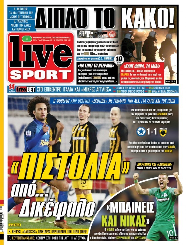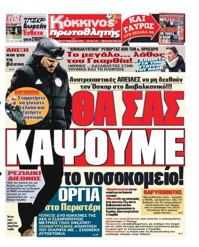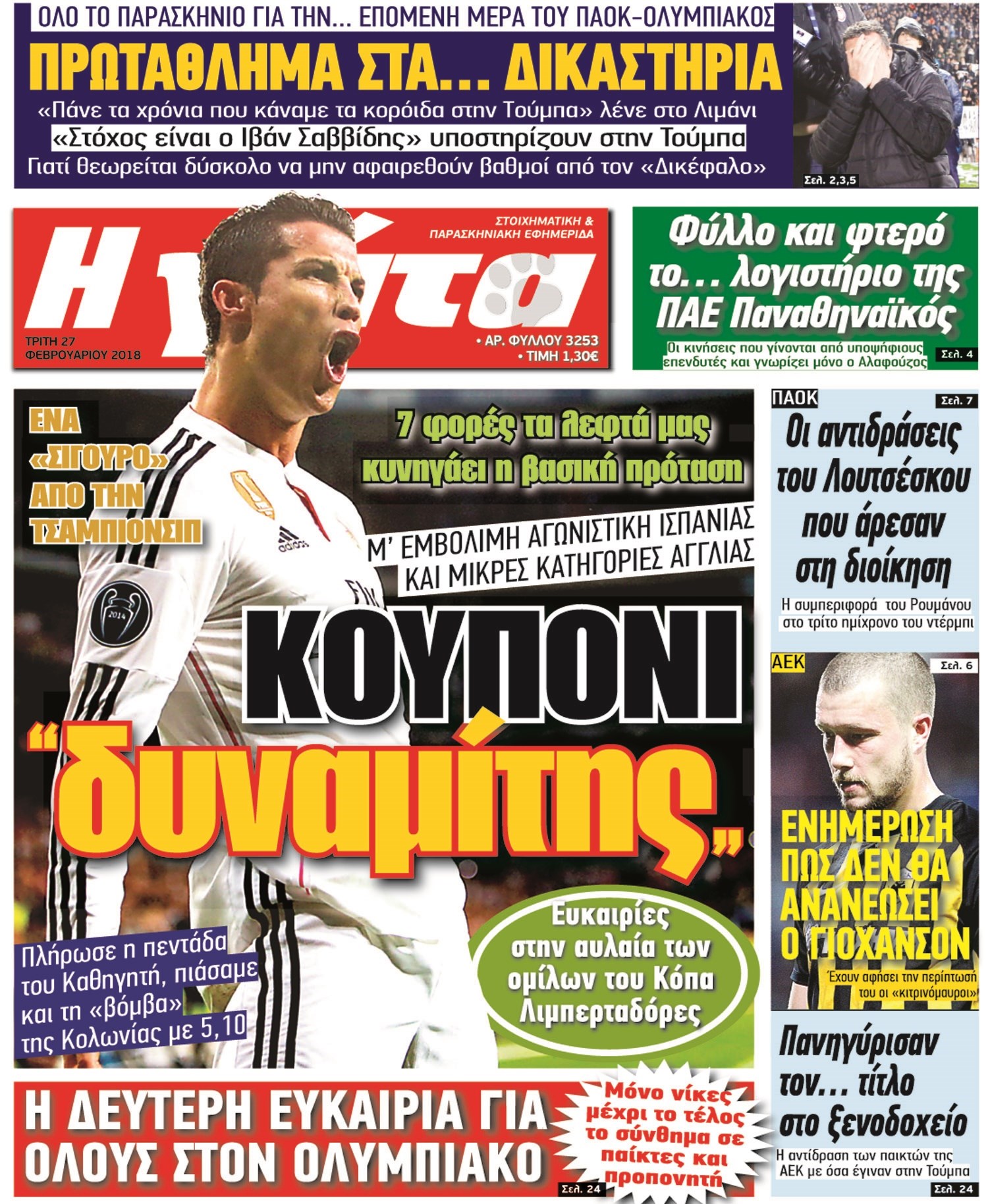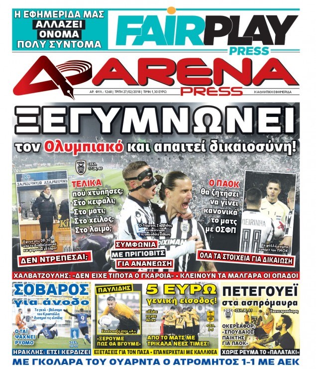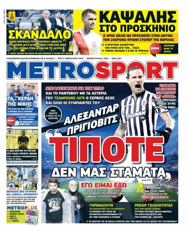 Οι αθλητικές εφημερίδες 27/2/2018 Κώστας Τεό 06:30, Τρίτη 27 Φεβρουαρίου 2018 Media Διαβάστε τα σημερινά πρωτοσέλιδα των αθλητικών εφημερίδων: ΑΘΛΗΤΙΚΕΣ ΕΦΗΜΕΡΙΔΕΣ ΠΡΩΤΟΣΕΛΙΔΑ Μοιράσου το: σχολίασε κι εσύ (0 σχόλια) Ακολουθήστε το enikos.gr στο Google News και μάθετε πρώτοι όλες τις ειδήσεις Δείτε όλες τις τελευταίες ειδήσεις από την Ελλάδα και τον Κόσμο στο enikos.gr Ειδήσεις Ροή Ειδήσεων 3 ώρες πριν Η Ουκρανία χτύπησε τάνκερ του σκιώδους στόλου της Ρωσίας στη Μεσόγειο – Έπλεε νότια της Κρήτης 1 ώρα πριν Πούτιν: Σαρκαστικά μηνύματα, παράπονα και απρόοπτα στη συνέντευξη Τύπου – Η πρόταση γάμου on air και οι ερωτήσεις για τα αγγούρια και τους… εξωγήινους 1 ώρα πριν Η απάντηση της κυβέρνησης στα αιτήματα των αγροτών: 16+4 υλοποιούνται ή βρίσκονται υπό επεξεργασία για να βρεθεί λύση – 7 δεν μπορούν να επιλυθούν 2 ώρες πριν Θεσσαλονίκη: Στη φυλακή ο 44χρονος που κατηγορείται ότι προσπάθησε να πνίξει με κορδόνι την 34χρονη σύντροφό του 2 ώρες πριν Εξώδικο επιχειρηματία στον Γιώργο Μαζωνάκη – Τι απαντά στις καταγγελίες του τραγουδιστή 47 λεπτά πριν Τα 5 ζώδια που ευνοούνται στην ερωτική ζωή τους την επόμενη εβδομάδα – «Η ενέργεια του Αιγόκερου φέρνει αγάπη και σταθερότητα» 6 ώρες πριν Γεμάτος νεροχύτης; 5 σοβαρές ευθύνες που «φοβίζουν» όσους αφήνουν άπλυτα πιάτα 5 ώρες πριν Ειδικός μοιράζεται 6 κόλπα για να διατηρείστε σε φόρμα με πάνω από 40 ώρες εργασίας την εβδομάδα: «Προπονηθείτε πριν από τη δουλειά, όχι μετά» 2 ημέρες πριν 20 χρόνια τα Χριστούγεννα ξεκινούν στα Public με μεγάλη ποικιλία σε δώρα! 5 λεπτά πριν Τραγωδία στη Λάρισα: Νεκρή γυναίκα που παρασύρθηκε από φορτηγό 10 λεπτά πριν Κασπία Θάλασσα: Ουκρανικά πλήγματα με drones σε ρωσική εξέδρα άντλησης πετρελαίου 14 λεπτά πριν Μαρινάκης για το «όχι» του ΠΑΣΟΚ στην ένταξη του ΟΠΕΚΕΠΕ στην ΑΑΔΕ: «Εκτεθειμένος ο κ. Ανδρουλάκης απέναντι στους αγρότες» 20 λεπτά πριν Γιώργος Καπουτζίδης για Γιώργο Μαζωνάκη: «Όλο αυτό φαντάζομαι ότι θα φανεί σε ένα δικαστήριο…» 24 λεπτά πριν Τσουκαλάς: Ο πρωθυπουργός επιλέγει τη ρήξη με τον αγροτικό κόσμο ENIKOS NETWORK Τάξη στις ιατρικές διαφημίσεις για την προστασία των πολιτών βάζει ο ΙΣΑ Μακροζωία: Τι παίζει πιο σημαντικό ρόλο ακόμα και από την διατροφή και την άσκηση, σύμφωνα με μελέτη Παπαθανάσης για νέο Εθνικό Πρόγραμμα Ανάπτυξης 2026-2030: Είναι υπερδιπλάσιο από αυτό της προηγούμενης προγραμματικής περιό... Βουλή: Υπερψηφίστηκε το νομοσχέδιο για τη μετάβαση του ΟΠΕΚΕΠΕ στην ΑΑΔΕ Χαρτογραφώντας το «σημείο χωρίς επιστροφή»: Για πρώτη φορά αποκαλύπτεται με λεπτομέρεια το ακανθώδες όριο της ατμόσφαιρας τ... Η Google καταργεί τη λειτουργία «dark web report» – Πώς θα μπορούν οι χρήστες να διαγράφουν τα δεδομένα τους περισσότερα 15:15 , Παρασκευή 19 Δεκεμβρίου 2025 Την Κυριακή με τη Realnews: Ό,τι και αν αγοράσεις, σκανάρεις και κερδίζεις! Την Κυριακή με τη Realnews: Ό,τι και αν αγοράσεις, σκανάρεις και κερδίζεις! Με το PADU app, το... 08:00 , Παρασκευή 19 Δεκεμβρίου 2025 Την Κυριακή με τη Realnews: Δωροεπιταγή 10€ Δωροεπιταγή αξίας 10€ για αγορές άνω των 60€ από τα πολυκαταστήματα FactoryOutlet H προσφορά ι... 05:48 , Παρασκευή 19 Δεκεμβρίου 2025 Οι οικονομικές εφημερίδες 19/12/2025 Διαβάστε τα πρωτοσέλιδα από τις οικονομικές εφημερίδες, σήμερα 19/12/2025. 05:43 , Παρασκευή 19 Δεκεμβρίου 2025 Οι αθλητικές εφημερίδες 19/12/2025 Διαβάστε τα πρωτοσέλιδα από τις αθλητικές εφημερίδες, σήμερα 19/12/2025. ΤΕΛΕΥΤΑΙΕΣ ΕΙΔΗΣΕΙΣ 5 λεπτά πριν Τραγωδία στη Λάρισα: Νεκρή γυναίκα που παρασύρθηκε... 10 λεπ