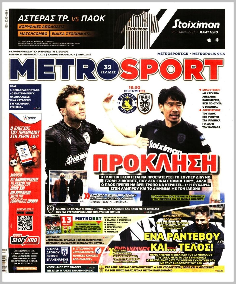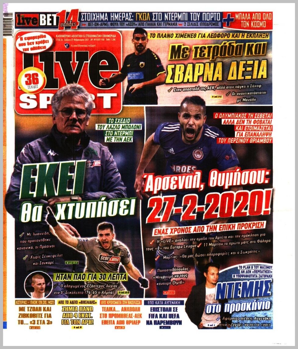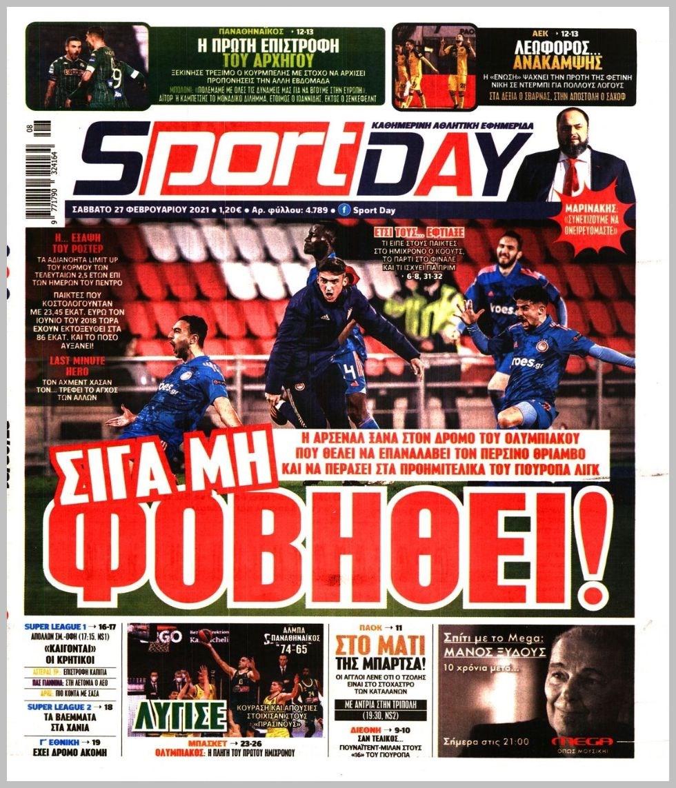 Οι αθλητικές εφημερίδες 27/2/2021 Διονύσης Νίκκας 07:39, Σάββατο 27 Φεβρουαρίου 2021 Media Διαβάστε τα πρωτοσέλιδα των αθλητικών εφημερίδων… ΑΘΛΗΤΙΚΕΣ ΕΦΗΜΕΡΙΔΕΣ Μοιράσου το: σχολίασε κι εσύ (0 σχόλια) Ακολουθήστε το enikos.gr στο Google News και μάθετε πρώτοι όλες τις ειδήσεις Δείτε όλες τις τελευταίες ειδήσεις από την Ελλάδα και τον Κόσμο στο enikos.gr Ειδήσεις Ροή Ειδήσεων 5 ώρες πριν Χριστούγεννα στα μπλόκα: Επιμένουν στις κινητοποιήσεις τους οι αγρότες – Ανοίγουν τα διόδια το Σαββατοκύριακο 6 ώρες πριν Ουκρανία: Η άνευ προηγουμένου επίθεση σε ρωσικό τάνκερ στη Μεσόγειο και το μήνυμα προς στον Πούτιν – Το «μακρύ χέρι» του Κιέβου 5 ώρες πριν Πούτιν: Τα μηνύματα σε Ευρώπη και ΝΑΤΟ από το μαραθώνιο «σόου» του – Η απαίτηση για «σεβασμό» και η ειρήνη «με τους όρους» της Μόσχας 6 ώρες πριν Τραμπ: Δεν αποκλείει την πιθανότητα ενός πολέμου στη Βενεζουέλα – «Ο Μαδούρο ξέρει καλύτερα από τον καθένα τι ακριβώς θέλω» 6 ώρες πριν Συνεχίζει να προκαλεί ο Μίτσκοσκι: «Για μένα το όνομα Μακεδονία είναι ιερό» 5 ώρες πριν Ανακαλύφθηκαν αρχαία χρυσά νομίσματα 2.200 ετών που απεικονίζουν τον θεό Απόλλωνα – Η άγνωστη σύνδεση με τον Φίλιππο Β΄ της Μακεδονίας 6 ώρες πριν Ύπνος: Μια κρυφή κατάσταση του εγκεφάλου πριν από τον ύπνο μπορεί να είναι το “κλειδί” για υψηλή ευφυΐα και δημιουργικότητα 7 ώρες πριν Αριθμολογία: Οι άνθρωποι που έχουν γεννηθεί αυτές τις 4 ημερομηνίες, συχνά παρεξηγούνται – «Η καλοσύνη τους κρύβει τεράστια δύναμη» 8 ώρες πριν Ξεχάστε το καθάρισμα το Σαββατοκύριακο: Ο «κανόνας των 20 λεπτών» που θα σας λύσει τα χέρια 3 λεπτά πριν Φως στο Τούνελ: Έφτασε η ώρα της αλήθειας για την δολοφονία της χήρας του πρώην υπουργού στο Κολωνάκι 18 λεπτά πριν Ντόναλντ Τραμπ: Προστέθηκε το όνομά του στην πρόσοψη του Κέντρου Κένεντι – Οργισμένη αντίδραση των συγγενών του JFK 33 λεπτά πριν Ταμίλα Κουλίεβα: «Δεν θέλω να είμαι κάποια που πορεύεται συνεχώς με τις ίδιες αναφορές» 48 λεπτά πριν Η Ελλάδα προσχωρεί στη Διεθνή Επιτροπή Αποζημιώσεων για την Ουκρανία 1 ώρα πριν GNTM: Η Ξένια Τσίρκοβα αναδείχθηκε μεγάλη νικήτρια και πήρε τις 50.000 ευρώ – Ποιος βρέθηκε σε απόσταση αναπνοής; ENIKOS NETWORK Το ΕΚΑΒ τιμήθηκε από την Ακαδημία Αθηνών για τα 40 χρόνια προσφοράς του Έχετε πραγματικά μεγάλη καρδιά; 10 χαρακτηριστικά όσων έχουν καλοσύνη Αναστολή μέτρων αναγκαστικής εκτέλεσης για κτηνοτρόφους που πλήττονται από την ευλογιά των αιγοπροβάτων Πλήρης επάρκεια προϊόντων στις λαϊκές της Αττικής, παρά τις αγροτικές κινητοποιήσεις – Τι απαντούν οι πωλητές Χαρτογραφώντας το «σημείο χωρίς επιστροφή»: Για πρώτη φορά αποκαλύπτεται με λεπτομέρεια το ακανθώδες όριο της ατμόσφαιρας τ... Η Google καταργεί τη λειτουργία «dark web report» – Πώς θα μπορούν οι χρήστες να διαγράφουν τα δεδομένα τους περισσότερα 02:50 , Σάββατο 20 Δεκεμβρίου 2025 GNTM: Η Ξένια Τσίρκοβα αναδείχθηκε μεγάλη νικήτρια και πήρε τις 50.000 ευρώ – Ποιος βρέθηκε σε απόσταση αναπνοής; Με φαντασμαγορικό τρόπο ολοκληρώθηκε το βράδυ της Παρασκευής ο μεγάλος τελικός του GNTM, μέσα ... 22:42 , Παρασκευή 19 Δεκεμβρίου 2025 Γιώργος Γιαννόπουλος για “Το σόι σου”: “Είναι ευτυχία και ευλογία αυτή η σειρά” «Είναι ευτυχία και ευλογία η συγκυρία αυτής της σειράς», θα πει ο Γιώργος Γιαννόπουλος -ο αγαπ... 20:37 , Παρασκευή 19 Δεκεμβρίου 2025 Don’t Forget The Lyrics: Η Έλλη Κοκκίνου υποδέχεται 4 παίκτες που θα κάνουν τα πάντα για να μη χάσουν ούτε… μισή λέξη από τους στίχους Το «Don’t Forget The Lyrics» επιστρέφει