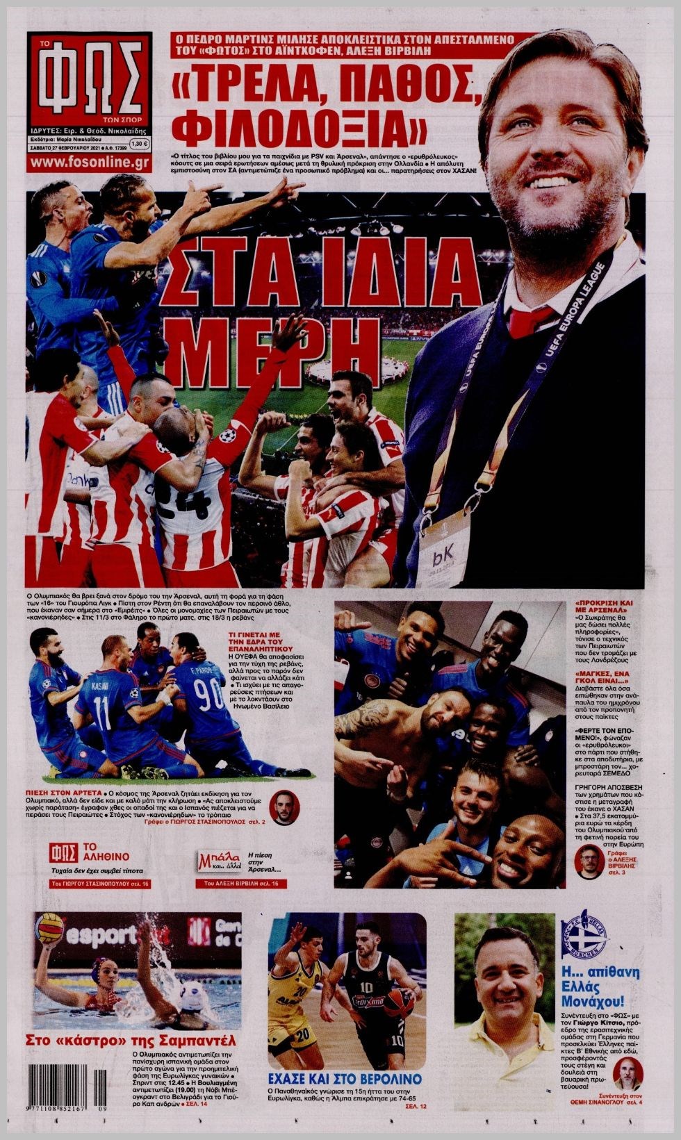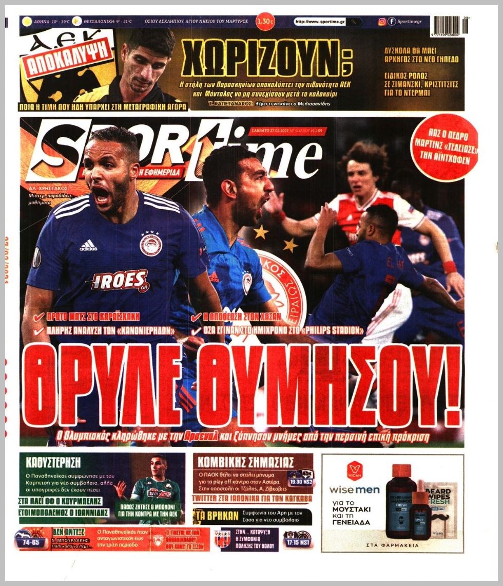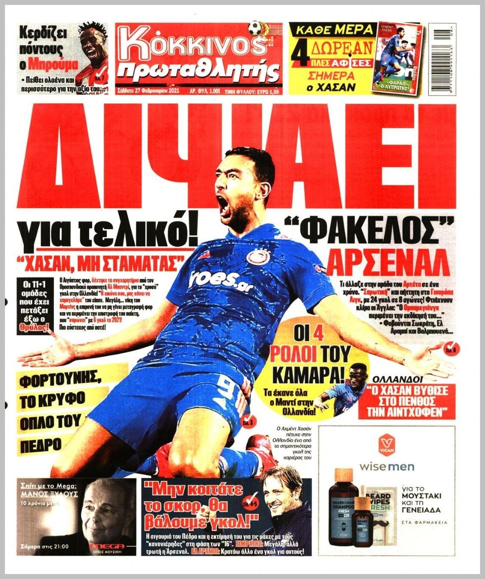 Οι αθλητικές εφημερίδες 27/2/2021 Διονύσης Νίκκας 07:39, Σάββατο 27 Φεβρουαρίου 2021 Media Διαβάστε τα πρωτοσέλιδα των αθλητικών εφημερίδων… ΑΘΛΗΤΙΚΕΣ ΕΦΗΜΕΡΙΔΕΣ Μοιράσου το: σχολίασε κι εσύ (0 σχόλια) Ακολουθήστε το enikos.gr στο Google News και μάθετε πρώτοι όλες τις ειδήσεις Δείτε όλες τις τελευταίες ειδήσεις από την Ελλάδα και τον Κόσμο στο enikos.gr Ειδήσεις Ροή Ειδήσεων 5 ώρες πριν Χριστούγεννα στα μπλόκα: Επιμένουν στις κινητοποιήσεις τους οι αγρότες – Ανοίγουν τα διόδια το Σαββατοκύριακο 6 ώρες πριν Ουκρανία: Η άνευ προηγουμένου επίθεση σε ρωσικό τάνκερ στη Μεσόγειο και το μήνυμα προς στον Πούτιν – Το «μακρύ χέρι» του Κιέβου 5 ώρες πριν Πούτιν: Τα μηνύματα σε Ευρώπη και ΝΑΤΟ από το μαραθώνιο «σόου» του – Η απαίτηση για «σεβασμό» και η ειρήνη «με τους όρους» της Μόσχας 6 ώρες πριν Τραμπ: Δεν αποκλείει την πιθανότητα ενός πολέμου στη Βενεζουέλα – «Ο Μαδούρο ξέρει καλύτερα από τον καθένα τι ακριβώς θέλω» 6 ώρες πριν Συνεχίζει να προκαλεί ο Μίτσκοσκι: «Για μένα το όνομα Μακεδονία είναι ιερό» 5 ώρες πριν Ανακαλύφθηκαν αρχαία χρυσά νομίσματα 2.200 ετών που απεικονίζουν τον θεό Απόλλωνα – Η άγνωστη σύνδεση με τον Φίλιππο Β΄ της Μακεδονίας 6 ώρες πριν Ύπνος: Μια κρυφή κατάσταση του εγκεφάλου πριν από τον ύπνο μπορεί να είναι το “κλειδί” για υψηλή ευφυΐα και δημιουργικότητα 7 ώρες πριν Αριθμολογία: Οι άνθρωποι που έχουν γεννηθεί αυτές τις 4 ημερομηνίες, συχνά παρεξηγούνται – «Η καλοσύνη τους κρύβει τεράστια δύναμη» 8 ώρες πριν Ξεχάστε το καθάρισμα το Σαββατοκύριακο: Ο «κανόνας των 20 λεπτών» που θα σας λύσει τα χέρια 3 λεπτά πριν Φως στο Τούνελ: Έφτασε η ώρα της αλήθειας για την δολοφονία της χήρας του πρώην υπουργού στο Κολωνάκι 18 λεπτά πριν Ντόναλντ Τραμπ: Προστέθηκε το όνομά του στην πρόσοψη του Κέντρου Κένεντι – Οργισμένη αντίδραση των συγγενών του JFK 33 λεπτά πριν Ταμίλα Κουλίεβα: «Δεν θέλω να είμαι κάποια που πορεύεται συνεχώς με τις ίδιες αναφορές» 48 λεπτά πριν Η Ελλάδα προσχωρεί στη Διεθνή Επιτροπή Αποζημιώσεων για την Ουκρανία 1 ώρα πριν GNTM: Η Ξένια Τσίρκοβα αναδείχθηκε μεγάλη νικήτρια και πήρε τις 50.000 ευρώ – Ποιος βρέθηκε σε απόσταση αναπνοής; ENIKOS NETWORK Το ΕΚΑΒ τιμήθηκε από την Ακαδημία Αθηνών για τα 40 χρόνια προσφοράς του Έχετε πραγματικά μεγάλη καρδιά; 10 χαρακτηριστικά όσων έχουν καλοσύνη Αναστολή μέτρων αναγκαστικής εκτέλεσης για κτηνοτρόφους που πλήττονται από την ευλογιά των αιγοπροβάτων Πλήρης επάρκεια προϊόντων στις λαϊκές της Αττικής, παρά τις αγροτικές κινητοποιήσεις – Τι απαντούν οι πωλητές Χαρτογραφώντας το «σημείο χωρίς επιστροφή»: Για πρώτη φορά αποκαλύπτεται με λεπτομέρεια το ακανθώδες όριο της ατμόσφαιρας τ... Η Google καταργεί τη λειτουργία «dark web report» – Πώς θα μπορούν οι χρήστες να διαγράφουν τα δεδομένα τους περισσότερα 02:50 , Σάββατο 20 Δεκεμβρίου 2025 GNTM: Η Ξένια Τσίρκοβα αναδείχθηκε μεγάλη νικήτρια και πήρε τις 50.000 ευρώ – Ποιος βρέθηκε σε απόσταση αναπνοής; Με φαντασμαγορικό τρόπο ολοκληρώθηκε το βράδυ της Παρασκευής ο μεγάλος τελικός του GNTM, μέσα ... 22:42 , Παρασκευή 19 Δεκεμβρίου 2025 Γιώργος Γιαννόπουλος για “Το σόι σου”: “Είναι ευτυχία και ευλογία αυτή η σειρά” «Είναι ευτυχία και ευλογία η συγκυρία αυτής της σειράς», θα πει ο Γιώργος Γιαννόπουλος -ο αγαπ... 20:37 , Παρασκευή 19 Δεκεμβρίου 2025 Don’t Forget The Lyrics: Η Έλλη Κοκκίνου υποδέχεται 4 παίκτες που θα κάνουν τα πάντα για να μη χάσουν ούτε… μισή λέξη από τους στίχους Το «Don’t Forget The Lyrics» επιστρέφει