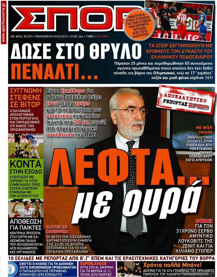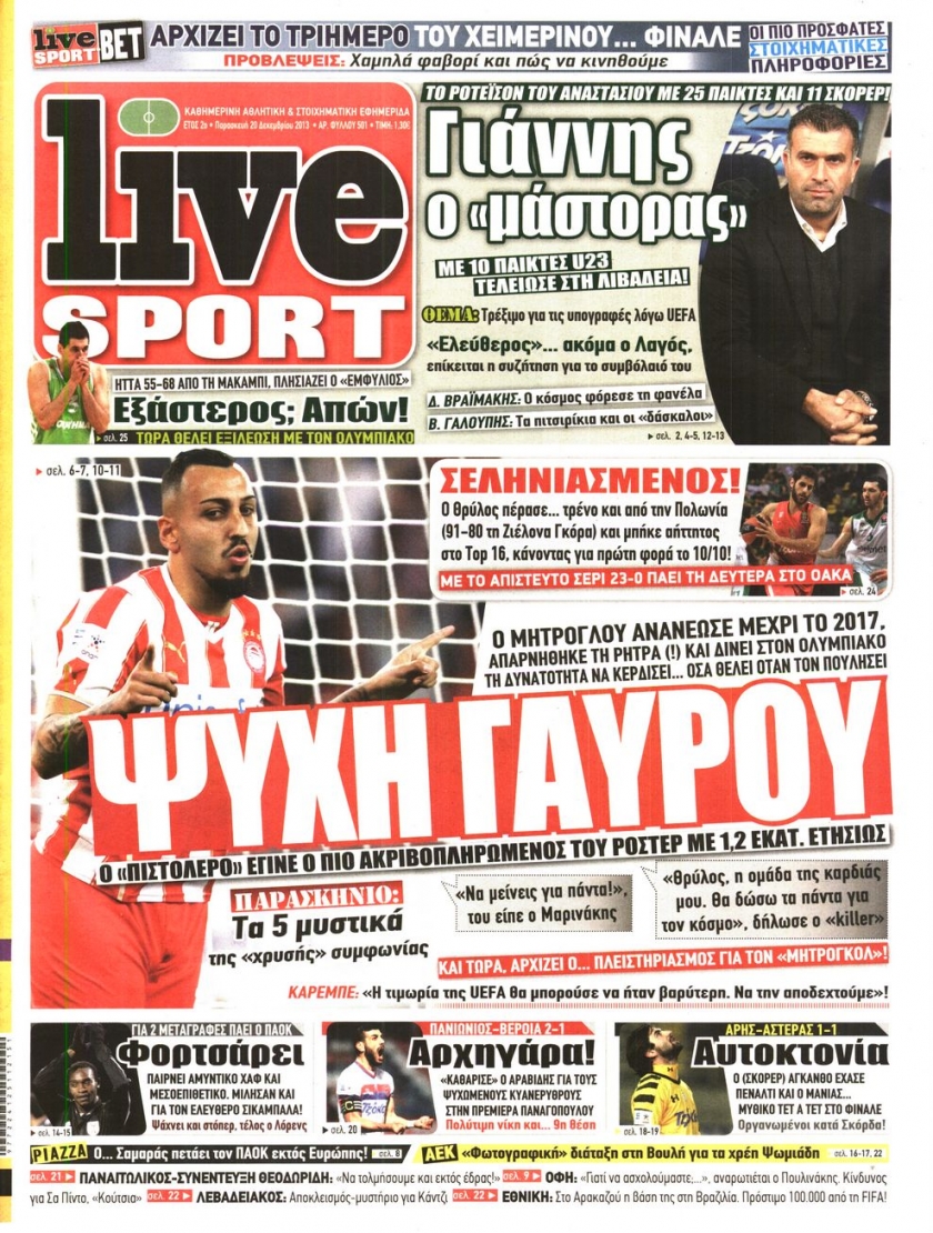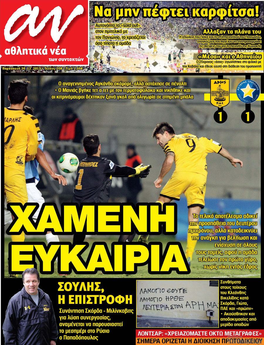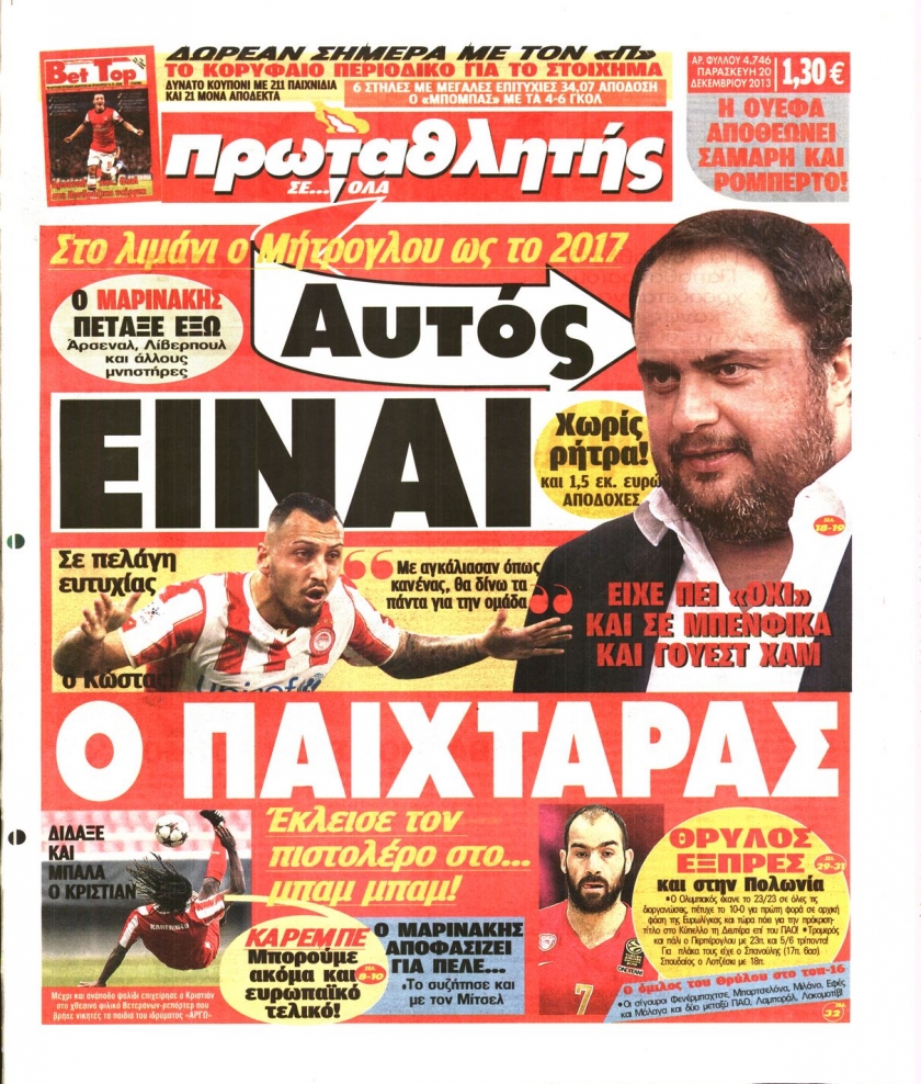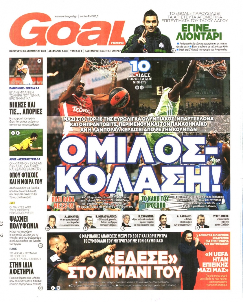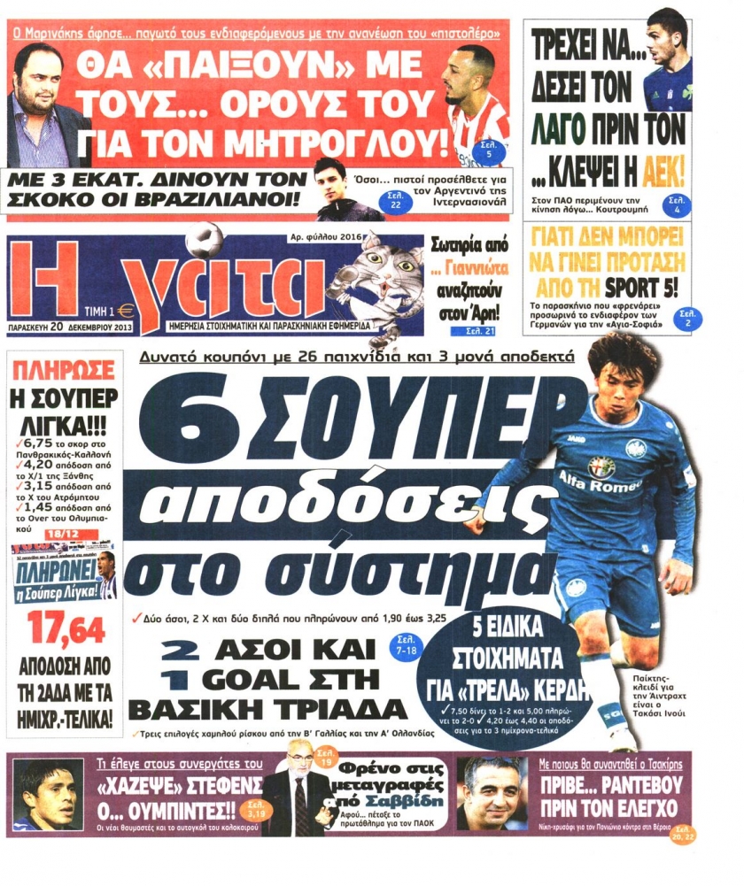 Οι αθλητικές εφημερίδες Enikos Newsroom 08:52, Παρασκευή 20 Δεκεμβρίου 2013 Media Οι αθλητικές εφημερίδες Διαβάστε τα πρωτοσέλιδα των αθλητικών εφημερίδων: ΑΘΛΗΤΙΚΕΣ ΕΦΗΜΕΡΙΔΕΣ ΕΦΗΜΕΡΙΔΕΣ ΠΡΩΤΟΣΕΛΙΔΑ Μοιράσου το: σχολίασε κι εσύ (0 σχόλια) Ακολουθήστε το enikos.gr στο Google News και μάθετε πρώτοι όλες τις ειδήσεις Δείτε όλες τις τελευταίες ειδήσεις από την Ελλάδα και τον Κόσμο στο enikos.gr Ειδήσεις Ροή Ειδήσεων 3 ώρες πριν Αυξάνουν την πίεση προς την κυβέρνηση οι αγρότες: Κλείνουν παρακαμπτήριους και ανοίγουν διόδια – Τι θα γίνει τις γιορτές 2 ώρες πριν ΟΠΕΚΕΠΕ: Προφυλακιστέος ο φερόμενος αρχηγός και ο λογιστής της εγκληματικής οργάνωσης 3 ώρες πριν Φοινικούντα: Το Σάββατο απολογείται ο 30χρονος γιος γνωστού επιχειρηματία της Πλάκας που παραδόθηκε – Όσα είπε στους αστυνομικούς και ο ρόλος του στο έγκλημα 3 ώρες πριν Μπορεί ο Μαδούρο να αντέξει τον αποκλεισμό του Τραμπ; Τι θα χρειαστεί η Ουάσινγκτον για να τον ανατρέψει 4 ώρες πριν Πρίγκιπας Ουίλιαμ – Κέιτ: Η νέα οικογενειακή φωτογραφία για τις Χριστουγεννιάτικες κάρτες του 2025 4 ώρες πριν Ύπνος: Η απλή βραδινή ρουτίνα για να προστατεύσετε τα μαλλιά σας από το κρύο κατά τη διάρκεια του χειμώνα 5 ώρες πριν Manifesting: Πώς να συναντήσετε τον σύντροφο της ζωής σας, ανάλογα με τον μήνα γέννησής σας 2 ημέρες πριν 20 χρόνια τα Χριστούγεννα ξεκινούν στα Public με μεγάλη ποικιλία σε δώρα! 3 ώρες πριν Αρχαιολόγοι ανακάλυψαν ρωμαϊκά τεχνουργήματα από μια πόλη που δεν υπήρξε ποτέ – Τα τρία εντυπωσιακά κτίρια και ο αμφορέας με τις… σαρδέλες 5 λεπτά πριν Μάρκο Νίκολιτς: «Είμαι περήφανος για τους παίκτες μου, όποιος αντίπαλος και να έρθει θα προετοιμαστούμε» 14 λεπτά πριν ΟΗΕ: Την εκλογή του νέου ύπατου αρμοστή για τους Πρόσφυγες Μπαρχάμ Άχμεντ Σαλίχ χαιρέτησε ο Αντόνιο Γκουτέρες 19 λεπτά πριν Σύνοδος Κορυφής στις Βρυξέλλες: Ακόμη πιο κοντά σε διέξοδο για τη χρηματοδότηση της Ουκρανίας 27 λεπτά πριν ΟΗΕ: Iστορική επίσκεψη του Συμβουλίου Ασφαλείας στη Δαμασκό – Mήνυμα Ελλάδας για συμπερίληψη και λογοδοσία 34 λεπτά πριν Νέος πρέσβης της Μεγάλης Βρετανίας στις ΗΠΑ ο Κρίστιαν Τέρνερ ENIKOS NETWORK Σε περίοδο αυξημένης δραστηριότητας η γρίπη στην Ελλάδα-Μέτρα προστασίας από τον ΕΟΔΥ Σκέφτεστε συνέχεια συζητήσεις που έχετε κάνει; Τι σημαίνει αυτό, σύμφωνα με ειδικό Στεγαστικό: Τι λέει η ΠΟΜΙΔΑ για τα νέα μέτρα που ανακοίνωσε ο Κυριάκος Μητσοτάκης Λαγκάρντ: Αισιόδοξη για την ανάπτυξη της Ευρωζώνης, αβέβαιη για τον πληθωρισμό Χαρτογραφώντας το «σημείο χωρίς επιστροφή»: Για πρώτη φορά αποκαλύπτεται με λεπτομέρεια το ακανθώδες όριο της ατμόσφαιρας τ... Η Google καταργεί τη λειτουργία «dark web report» – Πώς θα μπορούν οι χρήστες να διαγράφουν τα δεδομένα τους περισσότερα 17:45 , Πέμπτη 18 Δεκεμβρίου 2025 ROUK ZOUK: Εορταστικό επεισόδιο με καλεσμένους τους πρωταγωνιστές του «Γιατί ρε πατέρα» Το Σάββατο 20 Δεκεμβρίου στις 21:00, η Ζέτα Μακρυπούλια υποδέχεται εκλεκτούς ηθοποιούς που όλο... 17:20 , Πέμπτη 18 Δεκεμβρίου 2025 Άγιος έρωτας: Η Χριστίνα εξομολογείται στον πατέρα Νικόλαο, απόψε στις 21:00 στον Alpha Η Νότα αποφασίζει να εκδικηθεί τον Πέτρο και τον Στέφανο, για χάρη του Λούη, όμως τα πράγματα ... 16:50 , Πέμπτη 18 Δεκεμβρίου 2025 Να μ’ αγαπάς: Ζωή και Φωτεινή συμφιλιώνονται ως μάνα με κόρη, απόψε στις 20:00 Η ταυτότητα του Άγγελου αποκαλύπτεται στο νέο επεισόδιο της σειράς “Να μ’ αγαπάς... 15:52 , Πέμπτη 18 Δεκεμβρίου 2025 Το Σπίτι Δίπλα Στο Ποτάμι: Το καθηλωτικό τελευταίο επεισόδιο για το 2025 απ
