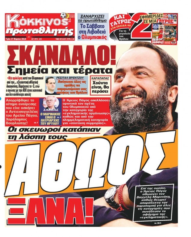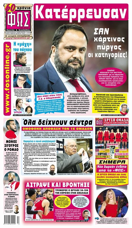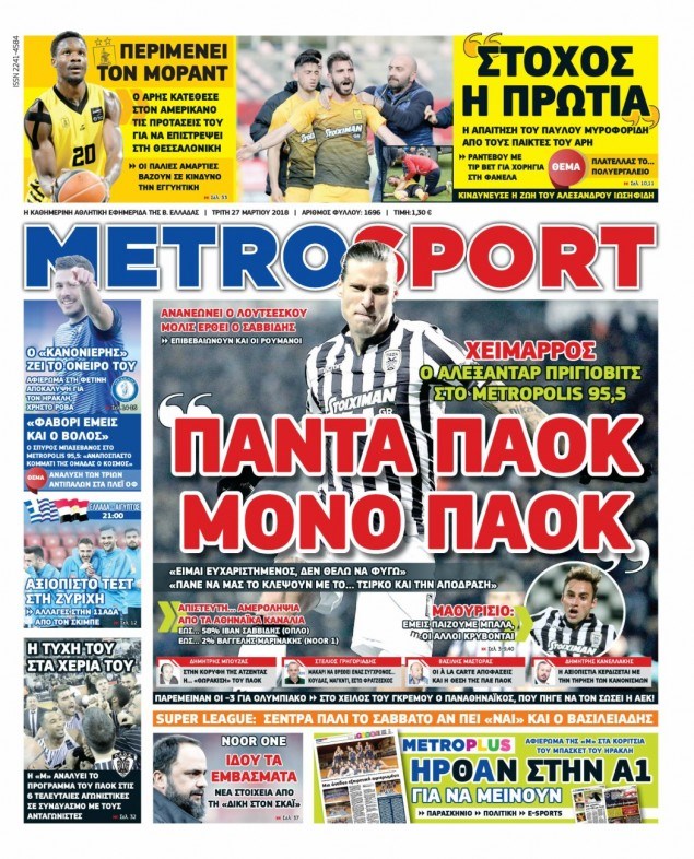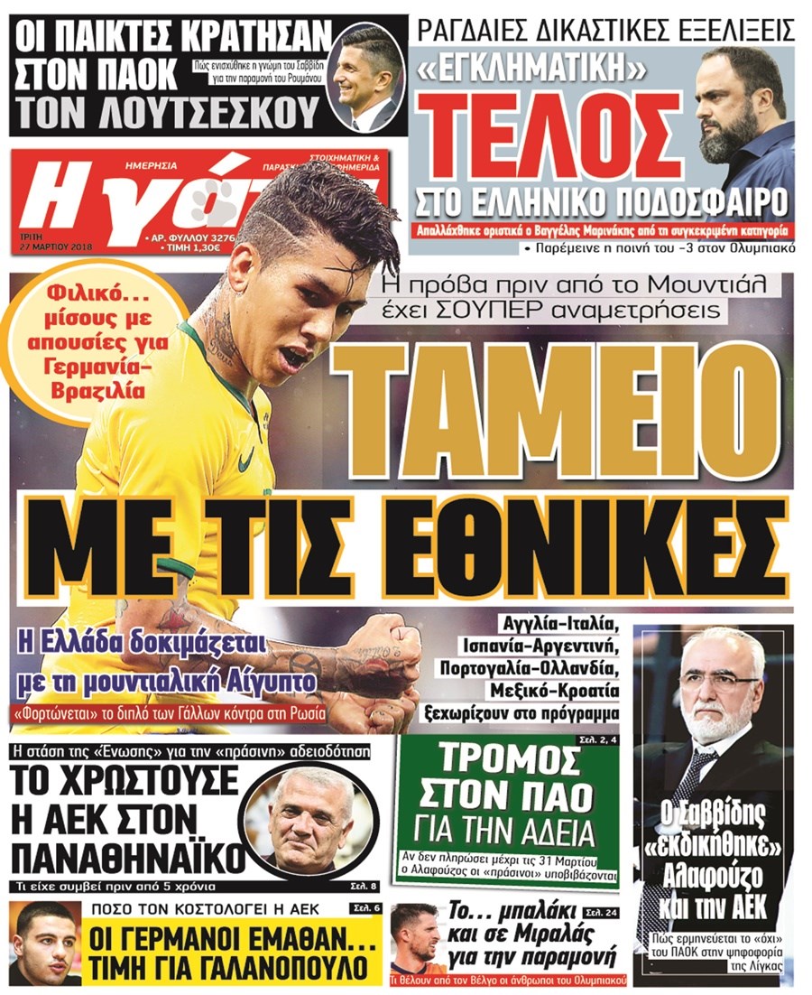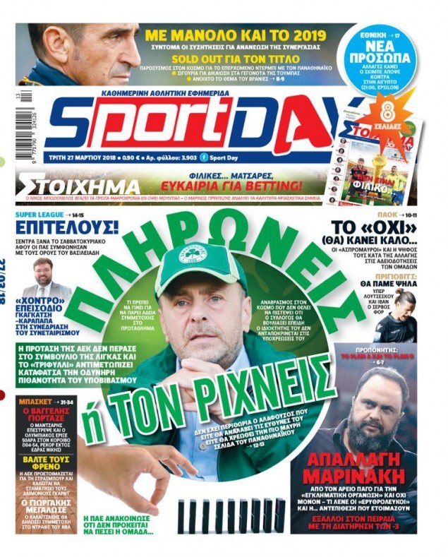 Οι αθλητικές εφημερίδες 27/3/2018 Κώστας Τεό 06:36, Τρίτη 27 Μαρτίου 2018 Media Διαβάστε τα σημερινά πρωτοσέλιδα των αθλητικών εφημερίδων: ΑΘΛΗΤΙΚΕΣ ΕΦΗΜΕΡΙΔΕΣ ΠΡΩΤΟΣΕΛΙΔΑ Μοιράσου το: σχολίασε κι εσύ (0 σχόλια) Ακολουθήστε το enikos.gr στο Google News και μάθετε πρώτοι όλες τις ειδήσεις Δείτε όλες τις τελευταίες ειδήσεις από την Ελλάδα και τον Κόσμο στο enikos.gr Ειδήσεις Ροή Ειδήσεων 4 ώρες πριν Από το Ορμένιο ως τα Μάλγαρα κι από τη Σιάτιστα μέχρι τη Νίκαια: Μπλόκα σε όλη την Ελλάδα – Το Σάββατο ανοίγουν τα διόδια οι αγρότες 1 ώρα πριν Εμπλοκή και αερομαχίες με οπλισμένα τουρκικά F-16 στο Αιγαίο 3 ώρες πριν Αττική: Θρίλερ με νεκρό βρέφος 5 μηνών – Κοιμόταν στο ίδιο κρεβάτι με τους γονείς του 58 λεπτά πριν Πούτιν: «Ναι, είμαι ερωτευμένος» – Βίντεο από τη σπάνια προσωπική παραδοχή του 3 ώρες πριν Μεσόγειος: Η διαδρομή του ρωσικού τάνκερ «Qendil» και η στοχευμένη επίθεση της Ουκρανίας με drone – Ο Πούτιν προειδοποίησε για αντίποινα 5 ώρες πριν Τα 5 ζώδια που ευνοούνται στην ερωτική ζωή τους την επόμενη εβδομάδα – «Η ενέργεια του Αιγόκερου φέρνει αγάπη και σταθερότητα» 6 ώρες πριν Αυτό το έξυπνο μαθηματικό κόλπο θα μπορούσε να αλλάξει τον τρόπο με τον οποίο οι επιστήμονες μελετούν τους σεισμούς 2 ώρες πριν Μήπως έχετε χάσει τον εαυτό σας στη σχέση σας; 7 «αθόρυβες» υποχωρήσεις που μάλλον κάνατε, χωρίς να το συνειδητοποιήσετε 4 ώρες πριν Κουίζ για την παλιά Αθήνα: Αναγνωρίζετε την περιοχή; Έχετε περάσει 100% από εκεί 5 λεπτά πριν Μπαράκ Ομπάμα: Τα βιβλία, οι ταινίες και τα τραγούδια που ξεχώρισε το 2025 – Πλήρης λίστα 9 λεπτά πριν Don’t Forget The Lyrics: Η Έλλη Κοκκίνου υποδέχεται 4 παίκτες που θα κάνουν τα πάντα για να μη χάσουν ούτε… μισή λέξη από τους στίχους 15 λεπτά πριν Πλεύρης στον ΑΝΤ1: Η βασική πολιτική που ψηφίστηκε από τους υπουργούς Μετανάστευσης είναι η δημιουργία κέντρων κράτησης μεταναστών στην Αφρική – ΒΙΝΤΕΟ 20 λεπτά πριν Η εξομολόγηση της Νίκης Σερέτη: «Δεν κρύβω ότι ήταν πάρα πολύ δύσκολο όλο αυτό που βίωσα» 26 λεπτά πριν Αγρότες: Κλειστό ξανά το ρεύμα εισόδου στα Μάλγαρα – Άνοιξαν τον κόμβο της Χαλκηδόνας ENIKOS NETWORK Έχετε πραγματικά μεγάλη καρδιά; 10 χαρακτηριστικά όσων έχουν καλοσύνη «Η σούπερ» γρίπη εξαπλώνεται στην Ευρώπη-Στοιχεία από το ECDC για την αποτελεσματικότητα του εμβολίου Επίδομα παιδιού: Πότε ανοίγει ξανά η πλατφόρμα για τις αιτήσεις Προκήρυξη ΑΣΕΠ για 397 μόνιμες προσλήψεις στο Δημόσιο: Βγήκαν τα προσωρινά αποτελέσματα – Πότε αρχίζει η υποβολή ενστάσεων Χαρτογραφώντας το «σημείο χωρίς επιστροφή»: Για πρώτη φορά αποκαλύπτεται με λεπτομέρεια το ακανθώδες όριο της ατμόσφαιρας τ... Η Google καταργεί τη λειτουργία «dark web report» – Πώς θα μπορούν οι χρήστες να διαγράφουν τα δεδομένα τους περισσότερα 20:37 , Παρασκευή 19 Δεκεμβρίου 2025 Don’t Forget The Lyrics: Η Έλλη Κοκκίνου υποδέχεται 4 παίκτες που θα κάνουν τα πάντα για να μη χάσουν ούτε… μισή λέξη από τους στίχους Το «Don’t Forget The Lyrics» επιστρέφει απόψε, Παρασκευή 19 Δεκεμβρίου, στις 21:00 με νέο επει... 19:31 , Παρασκευή 19 Δεκεμβρίου 2025 GNTM: Απόψε ο μεγάλος τελικός για τους 4 φιναλίστ Έπειτα από μήνες γεμάτους μόδα, δημιουργία και έντονες αναμετρήσεις, το GNTM 2025 κορυφώνεται,... 18:11 , Παρασκευή 19 Δεκεμβρίου 2025 Το σόι σου: Ο Άρης έρχεται στην Ελλάδα για τις γιορτές των Χριστουγέννων – Τι θα δούμε στο αποψινό εορταστικό επεισόδιο Ένα απολαυστικό, εορταστικό επεισόδιο της σειράς “Το σόι σου”, γεμάτο ευτράπελα αλ... 15:15 , Παρασκευή 19 Δεκεμβρίου 2025 Την Κυριακ