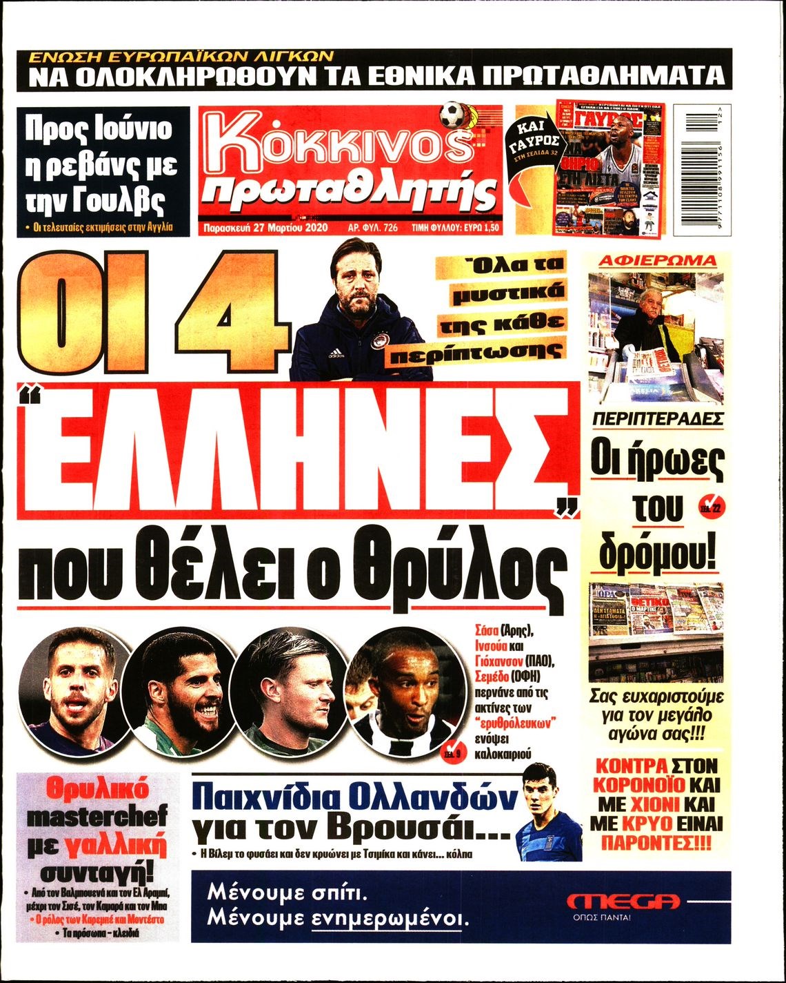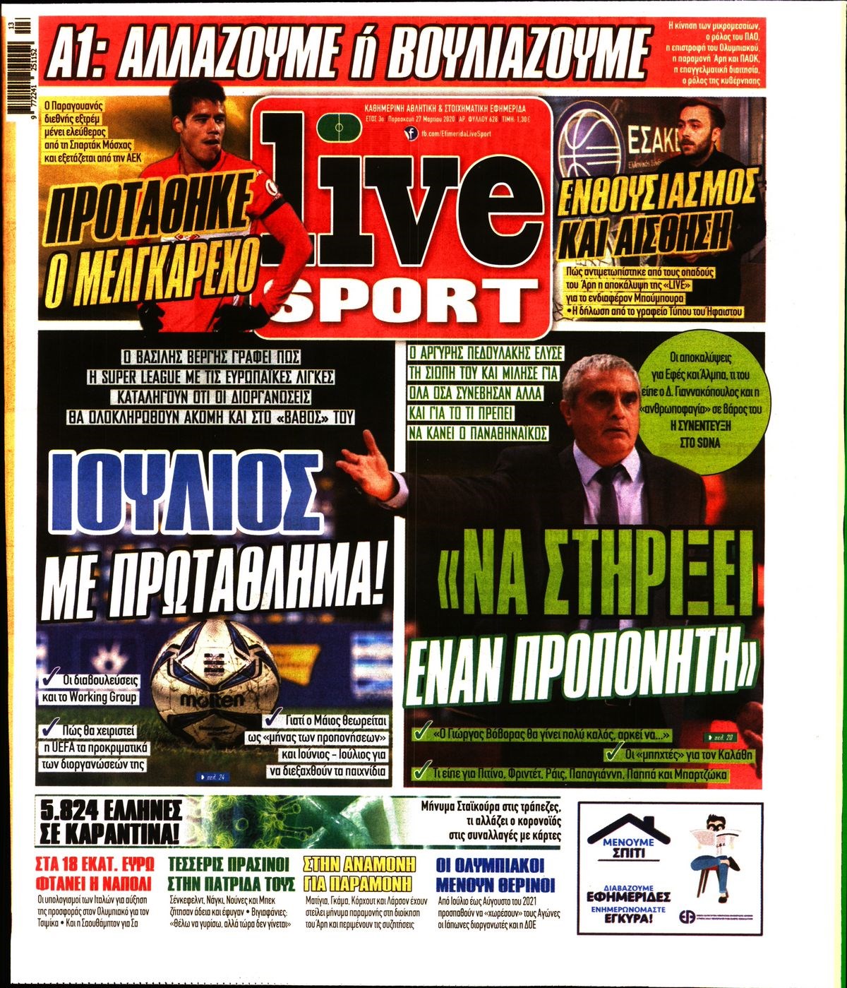 Οι αθλητικές εφημερίδες 27/3/2020 Διονύσης Νίκκας 06:45, Παρασκευή 27 Μαρτίου 2020 Media Διαβάστε τα πρωτοσέλιδα των αθλητικών εφημερίδων… ΑΘΛΗΤΙΚΕΣ ΕΦΗΜΕΡΙΔΕΣ ΠΡΩΤΟΣΕΛΙΔΑ Μοιράσου το: σχολίασε κι εσύ (0 σχόλια) Ακολουθήστε το enikos.gr στο Google News και μάθετε πρώτοι όλες τις ειδήσεις Δείτε όλες τις τελευταίες ειδήσεις από την Ελλάδα και τον Κόσμο στο enikos.gr Ειδήσεις Ροή Ειδήσεων 2 ώρες πριν Γιορτές με μπλόκα για τους αγρότες: Ανοίγουν διόδια και μοιράζουν προϊόντα στους ταξιδιώτες 2 ώρες πριν Τα αρχεία του Έπσταϊν αποκαλύπτουν φωτογραφία του έκπτωτου πρίγκιπα Άντριου – Είναι ξαπλωμένος στην αγκαλιά 5 γυναικών 2 ώρες πριν Νέες ταυτότητες: Μεγάλη αναμονή για ραντεβού στην Αττική – Τέλος τα ταξίδια εκτός Ελλάδος από τον Αύγουστο για όσους δεν έχουν αλλάξει 3 ώρες πριν Εξαφάνιση 33χρονου γιατρού στην Κρήτη: «Άναψα τα φώτα, τρόμαξε και άρχισε να τρέχει στα χωράφια» – Η τελευταία διαδρομή και η μαρτυρία «κλειδί» 50 λεπτά πριν Ινδία: Επτά ελέφαντες σκοτώθηκαν κατά τη σύγκρουση επιβατικού τρένου με κοπάδι 3 ώρες πριν Μία νέα «χρυσή» περίοδος αρχίζει για 3 ζώδια από σήμερα – «Μία αναπάντεχη ευκαιρία οδηγεί στην επιτυχία» 5 ώρες πριν Αρχαιολόγοι ανακάλυψαν σε χωράφι απεικόνιση 600 ετών ενός Αγίου – Τα στοιχεία που δείχνουν ότι μαρτύρησε 4 ώρες πριν Αγχώνεται για το χριστουγεννιάτικο δώρο που πήρε στην πλούσια σύντροφό του – «Φοβάμαι πως θα το βρει φθηνιάρικο, φοράει βραχιόλια Cartier» 47 λεπτά πριν Διαιτολόγος αποκαλύπτει 9 πρωινές συνήθειες που «λιώνουν» το κοιλιακό λίπος – «Υποστηρίζουν την υγιεινή απώλεια βάρους» 4 λεπτά πριν Τσιάρας για αγρότες: Ικανοποιείται το αίτημα για αφορολόγητο πετρέλαιο στη μάνικα, πρόθεσή μας να μειωθεί ακόμη περισσότερο η τιμή στο ρεύμα 10 λεπτά πριν Η Ζιζέλ Μπούντχεν παντρεύτηκε τον δάσκαλο ζίου-ζίτσου, Χοακίμ Βαλέντε 18 λεπτά πριν Αρχεία Έπσταϊν: Οι συγκλονιστικές φωτογραφίες – Ο Μάικλ Τζάκσον, ο Μικ Τζάγκερ και ο Κέβιν Σπέισι ανάμεσα στους διάσημους που απεικονίζονται 27 λεπτά πριν Χρήστος Μάντακας: «Θα μπορούσα να είχα φύγει από τη ζωή, δεν μπορούσα να περπατήσω…» 34 λεπτά πριν Εντυπωσιακό βίντεο από «τσουνάμι» πάγου στη Σιβηρία – Πώς προκαλείται το σπάνιο φαινόμενο ENIKOS NETWORK Είστε μόνιμα απρόσεκτοι; 3 σημάδια που δείχνουν ότι μπορεί να είναι σύμπτωμα πάθησης Πόσα κιλά παίρνουμε πραγματικά τα Χριστούγεννα, σύμφωνα με την επιστήμη – Πώς να το αποτρέψουμε; Χρήστος Δήμας: Στα 2,5 εκατ. ευρώ την ημέρα το κόστος από το άνοιγμα των διοδίων από τους αγρότες – Θα αξιώσουν αποζημίωση ... Χριστούγεννα και Πρωτοχρονιά: Πώς αμείβονται όσοι εργαστούν Χαρτογραφώντας το «σημείο χωρίς επιστροφή»: Για πρώτη φορά αποκαλύπτεται με λεπτομέρεια το ακανθώδες όριο της ατμόσφαιρας τ... Η Google καταργεί τη λειτουργία «dark web report» – Πώς θα μπορούν οι χρήστες να διαγράφουν τα δεδομένα τους περισσότερα 11:41 , Σάββατο 20 Δεκεμβρίου 2025 «Η αγάπη δεν χάνεται ποτέ»: Η μικρού μήκους ταινία κινουμένων σχεδίων που θέτει ερωτήματα για τη ζωή και τον θάνατο Ο θάνατος είναι ένα από τα πιο σκληρά θέματα που καλείται να διαχειριστεί κάποιος στη διάρκεια... 09:30 , Σάββατο 20 Δεκεμβρίου 2025 «Porto Leone: Στη γειτονιά με τα κόκκινα φανάρια» – Ο Χρόνης αποκαλύπτει στην Αλεξάνδρα το μυστικό για το παιδί της Λένας Η μεγάλη δραματική σειρά του Apha «Porto Leone: Στη γειτονιά με τα κόκκινα φανάρια» μας μεταφέ... 08:14 , Σάββατο 20 Δεκεμβρίου 2025 Τρομεροί γονείς: Η Μαρία Καβογιάννη εισβάλλει στο σπίτι της οικο