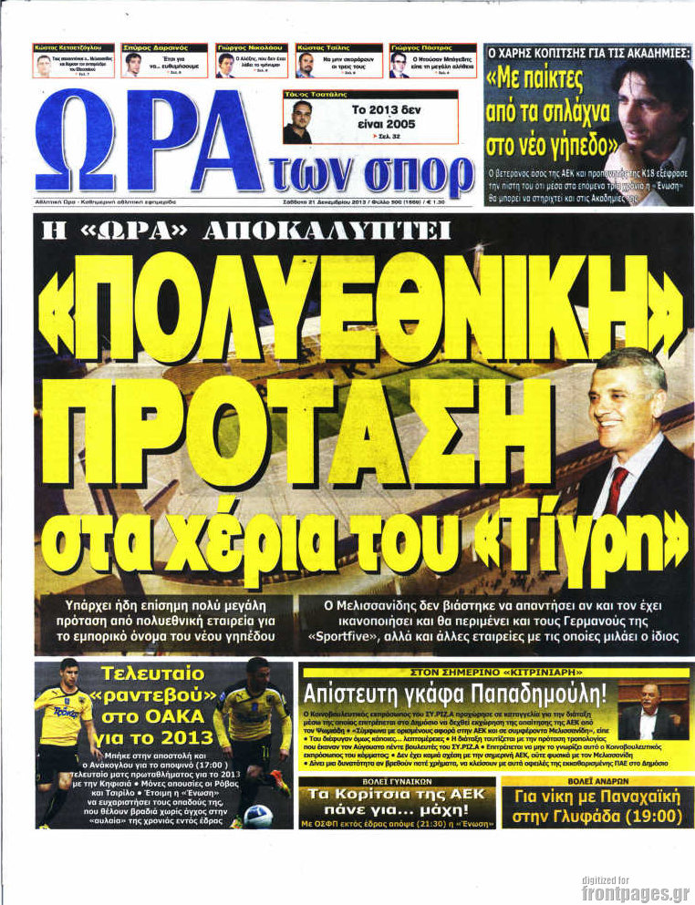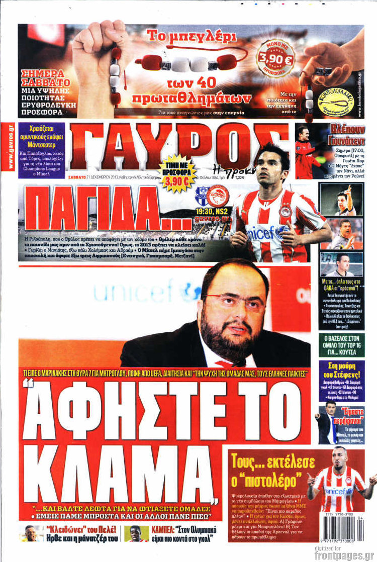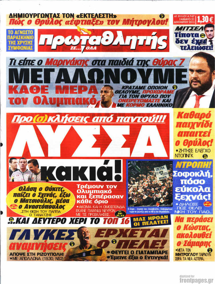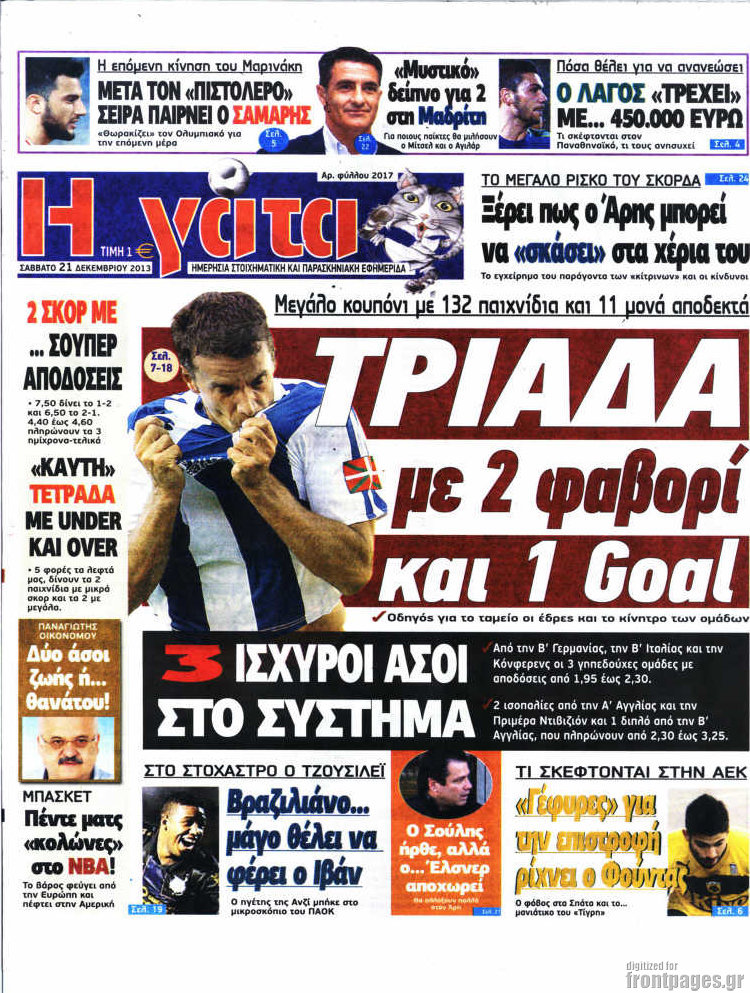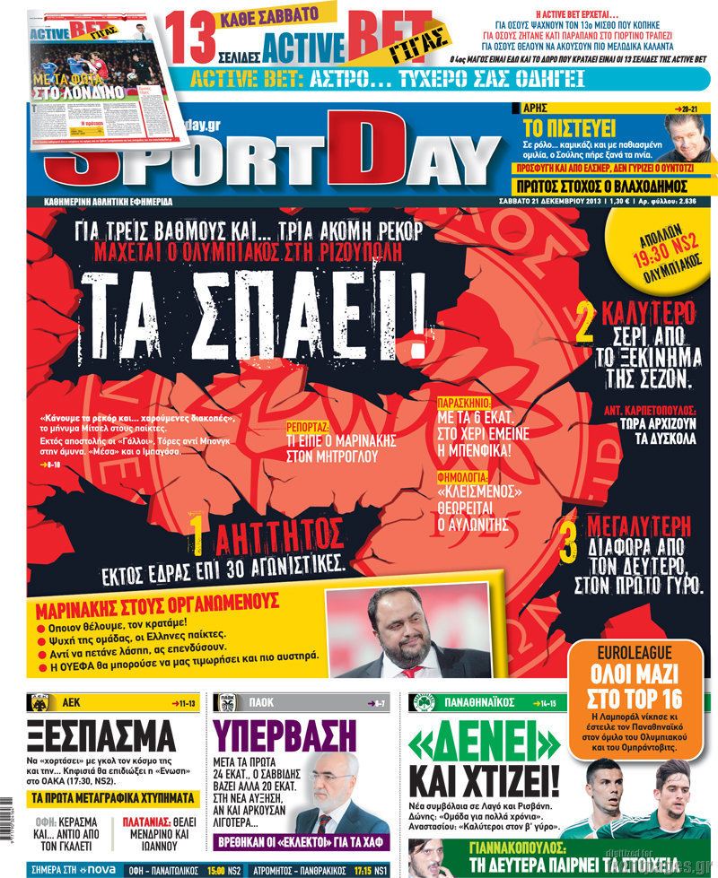 Οι αθλητικές εφημερίδες Enikos Newsroom 08:34, Σάββατο 21 Δεκεμβρίου 2013 Media Οι αθλητικές εφημερίδες ΑΘΛΗΤΙΚΕΣ ΕΦΗΜΕΡΙΔΕΣ ΕΦΗΜΕΡΙΔΕΣ Μοιράσου το: σχολίασε κι εσύ (0 σχόλια) Ακολουθήστε το enikos.gr στο Google News και μάθετε πρώτοι όλες τις ειδήσεις Δείτε όλες τις τελευταίες ειδήσεις από την Ελλάδα και τον Κόσμο στο enikos.gr Ειδήσεις Ροή Ειδήσεων 2 ώρες πριν Μεσόγειος: Η διαδρομή του ρωσικού τάνκερ «Qendil» και η στοχευμένη επίθεση της Ουκρανίας με drone – Ο Πούτιν προειδοποίησε για αντίποινα 2 ώρες πριν Αττική: Θρίλερ με νεκρό βρέφος 5 μηνών – Κοιμόταν στο ίδιο κρεβάτι με τους γονείς του 3 ώρες πριν Από το Ορμένιο ως τα Μάλγαρα κι από τη Σιάτιστα μέχρι τη Νίκαια: Μπλόκα σε όλη την Ελλάδα – Το Σάββατο ανοίγουν τα διόδια οι αγρότες 3 ώρες πριν «Έλληνας Εσκομπάρ»: Φωτογραφίες με τους 4 τόνους κοκαΐνης που κατασχέθηκαν από το σκάφος «Ουρανία» 4 ώρες πριν Πούτιν: Σαρκαστικά μηνύματα, παράπονα και απρόοπτα στη συνέντευξη Τύπου – Η πρόταση γάμου on air και οι ερωτήσεις για τα αγγούρια και τους… εξωγήινους 4 ώρες πριν Τα 5 ζώδια που ευνοούνται στην ερωτική ζωή τους την επόμενη εβδομάδα – «Η ενέργεια του Αιγόκερου φέρνει αγάπη και σταθερότητα» 8 ώρες πριν Ειδικός μοιράζεται 6 κόλπα για να διατηρείστε σε φόρμα με πάνω από 40 ώρες εργασίας την εβδομάδα: «Προπονηθείτε πριν από τη δουλειά, όχι μετά» 5 ώρες πριν Αυτό το έξυπνο μαθηματικό κόλπο θα μπορούσε να αλλάξει τον τρόπο με τον οποίο οι επιστήμονες μελετούν τους σεισμούς 3 ώρες πριν Κουίζ για την παλιά Αθήνα: Αναγνωρίζετε την περιοχή; Έχετε περάσει 100% από εκεί 3 λεπτά πριν Ρούμπιο: Έχει υπάρξει πρόοδος στις συνομιλίες για την Ουκρανία – Τα τελευταία ζητήματα είναι τα πιο δύσκολα 10 λεπτά πριν Πούτιν: «Ναι, είμαι ερωτευμένος» – Βίντεο από τη σπάνια προσωπική παραδοχή του 14 λεπτά πριν Γαλλία – Shein: Υποχρεωτικός έλεγχος ηλικίας των πελατών μετά τον σάλο με τις ερωτικές κούκλες 20 λεπτά πριν Εμπλοκή και αερομαχίες με οπλισμένα τουρκικά F-16 στο Αιγαίο 28 λεπτά πριν GNTM: Απόψε ο μεγάλος τελικός για τους 4 φιναλίστ ENIKOS NETWORK Έχετε πραγματικά μεγάλη καρδιά; 10 χαρακτηριστικά όσων έχουν καλοσύνη «Η σούπερ» γρίπη εξαπλώνεται στην Ευρώπη-Στοιχεία από το ECDC για την αποτελεσματικότητα του εμβολίου Προκήρυξη ΑΣΕΠ για 397 μόνιμες προσλήψεις στο Δημόσιο: Βγήκαν τα προσωρινά αποτελέσματα – Πότε αρχίζει η υποβολή ενστάσεων Η απάντηση της κυβέρνησης στα αιτήματα των αγροτών: 16 έχουν ικανοποιηθεί, 4 βρίσκονται υπό επεξεργασία και 7 δεν είναι εφι... Χαρτογραφώντας το «σημείο χωρίς επιστροφή»: Για πρώτη φορά αποκαλύπτεται με λεπτομέρεια το ακανθώδες όριο της ατμόσφαιρας τ... Η Google καταργεί τη λειτουργία «dark web report» – Πώς θα μπορούν οι χρήστες να διαγράφουν τα δεδομένα τους περισσότερα 19:31 , Παρασκευή 19 Δεκεμβρίου 2025 GNTM: Απόψε ο μεγάλος τελικός για τους 4 φιναλίστ Έπειτα από μήνες γεμάτους μόδα, δημιουργία και έντονες αναμετρήσεις, το GNTM 2025 κορυφώνεται,... 18:11 , Παρασκευή 19 Δεκεμβρίου 2025 Το σόι σου: Ο Άρης έρχεται στην Ελλάδα για τις γιορτές των Χριστουγέννων – Τι θα δούμε στο αποψινό εορταστικό επεισόδιο Ένα απολαυστικό, εορταστικό επεισόδιο της σειράς “Το σόι σου”, γεμάτο ευτράπελα αλ... 15:15 , Παρασκευή 19 Δεκεμβρίου 2025 Την Κυριακή με τη Realnews: Ό,τι και αν αγοράσεις, σκανάρεις και κερδίζεις! Την Κυριακή με τη Realnews: Ό,τι και αν αγοράσεις, σκανάρεις και κερδίζεις! Με το PADU app, το... 08:00 , Παρασκευή 19 Δεκεμβρίου 2025 Την Κυριακή με τη Realnews: Δωροεπιταγή 10€ Δωροεπιταγή αξίας 10€ γι