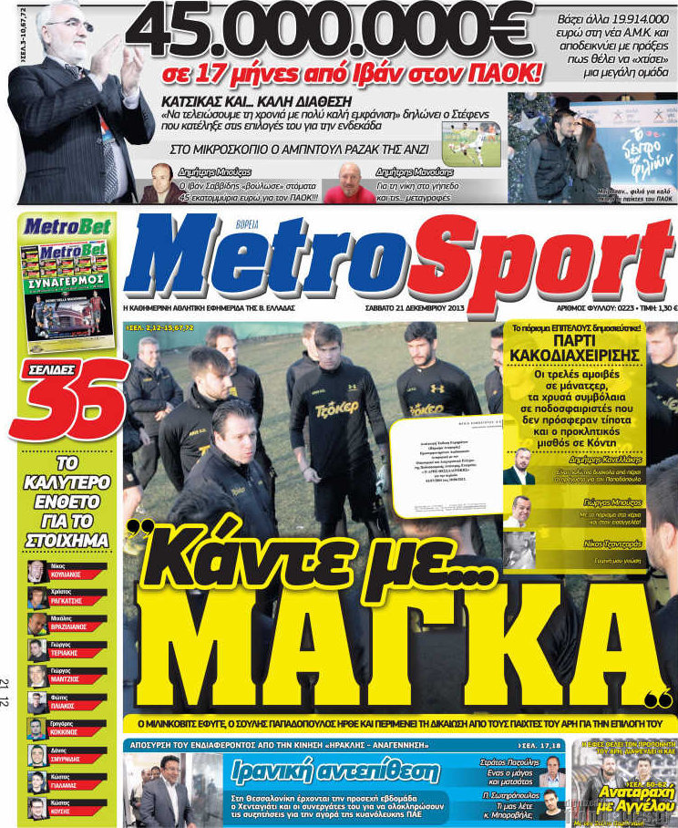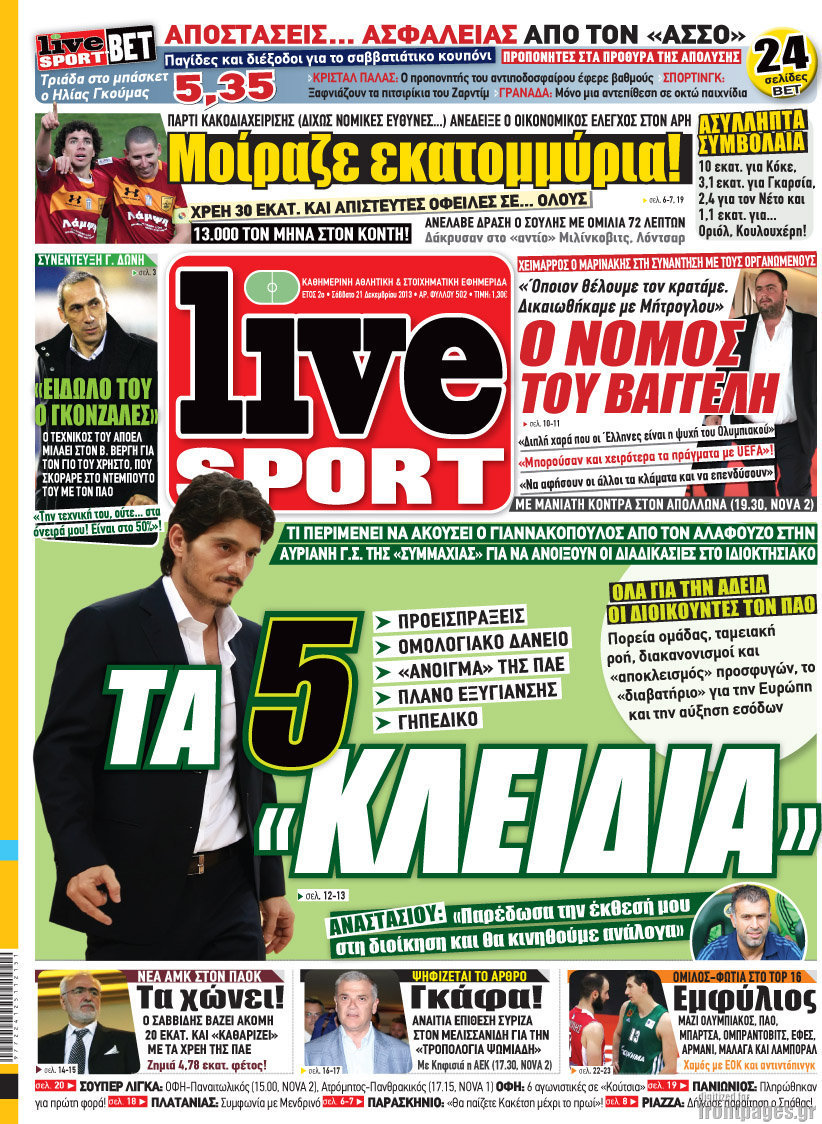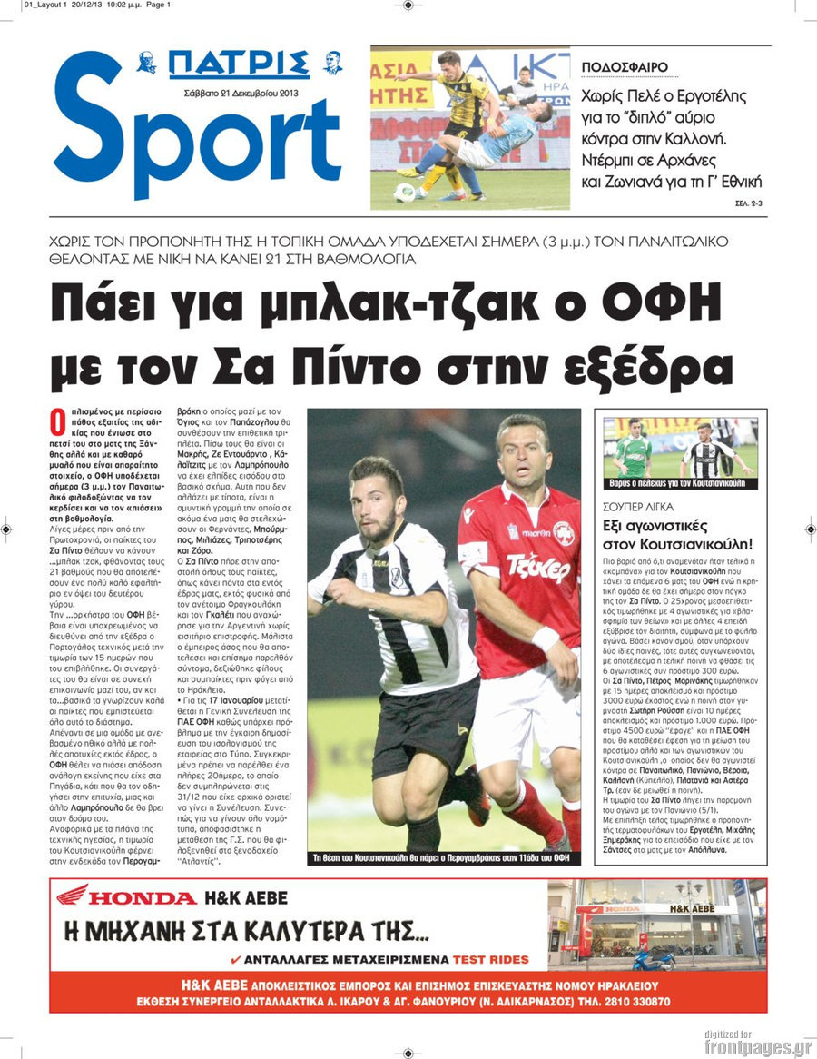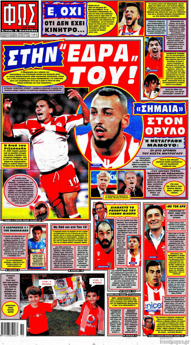 Οι αθλητικές εφημερίδες Enikos Newsroom 08:34, Σάββατο 21 Δεκεμβρίου 2013 Media Οι αθλητικές εφημερίδες ΑΘΛΗΤΙΚΕΣ ΕΦΗΜΕΡΙΔΕΣ ΕΦΗΜΕΡΙΔΕΣ Μοιράσου το: σχολίασε κι εσύ (0 σχόλια) Ακολουθήστε το enikos.gr στο Google News και μάθετε πρώτοι όλες τις ειδήσεις Δείτε όλες τις τελευταίες ειδήσεις από την Ελλάδα και τον Κόσμο στο enikos.gr Ειδήσεις Ροή Ειδήσεων 2 ώρες πριν Μεσόγειος: Η διαδρομή του ρωσικού τάνκερ «Qendil» και η στοχευμένη επίθεση της Ουκρανίας με drone – Ο Πούτιν προειδοποίησε για αντίποινα 2 ώρες πριν Αττική: Θρίλερ με νεκρό βρέφος 5 μηνών – Κοιμόταν στο ίδιο κρεβάτι με τους γονείς του 3 ώρες πριν Από το Ορμένιο ως τα Μάλγαρα κι από τη Σιάτιστα μέχρι τη Νίκαια: Μπλόκα σε όλη την Ελλάδα – Το Σάββατο ανοίγουν τα διόδια οι αγρότες 3 ώρες πριν «Έλληνας Εσκομπάρ»: Φωτογραφίες με τους 4 τόνους κοκαΐνης που κατασχέθηκαν από το σκάφος «Ουρανία» 4 ώρες πριν Πούτιν: Σαρκαστικά μηνύματα, παράπονα και απρόοπτα στη συνέντευξη Τύπου – Η πρόταση γάμου on air και οι ερωτήσεις για τα αγγούρια και τους… εξωγήινους 4 ώρες πριν Τα 5 ζώδια που ευνοούνται στην ερωτική ζωή τους την επόμενη εβδομάδα – «Η ενέργεια του Αιγόκερου φέρνει αγάπη και σταθερότητα» 8 ώρες πριν Ειδικός μοιράζεται 6 κόλπα για να διατηρείστε σε φόρμα με πάνω από 40 ώρες εργασίας την εβδομάδα: «Προπονηθείτε πριν από τη δουλειά, όχι μετά» 5 ώρες πριν Αυτό το έξυπνο μαθηματικό κόλπο θα μπορούσε να αλλάξει τον τρόπο με τον οποίο οι επιστήμονες μελετούν τους σεισμούς 3 ώρες πριν Κουίζ για την παλιά Αθήνα: Αναγνωρίζετε την περιοχή; Έχετε περάσει 100% από εκεί 3 λεπτά πριν Ρούμπιο: Έχει υπάρξει πρόοδος στις συνομιλίες για την Ουκρανία – Τα τελευταία ζητήματα είναι τα πιο δύσκολα 10 λεπτά πριν Πούτιν: «Ναι, είμαι ερωτευμένος» – Βίντεο από τη σπάνια προσωπική παραδοχή του 14 λεπτά πριν Γαλλία – Shein: Υποχρεωτικός έλεγχος ηλικίας των πελατών μετά τον σάλο με τις ερωτικές κούκλες 20 λεπτά πριν Εμπλοκή και αερομαχίες με οπλισμένα τουρκικά F-16 στο Αιγαίο 28 λεπτά πριν GNTM: Απόψε ο μεγάλος τελικός για τους 4 φιναλίστ ENIKOS NETWORK Έχετε πραγματικά μεγάλη καρδιά; 10 χαρακτηριστικά όσων έχουν καλοσύνη «Η σούπερ» γρίπη εξαπλώνεται στην Ευρώπη-Στοιχεία από το ECDC για την αποτελεσματικότητα του εμβολίου Προκήρυξη ΑΣΕΠ για 397 μόνιμες προσλήψεις στο Δημόσιο: Βγήκαν τα προσωρινά αποτελέσματα – Πότε αρχίζει η υποβολή ενστάσεων Η απάντηση της κυβέρνησης στα αιτήματα των αγροτών: 16 έχουν ικανοποιηθεί, 4 βρίσκονται υπό επεξεργασία και 7 δεν είναι εφι... Χαρτογραφώντας το «σημείο χωρίς επιστροφή»: Για πρώτη φορά αποκαλύπτεται με λεπτομέρεια το ακανθώδες όριο της ατμόσφαιρας τ... Η Google καταργεί τη λειτουργία «dark web report» – Πώς θα μπορούν οι χρήστες να διαγράφουν τα δεδομένα τους περισσότερα 19:31 , Παρασκευή 19 Δεκεμβρίου 2025 GNTM: Απόψε ο μεγάλος τελικός για τους 4 φιναλίστ Έπειτα από μήνες γεμάτους μόδα, δημιουργία και έντονες αναμετρήσεις, το GNTM 2025 κορυφώνεται,... 18:11 , Παρασκευή 19 Δεκεμβρίου 2025 Το σόι σου: Ο Άρης έρχεται στην Ελλάδα για τις γιορτές των Χριστουγέννων – Τι θα δούμε στο αποψινό εορταστικό επεισόδιο Ένα απολαυστικό, εορταστικό επεισόδιο της σειράς “Το σόι σου”, γεμάτο ευτράπελα αλ... 15:15 , Παρασκευή 19 Δεκεμβρίου 2025 Την Κυριακή με τη Realnews: Ό,τι και αν αγοράσεις, σκανάρεις και κερδίζεις! Την Κυριακή με τη Realnews: Ό,τι και αν αγοράσεις, σκανάρεις και κερδίζεις! Με το PADU app, το... 08:00 , Παρασκευή 19 Δεκεμβρίου 2025 Την Κυριακή με τη Realnews: Δωροεπιταγή 10€ Δωροεπιταγή αξίας 10€ γι