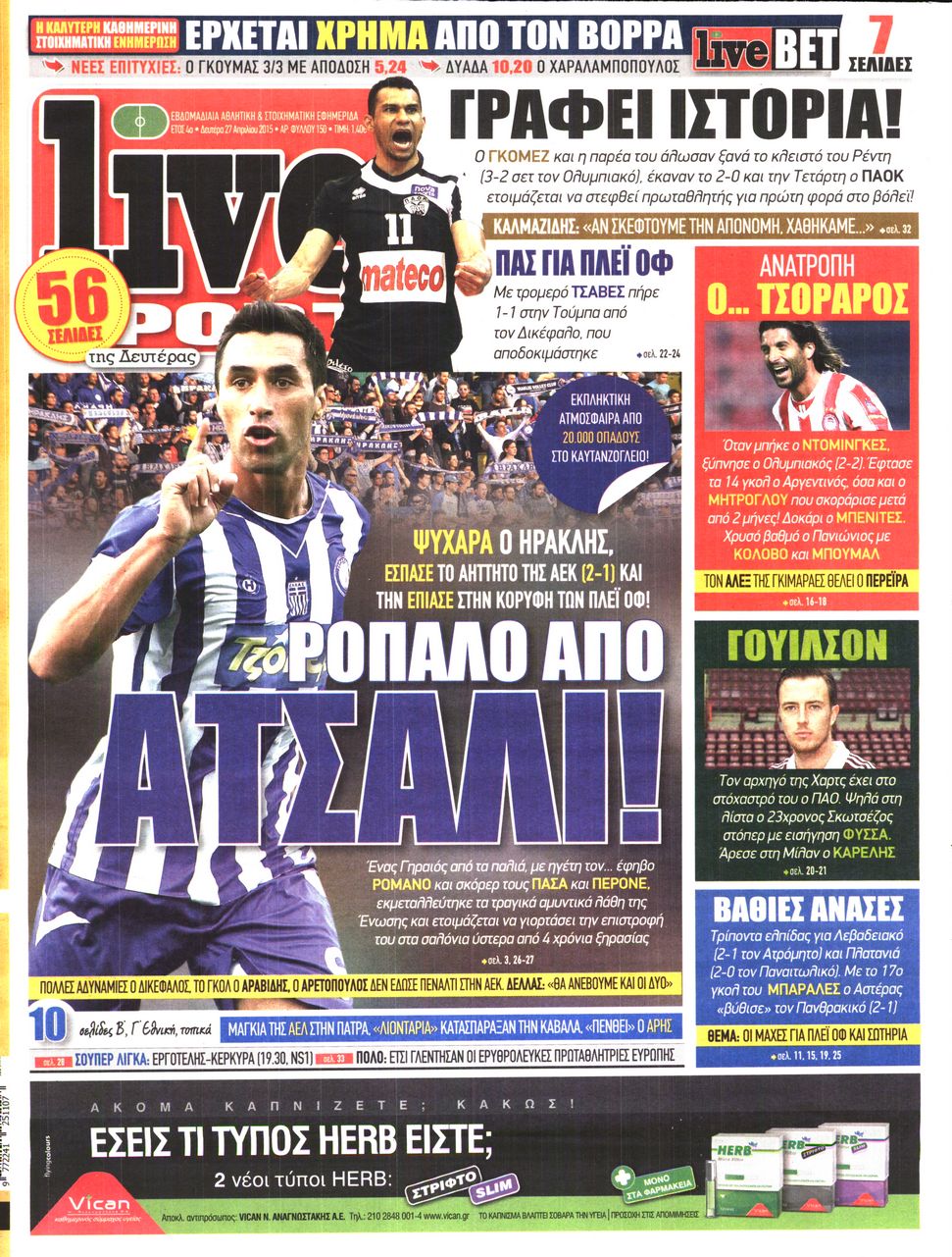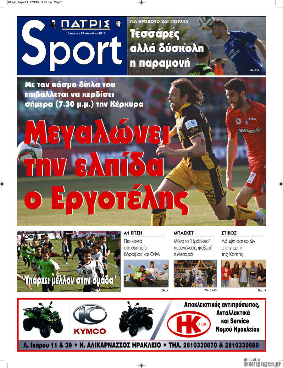 Οι αθλητικές εφημερίδες 27/4/2015 Enikos Newsroom 07:10, Δευτέρα 27 Απριλίου 2015 Media Διαβάστε τα σημερινά πρωτοσέλιδα των αθλητικών εφημερίδων: ΑΘΛΗΤΙΚΕΣ ΕΦΗΜΕΡΙΔΕΣ ΕΦΗΜΕΡΙΔΕΣ ΠΡΩΤΟΣΕΛΙΔΑ Μοιράσου το: σχολίασε κι εσύ (0 σχόλια) Ακολουθήστε το enikos.gr στο Google News και μάθετε πρώτοι όλες τις ειδήσεις Δείτε όλες τις τελευταίες ειδήσεις από την Ελλάδα και τον Κόσμο στο enikos.gr Ειδήσεις Ροή Ειδήσεων 2 ώρες πριν Live-Μετ’ εμποδίων η έξοδος: Ουρές χιλιομέτρων στη Ριτσώνα, εναλλακτικές από χωματόδρομους αναζητούν οι οδηγοί – Μποτιλιάρισμα και εντός της Αττικής 4 ώρες πριν Μπλόκα της Τροχαίας: «Λερναία Ύδρα» τα γκρουπ στο Viber που προειδοποιούν για ελέγχους – Το «γκρίζο» νομικό τοπίο και οι νόμιμες εφαρμογές 2 ώρες πριν Καλύβια: Είχε χάσει 30 κιλά το «πιστόλι» του Έντικ για να μην αναγνωρίζεται – Πώς εντόπισε τον 35χρονο το ελληνικό FBI 3 ώρες πριν Αλεξανδρούπολη: Προφυλακίστηκε η μητέρα του 3χρονου που πέθανε από ασιτία – Τι λέει η δικηγόρος της 3 ώρες πριν Έπσταϊν: Οι νέες αποκαλύψεις που «καίνε» τον πρώην πρίγκιπα Άντριου – Το email από το Μπαλμόραλ στη Μάξγουελ για να βρει «ακατάλληλους φίλους» 2 ώρες πριν Τα 4 ζώδια που θα λάβουν όλα όσα ζητήσουν από το σύμπαν το 2026 -«Οι ευχές σας γίνονται πραγματικότητα» 7 ώρες πριν Αν πίνετε τον καφέ σας σκέτο, πιθανότατα διαθέτετε αυτά τα 7 ισχυρά χαρακτηριστικά 3 ώρες πριν Μυστήριο στο Διάστημα: Επιστήμονες εντόπισαν ένα «πρωτοφανές φαινόμενο» γύρω από το «Μάτι του Σάουρον», μόλις 25 έτη φωτός από τη Γη 9 ώρες πριν Η Coca-Cola και ο Ελληνικός Ερυθρός Σταυρός μαζί αυτά τα Χριστούγεννα: Μια μεγάλη αγκαλιά για τους συνανθρώπους μας που έχουν ανάγκη 6 λεπτά πριν Βουλή: «Πλημμύρισε» με κάλαντα και παραδοσιακούς χορούς από ολόκληρη την Ελλάδα 10 λεπτά πριν Υπουργικό Συμβούλιο: Τα θέματα που συζητήθηκαν στη σημερινή συνεδρίαση 16 λεπτά πριν Θεσσαλονίκη: Συνελήφθη 14χρονος με αυτοσχέδιο μαχαίρι 20 εκατοστών έξω από σχολείο 23 λεπτά πριν Στο Παρά Πέντε – 20 Χρόνια Μετά: Απόψε στις 21:00 στο Mega το αναμενόμενο Reunion 29 λεπτά πριν Διευθυντής Τσέρνομπιλ: Η σαρκοφάγος πάνω από τον κατεστραμμένο αντιδραστήρα δεν θα αντέξει άμεσο ρωσικό πλήγμα ENIKOS NETWORK Συγκίνηση στα εγκαίνια του ανακαινισμένου Κέντρου Υγείας στο Αμύνταιο ΕΦΕΤ: Οδηγίες για το τραπέζι των Χριστουγέννων – Τι πρέπει να προσέξουν οι καταναλωτές ΕΕ: Τι δείχνουν τα νέα στοιχεία για τις πωλήσεις των καινούριων επιβατικών αυτοκίνητων Αθήνα: Τσουχτερά πρόστιμα για κάπνισμα και αλκοόλ σε εστιατόρια, καφέ μπαρ, αναψυκτήρια και κέντρα διασκέδασης Ο Google Assistant θα παραμείνει λίγο περισσότερο για ορισμένους χρήστες Android Τεστ προσωπικότητας: Το βάζο που θα επιλέξετε αποκαλύπτει πώς λύνετε προβλήματα στη ζωή σας περισσότερα 17:59 , Τρίτη 23 Δεκεμβρίου 2025 Στο Παρά Πέντε – 20 Χρόνια Μετά: Απόψε στις 21:00 στο Mega το αναμενόμενο Reunion Το πλέον αναμενόμενο και νοσταλγικό Reunion της ελληνικής τηλεόρασης, το «Στο Παρά Πέντε – 20 ... 17:38 , Τρίτη 23 Δεκεμβρίου 2025 Άγιος έρωτας: Ο σεισμός σπέρνει το θάνατο στη Στέρνα Μετά τον καταστροφικό σεισμό που χτυπά τη Στέρνα, τίποτα δεν θα είναι πια το ίδιο στη σειρά ... 14:03 , Τρίτη 23 Δεκεμβρίου 2025 Έξοδος εκδρομέων για τα Χριστούγεννα: Στείλε βίντεο ή φωτογραφίες στο enikos.gr – Αποθήκευσε τον αριθμό 6944 05 05 05 Πολλοί έχουν επιλέξει να περάσουν τις γιορτές εκτός πόλης, ωστόσο και φέτος η μαζική έξοδος απ... 10:34 , Τρίτη 23 Δεκεμβρίου 2025 Την Κυριακή με τη Realnews: Ό,τι και αν αγοράσεις, σκανάρεις και κερδίζεις! Την Κυριακ